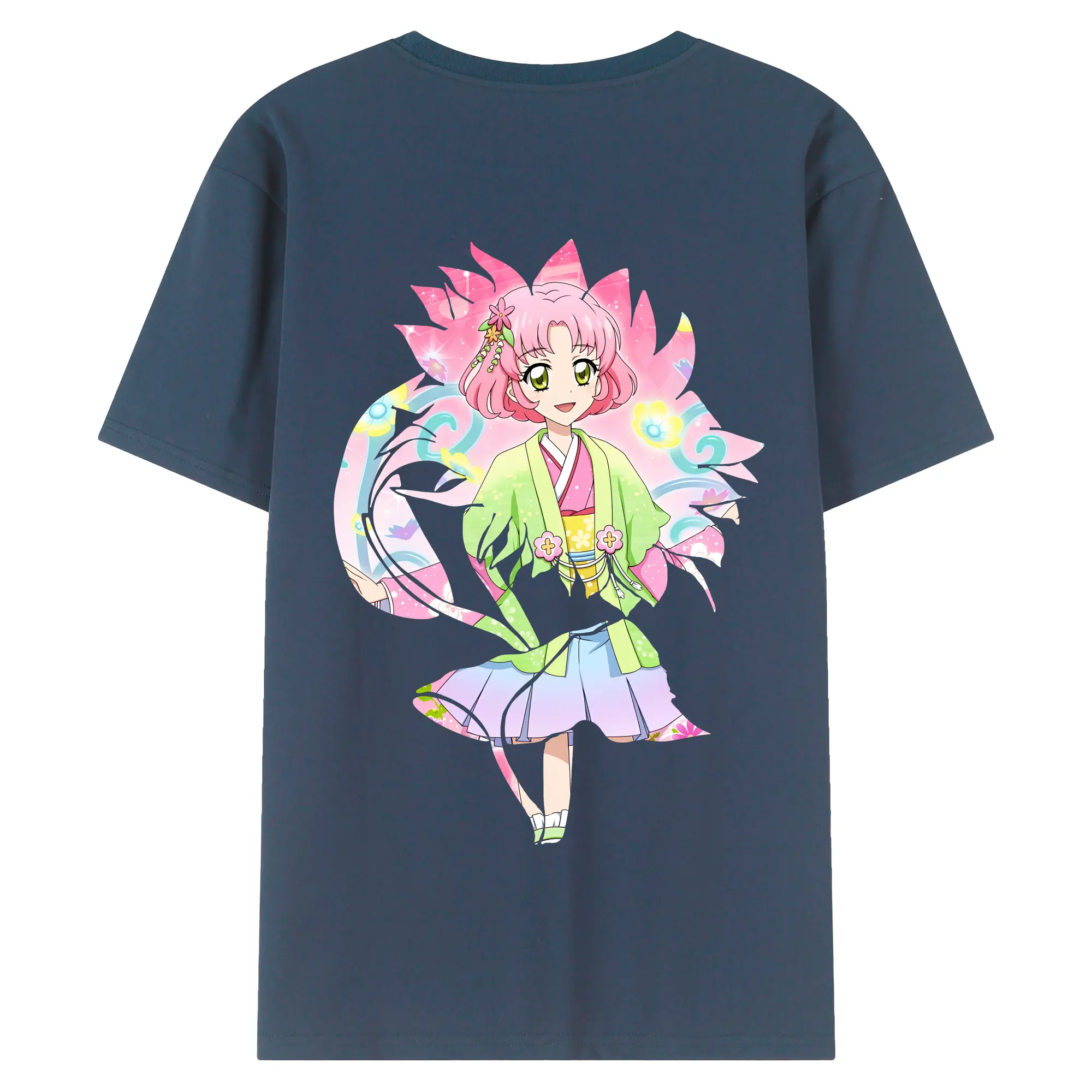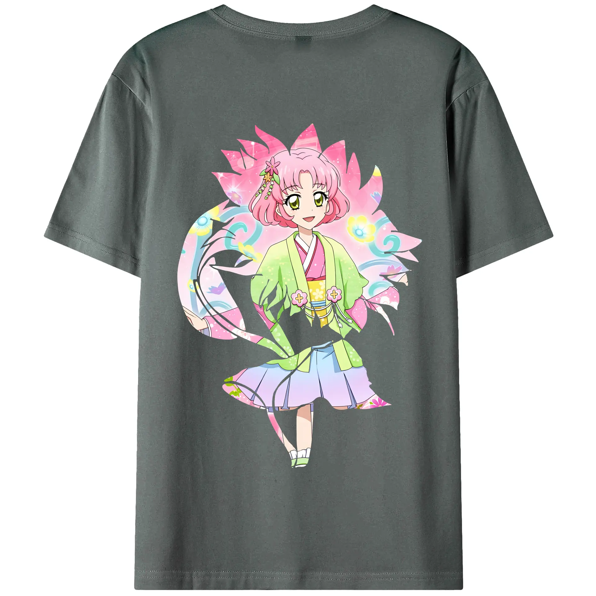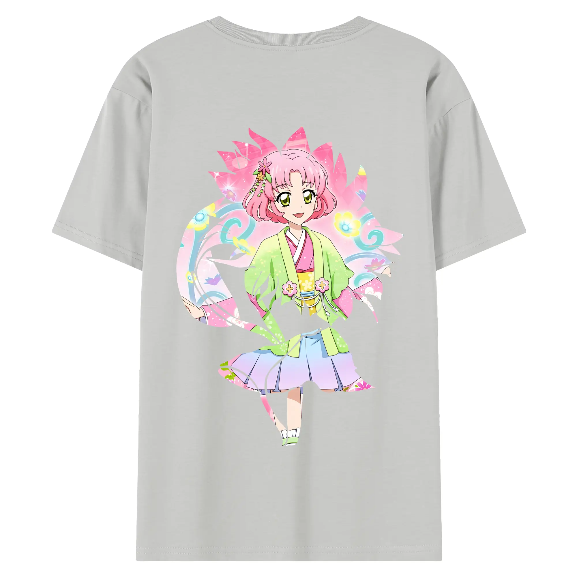 アイカツ グッズ 北大路 さくら - 綿100% ヴィンテージ風 半袖Tシャツ ・ 背面プリント ・ 柔らか肌触り ・ 通気性 快適 ・ スポーツ カジュアル 外出用