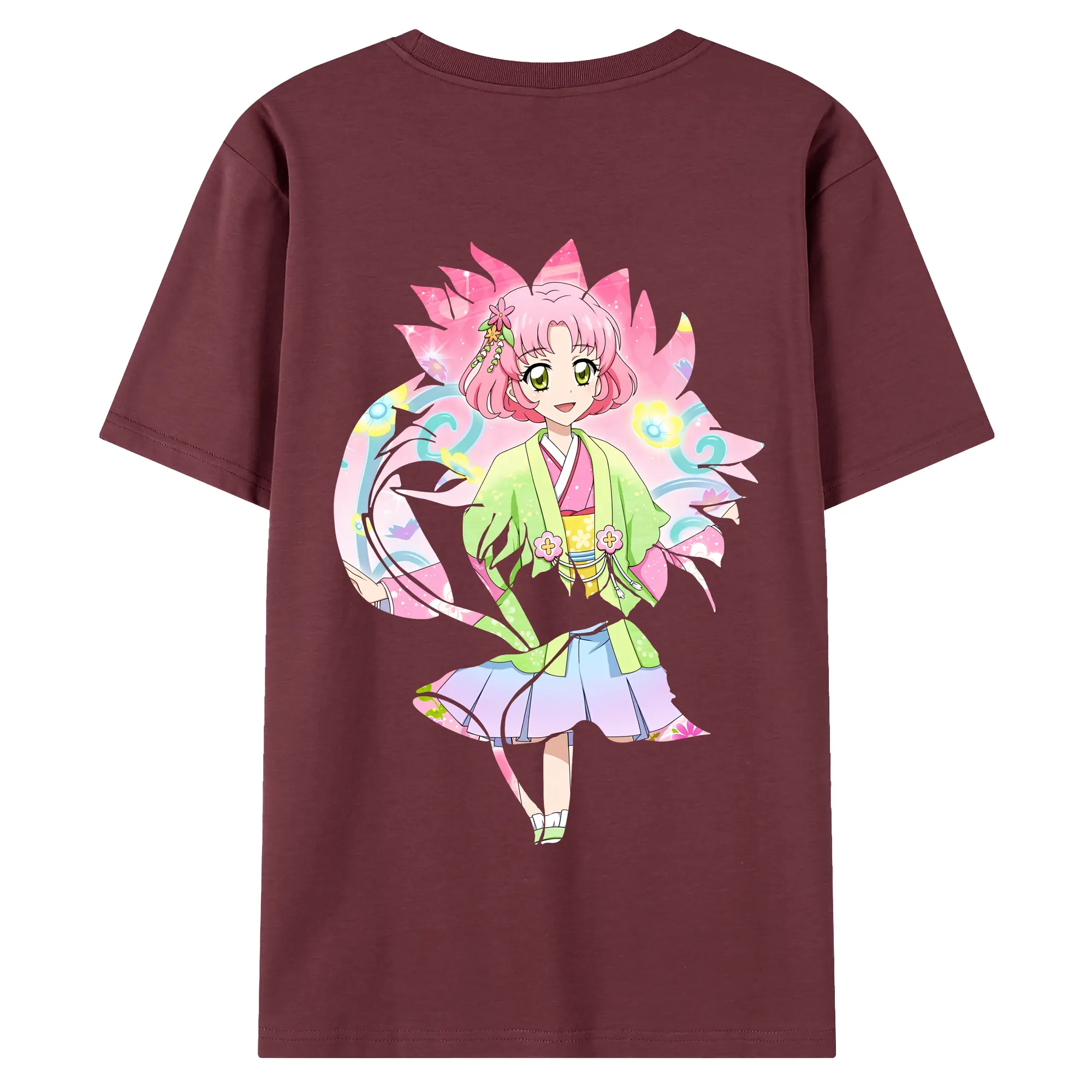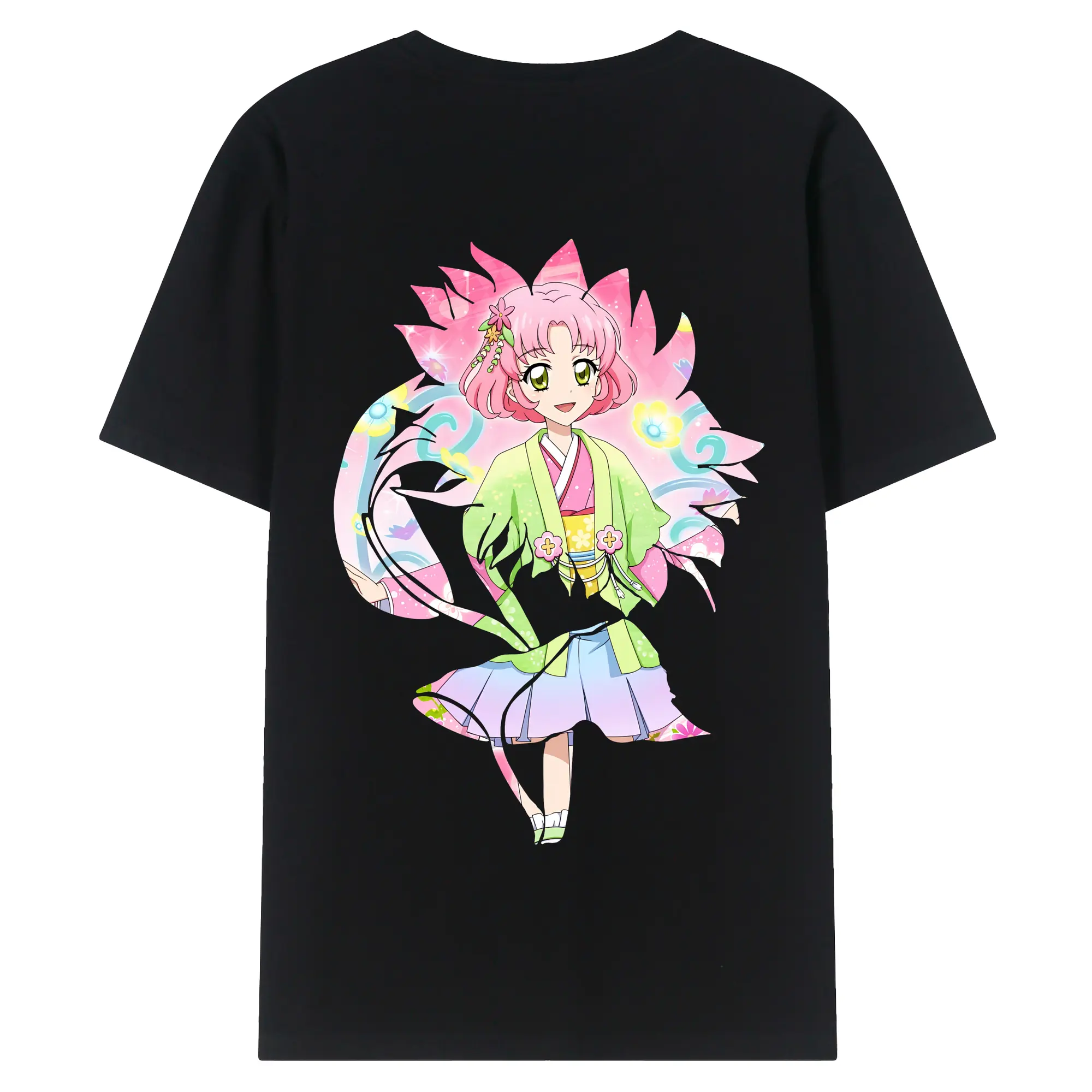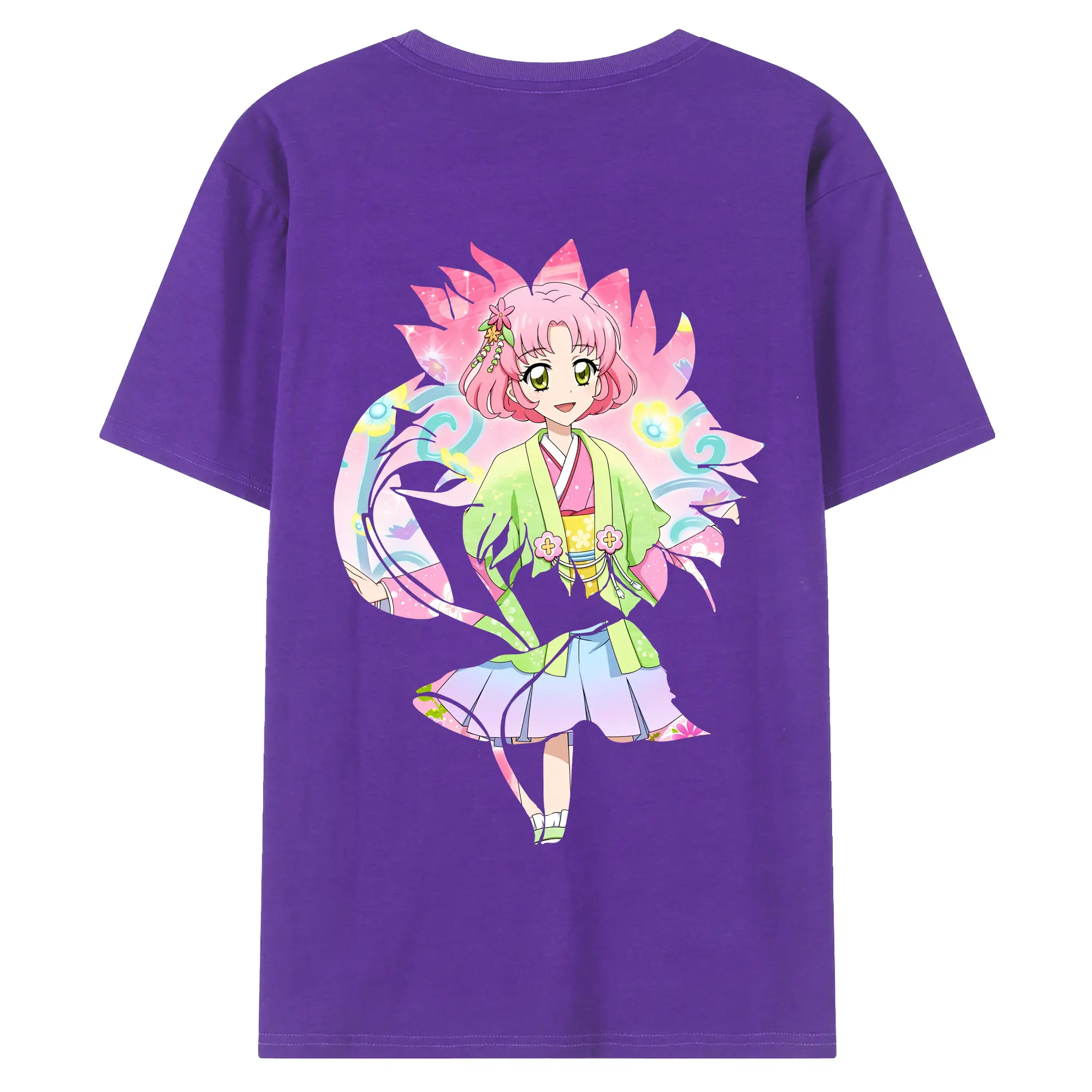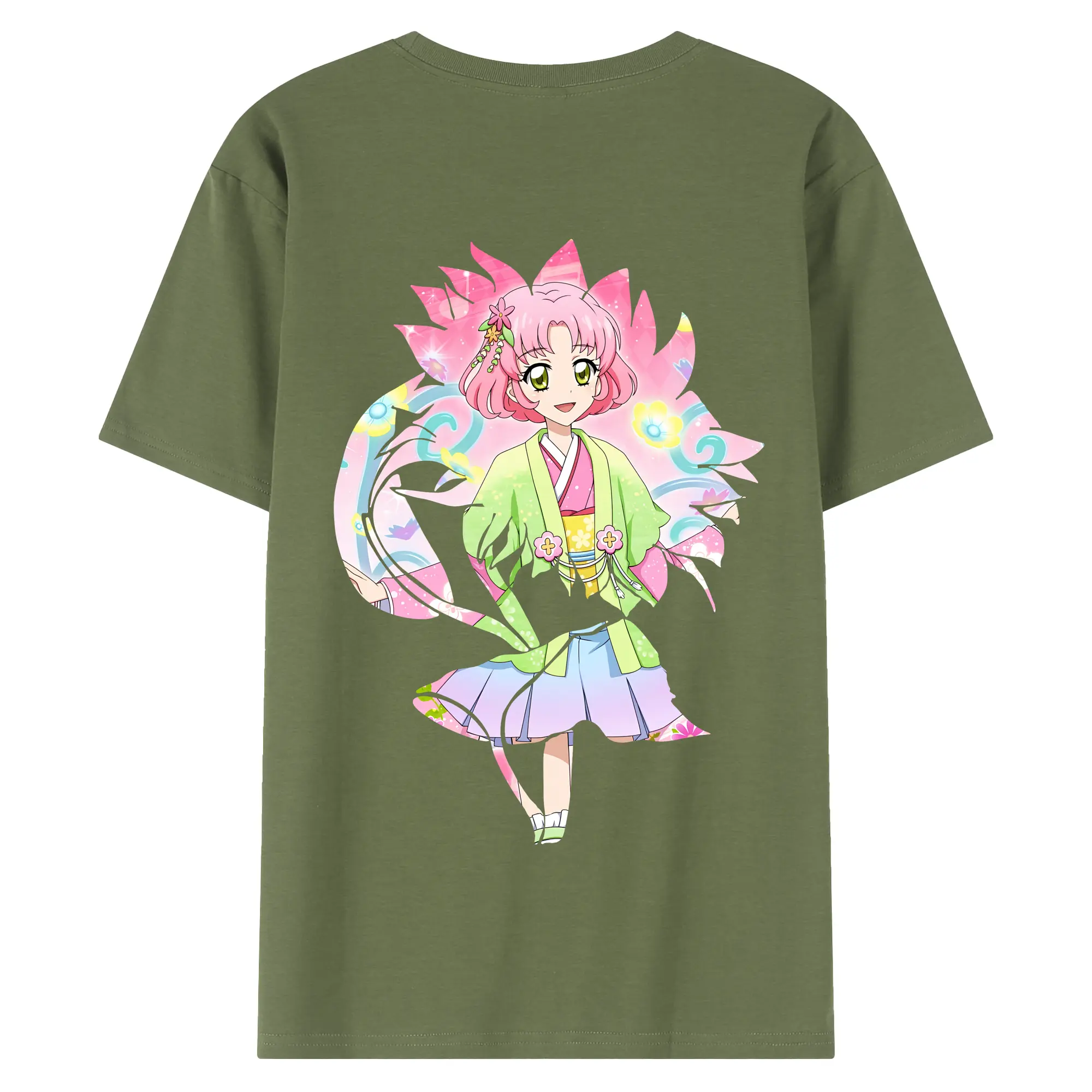 アイカツ グッズ 北大路 さくら - 綿100% ヴィンテージ風 半袖Tシャツ ・ 背面プリント ・ 柔らか肌触り ・ 通気性 快適 ・ スポーツ カジュアル 外出用