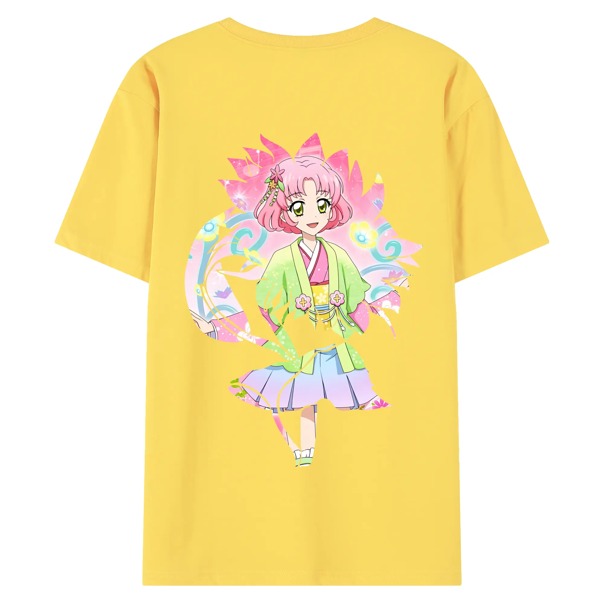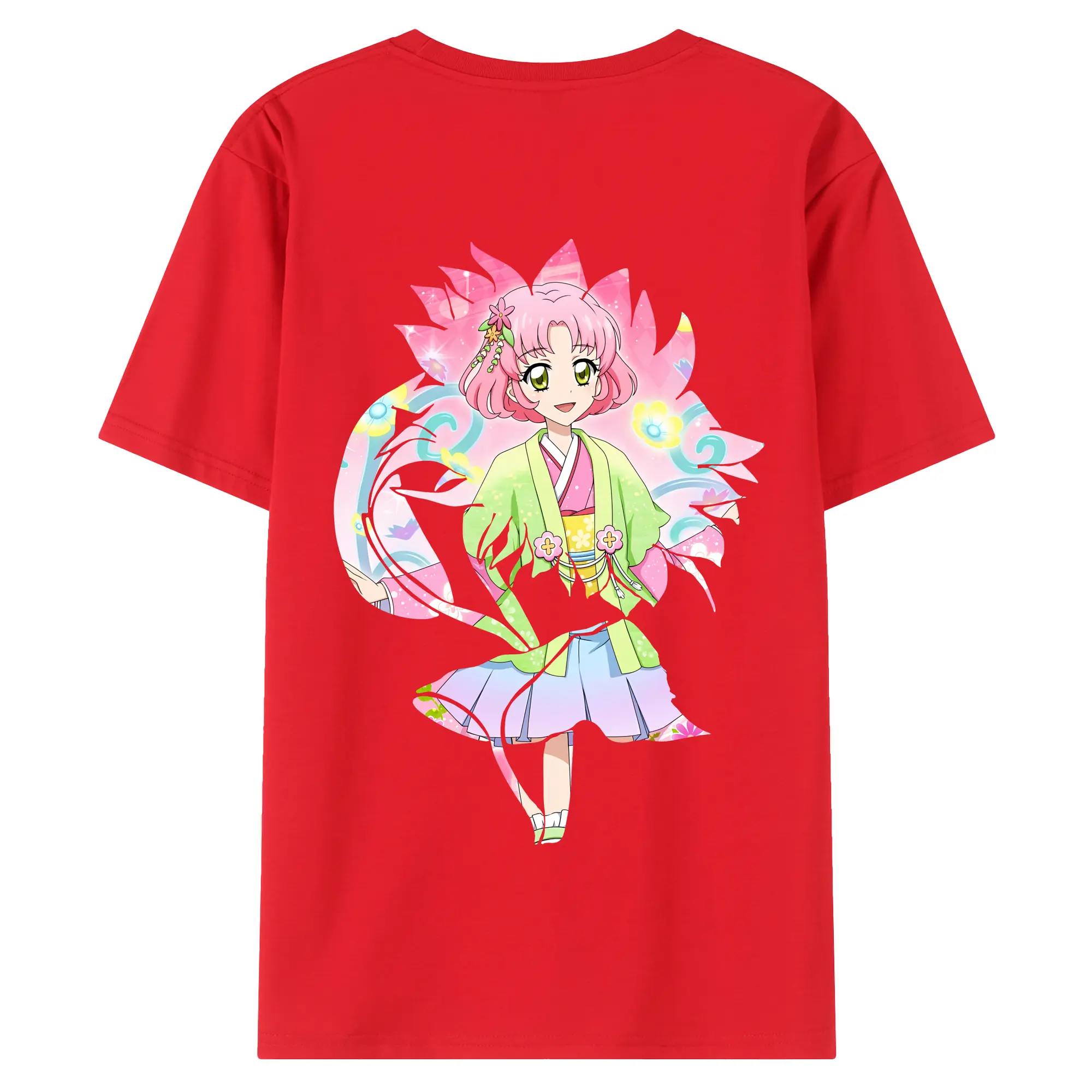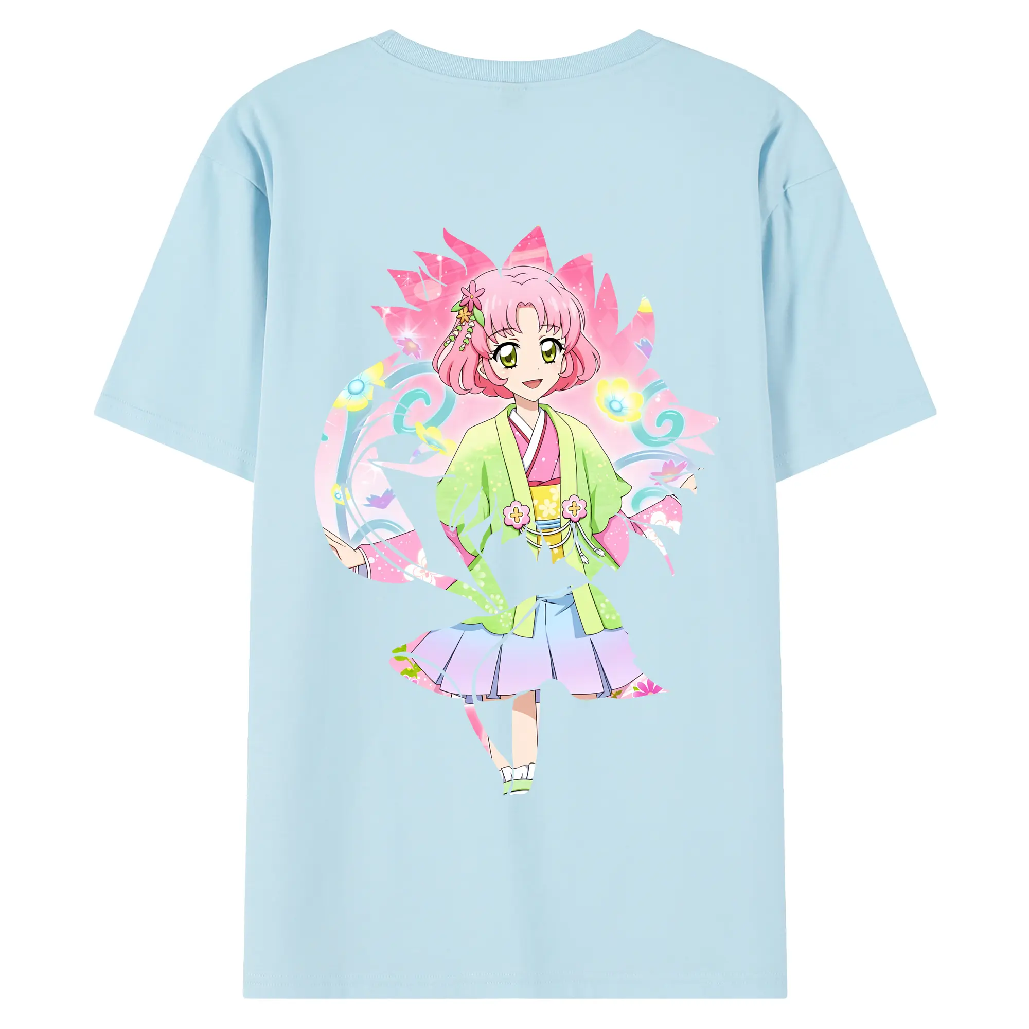 アイカツ グッズ 北大路 さくら - 綿100% 半袖Tシャツ ・ フロントプリント ・ 快適 通気性 ・ 日常使い 散歩 スポーツ用