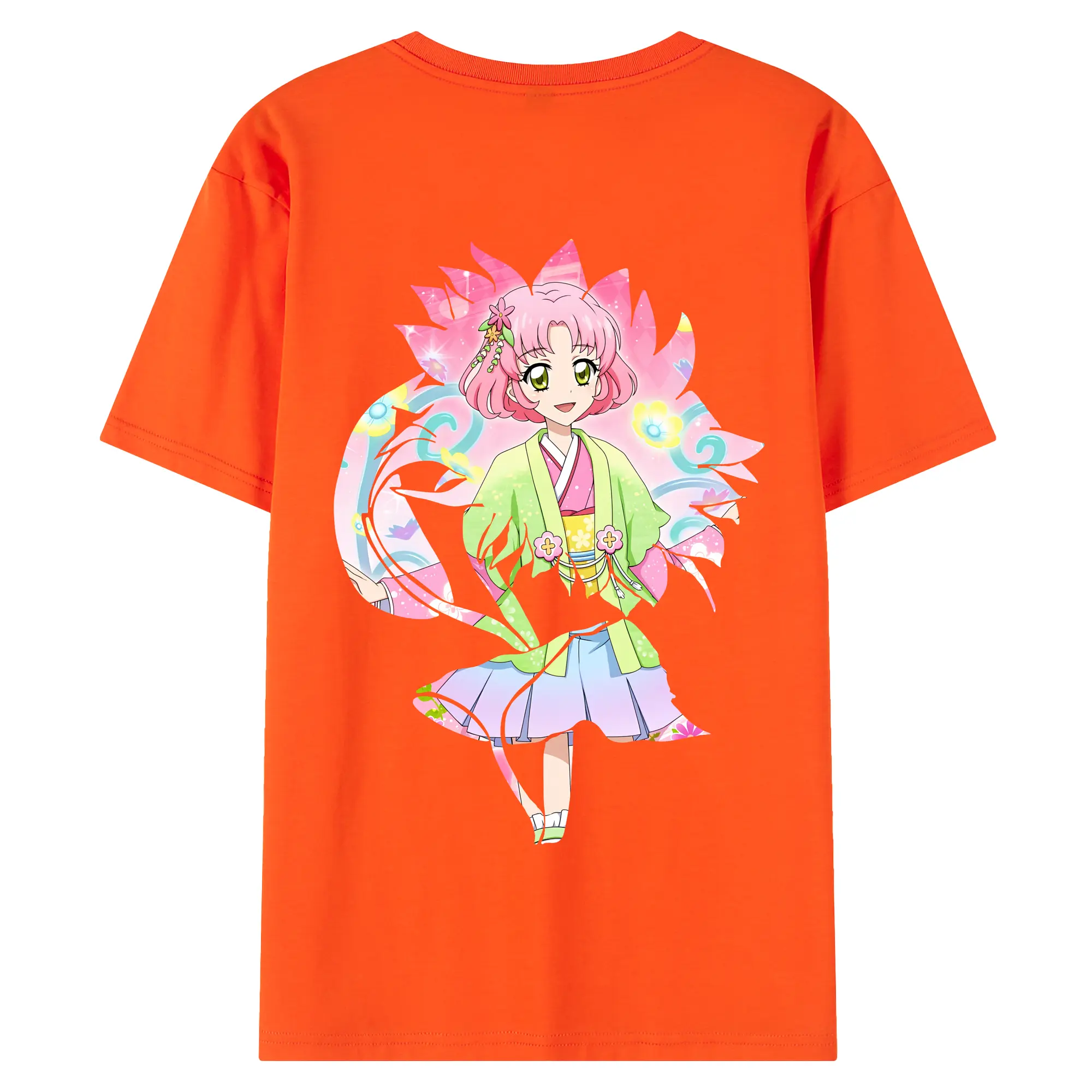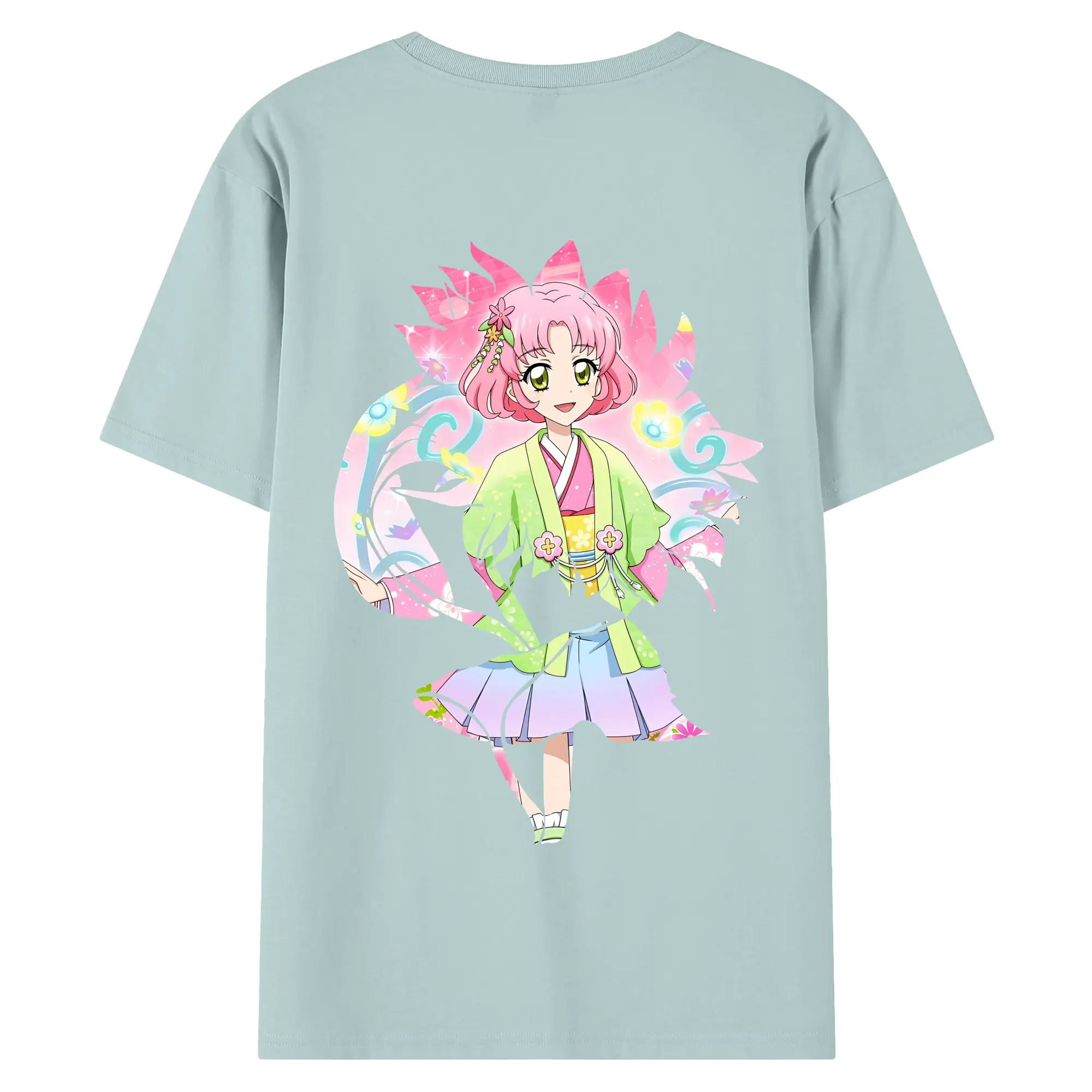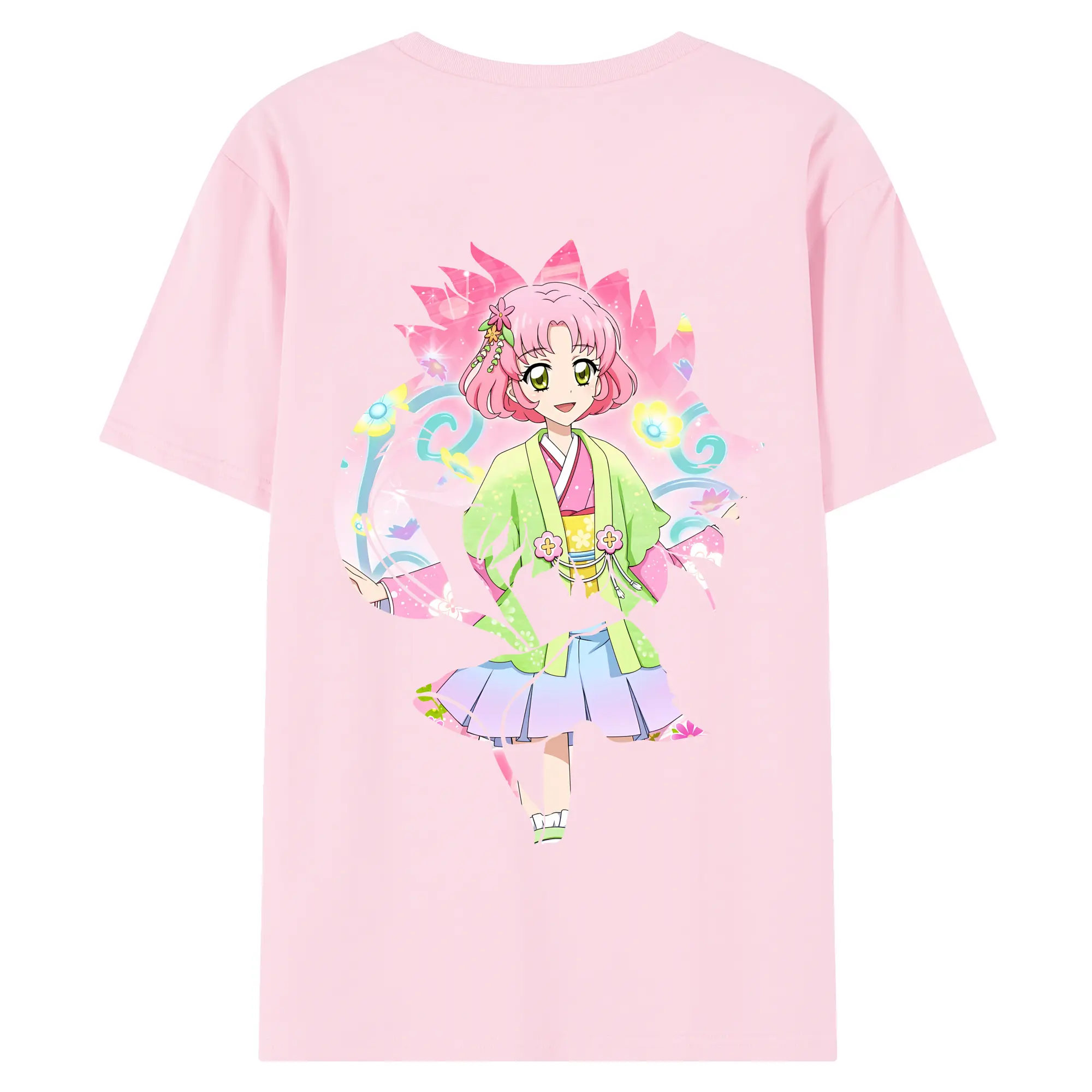 アイカツ グッズ 北大路 さくら - 綿100% 半袖Tシャツ ・ フロントプリント ・ 快適 通気性 ・ 日常使い 散歩 スポーツ用