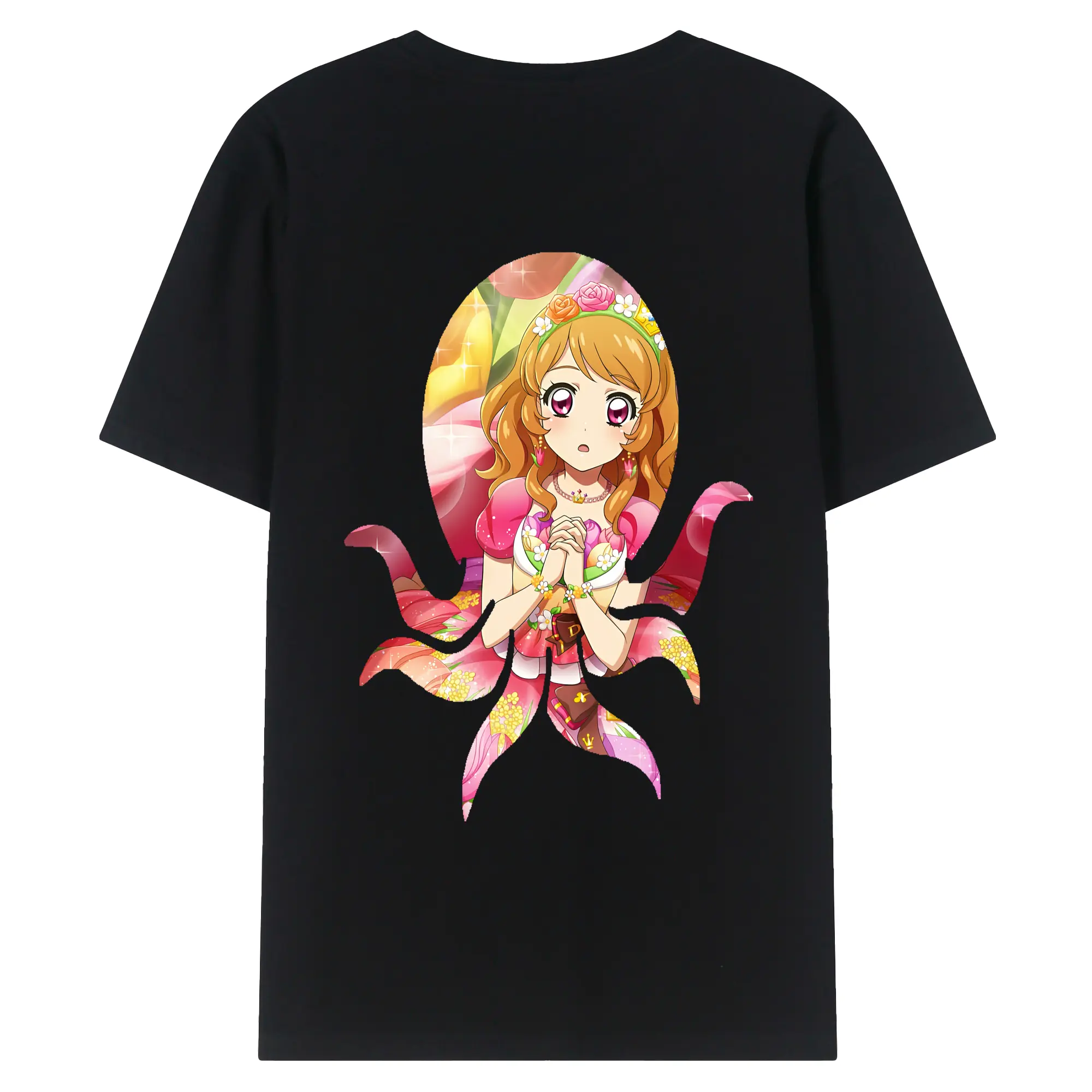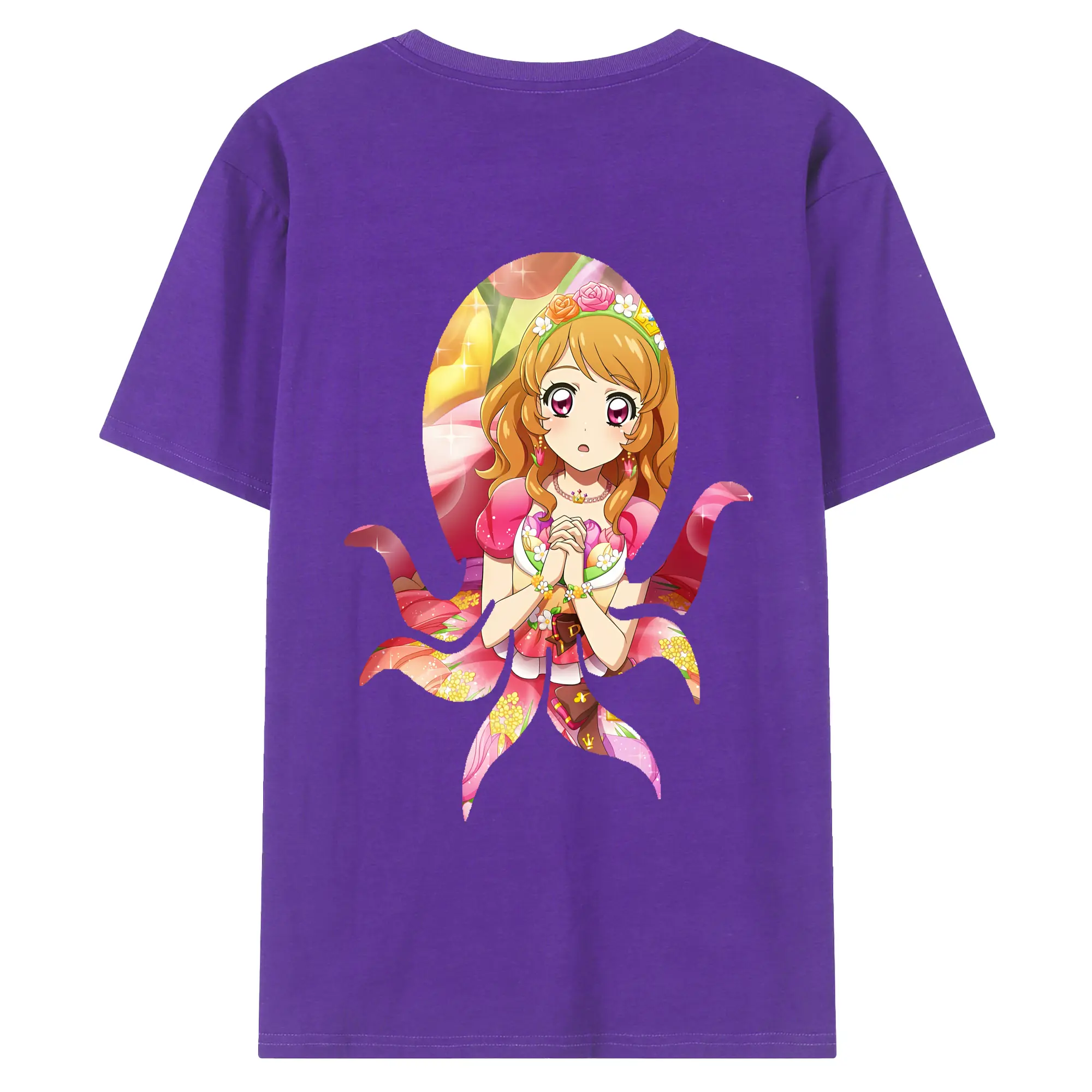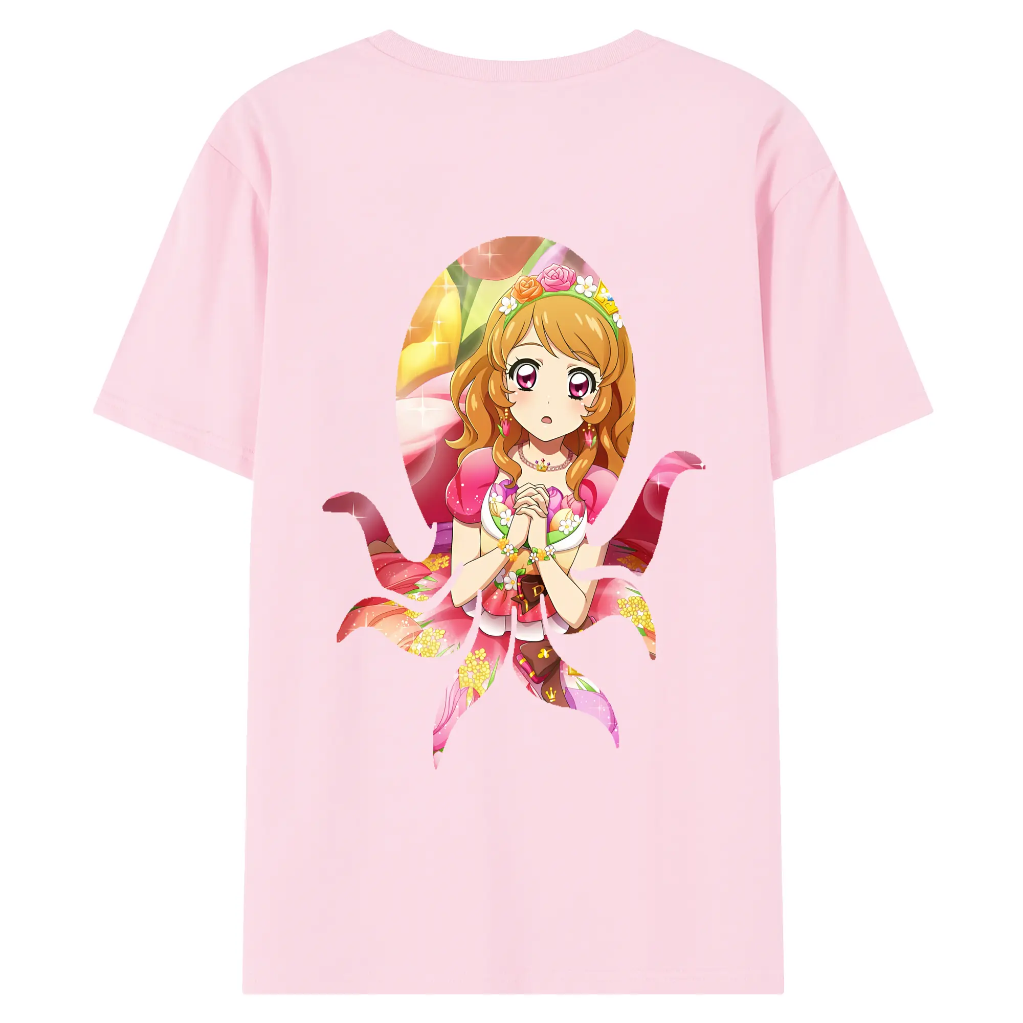 アイカツ グッズ 北大路 さくら - 綿100% ヴィンテージ風 半袖Tシャツ ・ 背面プリント ・ 柔らか肌触り ・ 通気性 快適 ・ スポーツ カジュアル 外出用