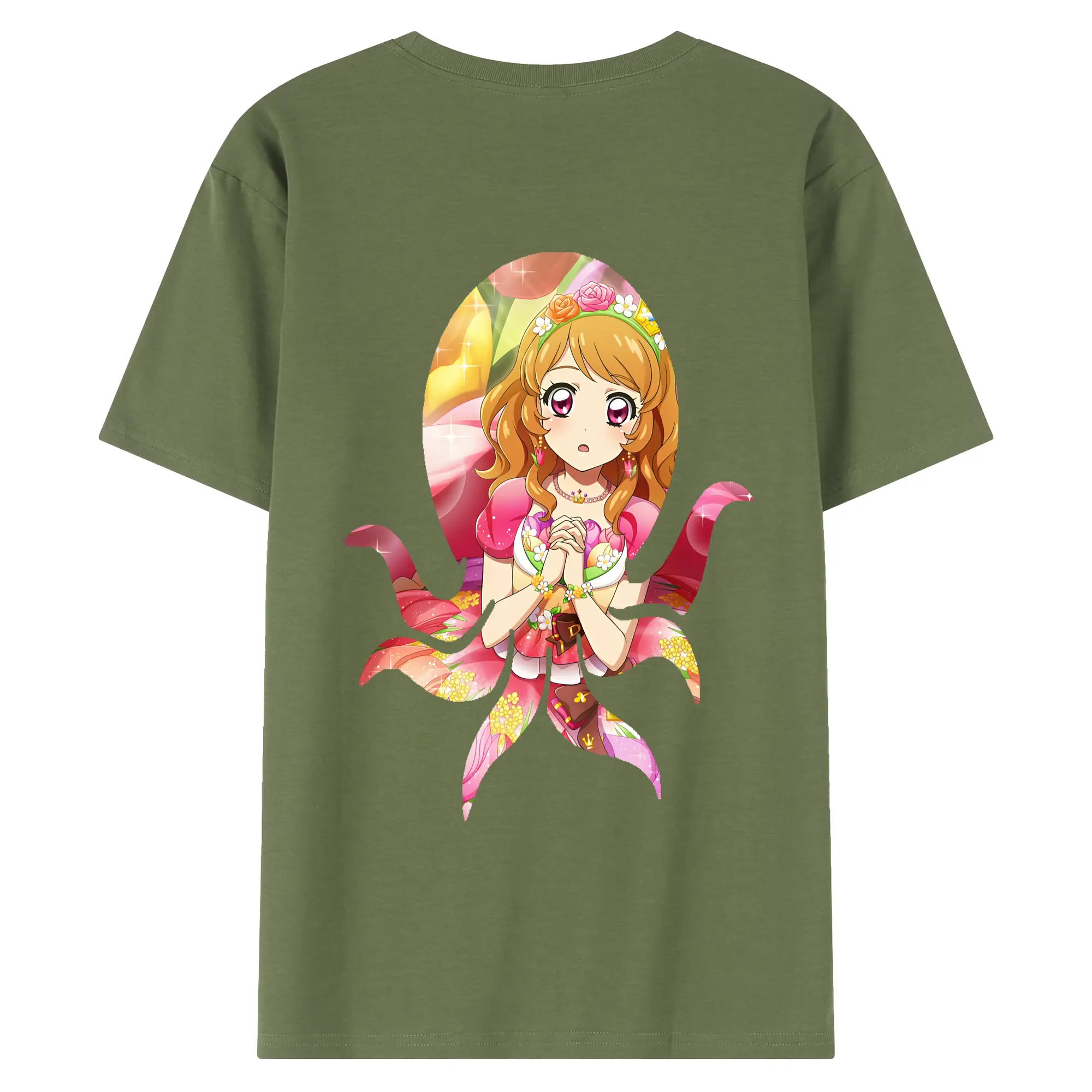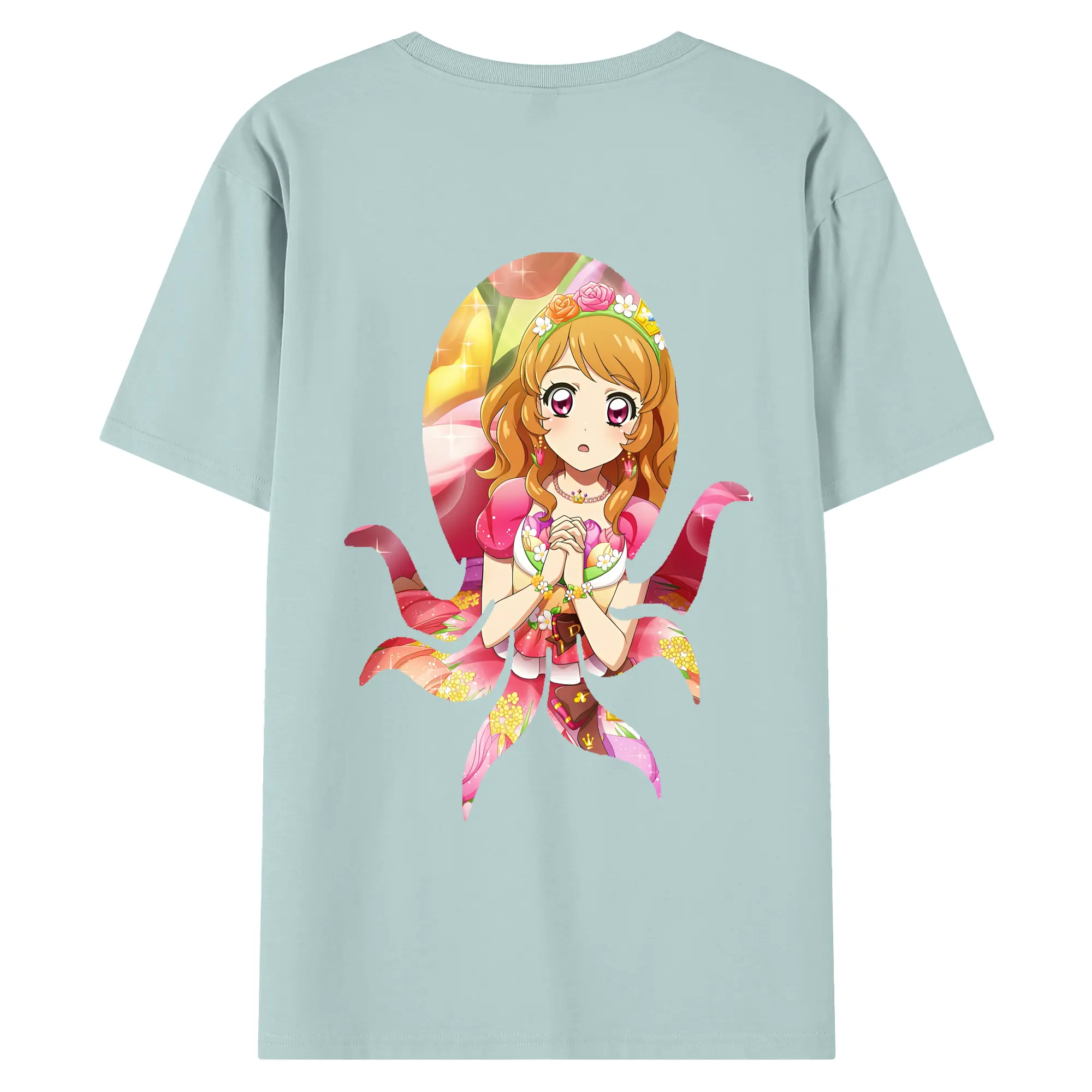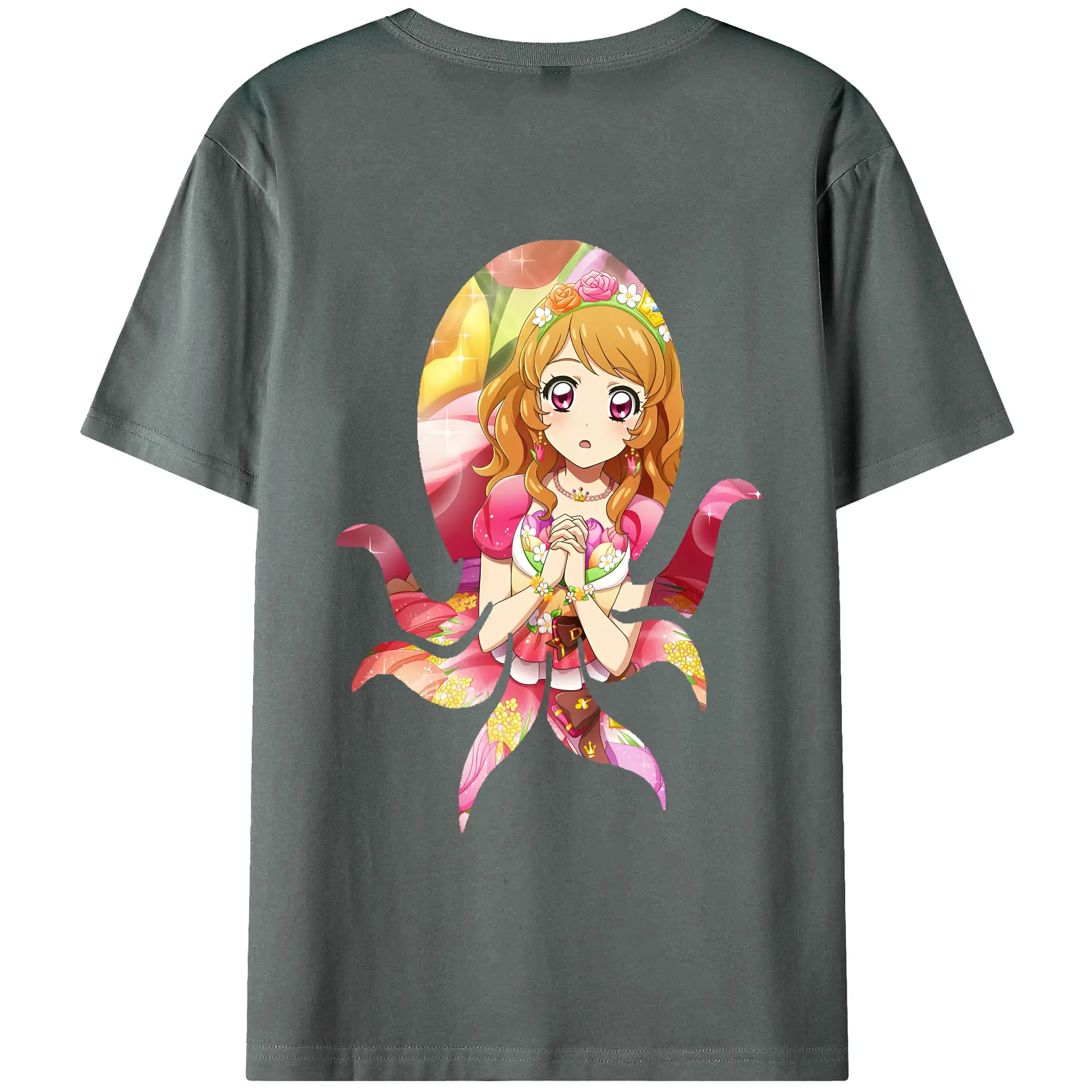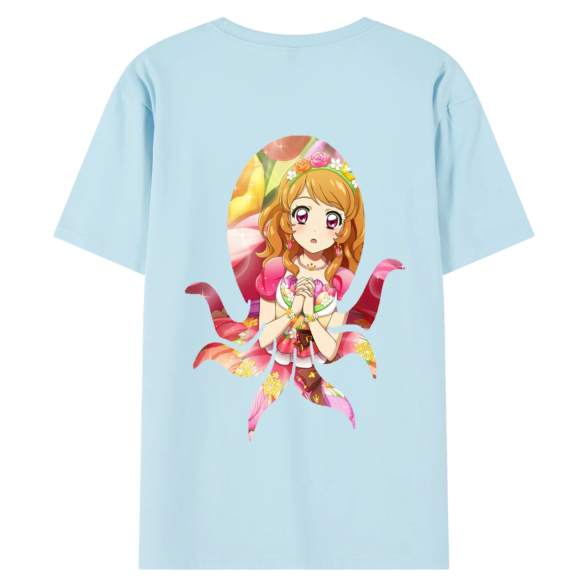アイカツ グッズ 北大路 さくら - 綿100% ヴィンテージ風 半袖Tシャツ ・ 背面プリント ・ 柔らか肌触り ・ 通気性 快適 ・ スポーツ カジュアル 外出用