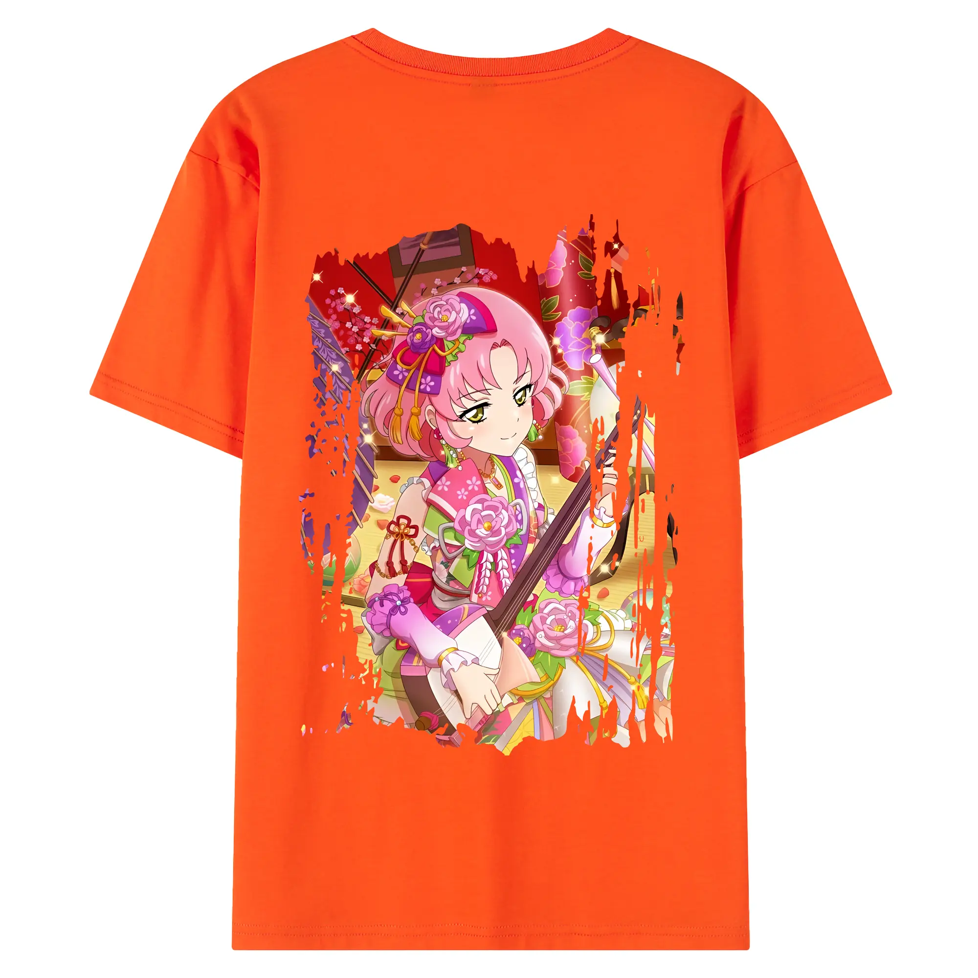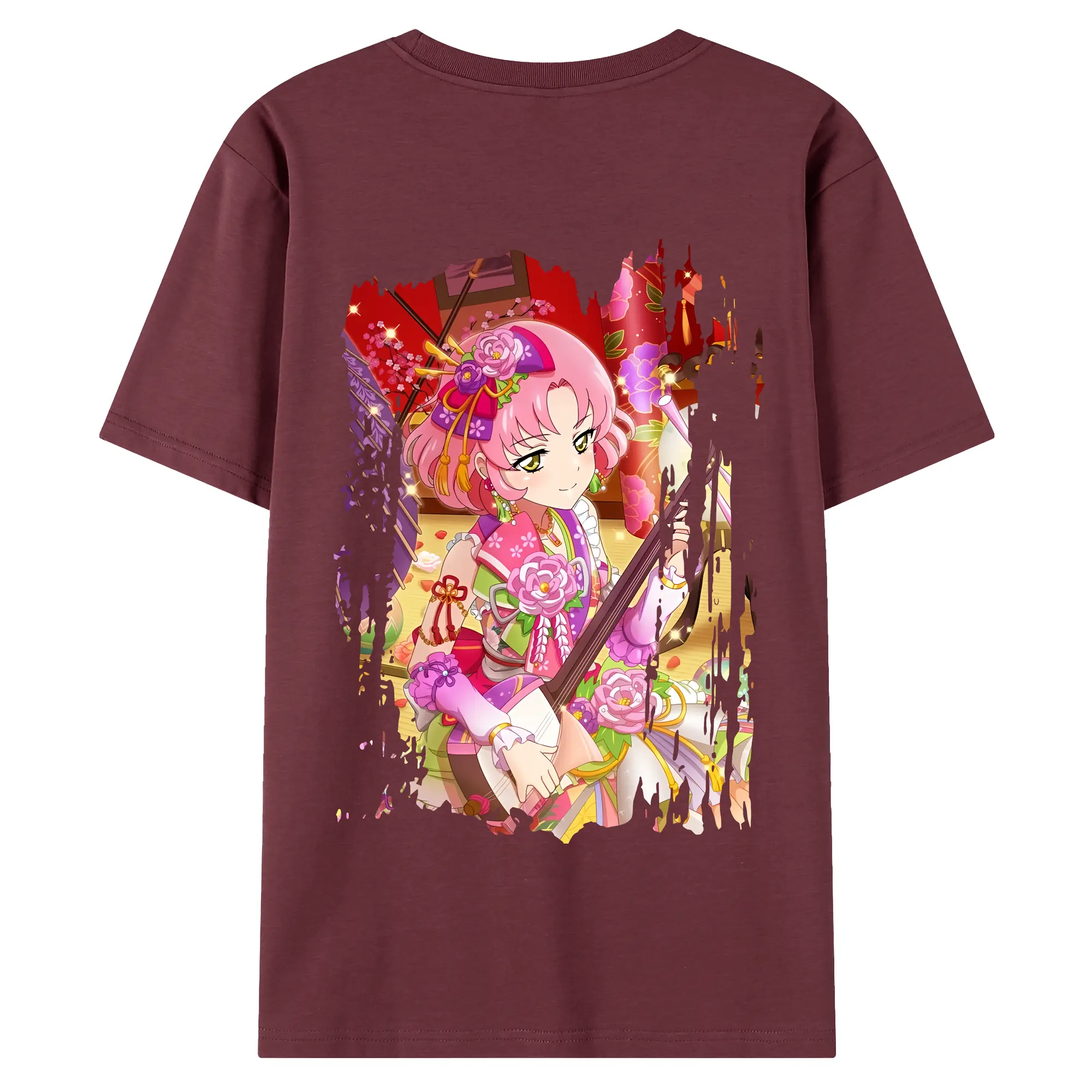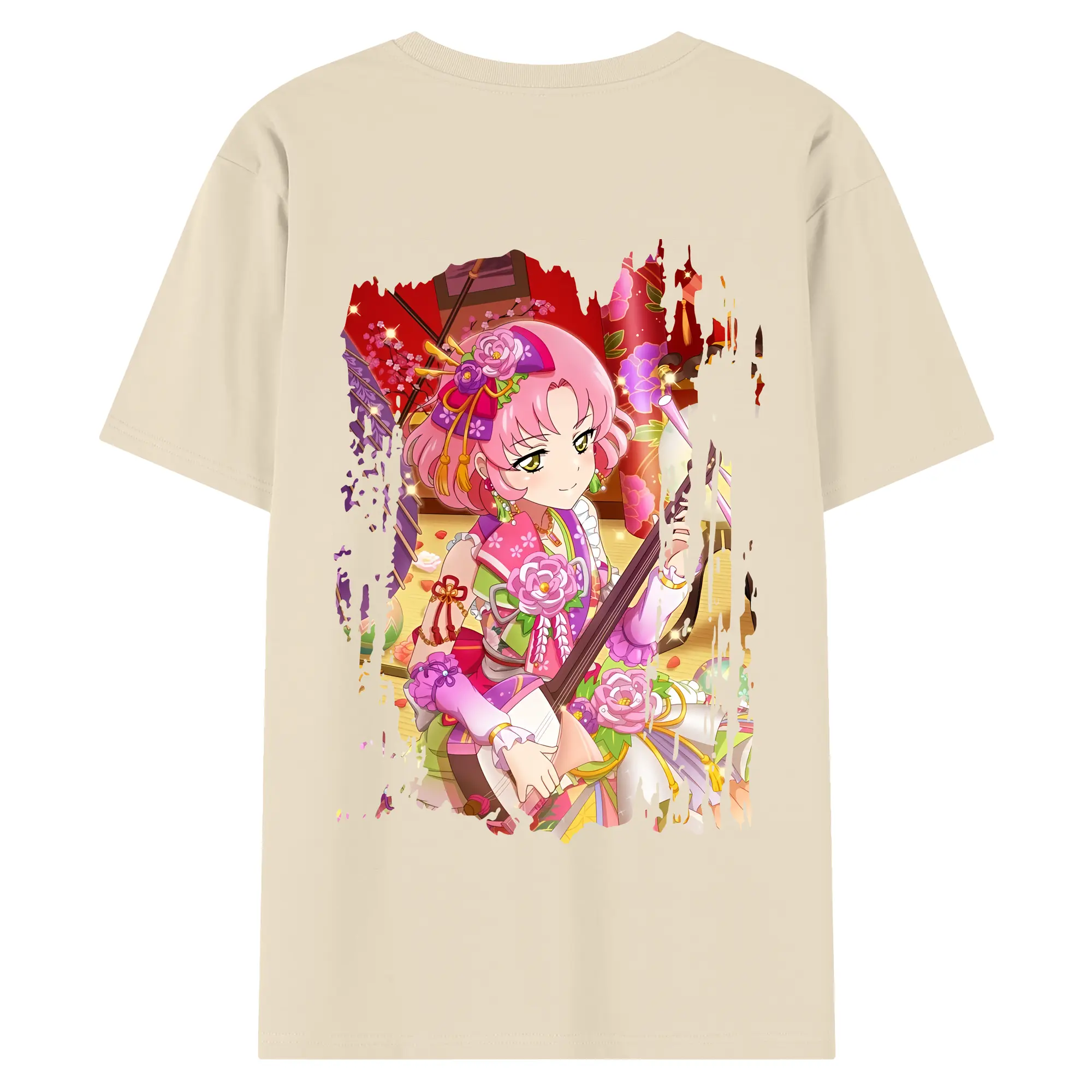 アイカツ グッズ 北大路 さくら - 綿100% ヴィンテージ風 半袖Tシャツ ・ 背面プリント ・ 柔らか肌触り ・ 通気性 快適 ・ スポーツ カジュアル 外出用