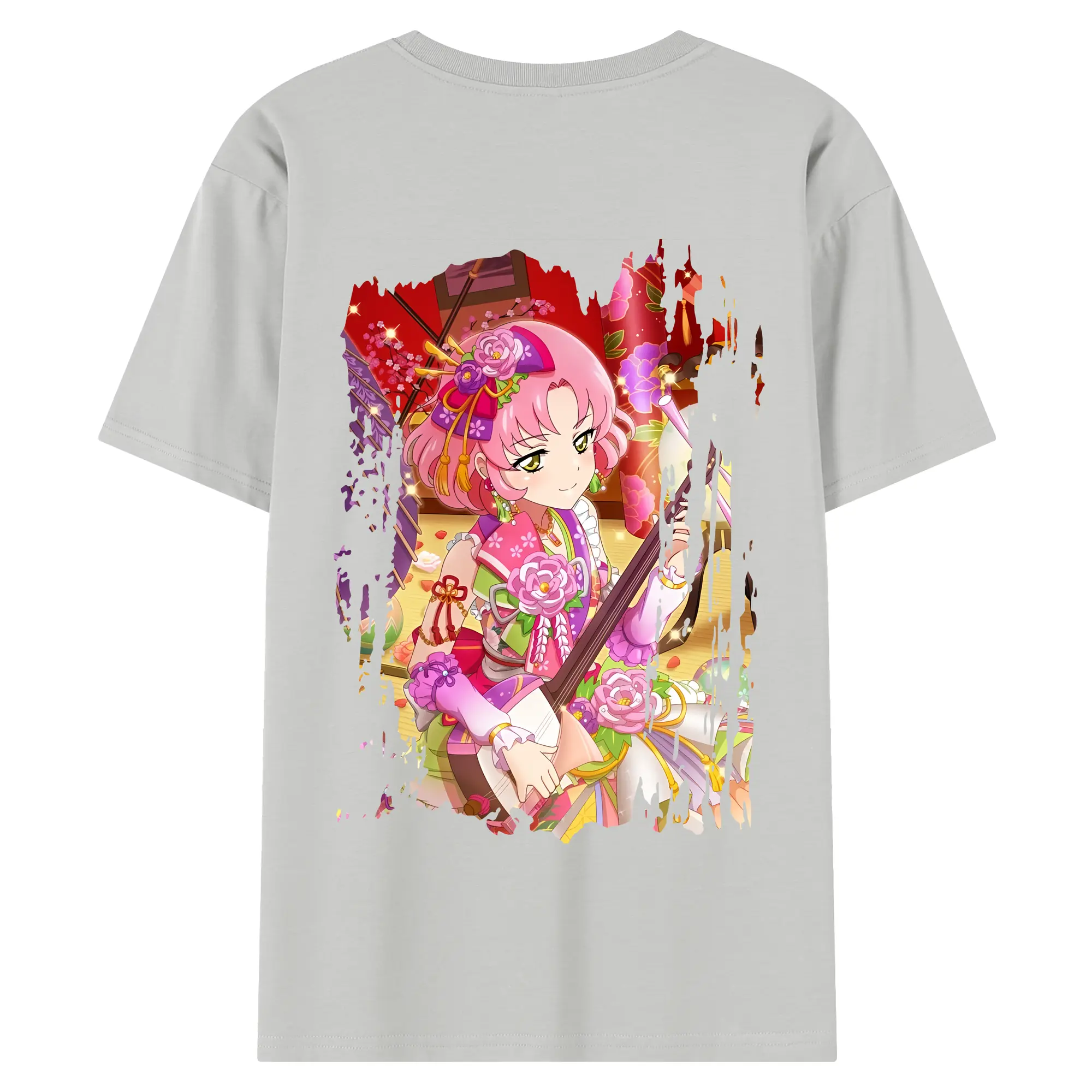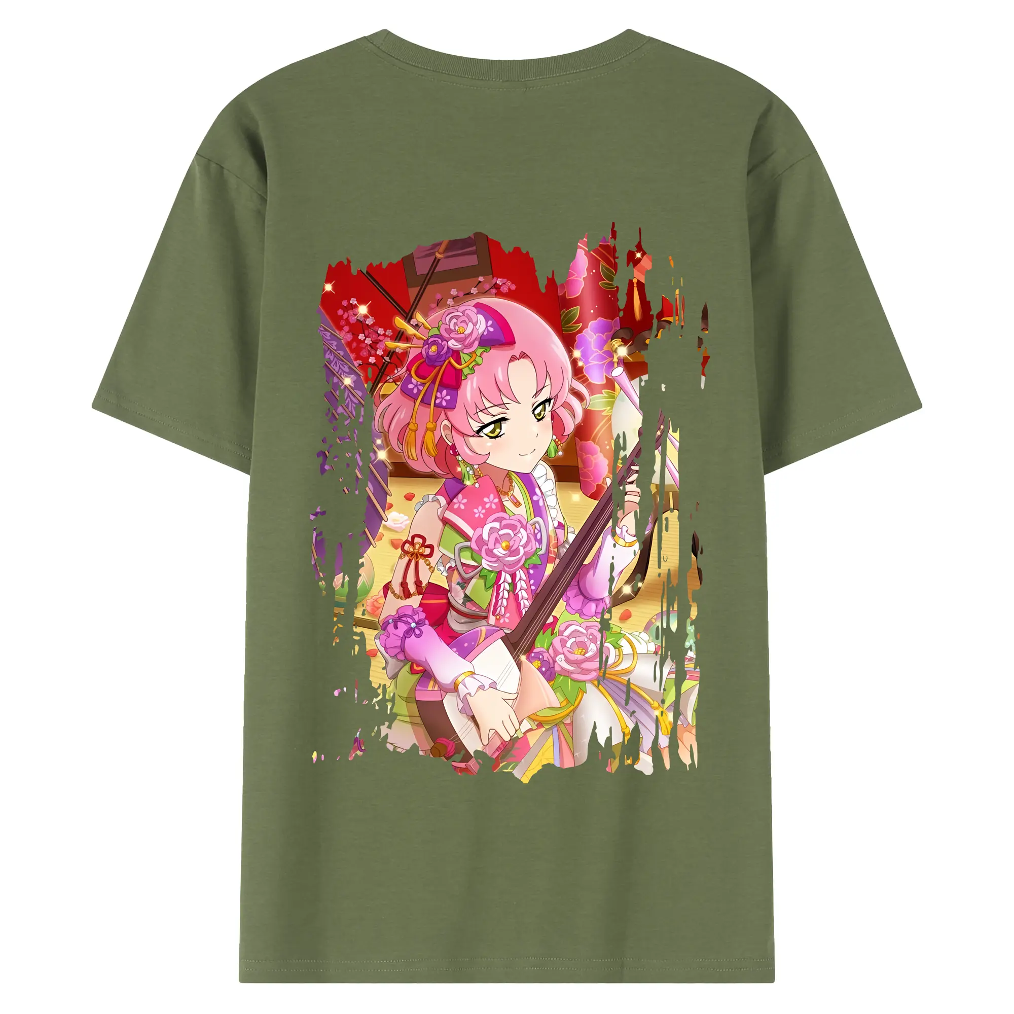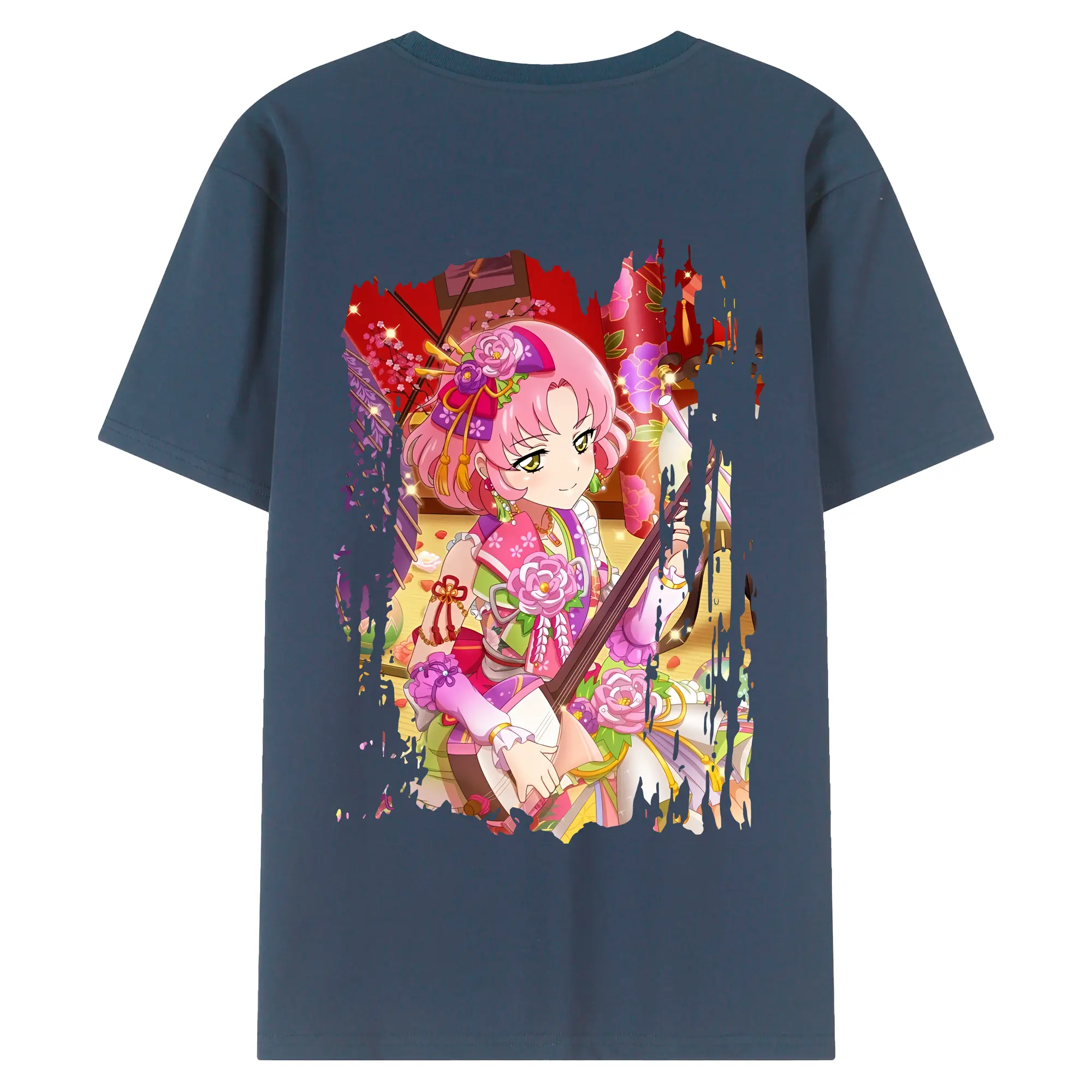 アイカツ グッズ 北大路 さくら - 綿100% ヴィンテージ風 半袖Tシャツ ・ 背面プリント ・ 柔らか肌触り ・ 通気性 快適 ・ スポーツ カジュアル 外出用