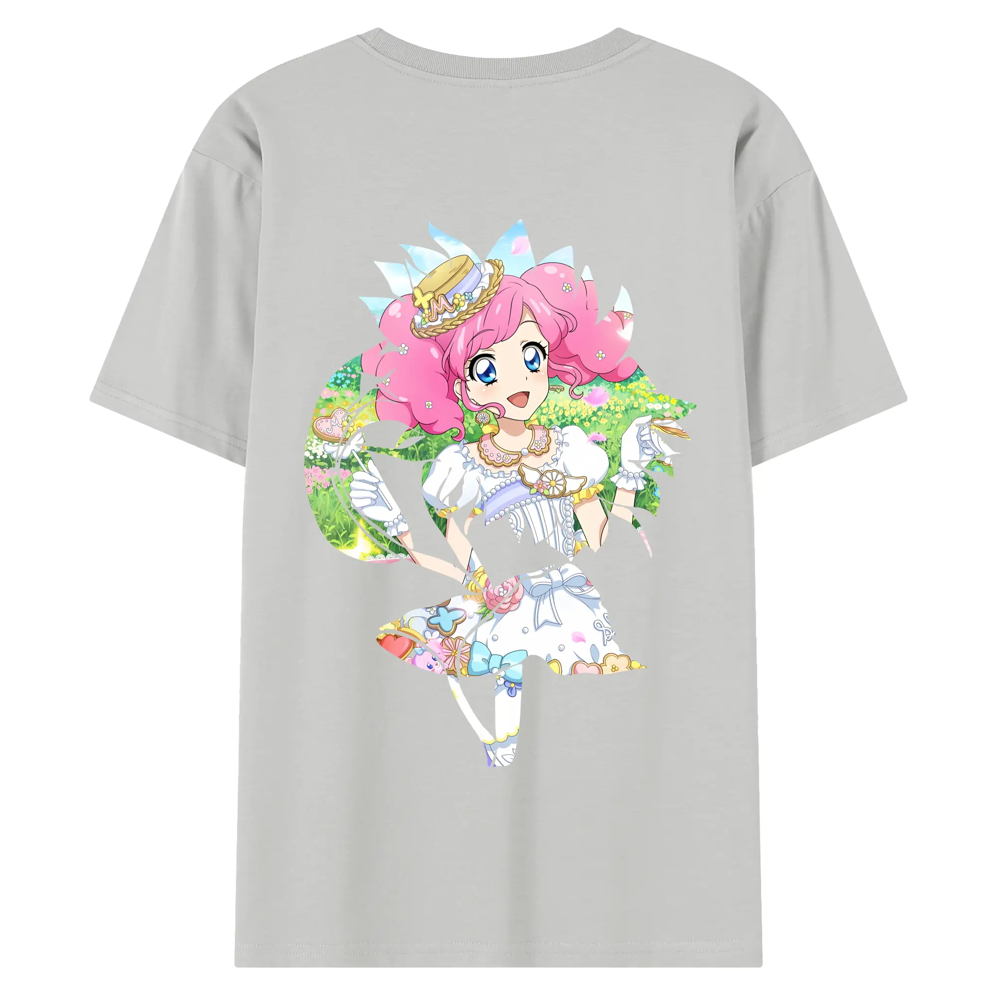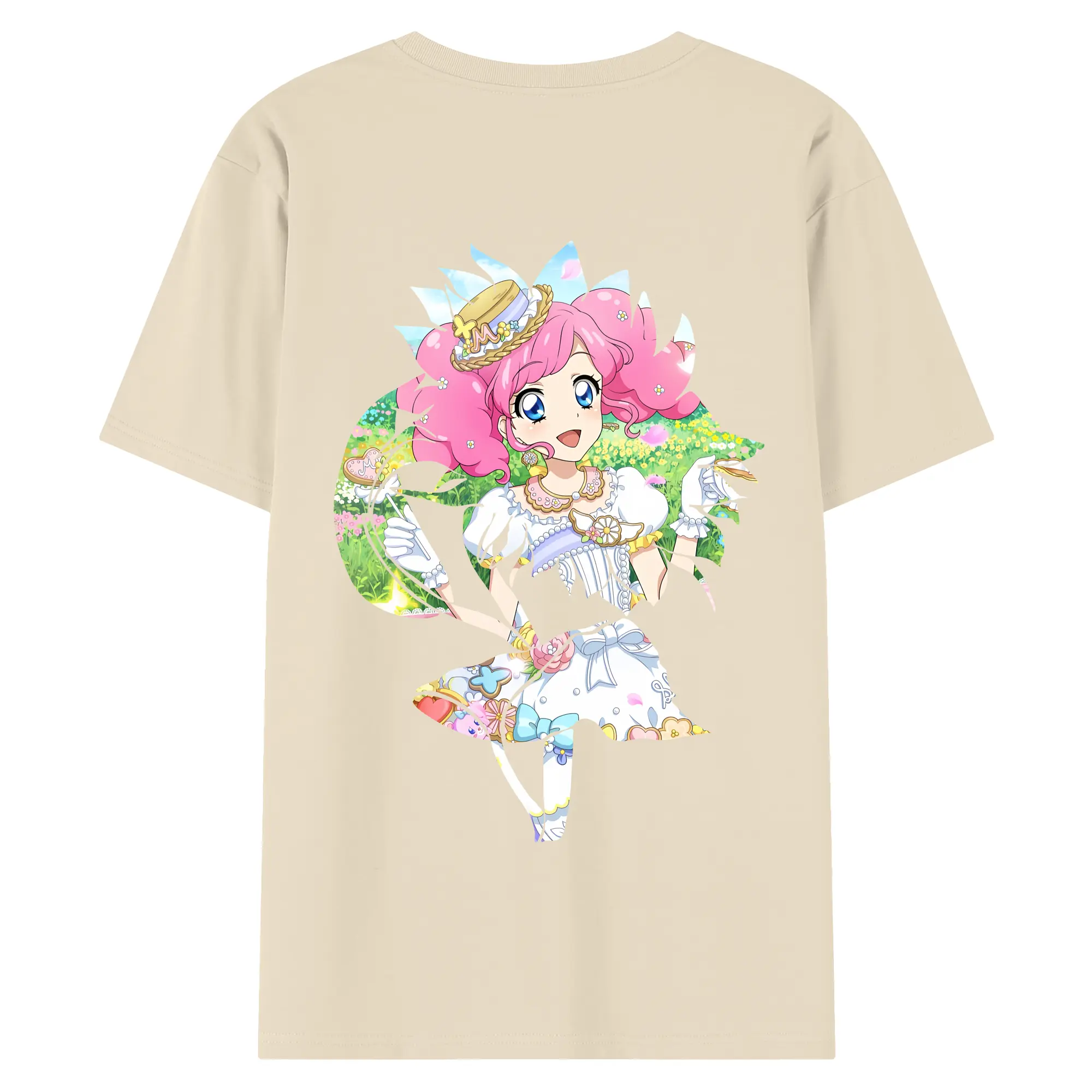 アイカツ グッズ 北大路 さくら - 綿100% ヴィンテージ風 半袖Tシャツ ・ 背面プリント ・ 柔らか肌触り ・ 通気性 快適 ・ スポーツ カジュアル 外出用
