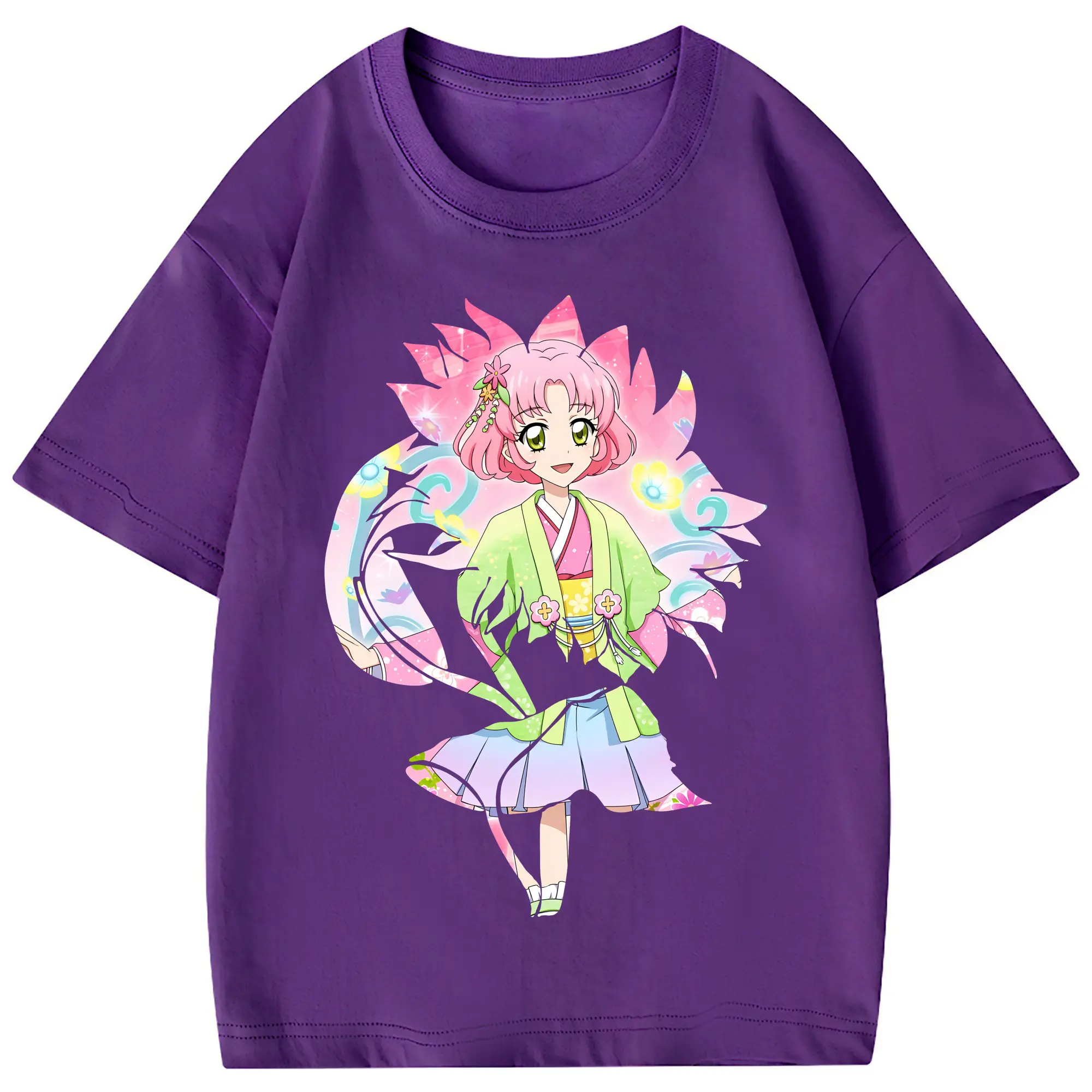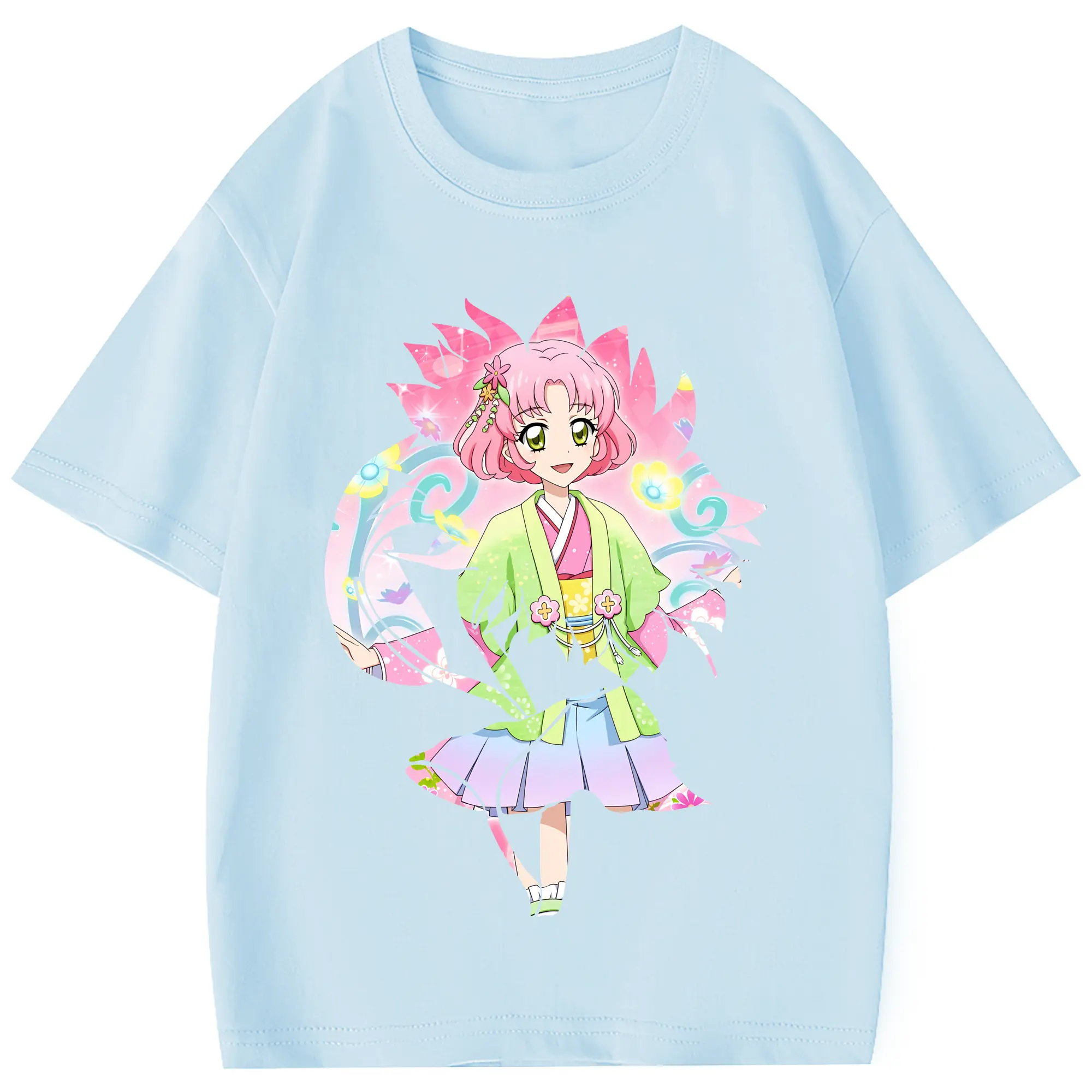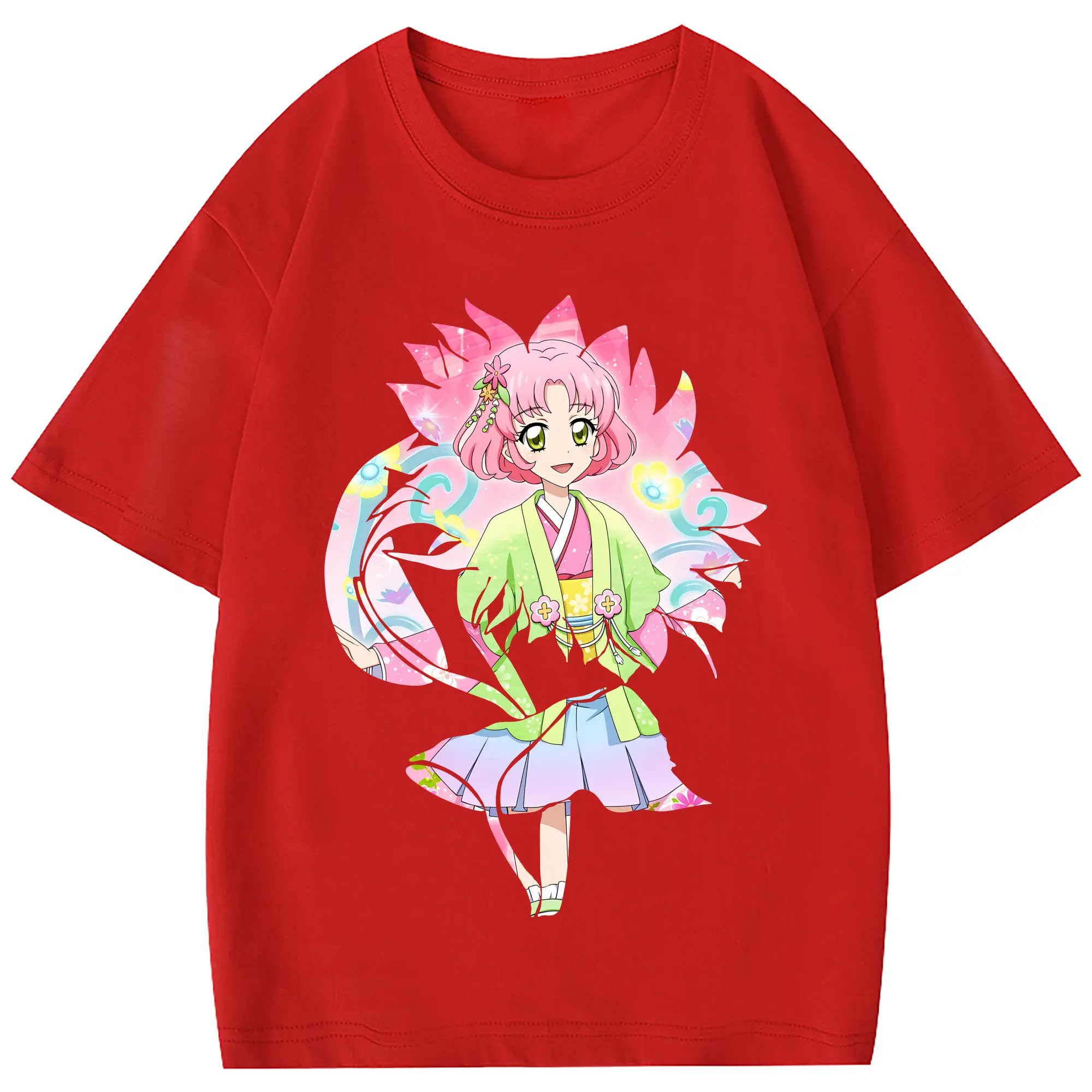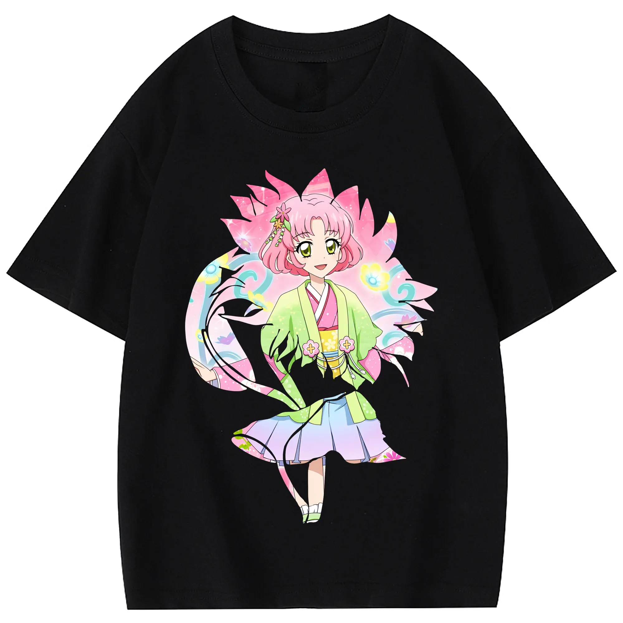 アイカツ グッズ 北大路 さくら - 綿100% 半袖Tシャツ ・ フロントプリント ・ 快適 通気性 ・ 日常使い 散歩 スポーツ用