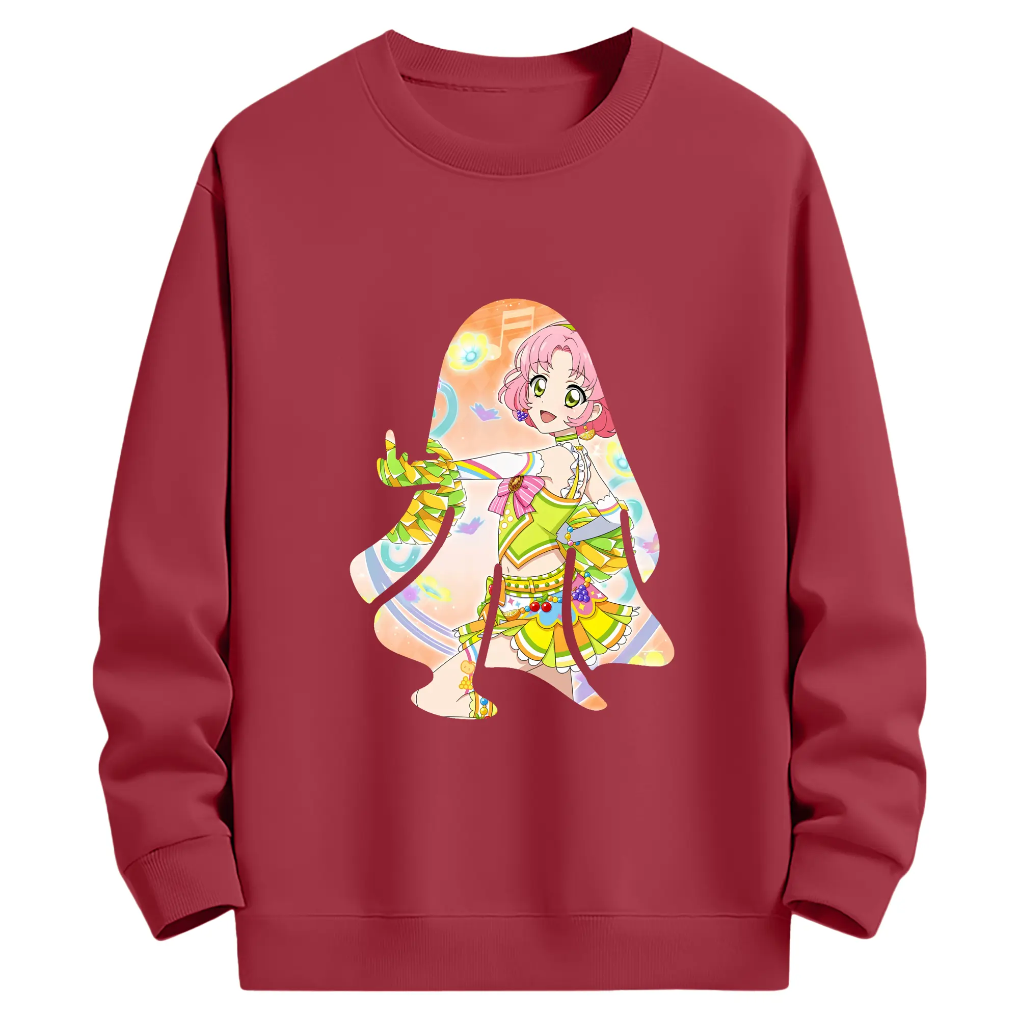 アイカツ グッズ 北大路 さくら - 薄手 クルーネック スウェット 裏毛260g · ポリエステル 春秋向け カジュアル 男女兼用 · トレーナー デイリー スポーツ 散歩に最適