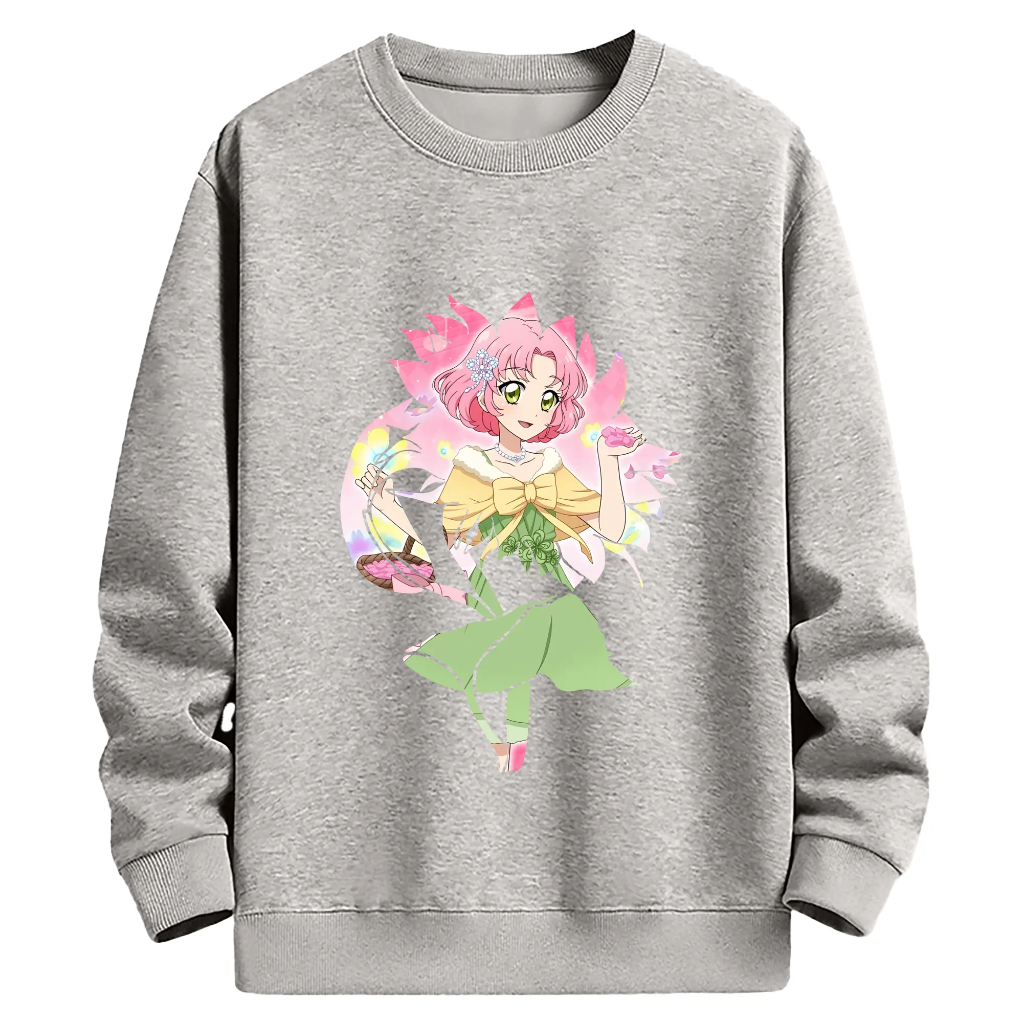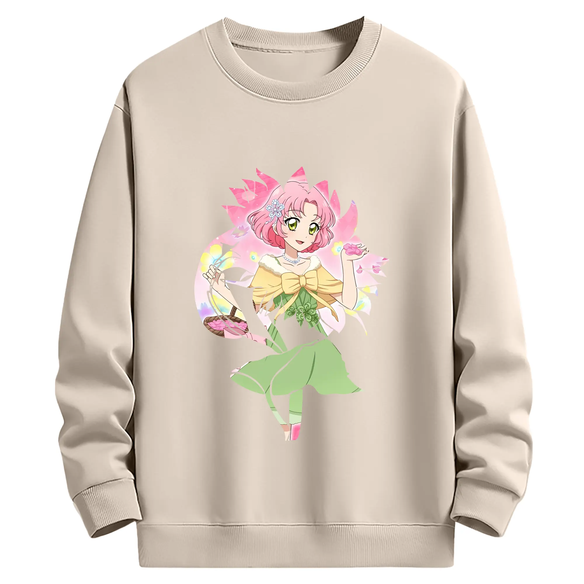 アイカツ グッズ 北大路 さくら - 薄手 クルーネック スウェット 裏毛260g · ポリエステル 春秋向け カジュアル 男女兼用 · トレーナー デイリー スポーツ 散歩に最適