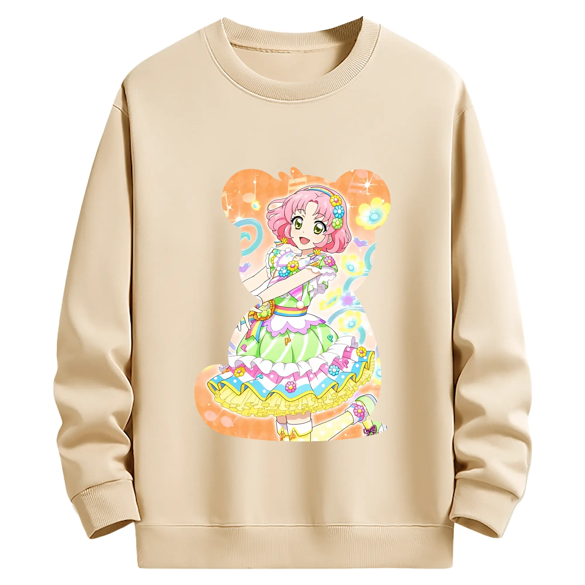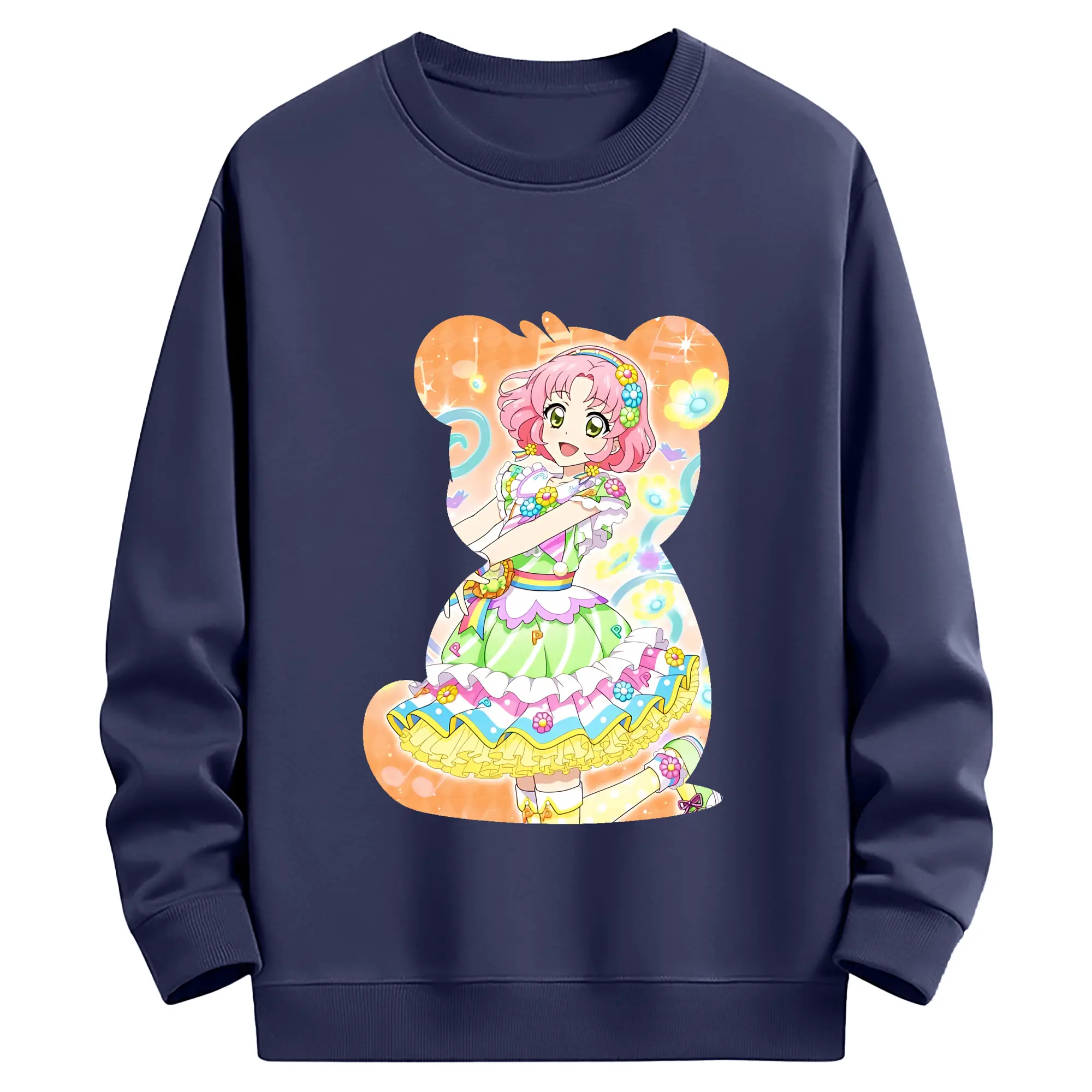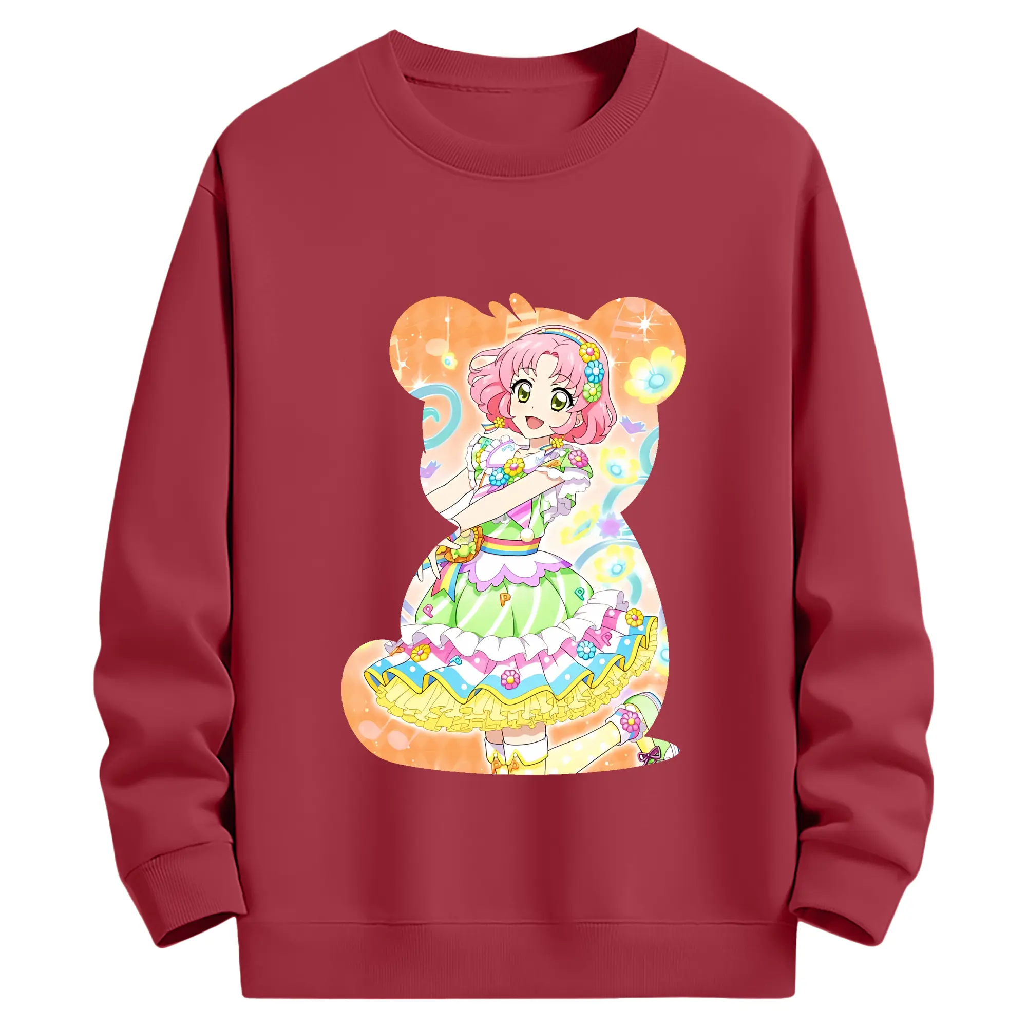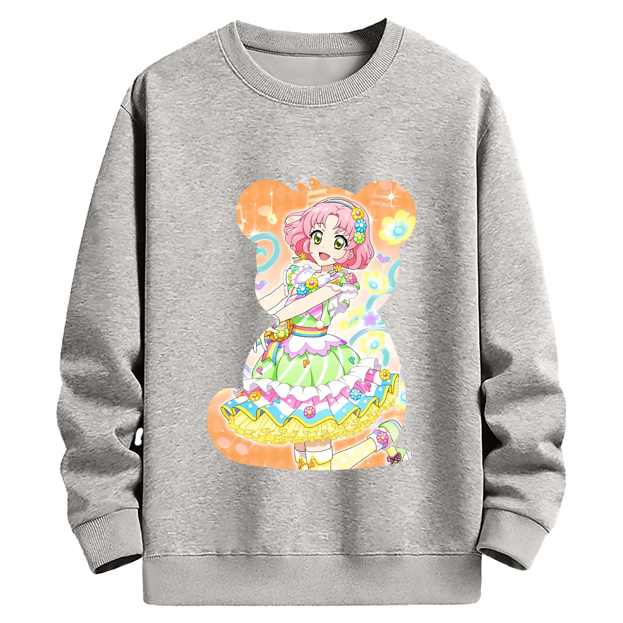 アイカツ グッズ 北大路 さくら - 薄手 クルーネック スウェット 裏毛260g · ポリエステル 春秋向け カジュアル 男女兼用 · トレーナー デイリー スポーツ 散歩に最適