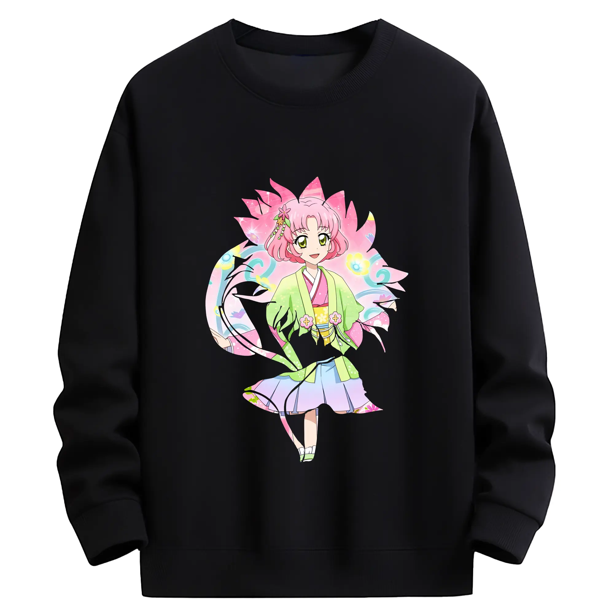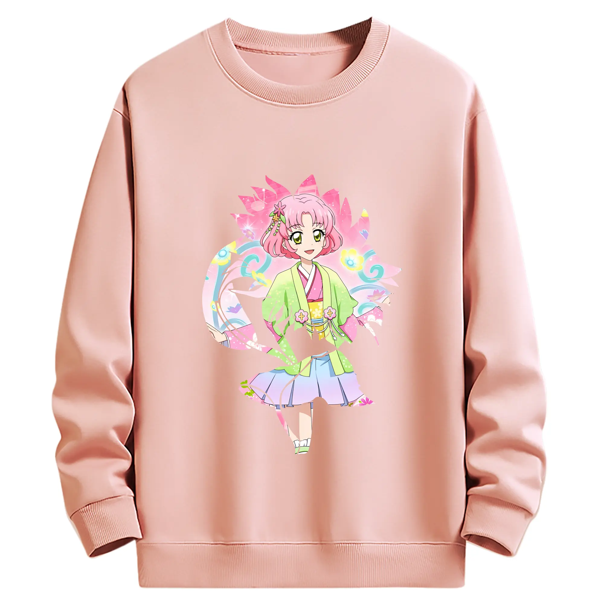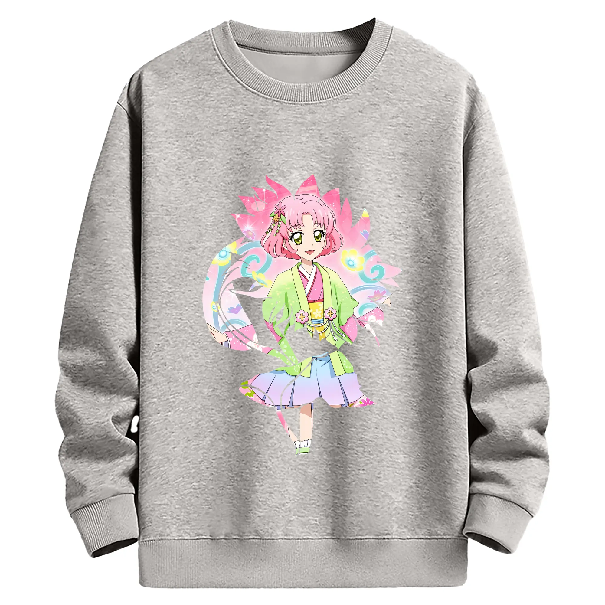 アイカツ グッズ 北大路 さくら - 薄手 クルーネック スウェット 裏毛260g · ポリエステル 春秋向け カジュアル 男女兼用 · トレーナー デイリー スポーツ 散歩に最適