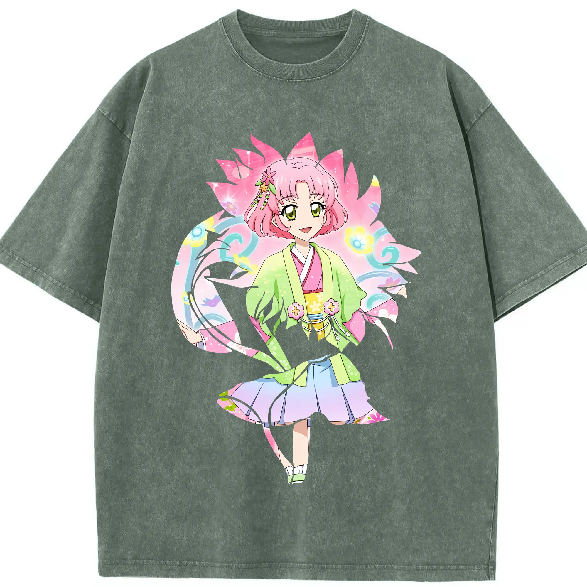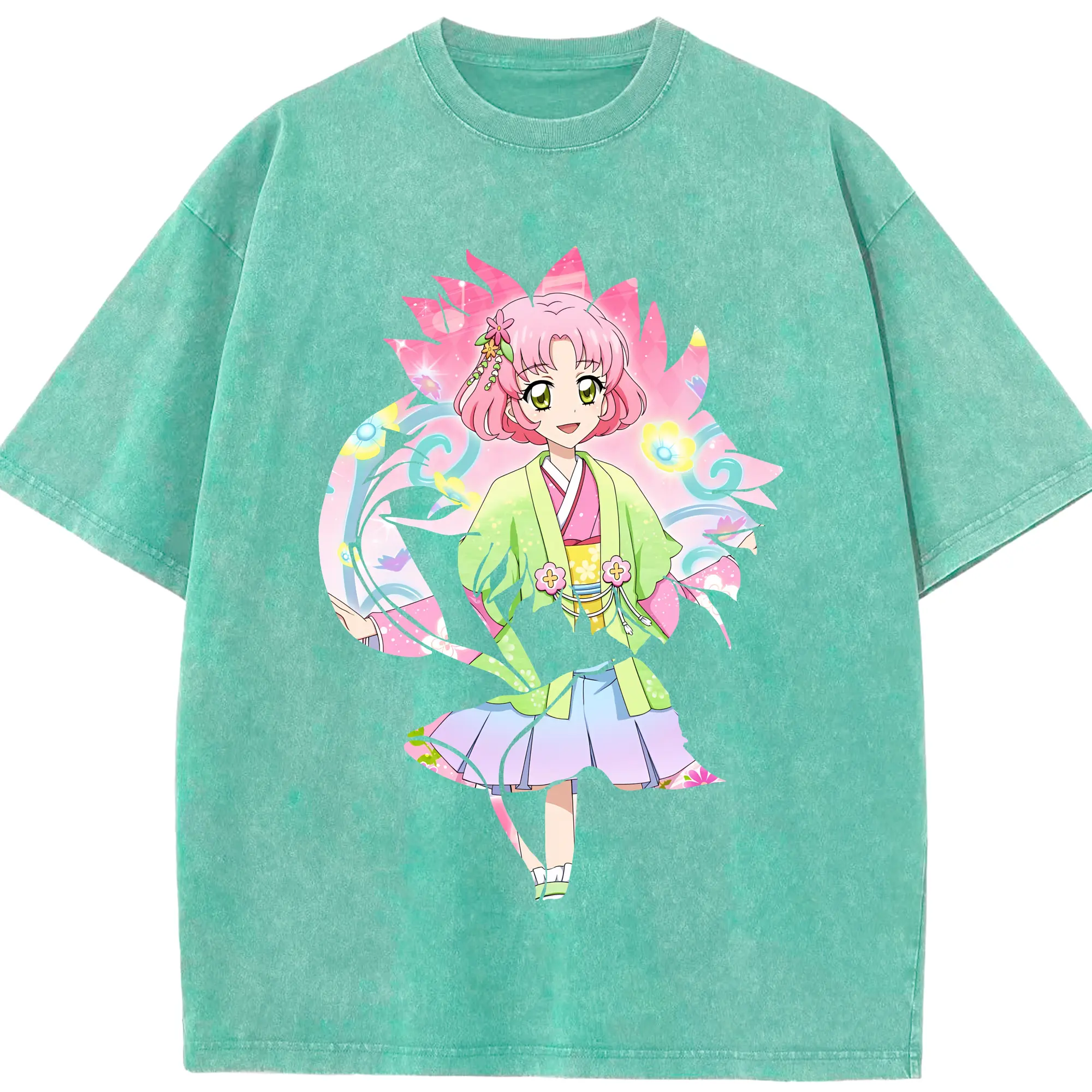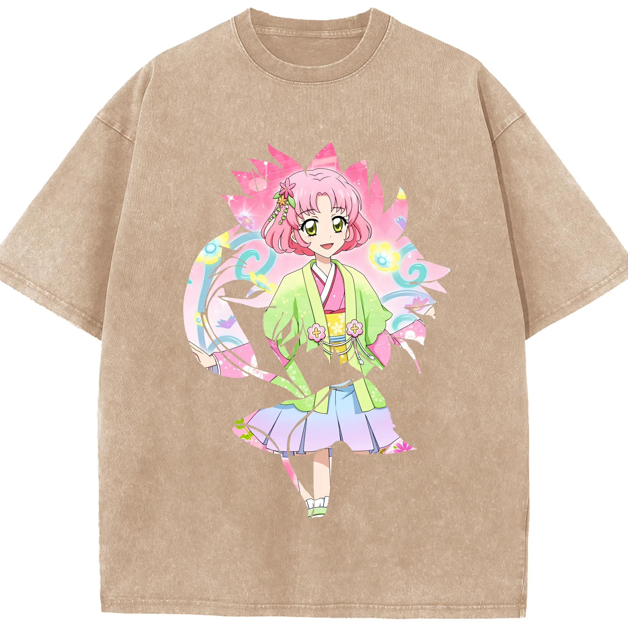 アイカツ グッズ 北大路 さくら - 綿100% ヴィンテージ風 半袖Tシャツ ・ 背面プリント ・ 柔らか肌触り ・ 通気性 快適 ・ スポーツ カジュアル 外出用