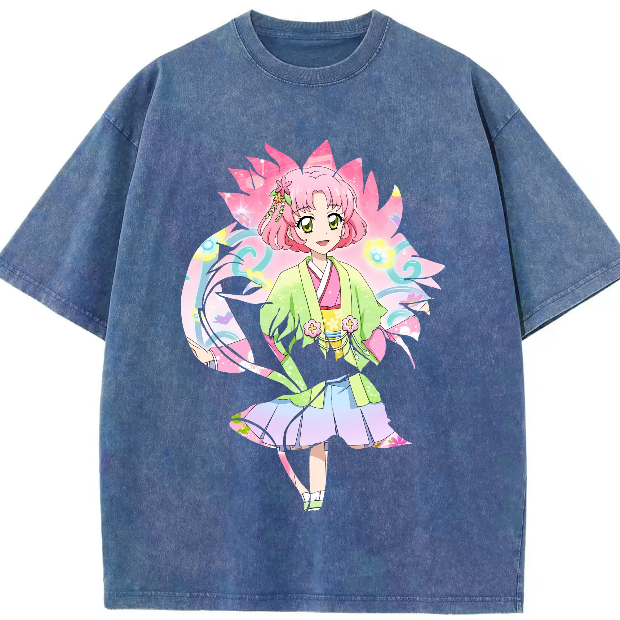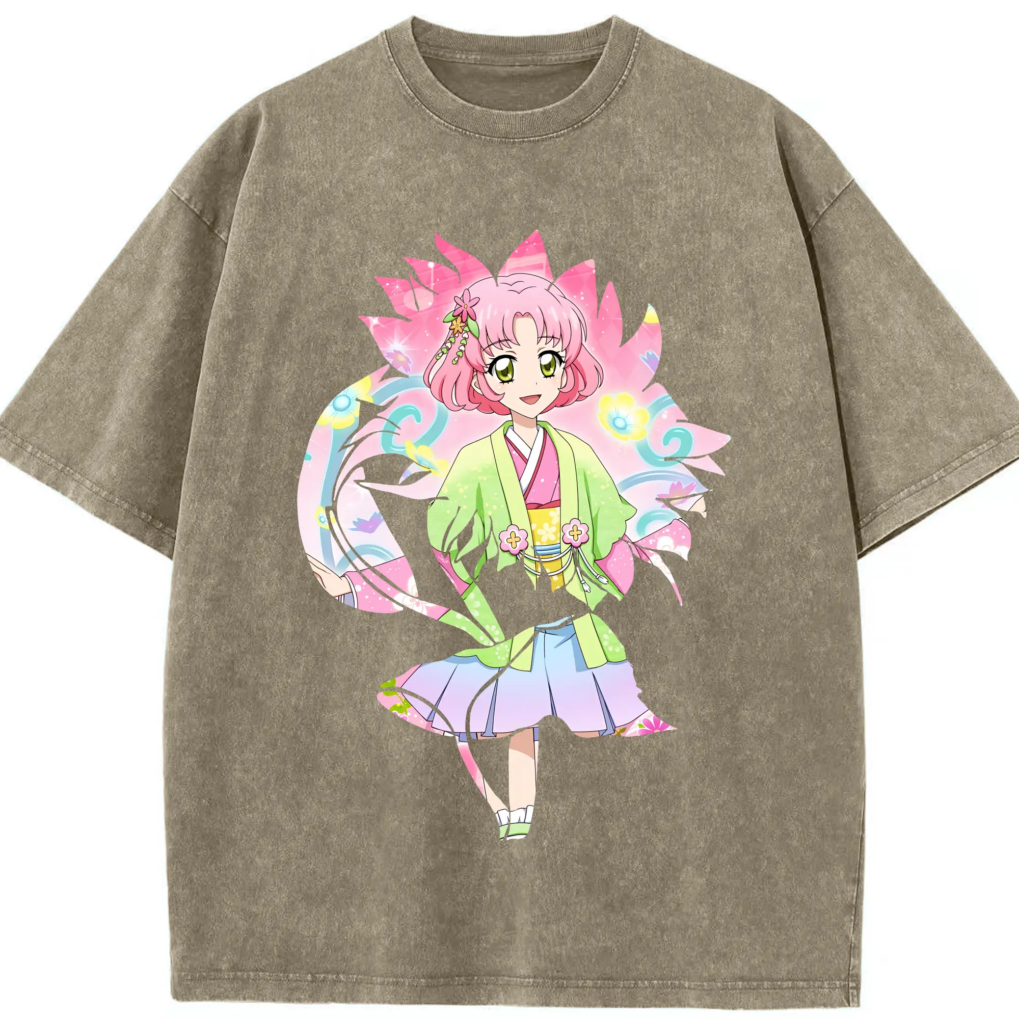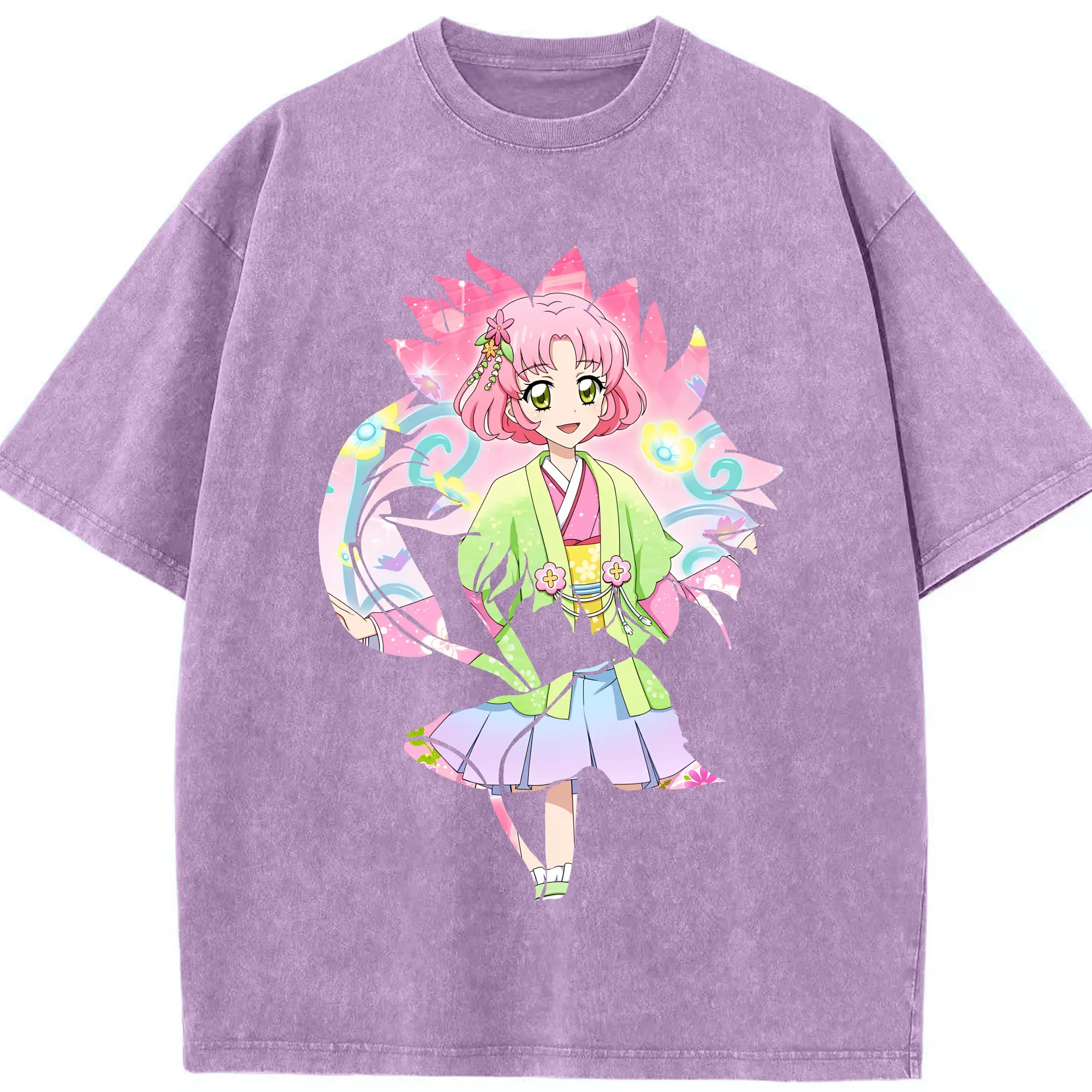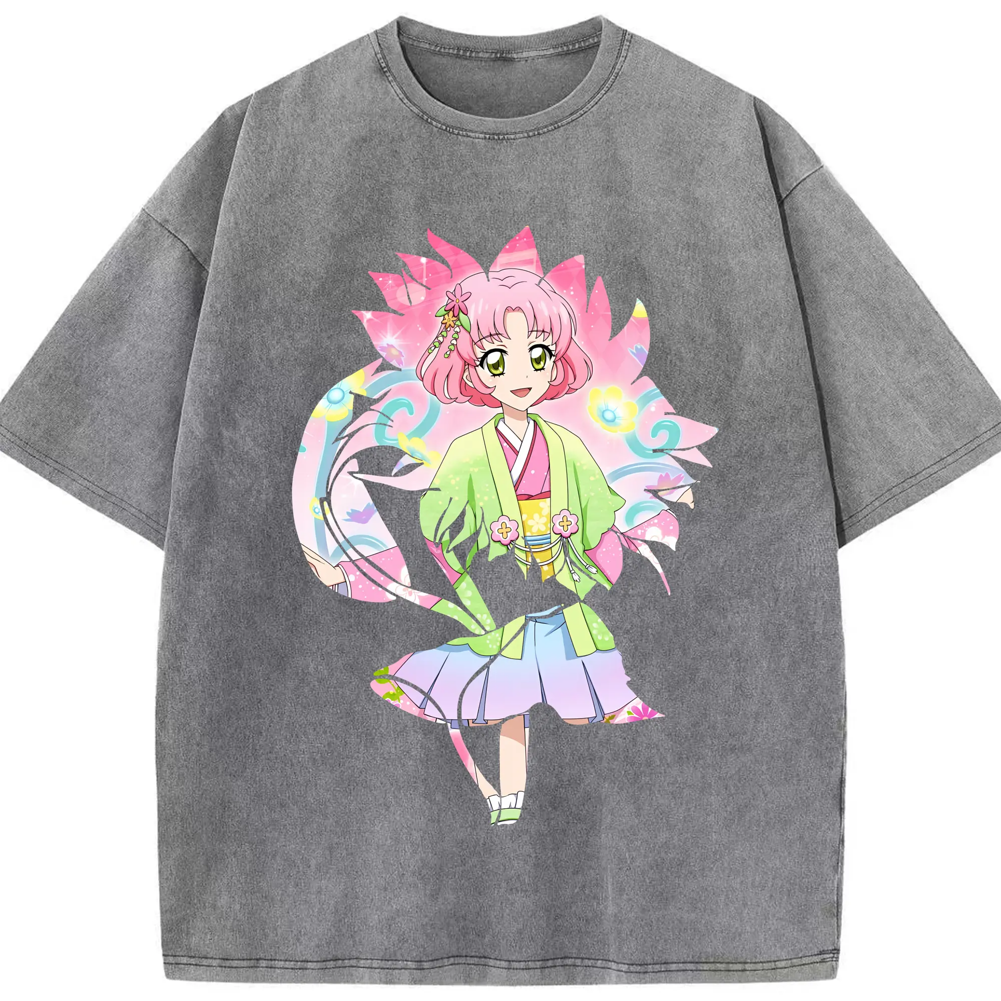 アイカツ グッズ 北大路 さくら - 綿100% ヴィンテージ風 半袖Tシャツ ・ 背面プリント ・ 柔らか肌触り ・ 通気性 快適 ・ スポーツ カジュアル 外出用