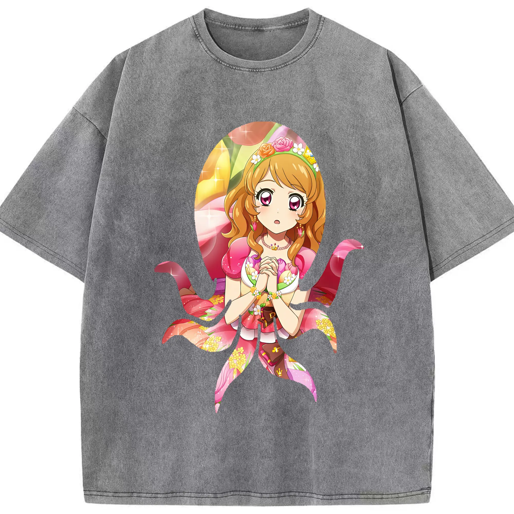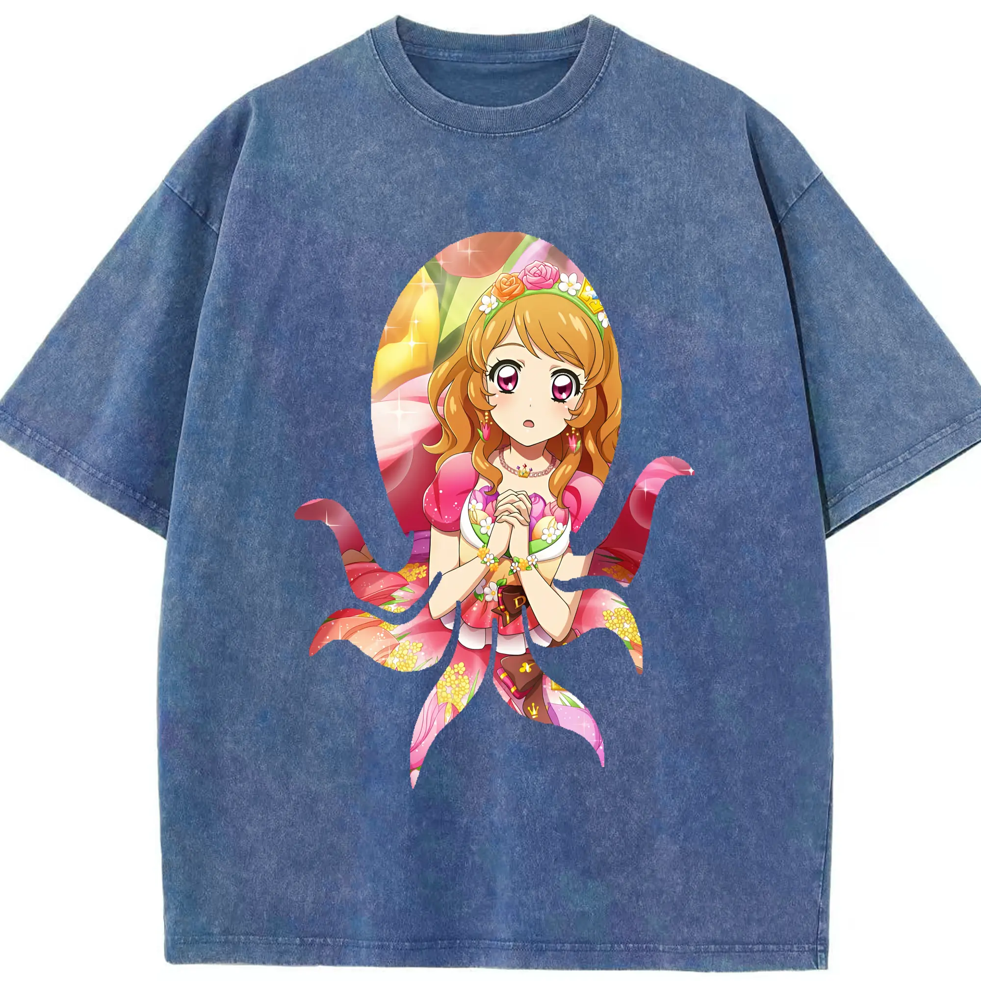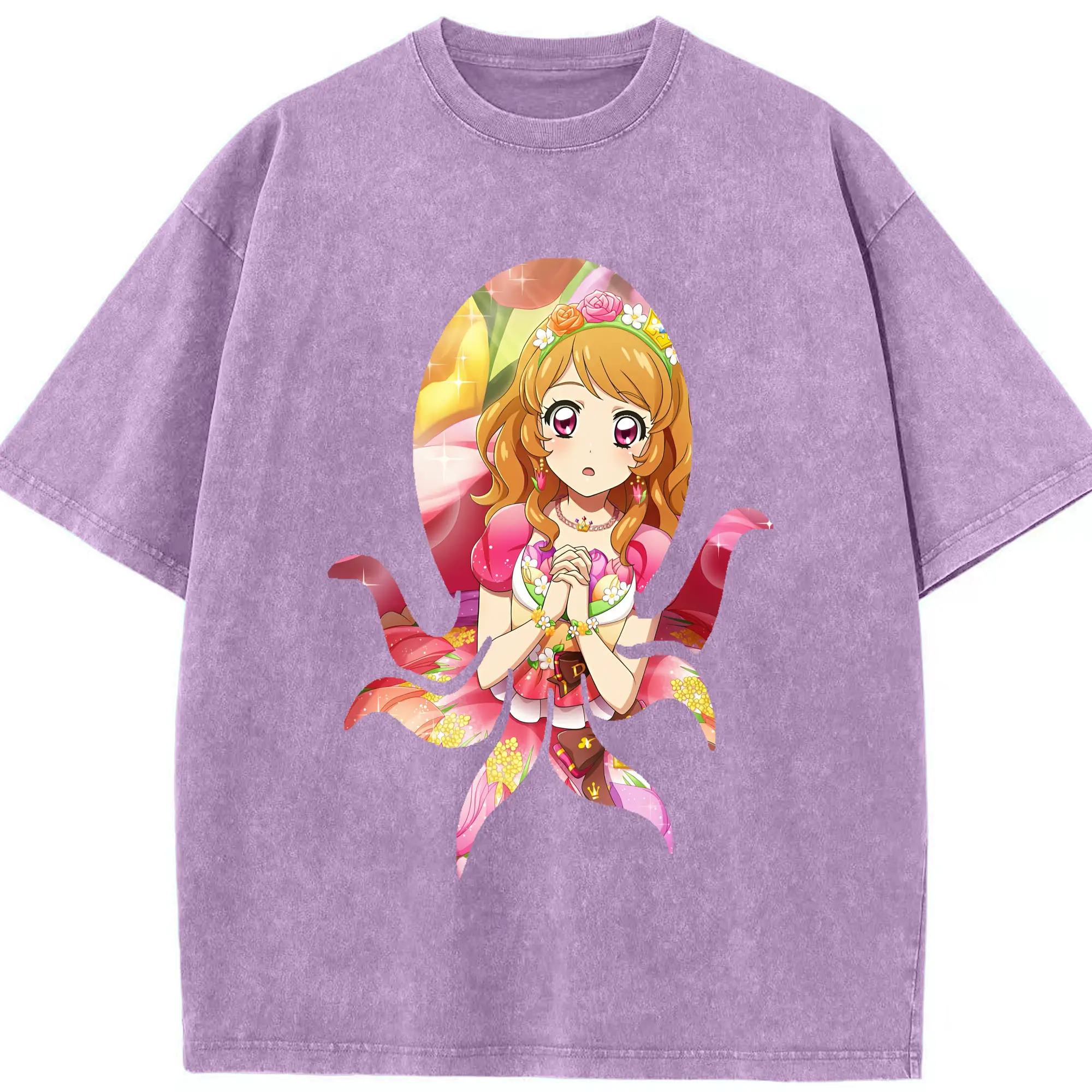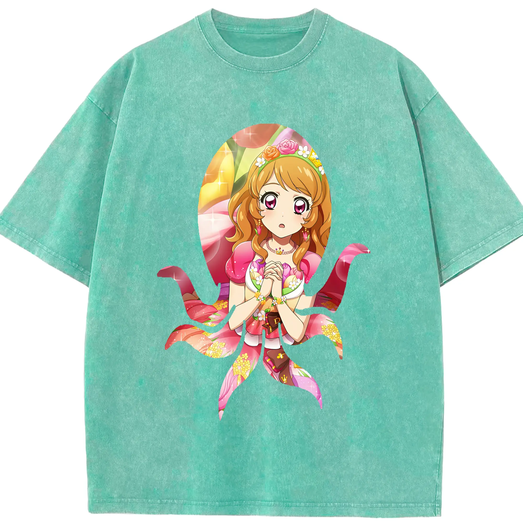 アイカツ グッズ 藤堂 ユリカ - 綿100% ヴィンテージ風 半袖Tシャツ ・ フロントプリント ・ 柔らか肌触り ・ 通気性 快適 ・ スポーツ カジュアル 外出用