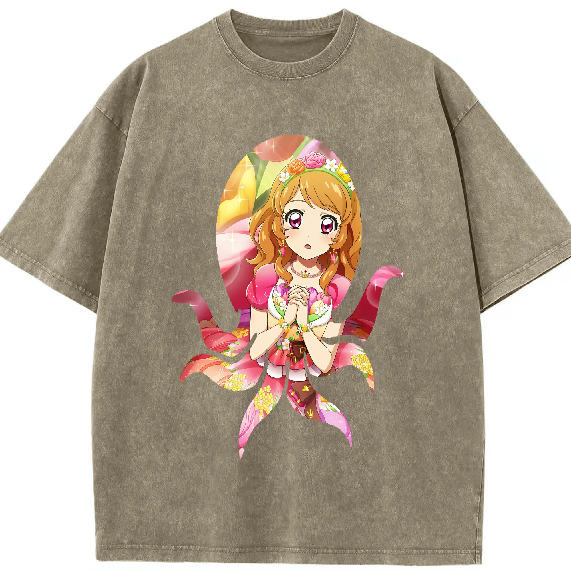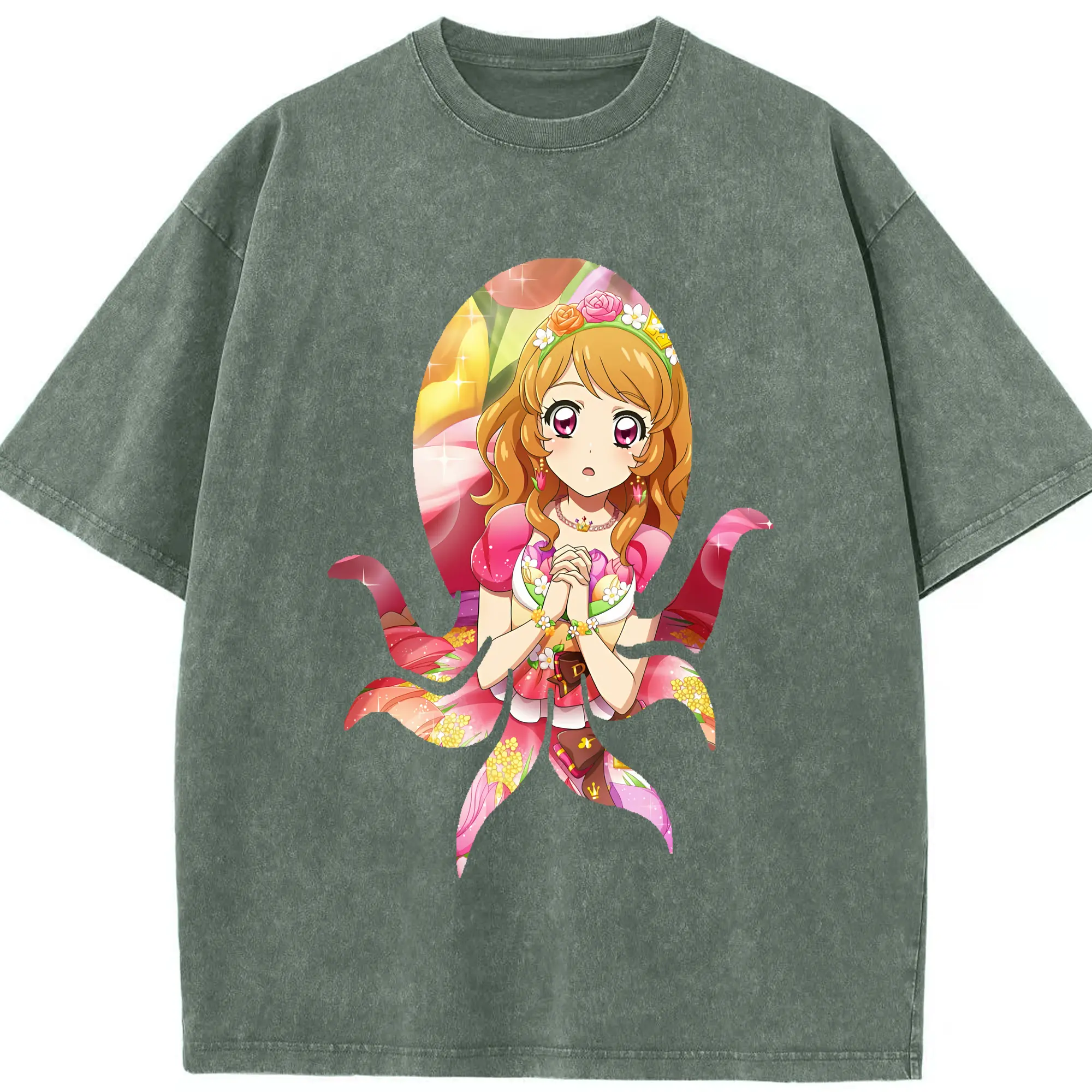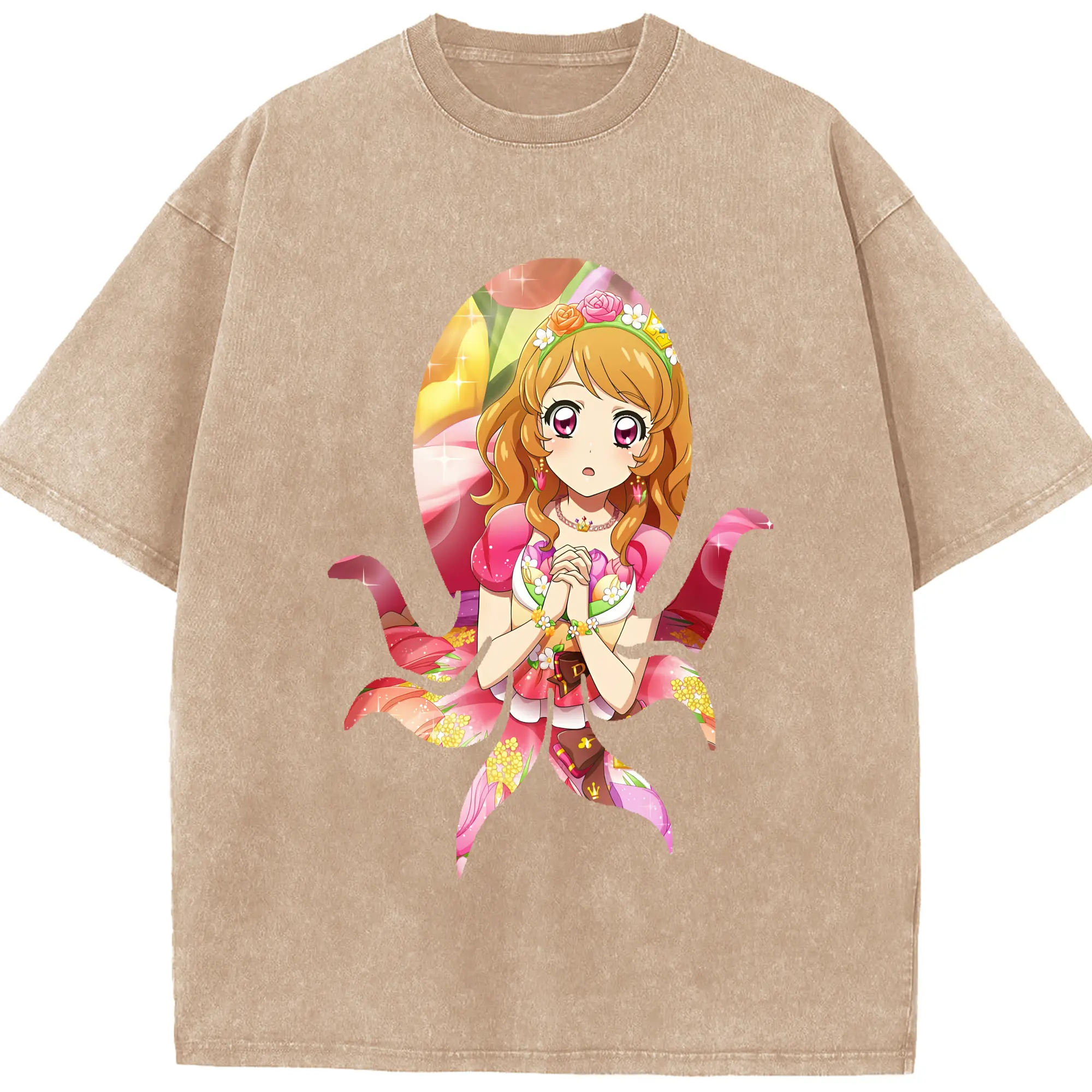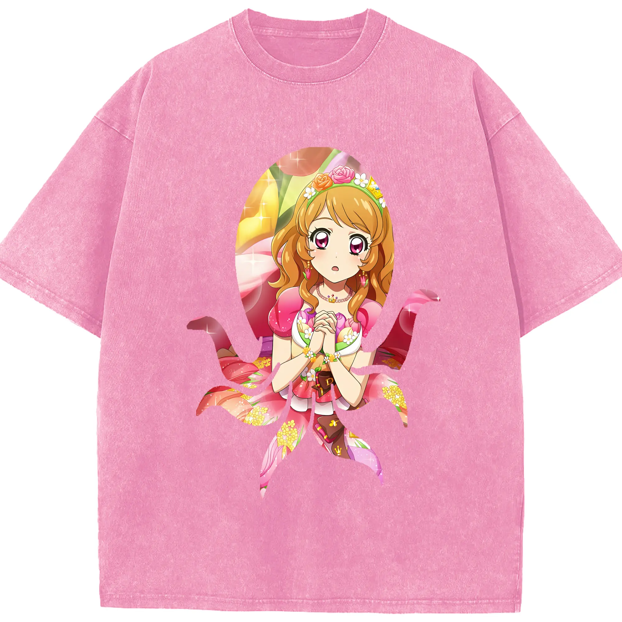 アイカツ グッズ 藤堂 ユリカ - 綿100% ヴィンテージ風 半袖Tシャツ ・ フロントプリント ・ 柔らか肌触り ・ 通気性 快適 ・ スポーツ カジュアル 外出用