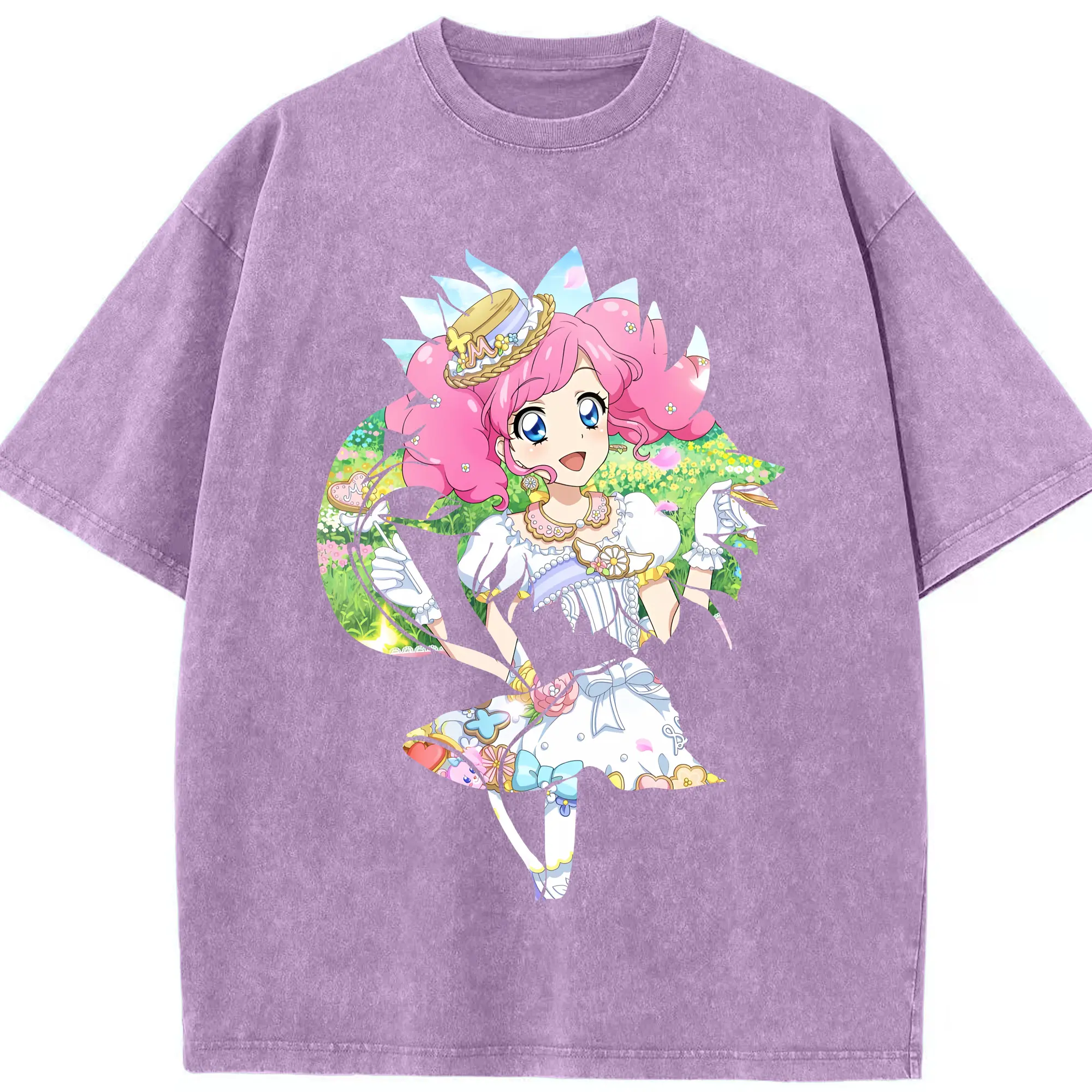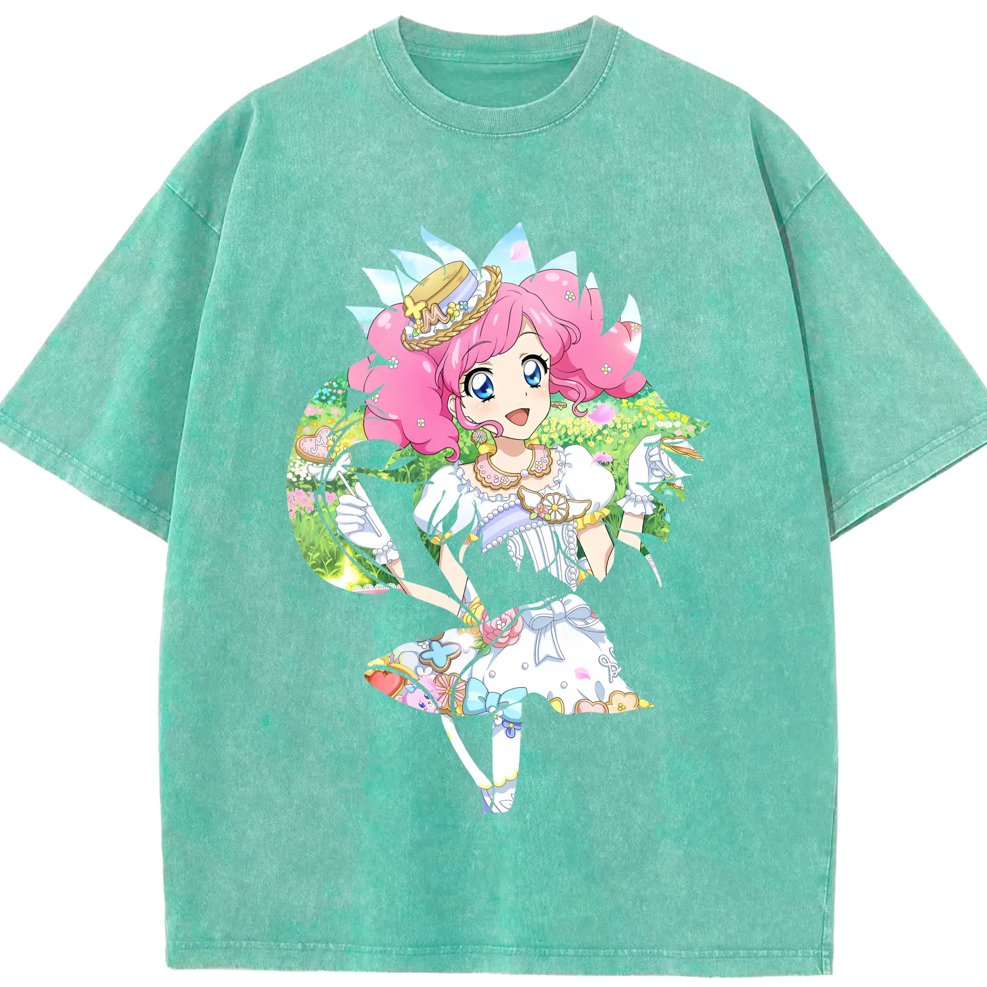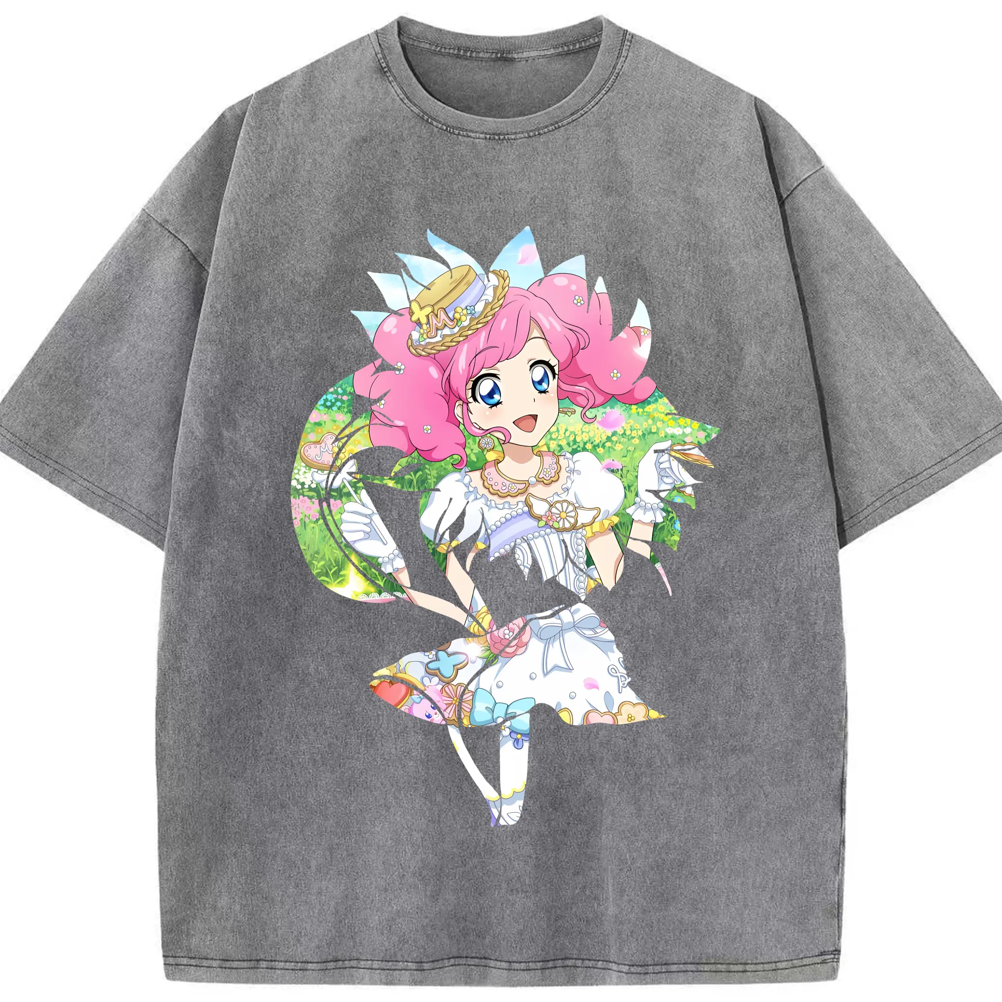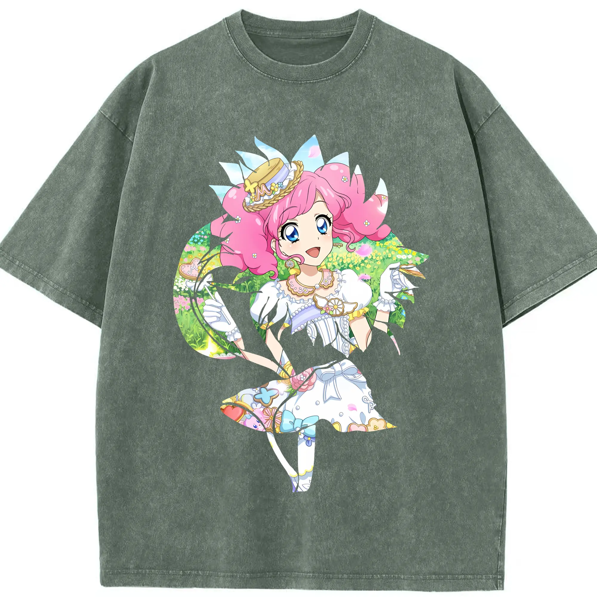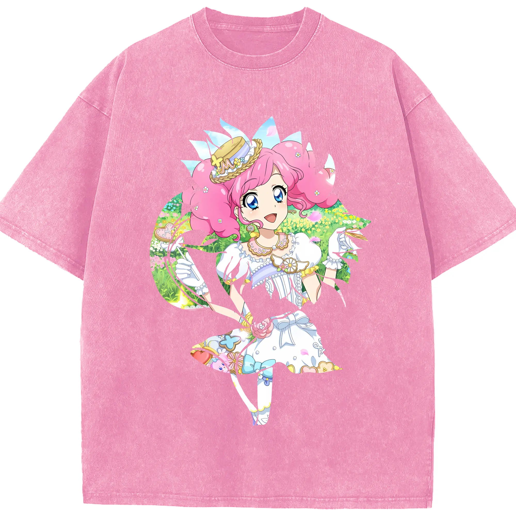 アイカツ グッズ 北大路 さくら - 綿100% ヴィンテージ風 半袖Tシャツ ・ 背面プリント ・ 柔らか肌触り ・ 通気性 快適 ・ スポーツ カジュアル 外出用