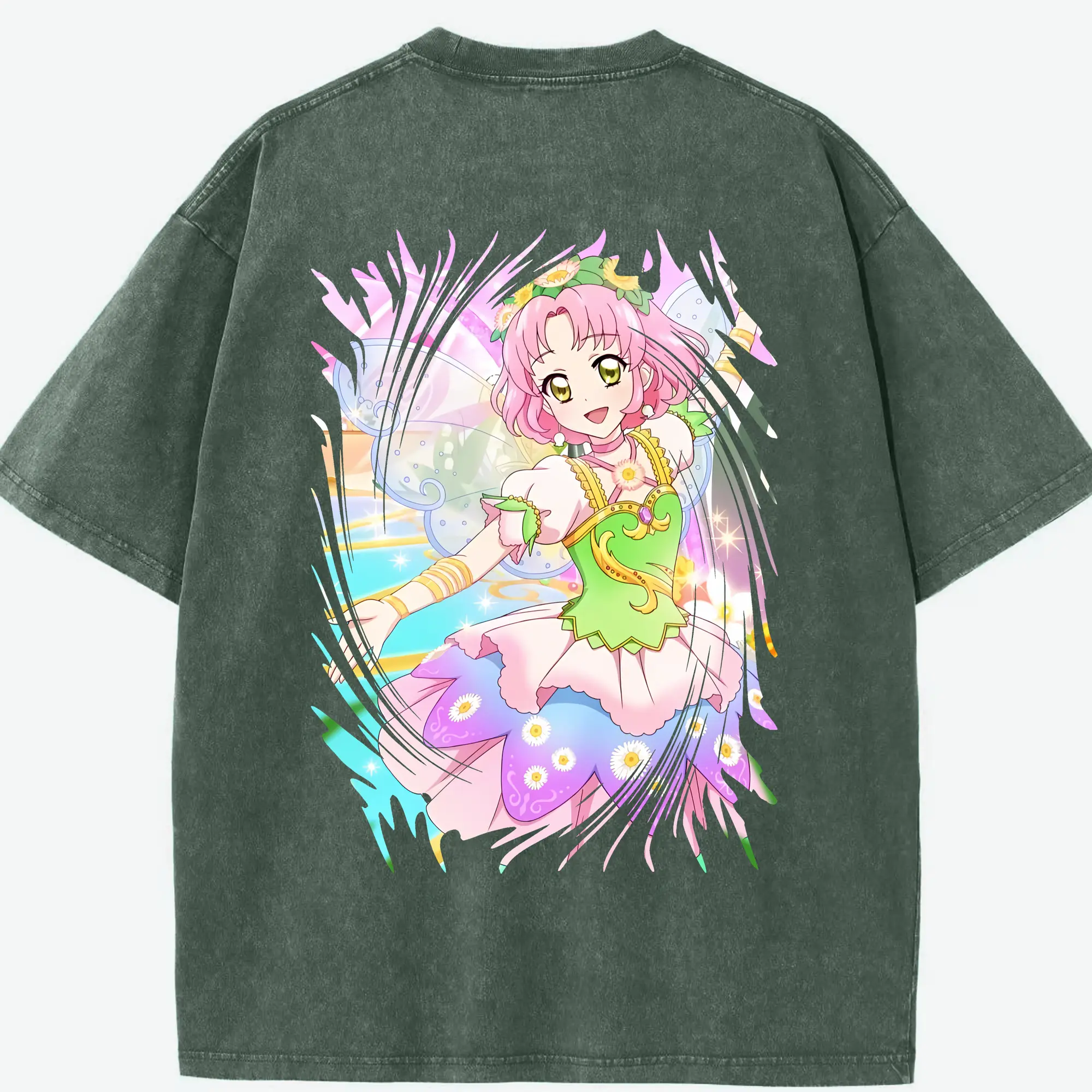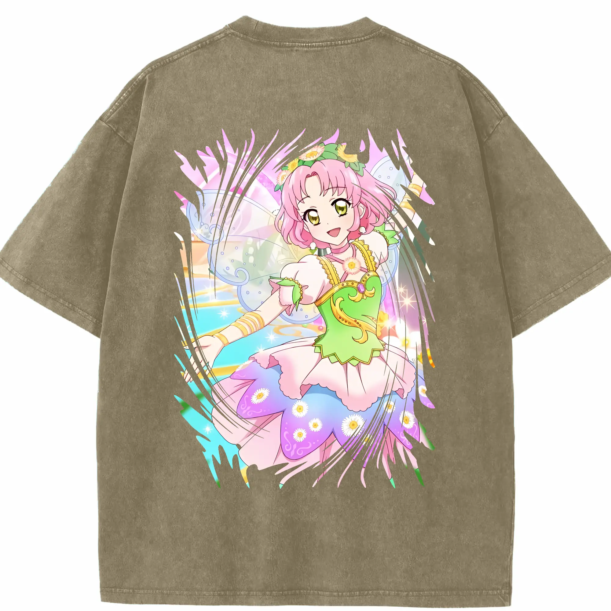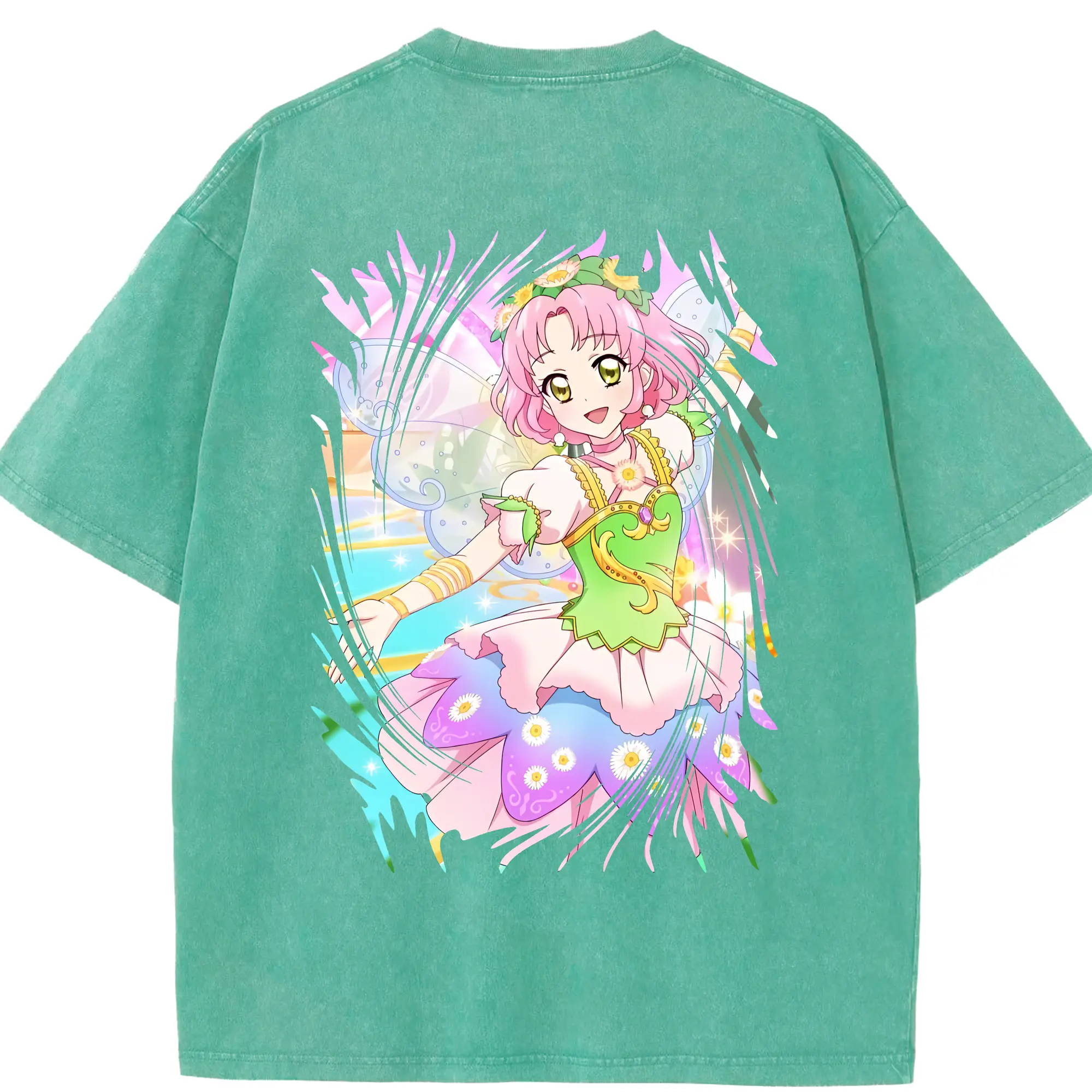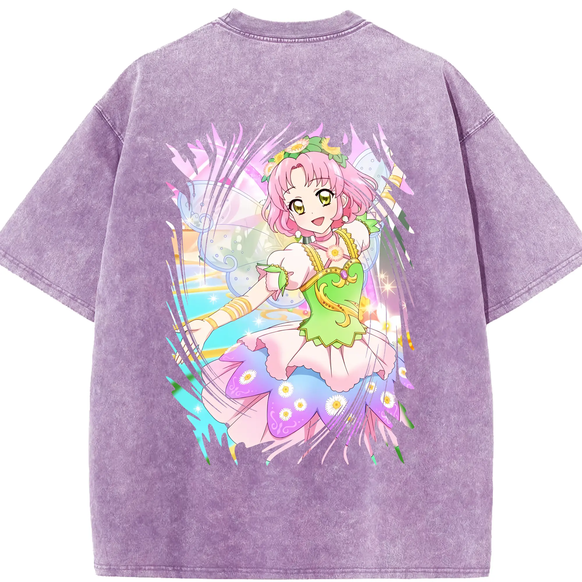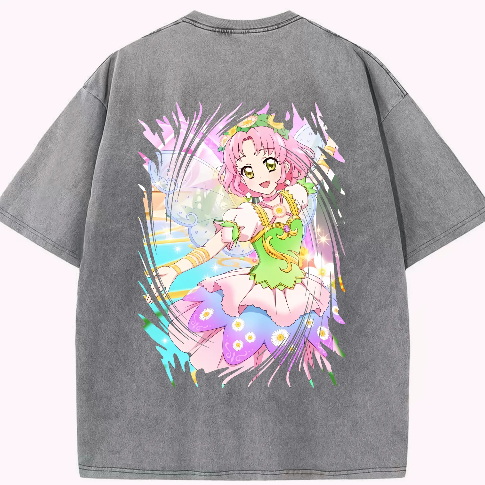 アイカツ グッズ 北大路 さくら - 綿100% ヴィンテージ風 半袖Tシャツ ・ フロントプリント ・ 柔らか肌触り ・ 通気性 快適 ・ スポーツ カジュアル 外出用