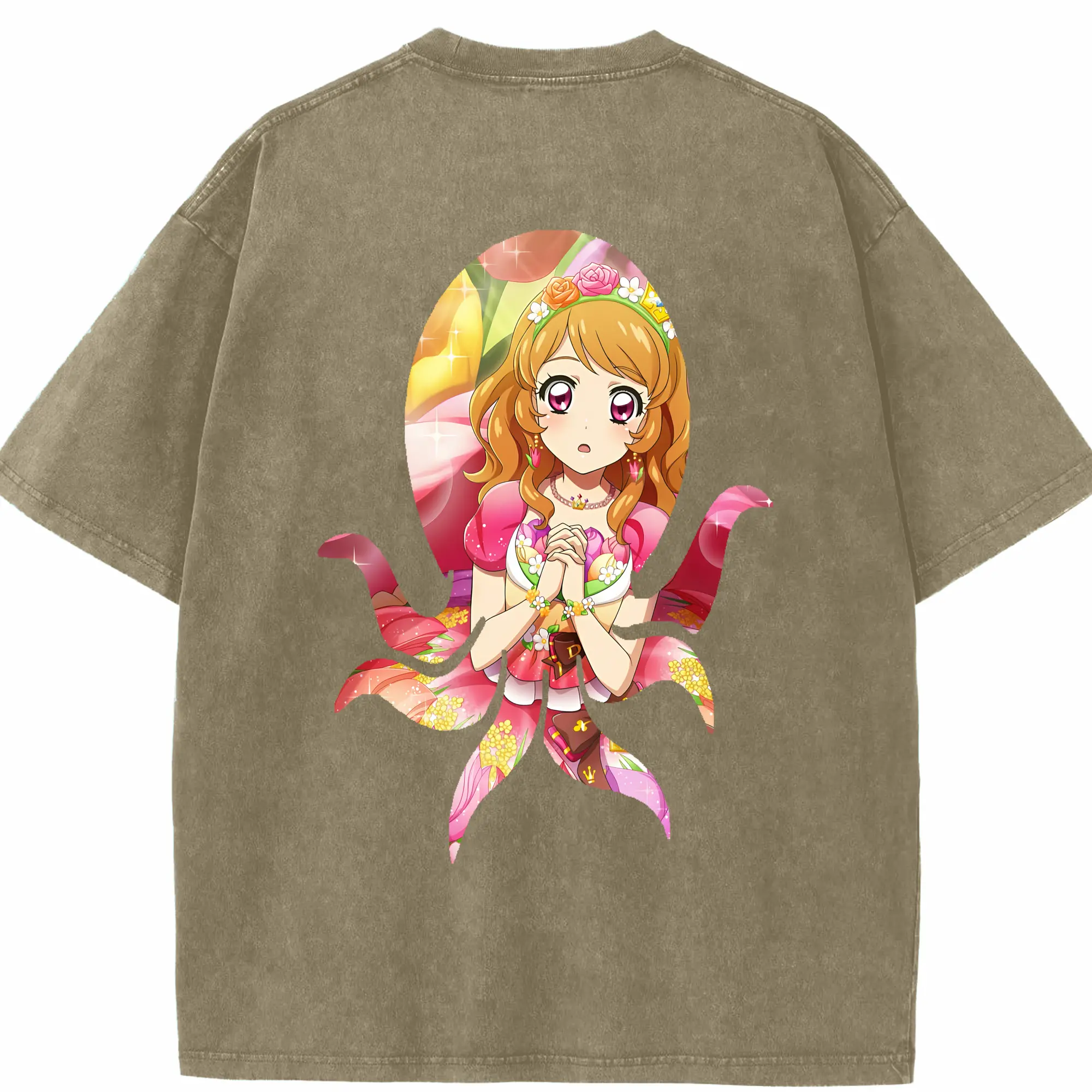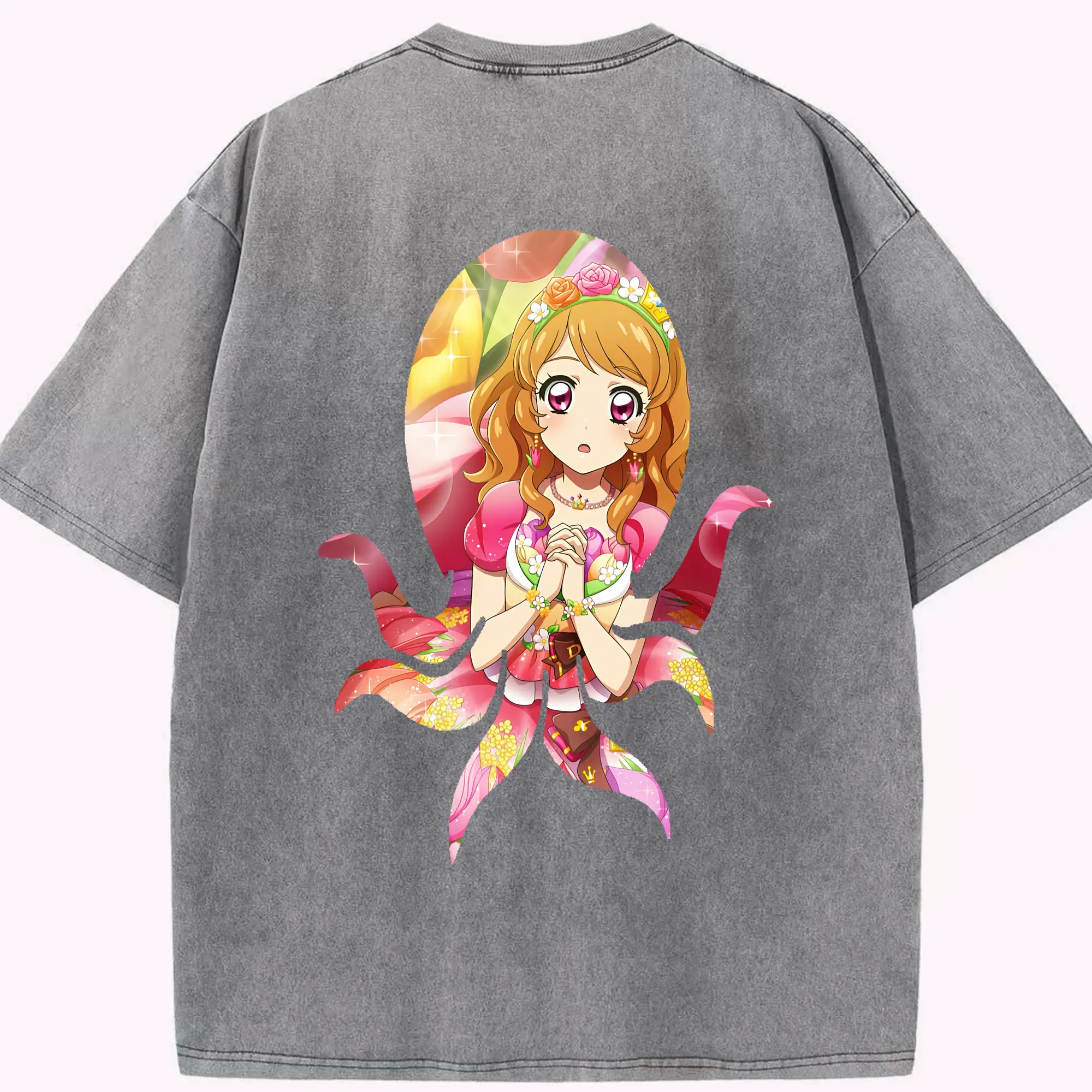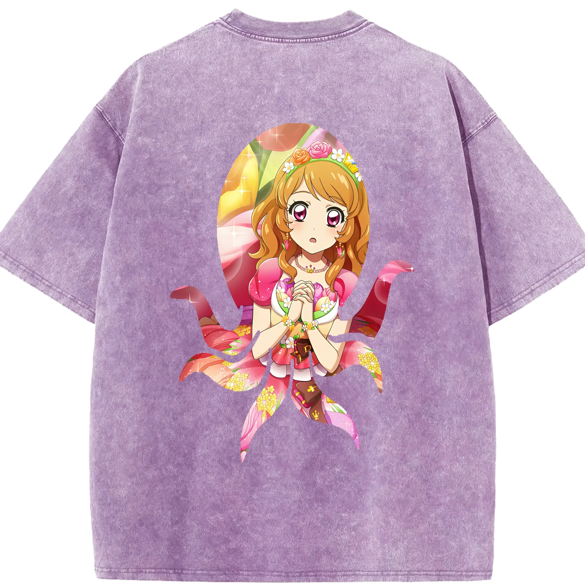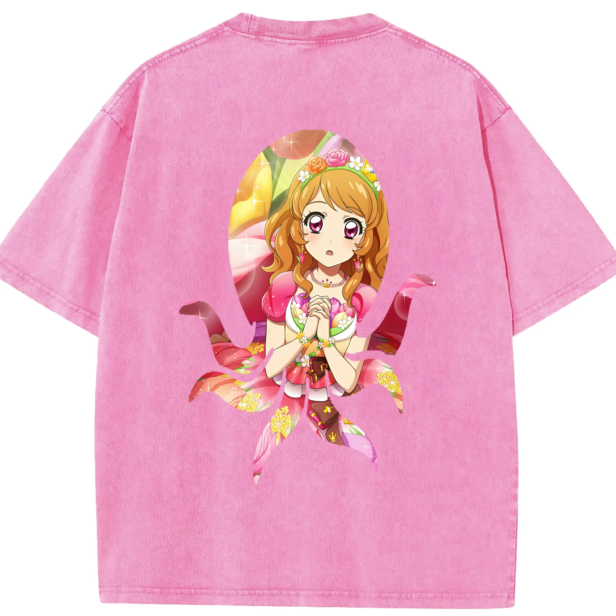 アイカツ グッズ 北大路 さくら - 綿100% ヴィンテージ風 半袖Tシャツ ・ フロントプリント ・ 柔らか肌触り ・ 通気性 快適 ・ スポーツ カジュアル 外出用