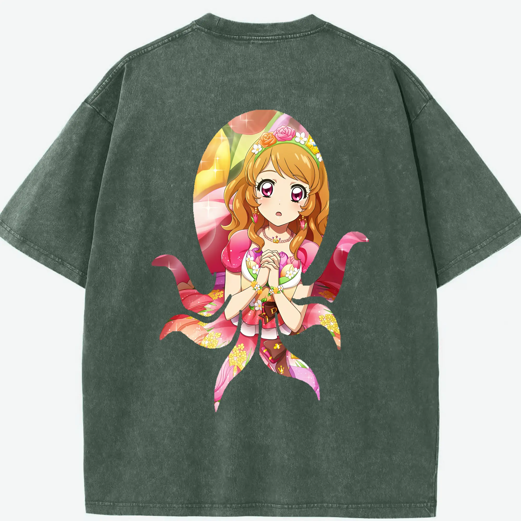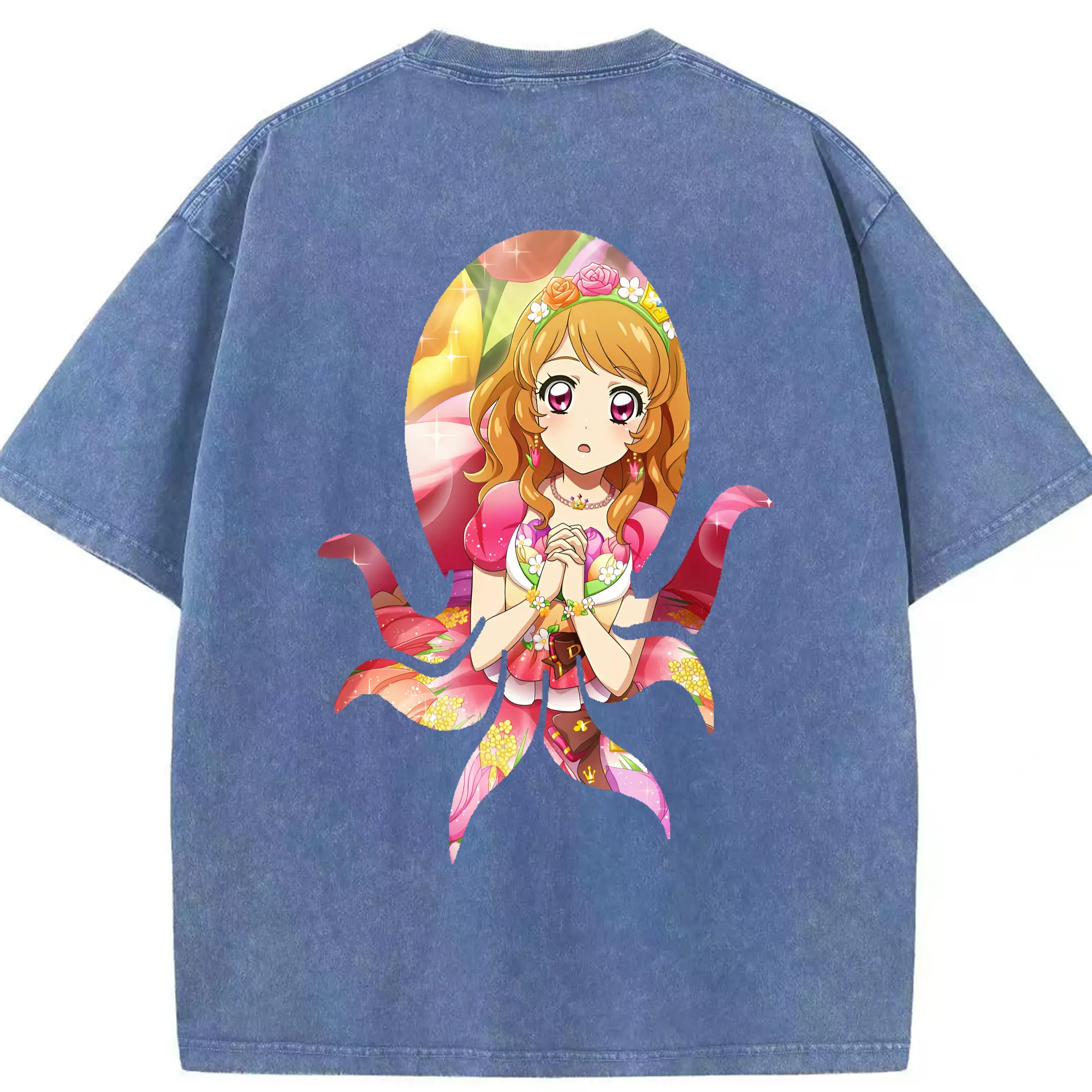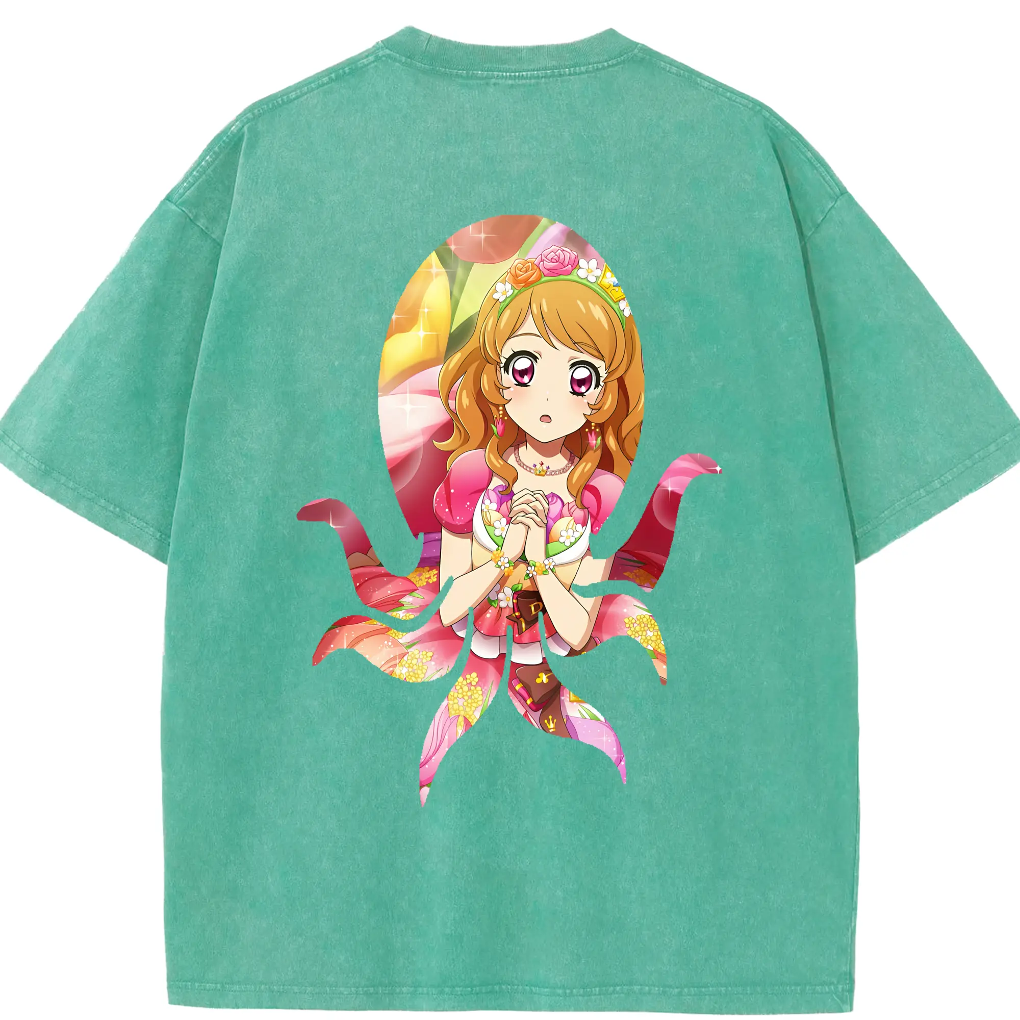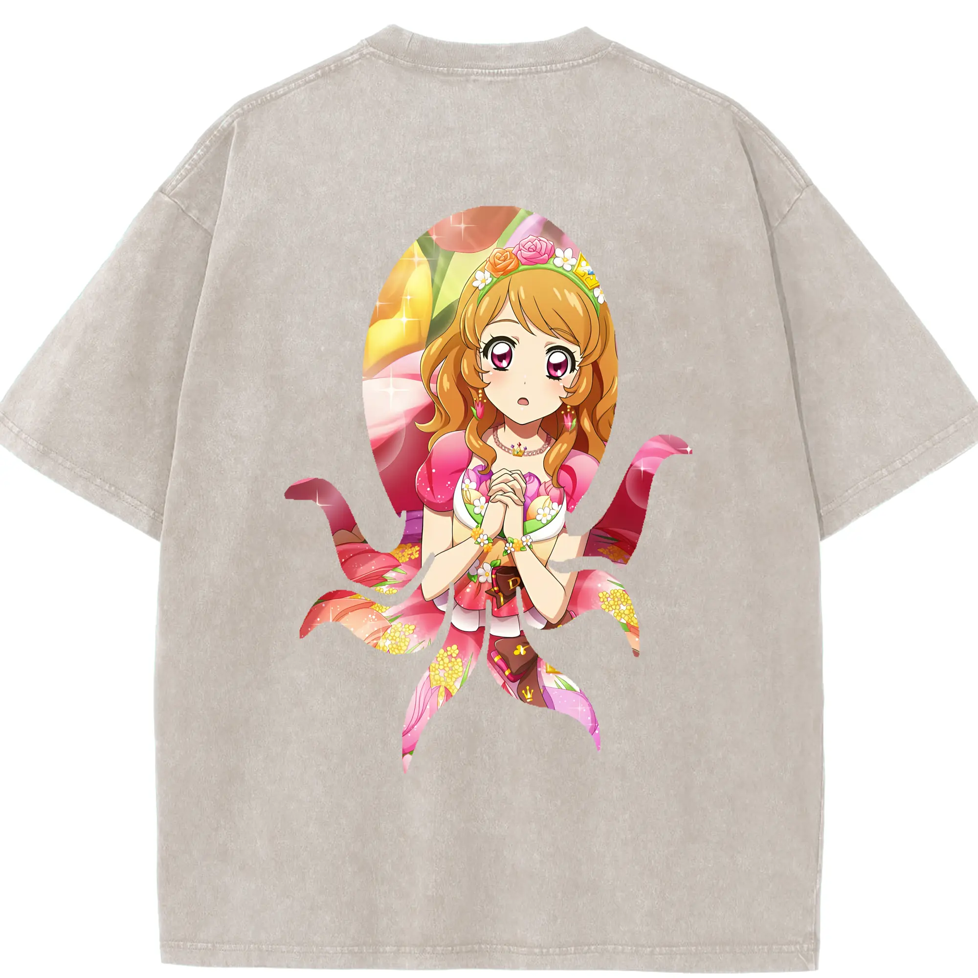 アイカツ グッズ 北大路 さくら - 綿100% ヴィンテージ風 半袖Tシャツ ・ フロントプリント ・ 柔らか肌触り ・ 通気性 快適 ・ スポーツ カジュアル 外出用