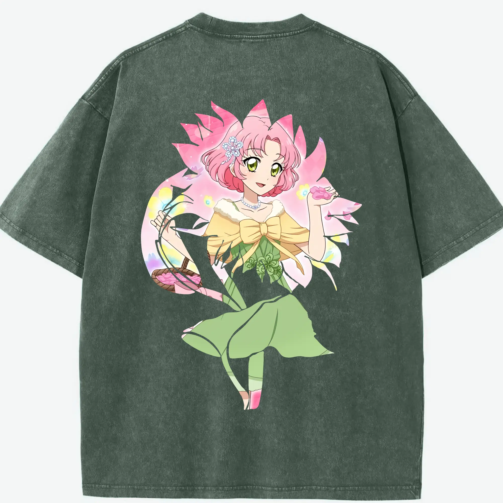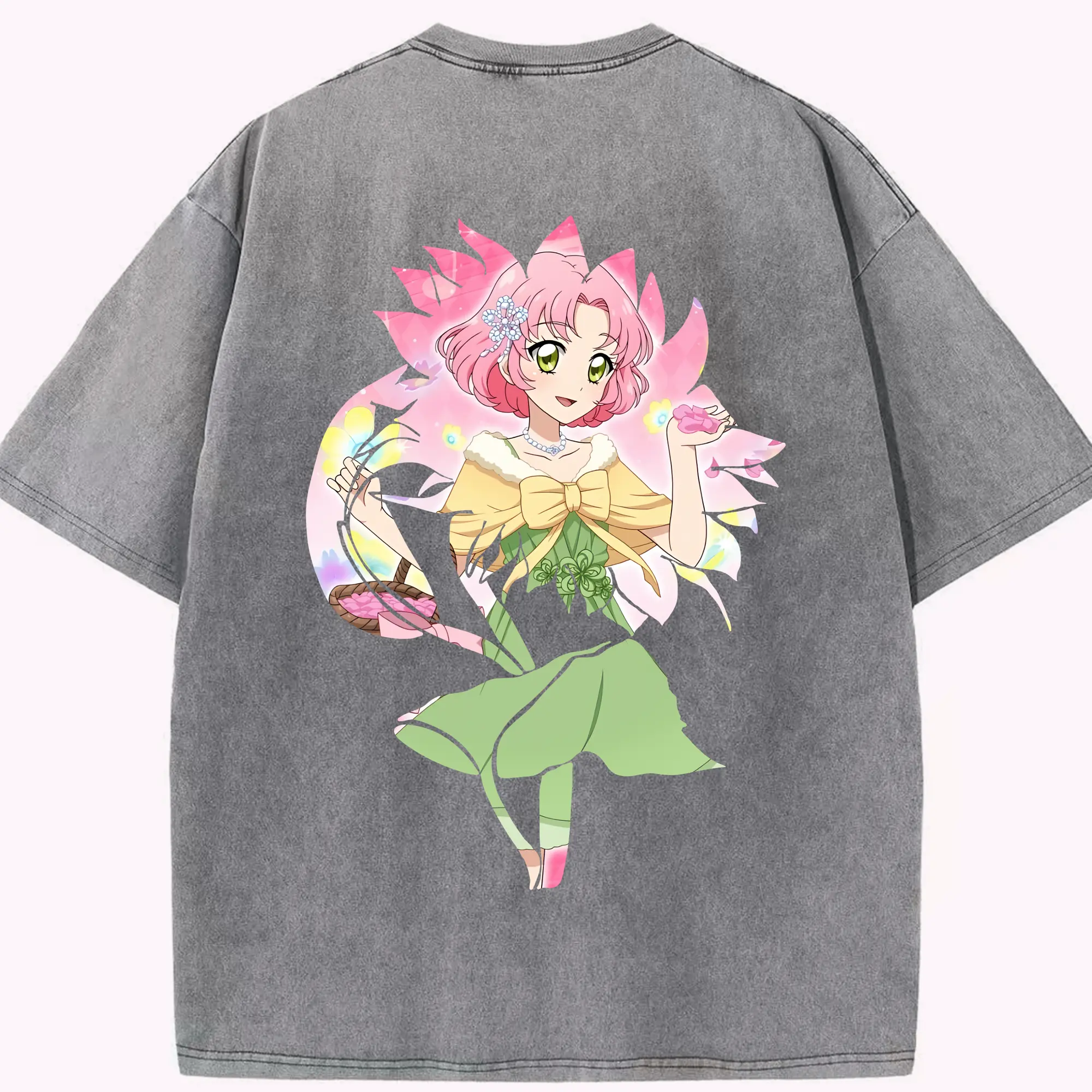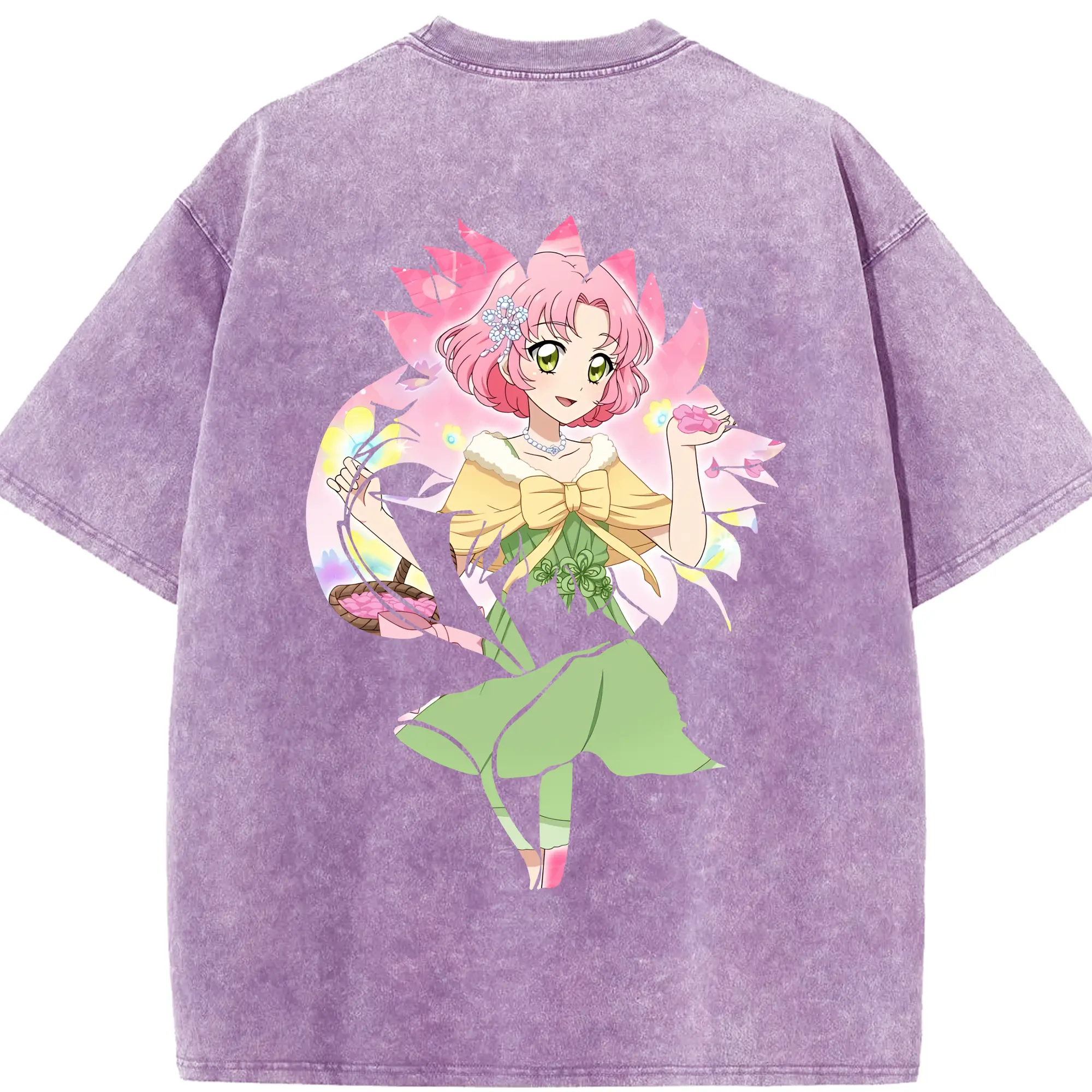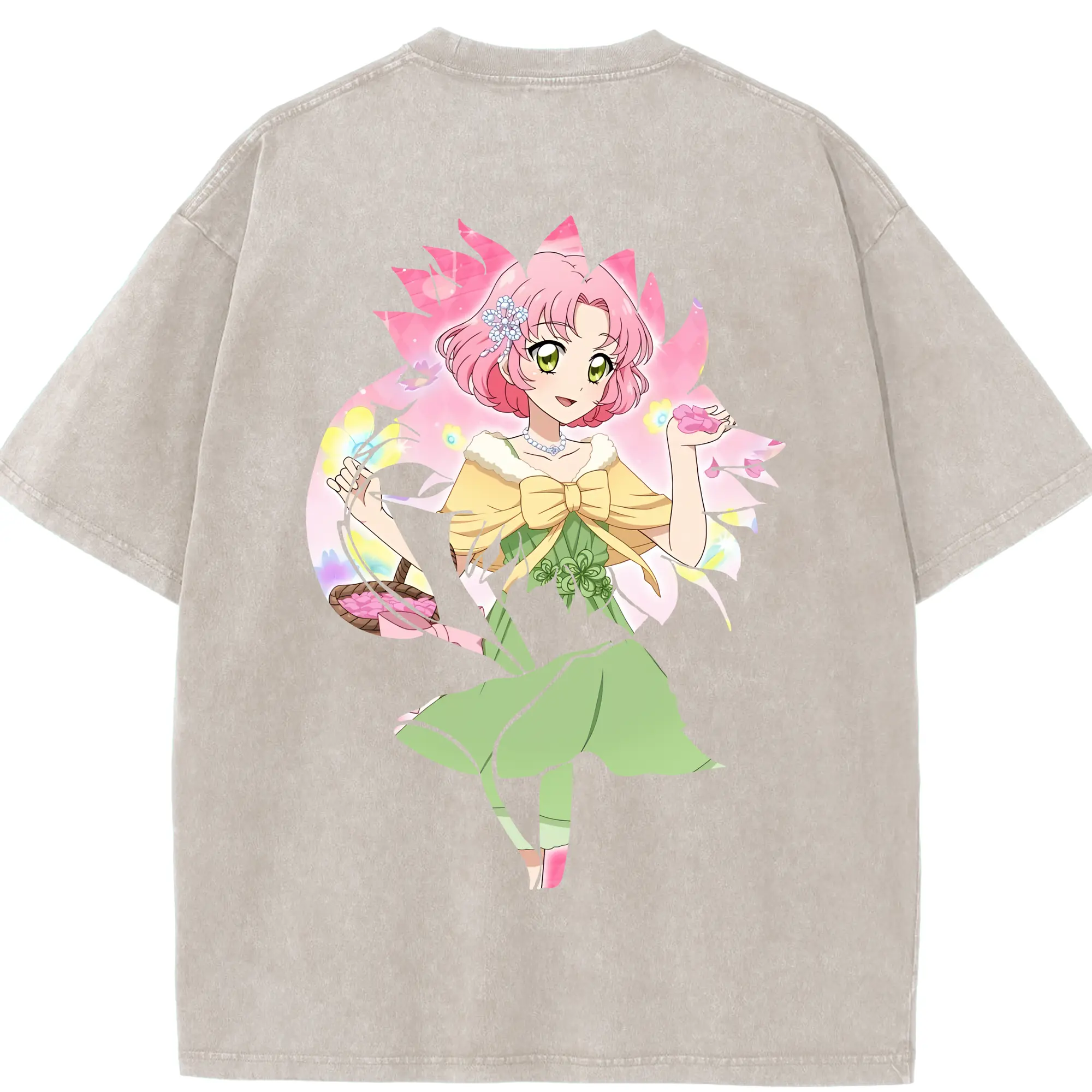 アイカツ グッズ 北大路 さくら - 綿100% ヴィンテージ風 半袖Tシャツ ・ フロントプリント ・ 柔らか肌触り ・ 通気性 快適 ・ スポーツ カジュアル 外出用