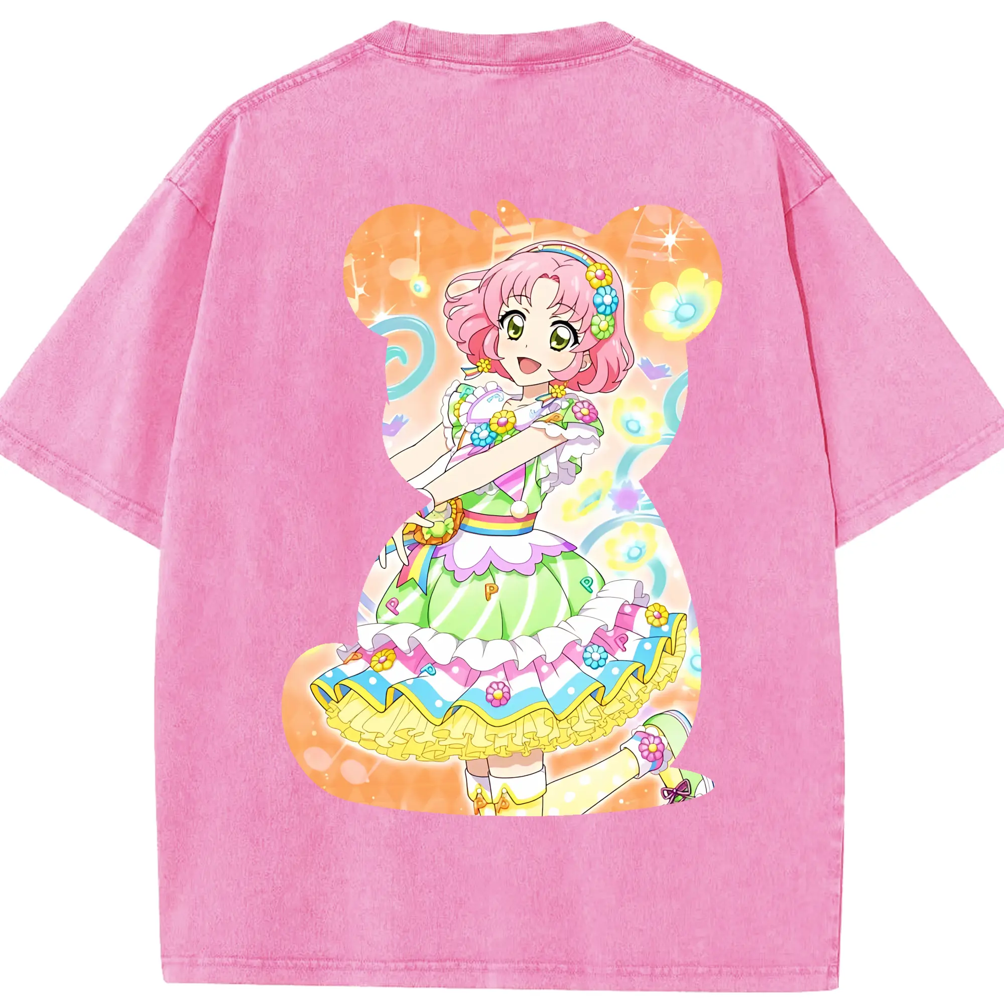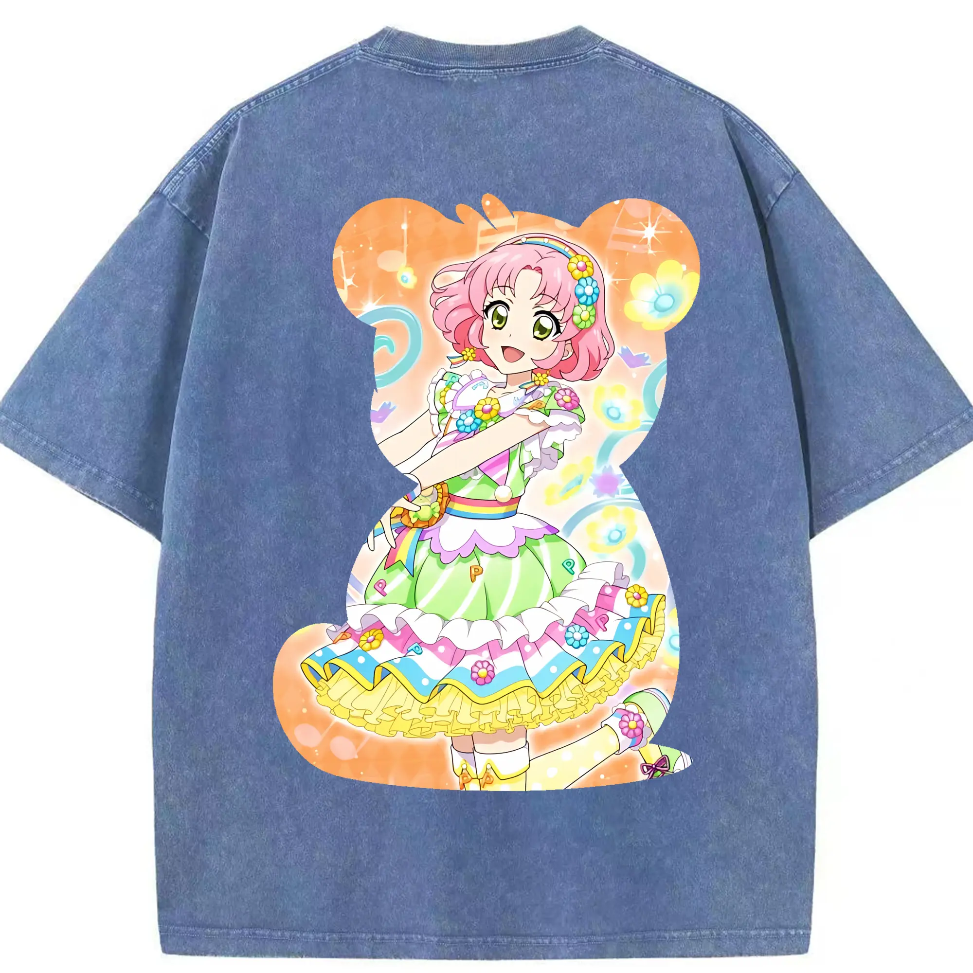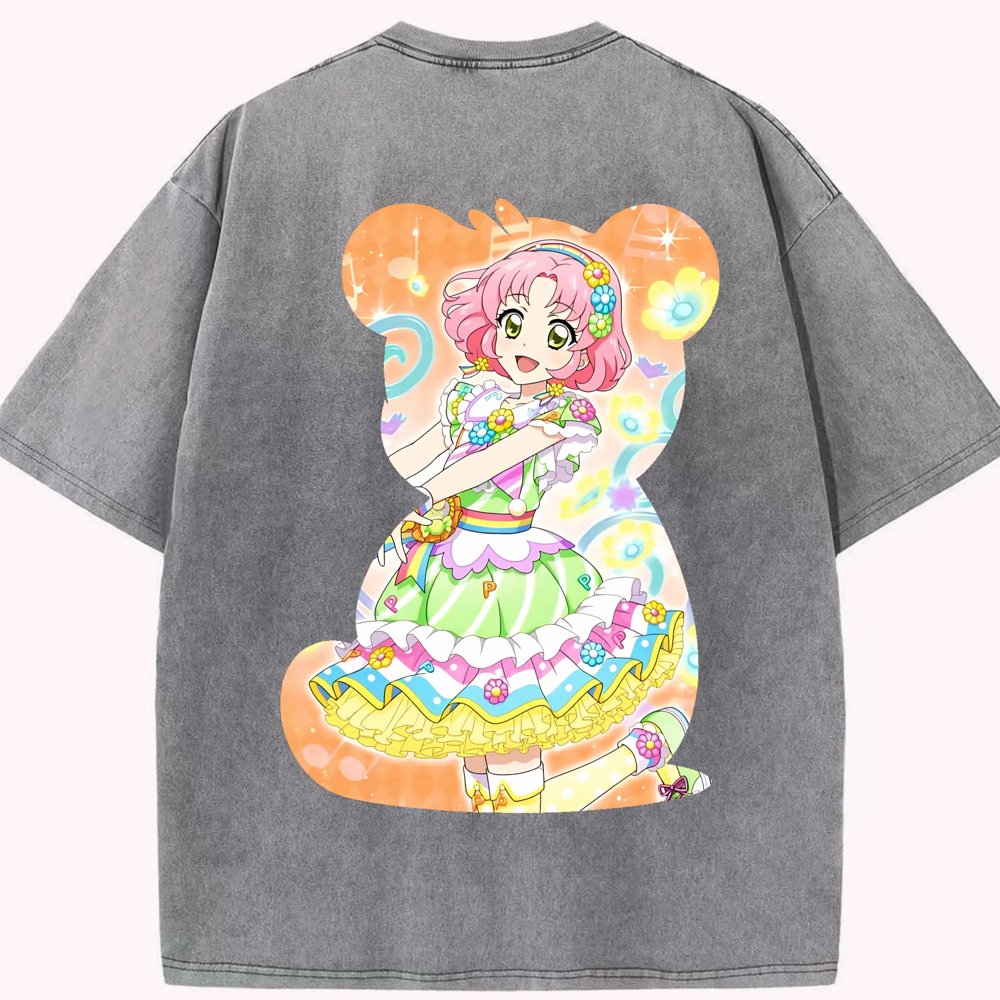 アイカツ グッズ 北大路 さくら - 綿100% ヴィンテージ風 半袖Tシャツ ・ 背面プリント ・ 柔らか肌触り ・ 通気性 快適 ・ スポーツ カジュアル 外出用