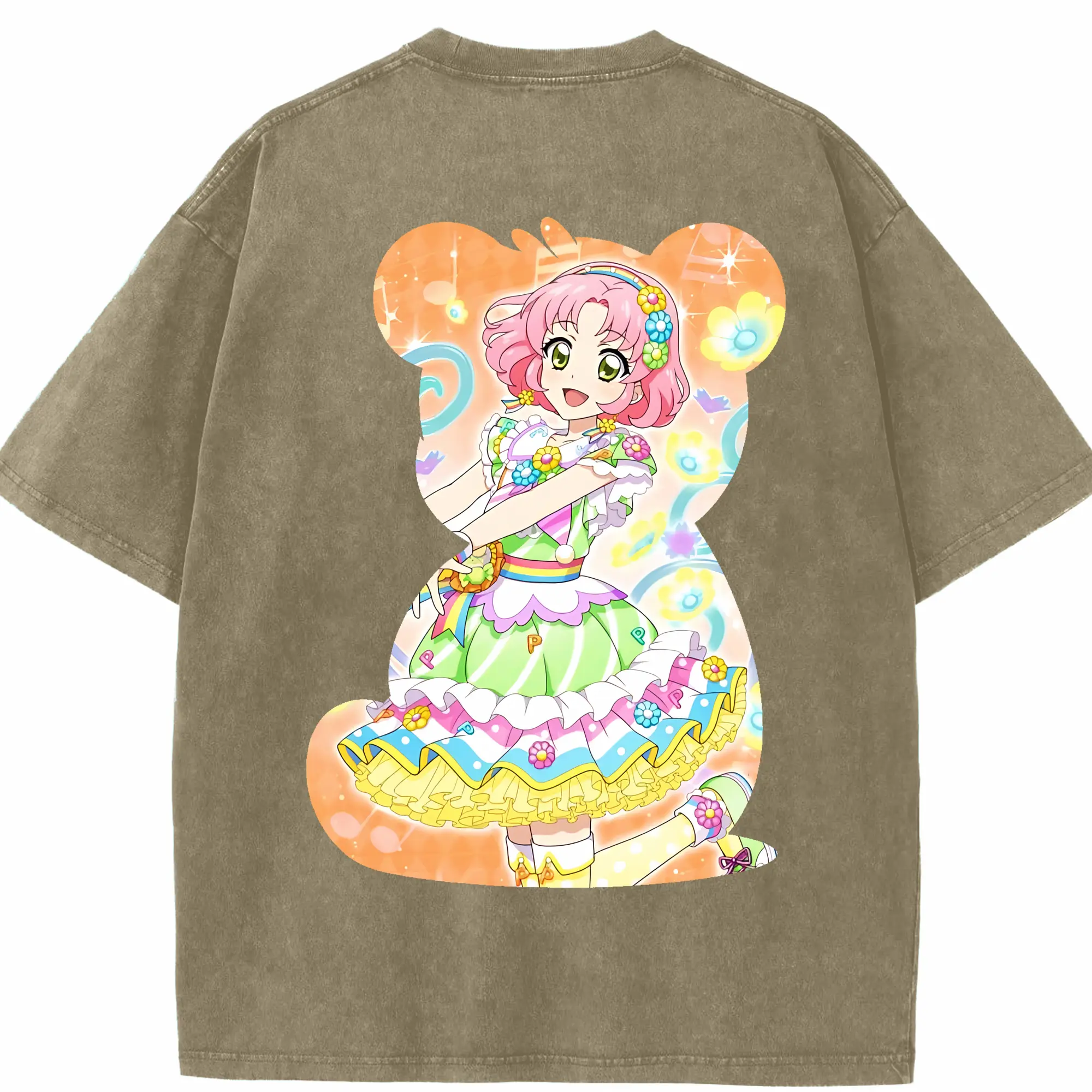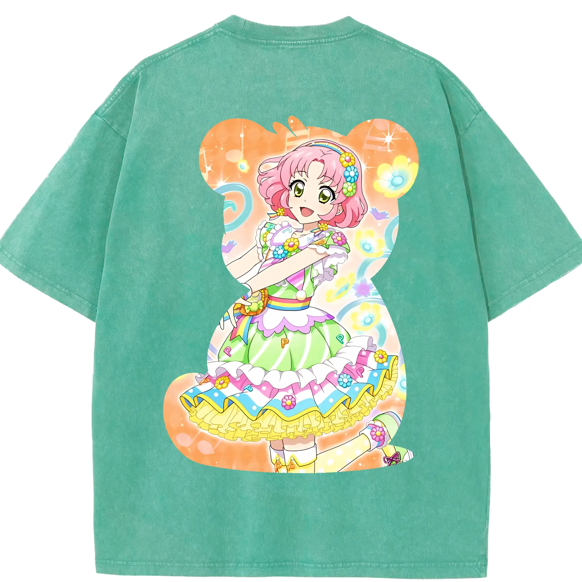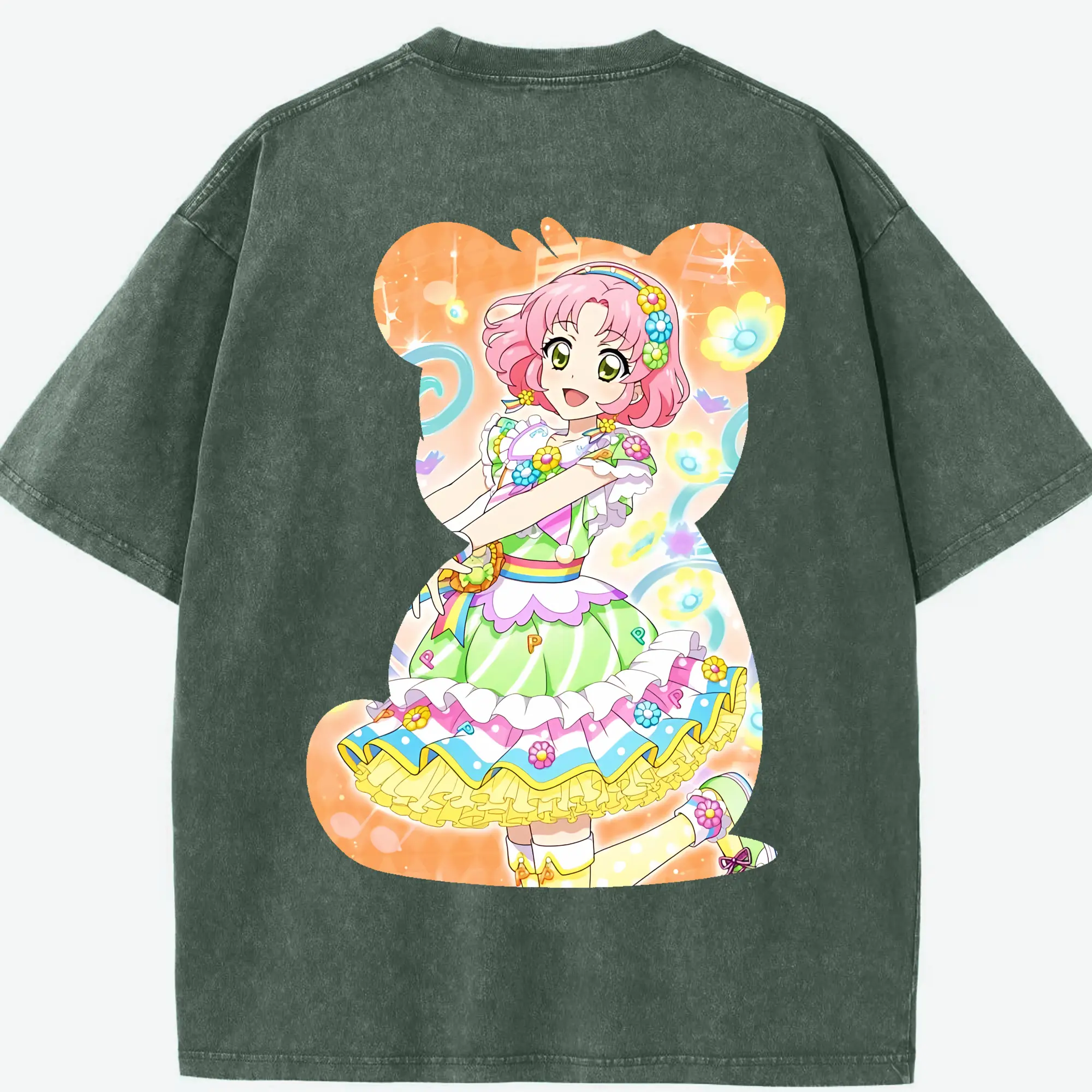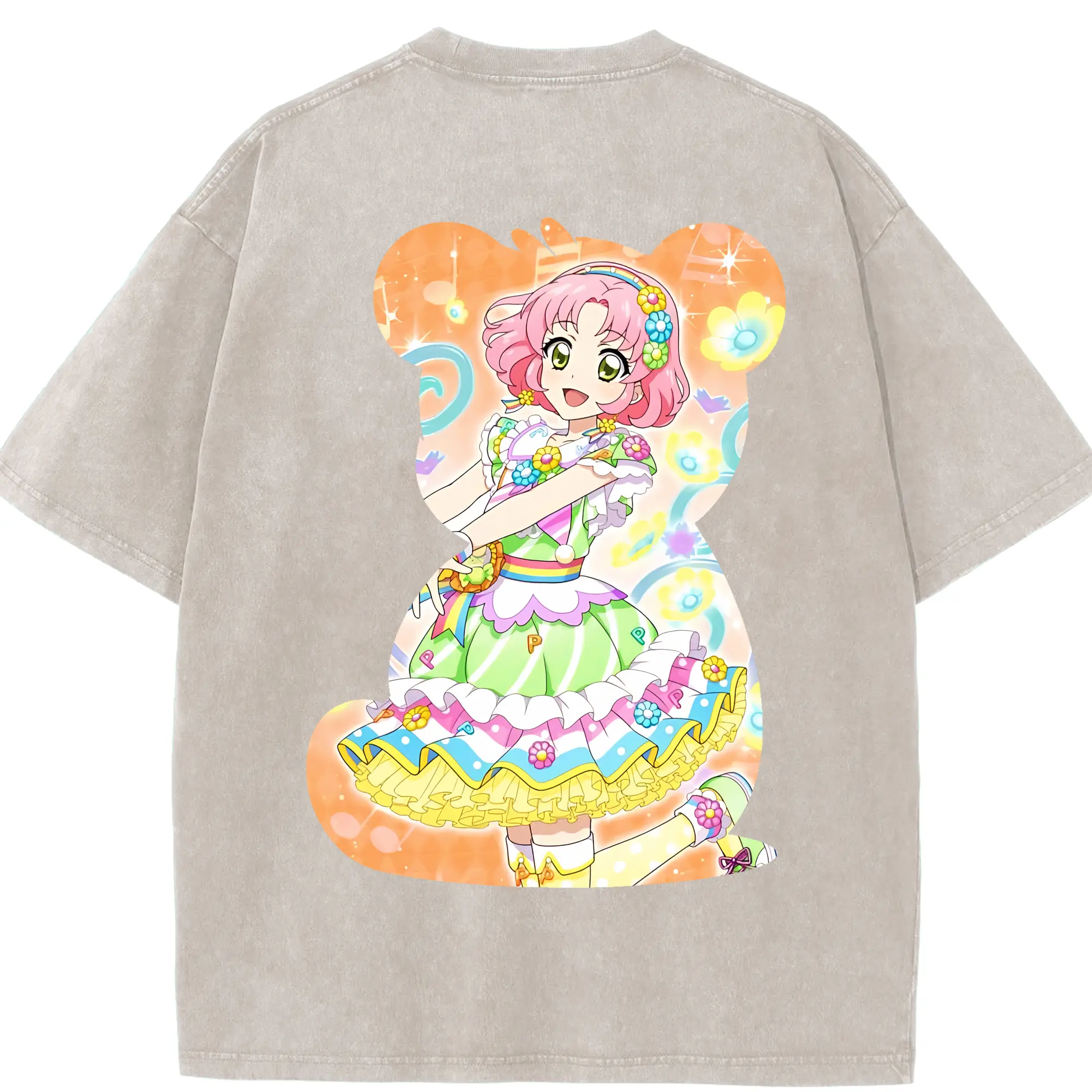 アイカツ グッズ 北大路 さくら - 綿100% ヴィンテージ風 半袖Tシャツ ・ 背面プリント ・ 柔らか肌触り ・ 通気性 快適 ・ スポーツ カジュアル 外出用