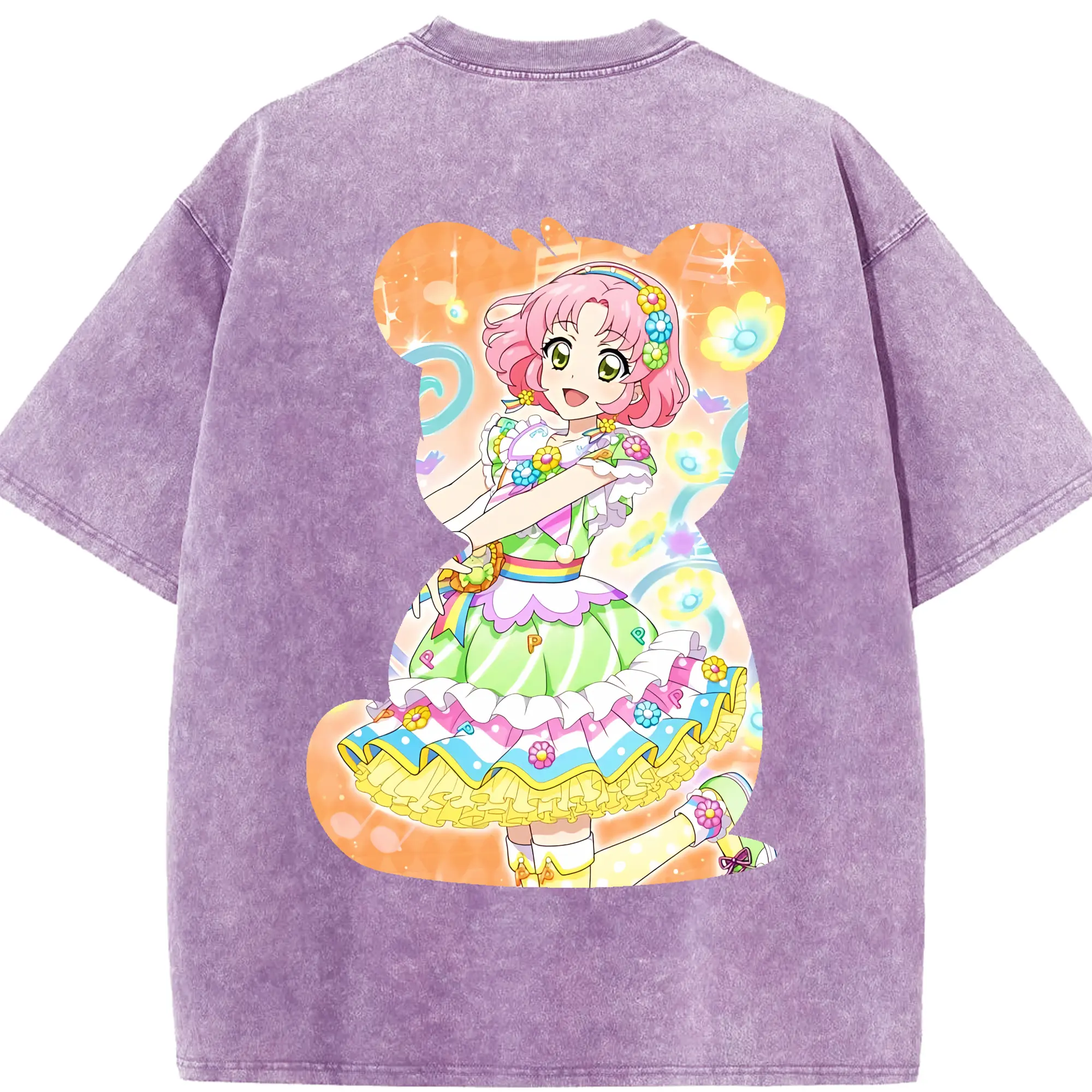 アイカツ グッズ 氷上 スミレ - 綿100% ヴィンテージ風 半袖Tシャツ ・ 背面プリント ・ 柔らか肌触り ・ 通気性 快適 ・ スポーツ カジュアル 外出用