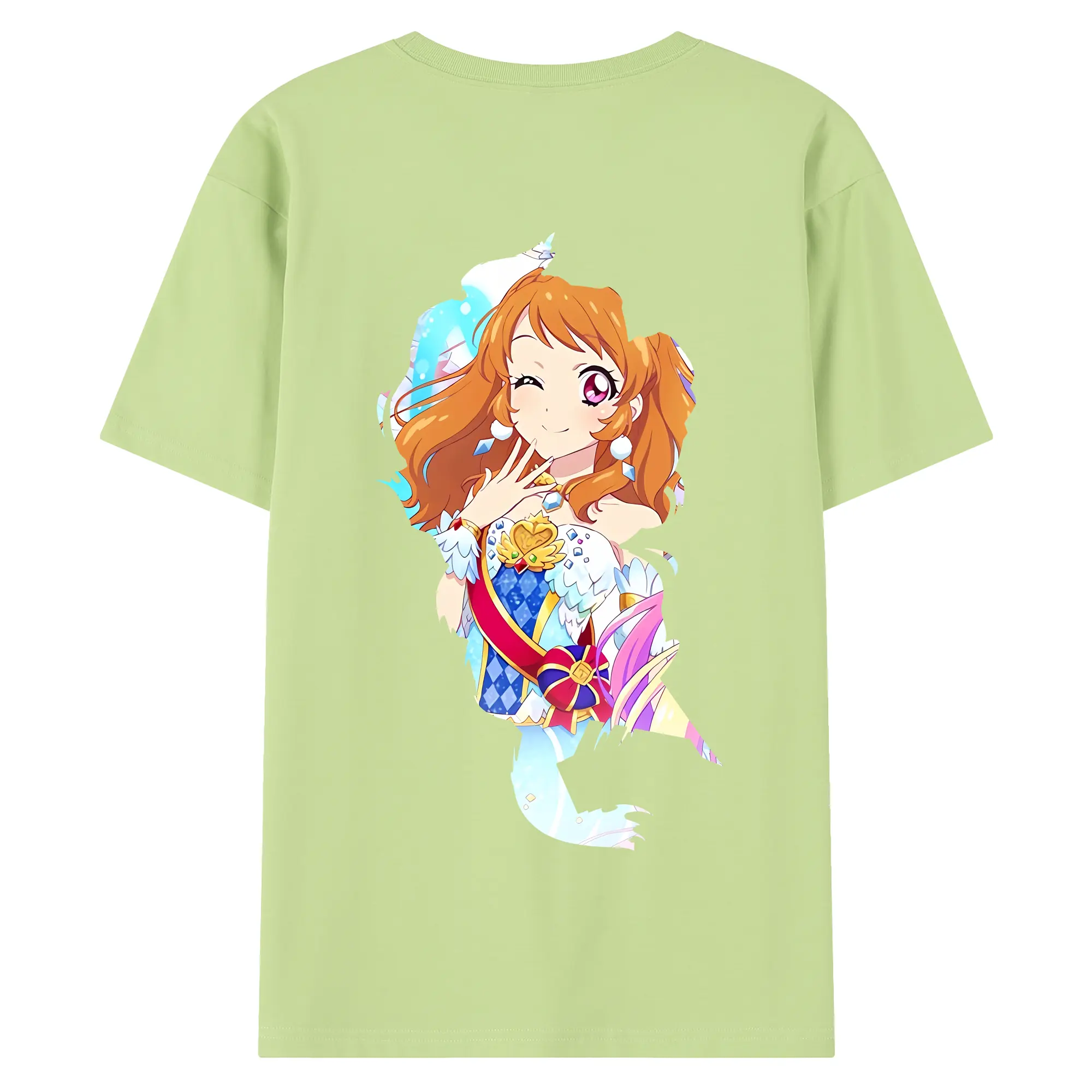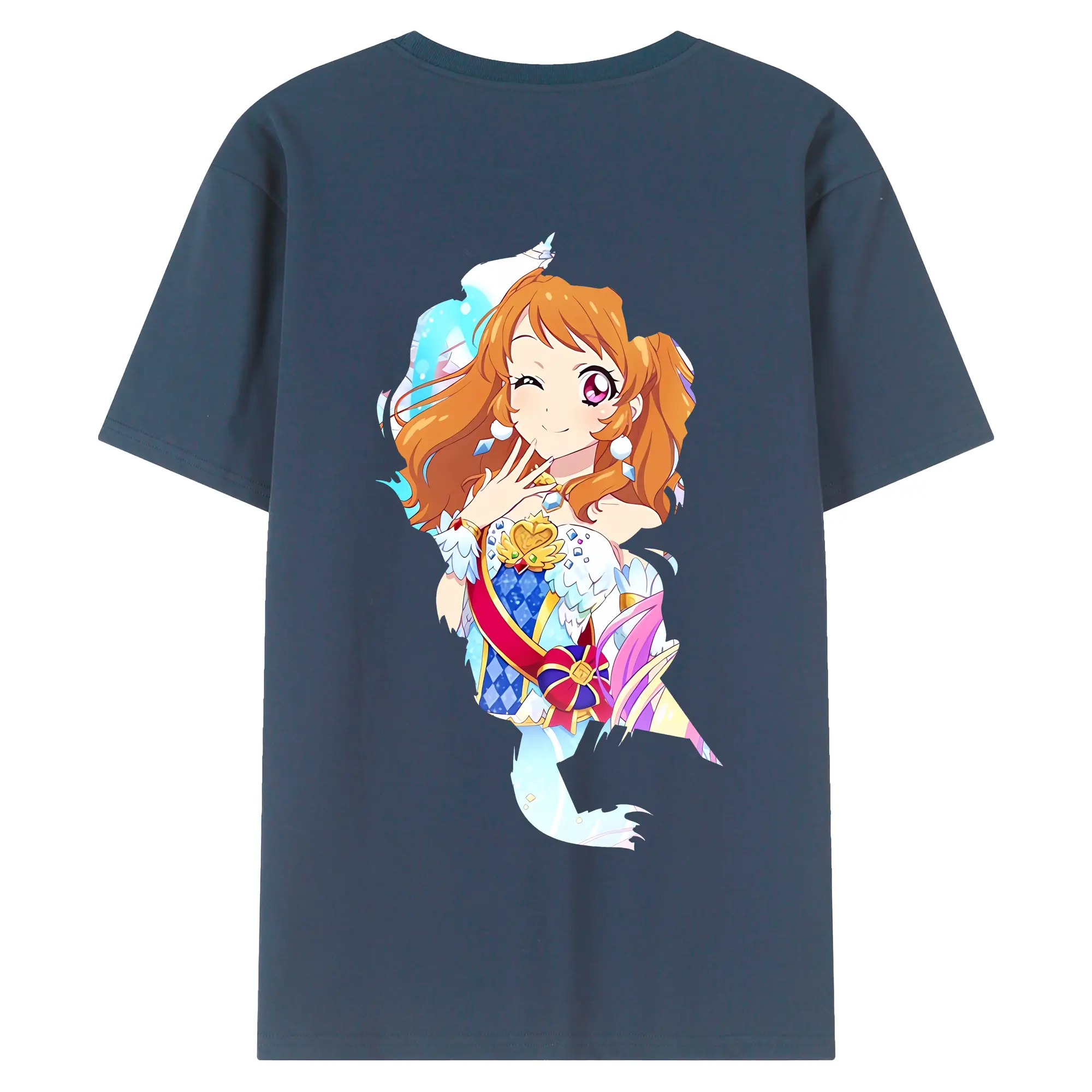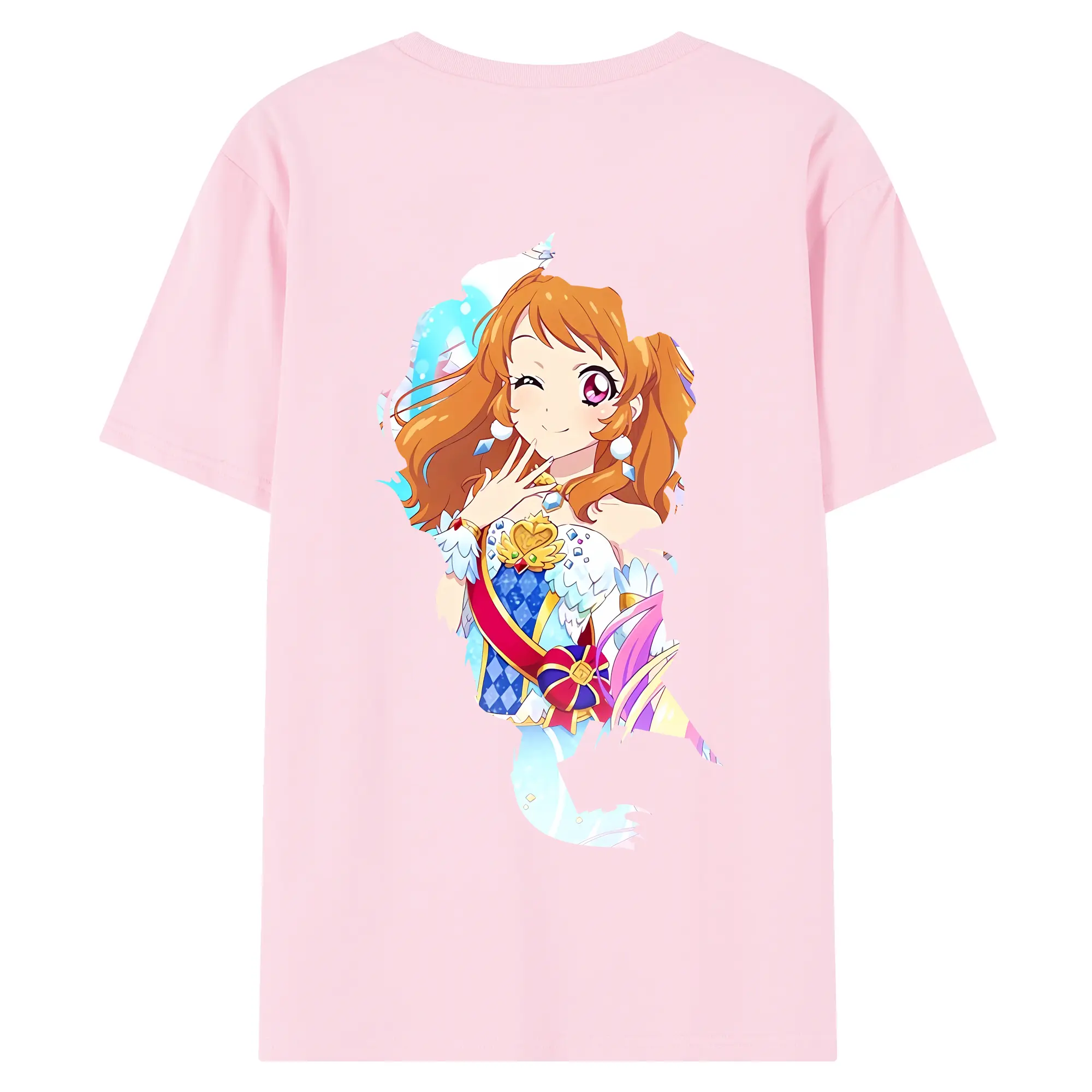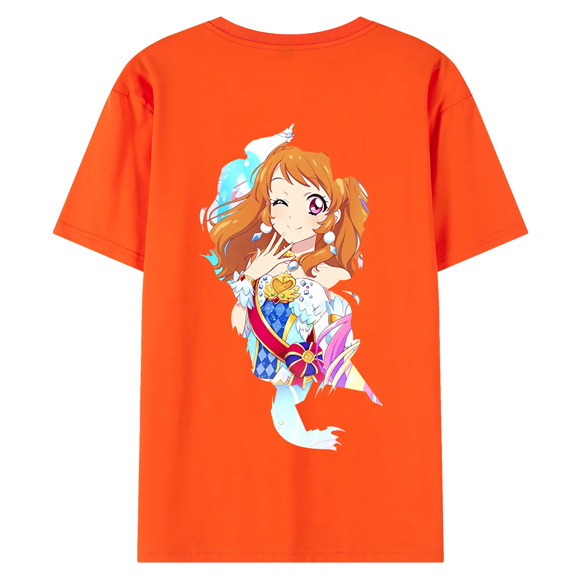 アイカツ グッズ 大空 あかり - 綿100% ヴィンテージ風 半袖Tシャツ ・ 背面プリント ・ 柔らか肌触り ・ 通気性 快適 ・ スポーツ カジュアル 外出用