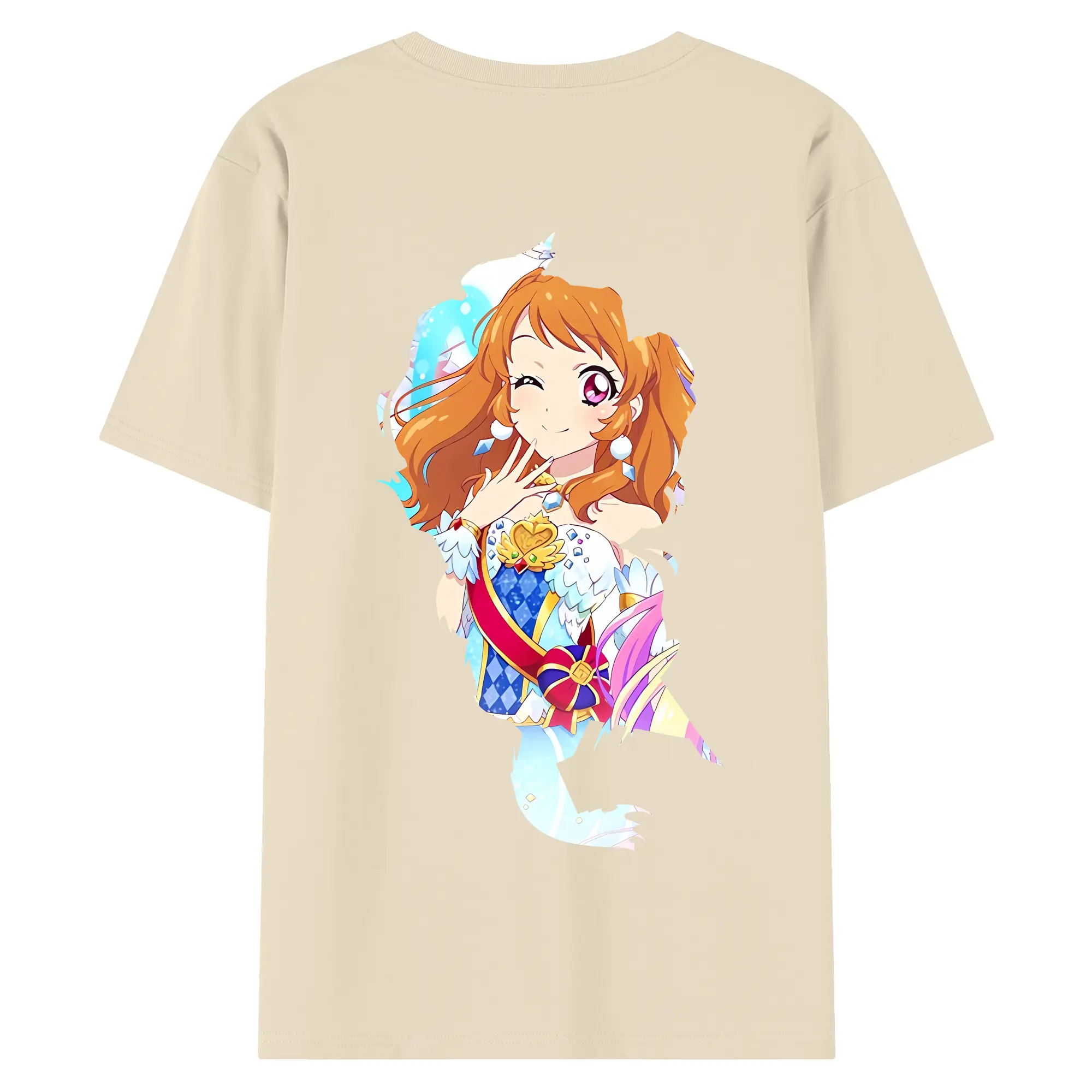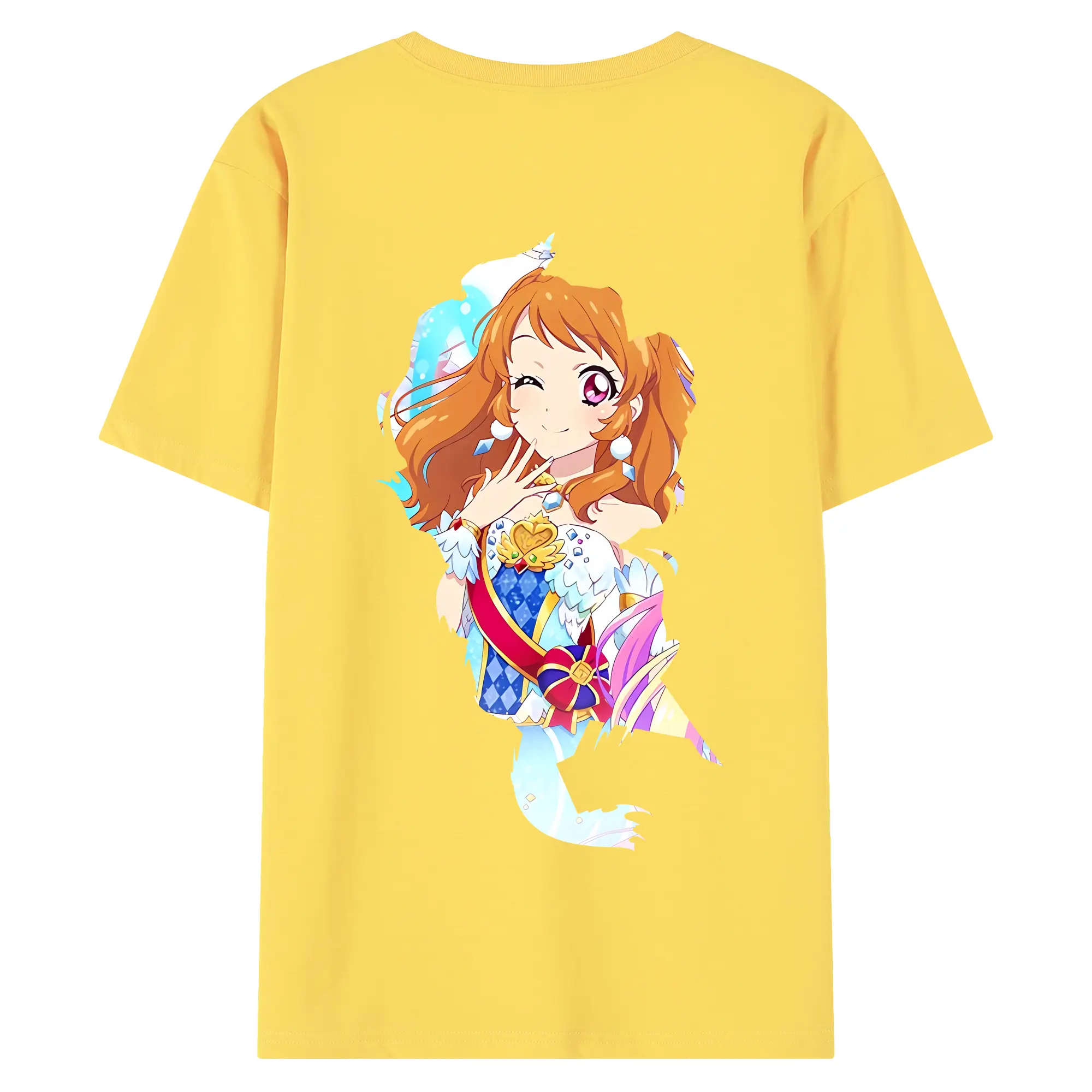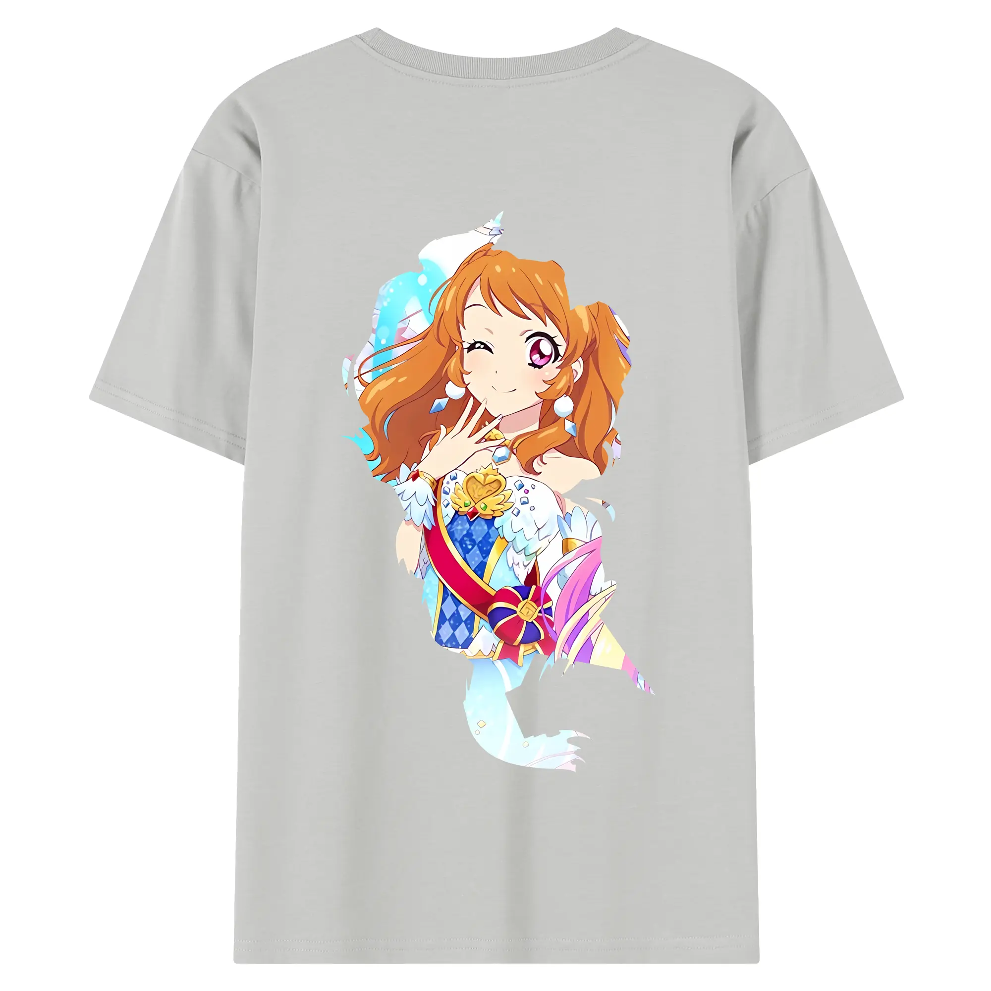 アイカツ グッズ 大空 あかり - 綿100% ヴィンテージ風 半袖Tシャツ ・ 背面プリント ・ 柔らか肌触り ・ 通気性 快適 ・ スポーツ カジュアル 外出用