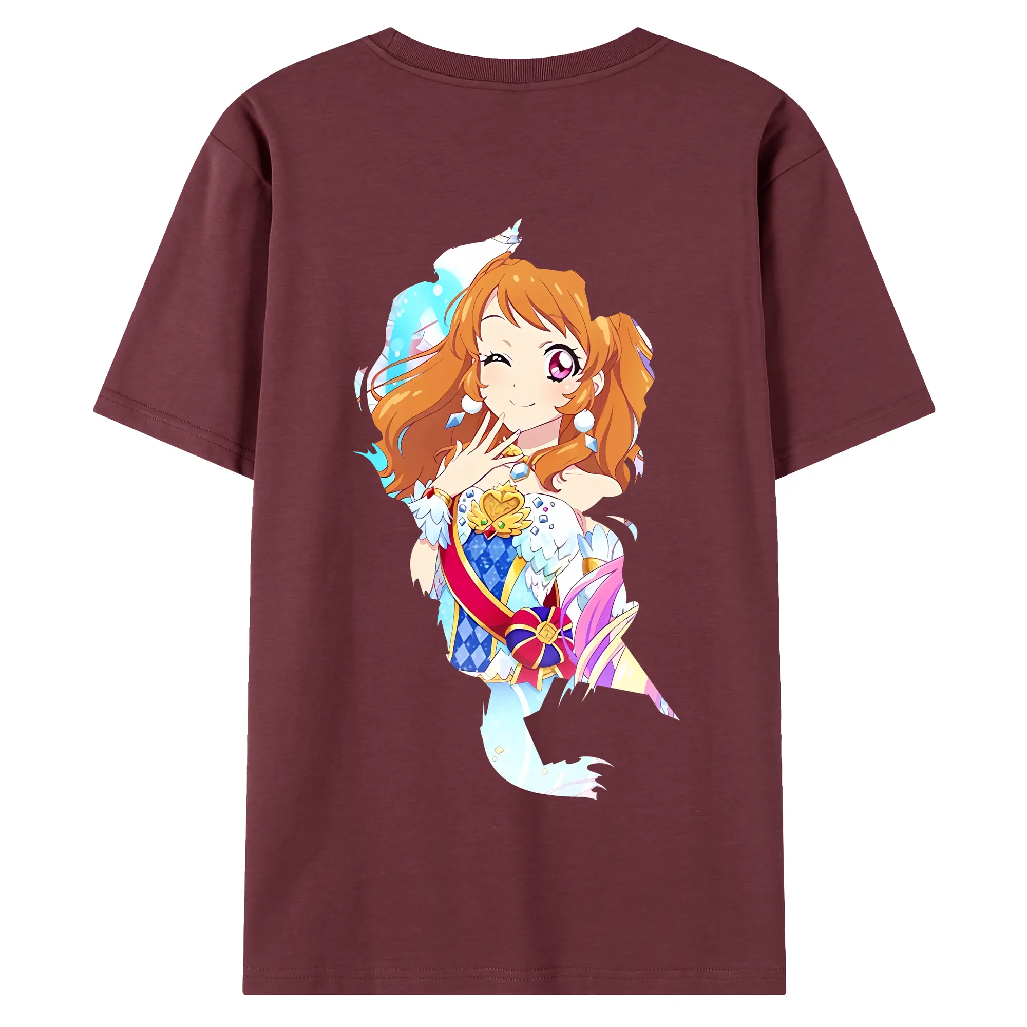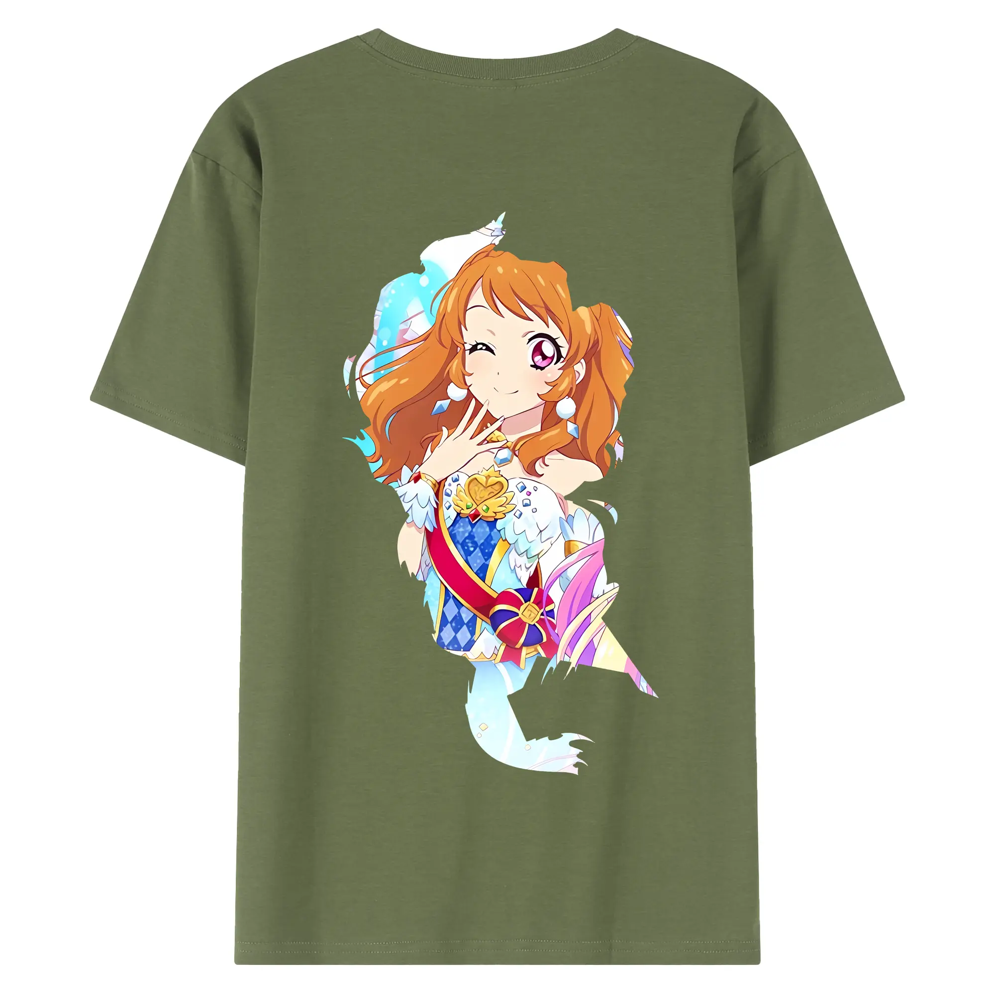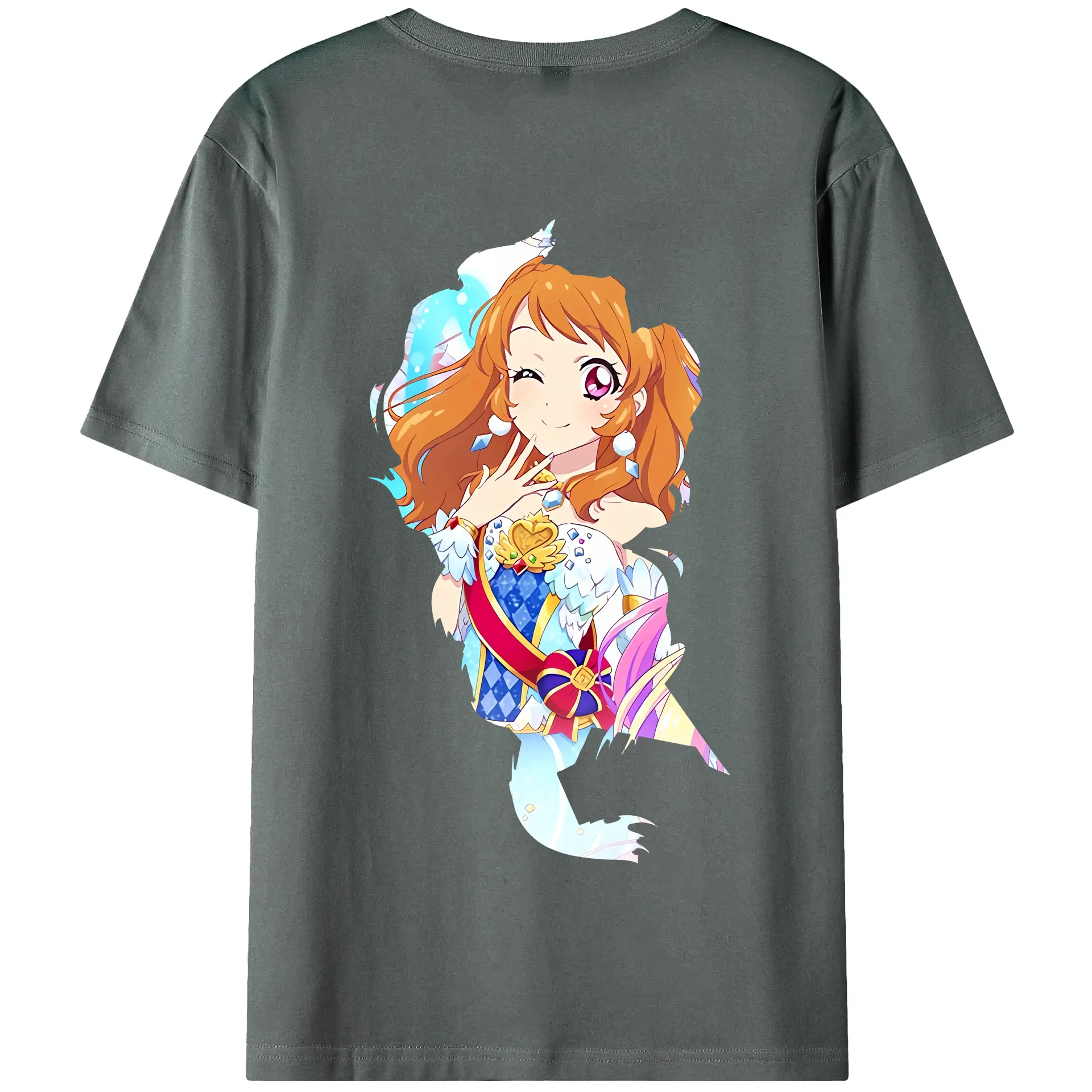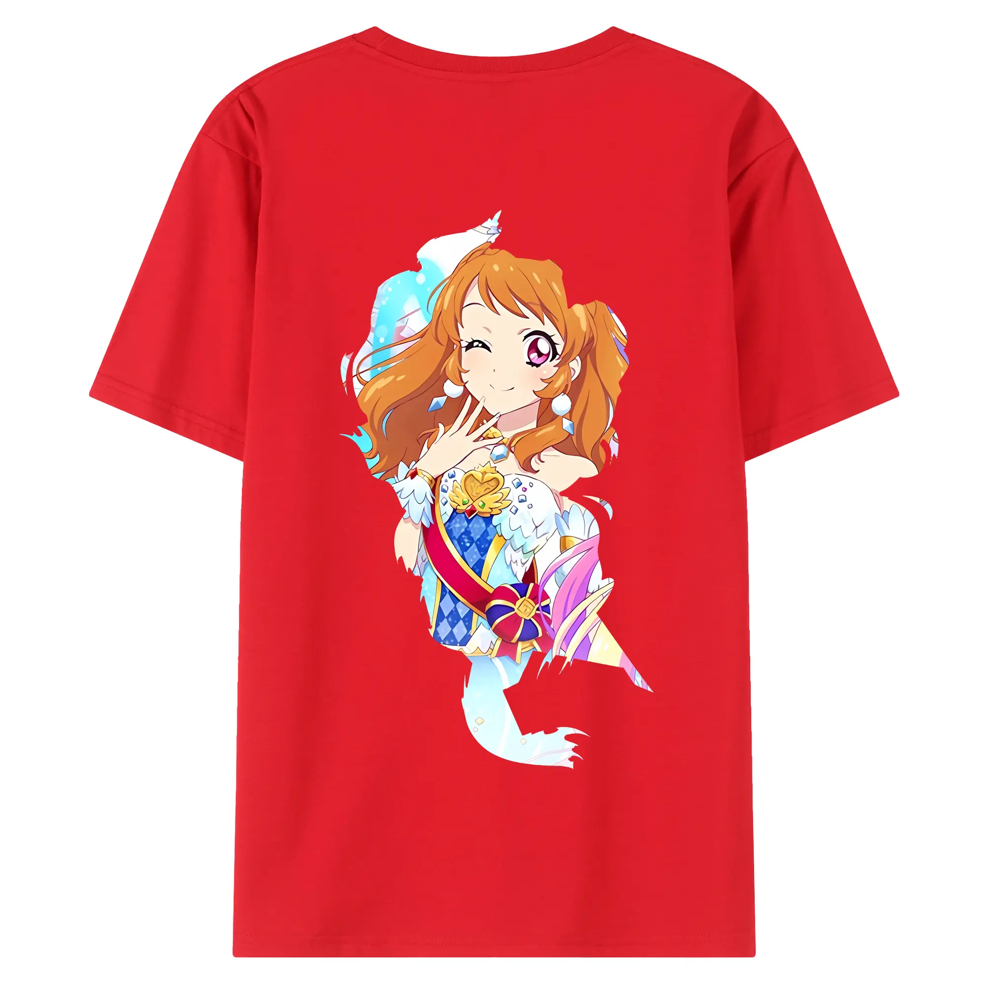 アイカツ グッズ 大空 あかり - 綿100% ヴィンテージ風 半袖Tシャツ ・ 背面プリント ・ 柔らか肌触り ・ 通気性 快適 ・ スポーツ カジュアル 外出用