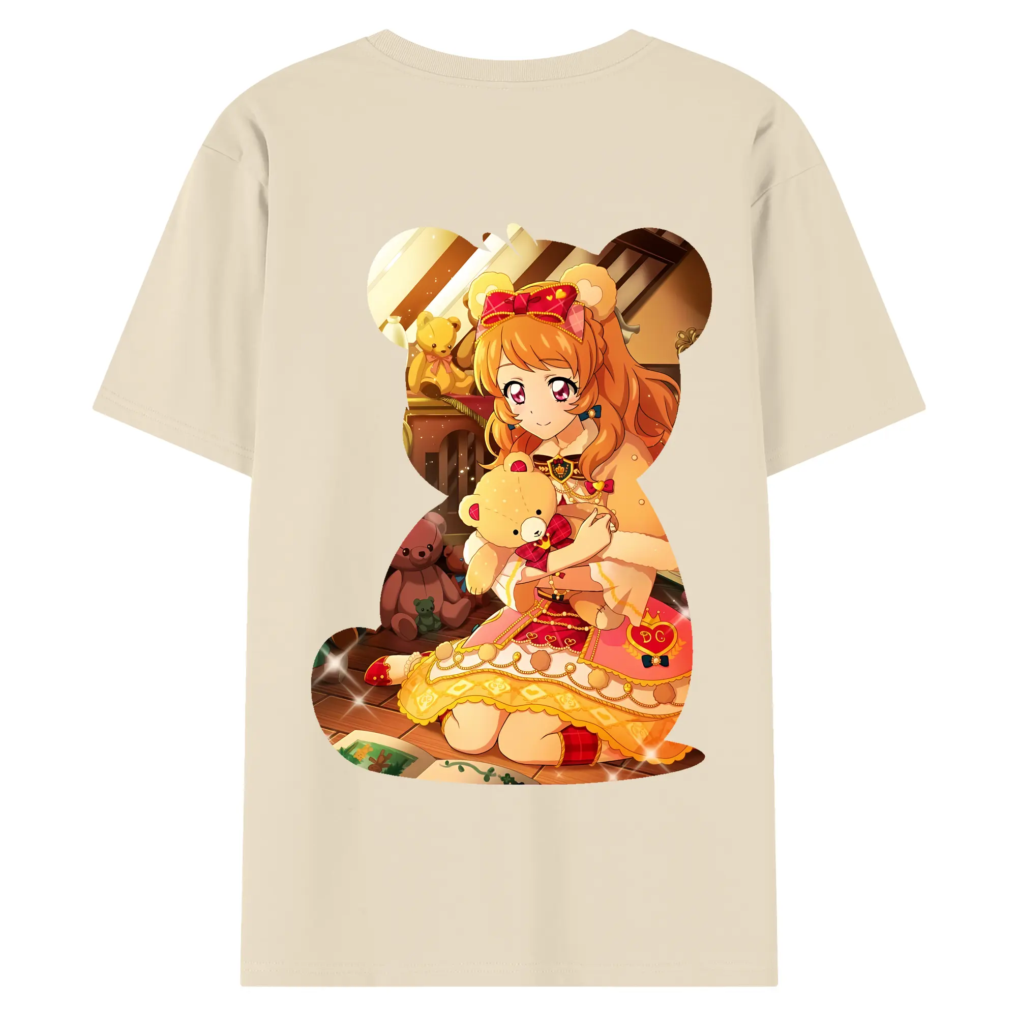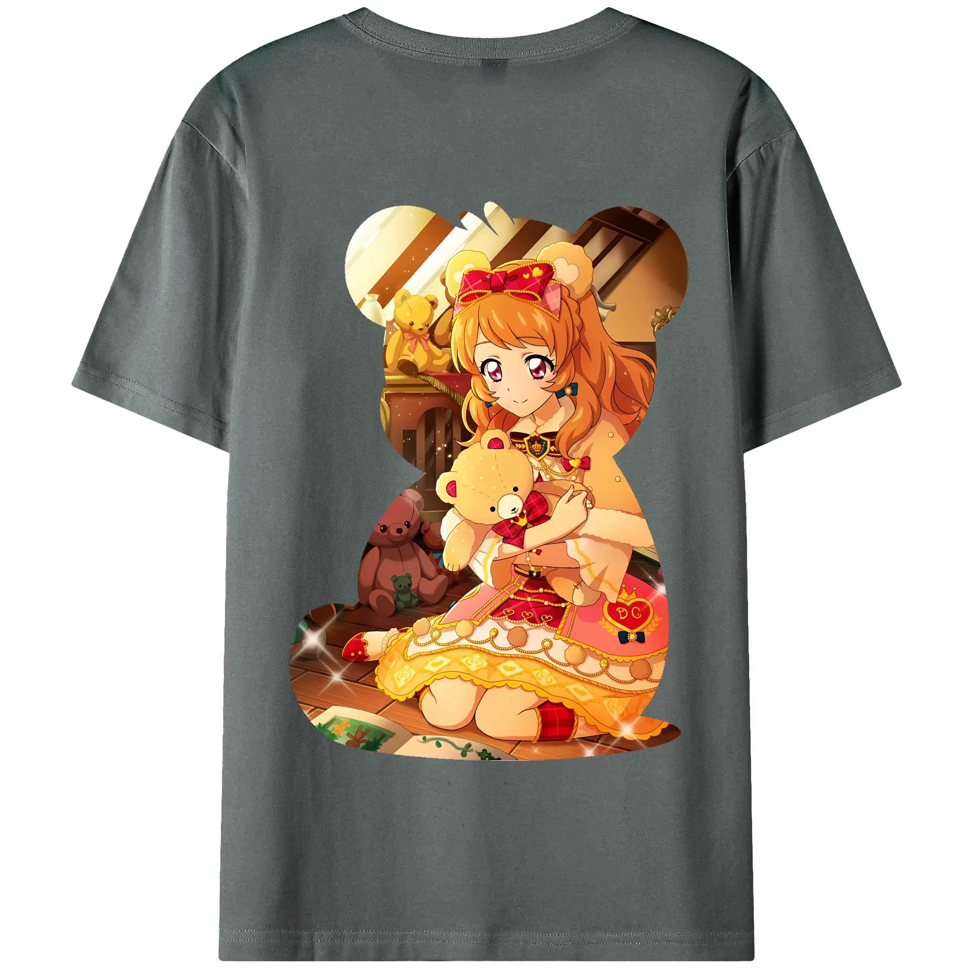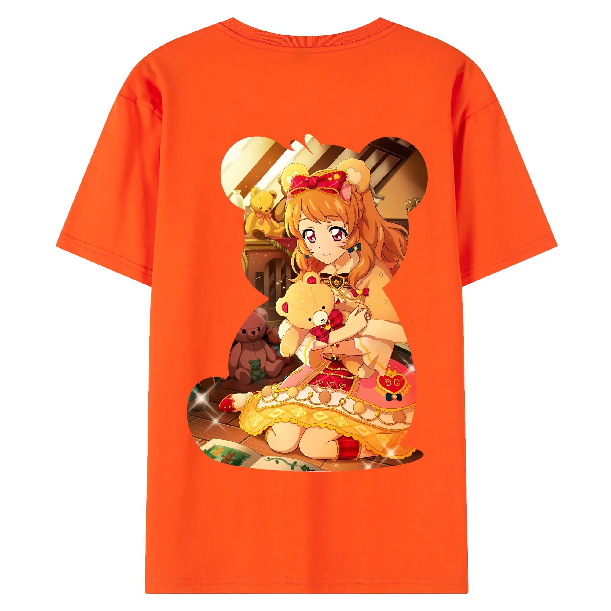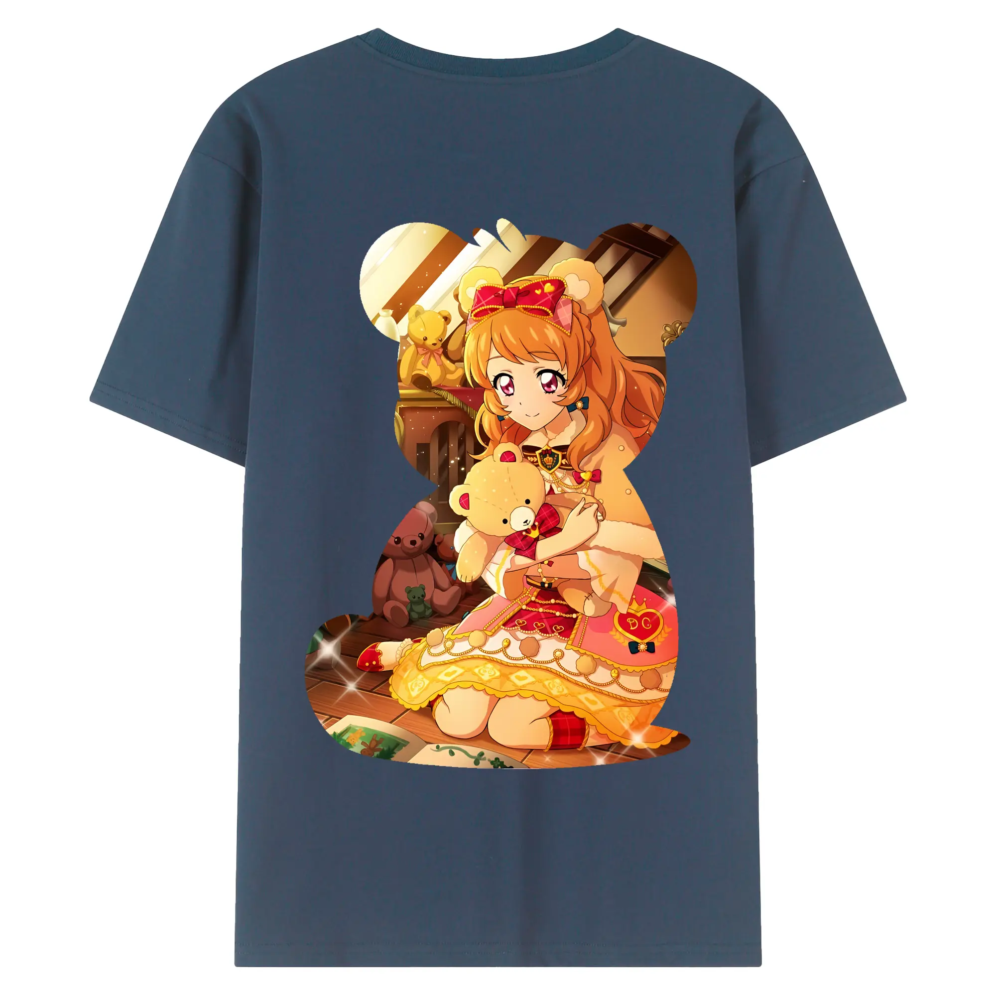 アイカツ グッズ 大空 あかり - 綿100% ヴィンテージ風 半袖Tシャツ ・ 背面プリント ・ 柔らか肌触り ・ 通気性 快適 ・ スポーツ カジュアル 外出用