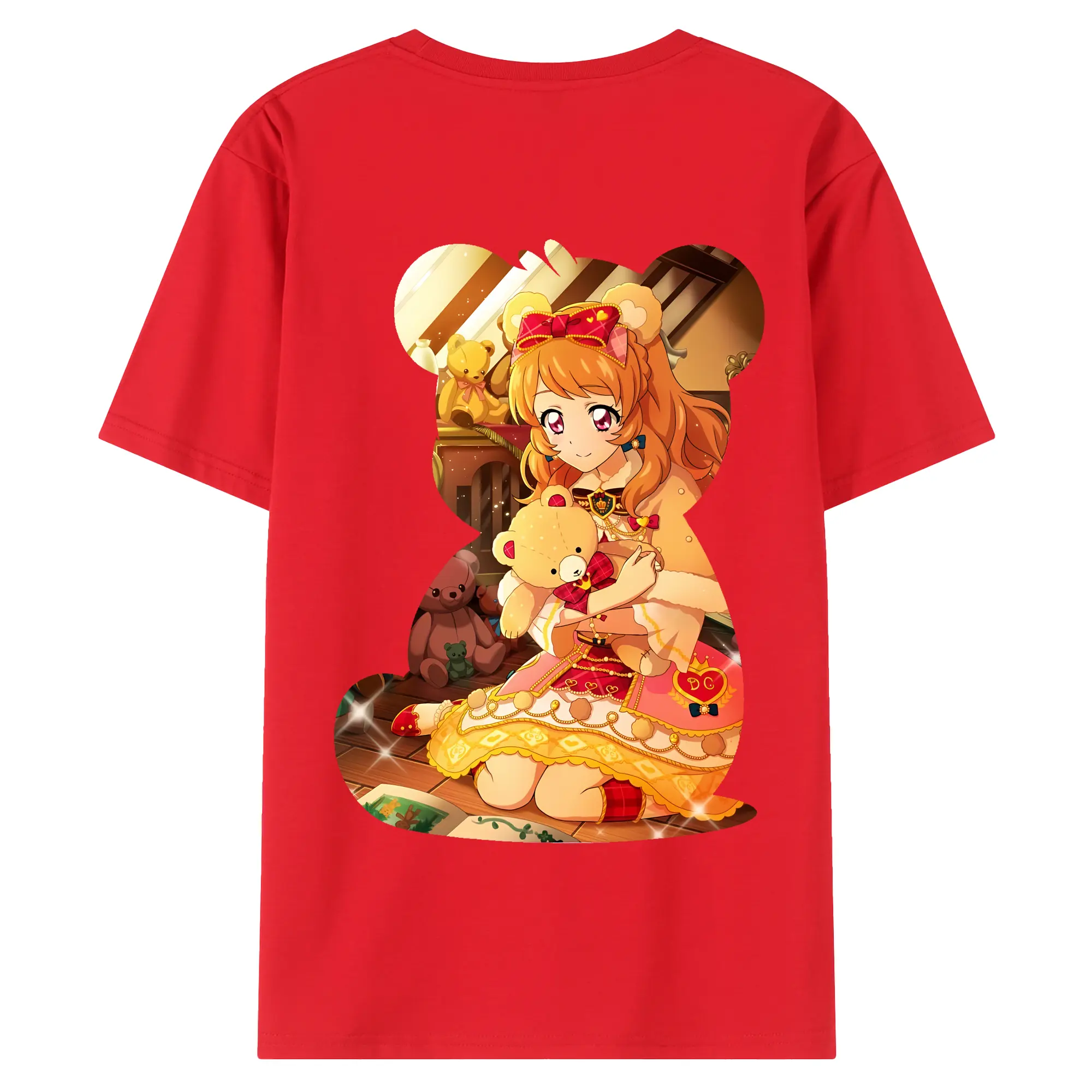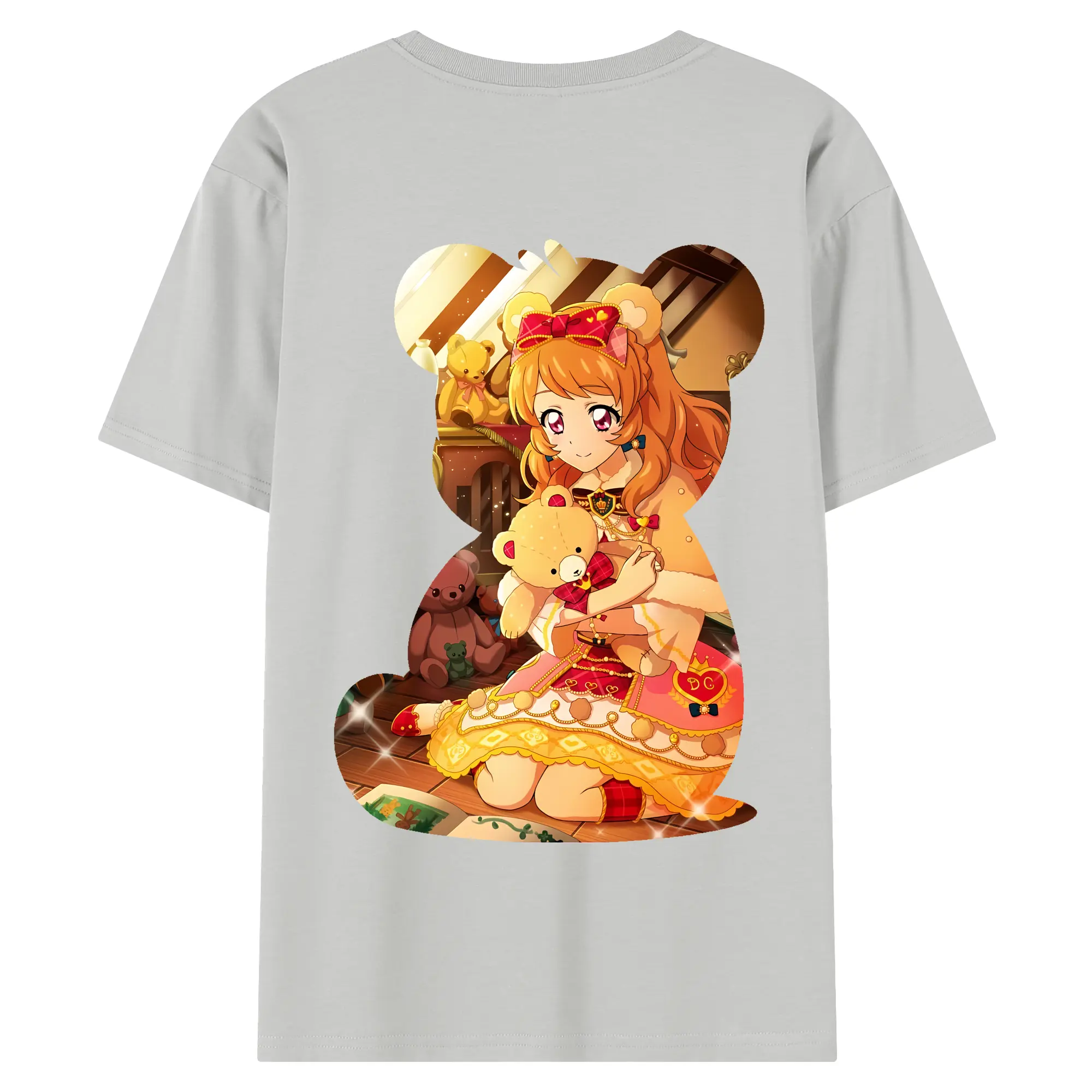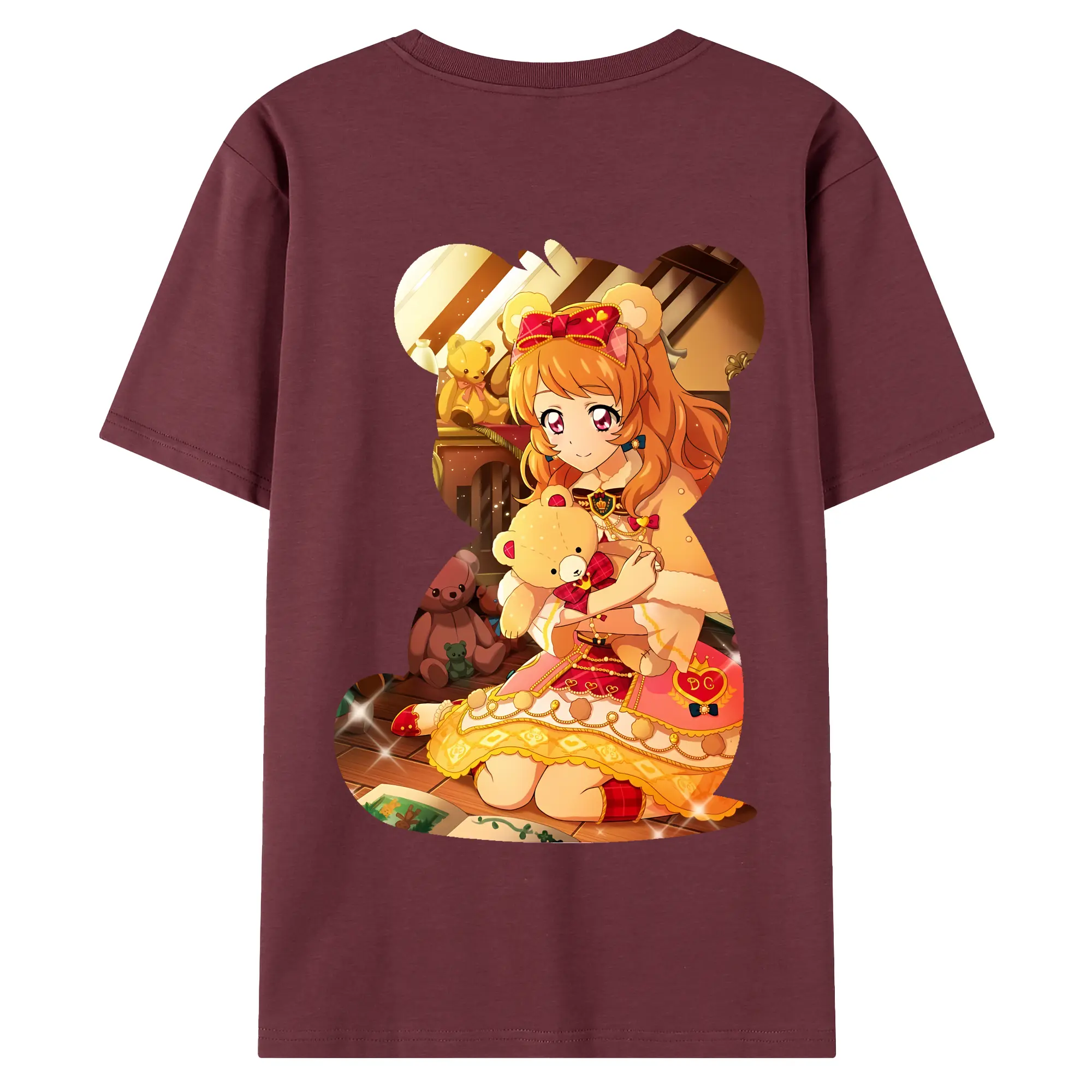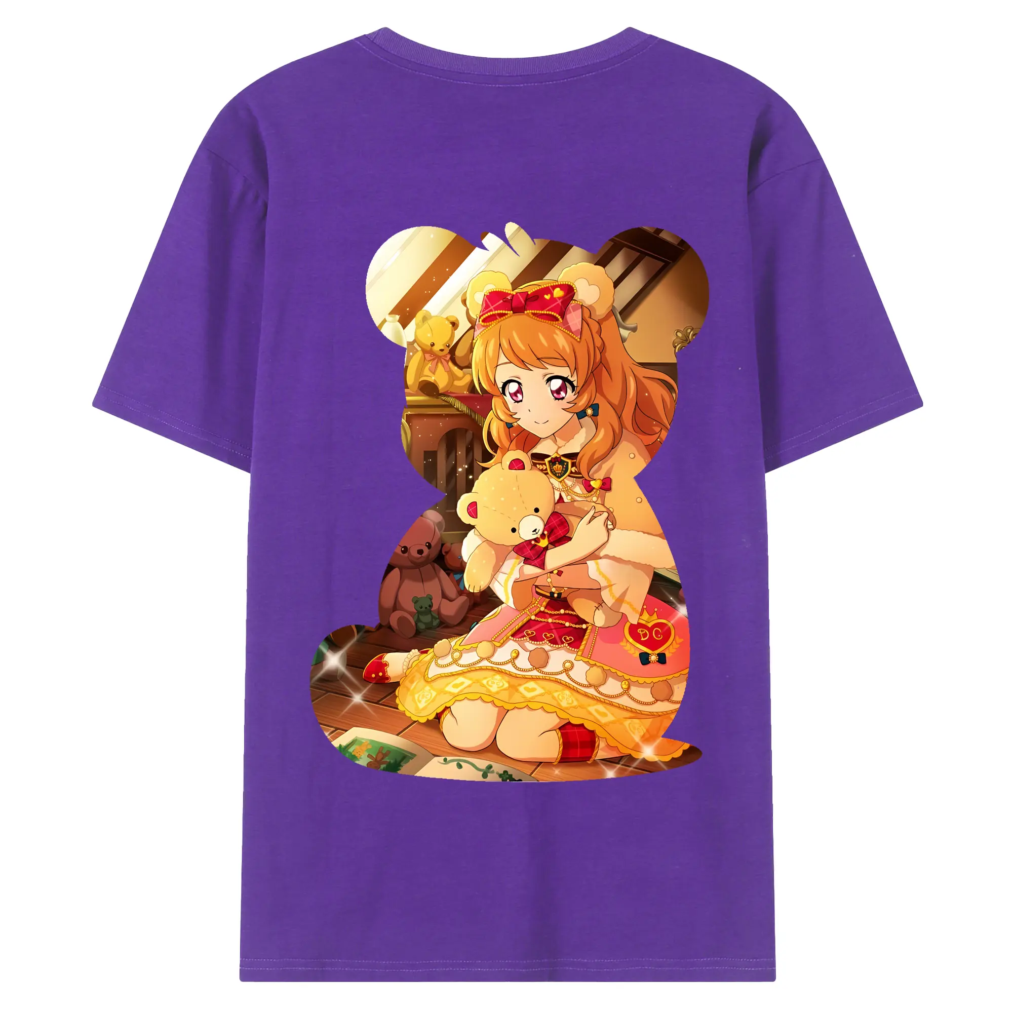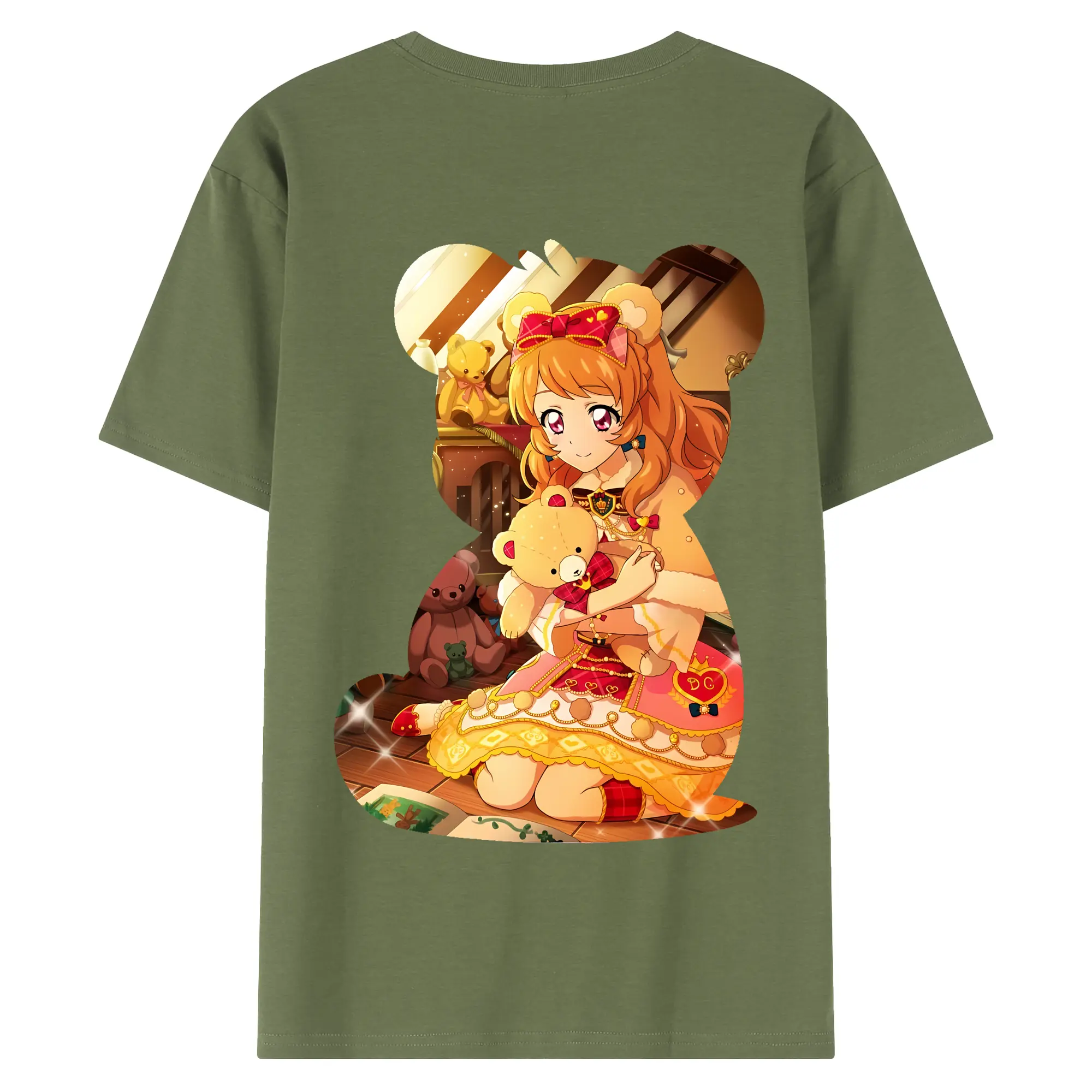 アイカツ グッズ 大空 あかり - 綿100% ヴィンテージ風 半袖Tシャツ ・ 背面プリント ・ 柔らか肌触り ・ 通気性 快適 ・ スポーツ カジュアル 外出用