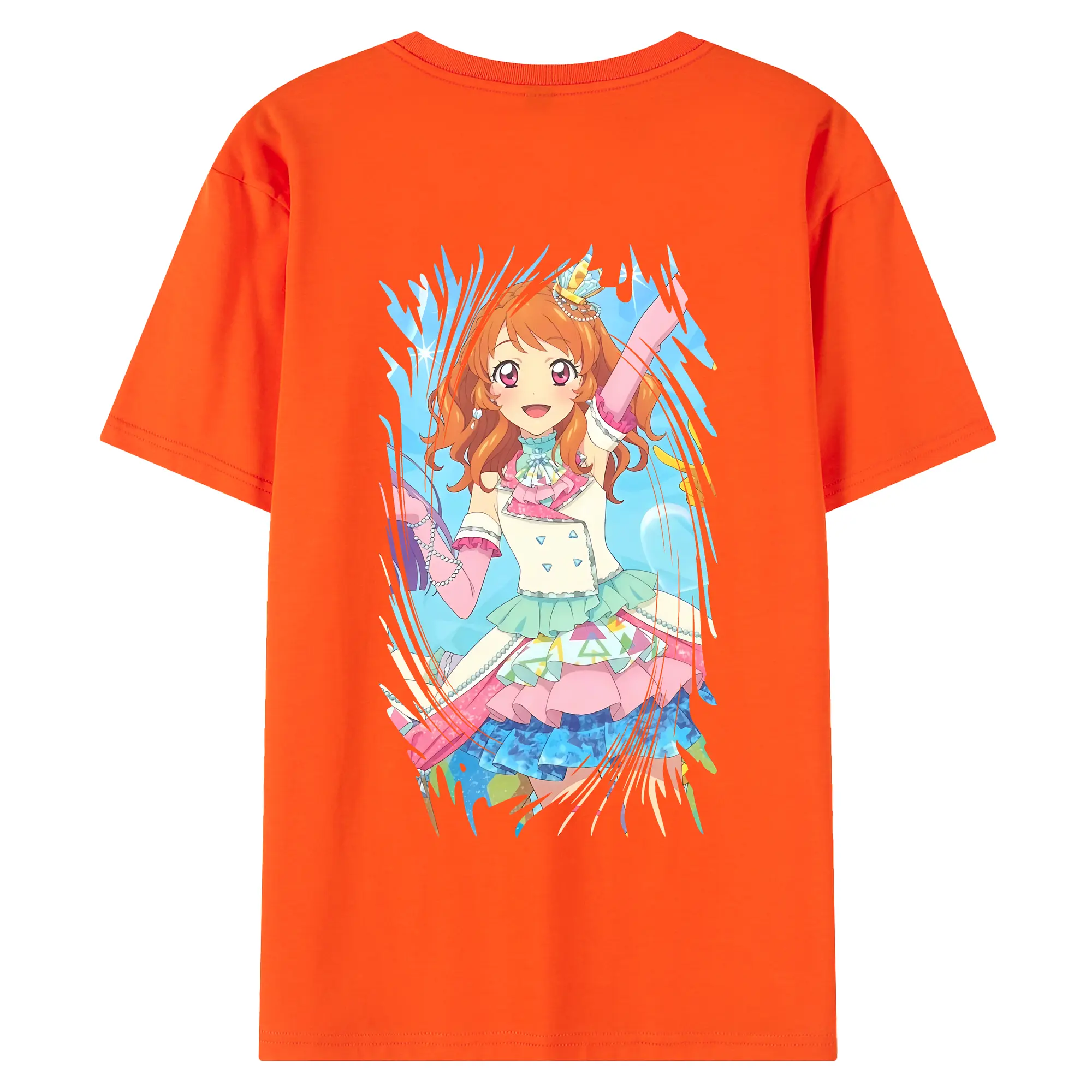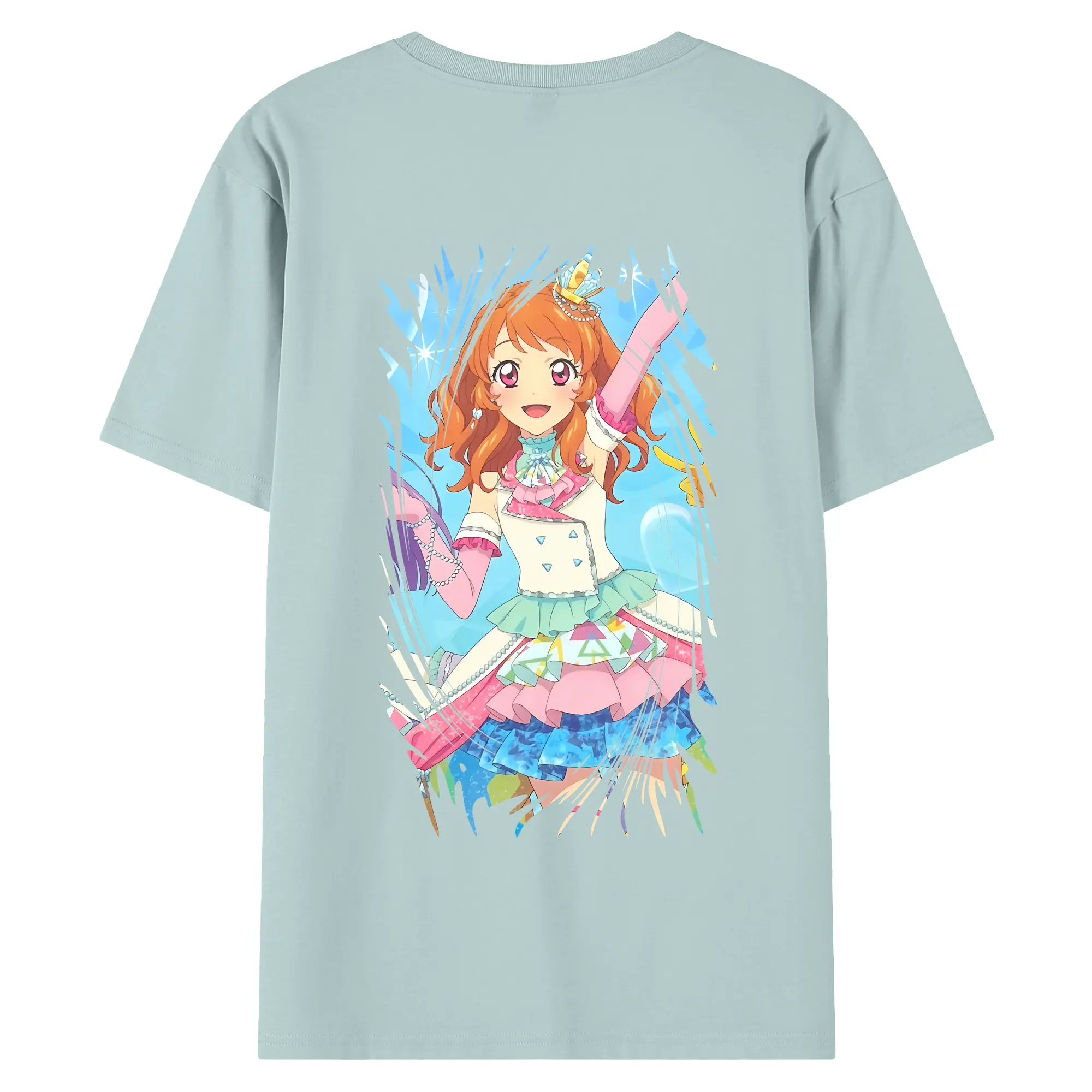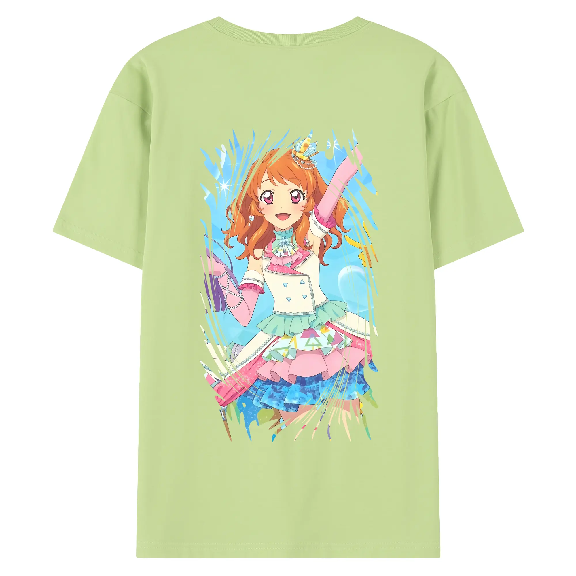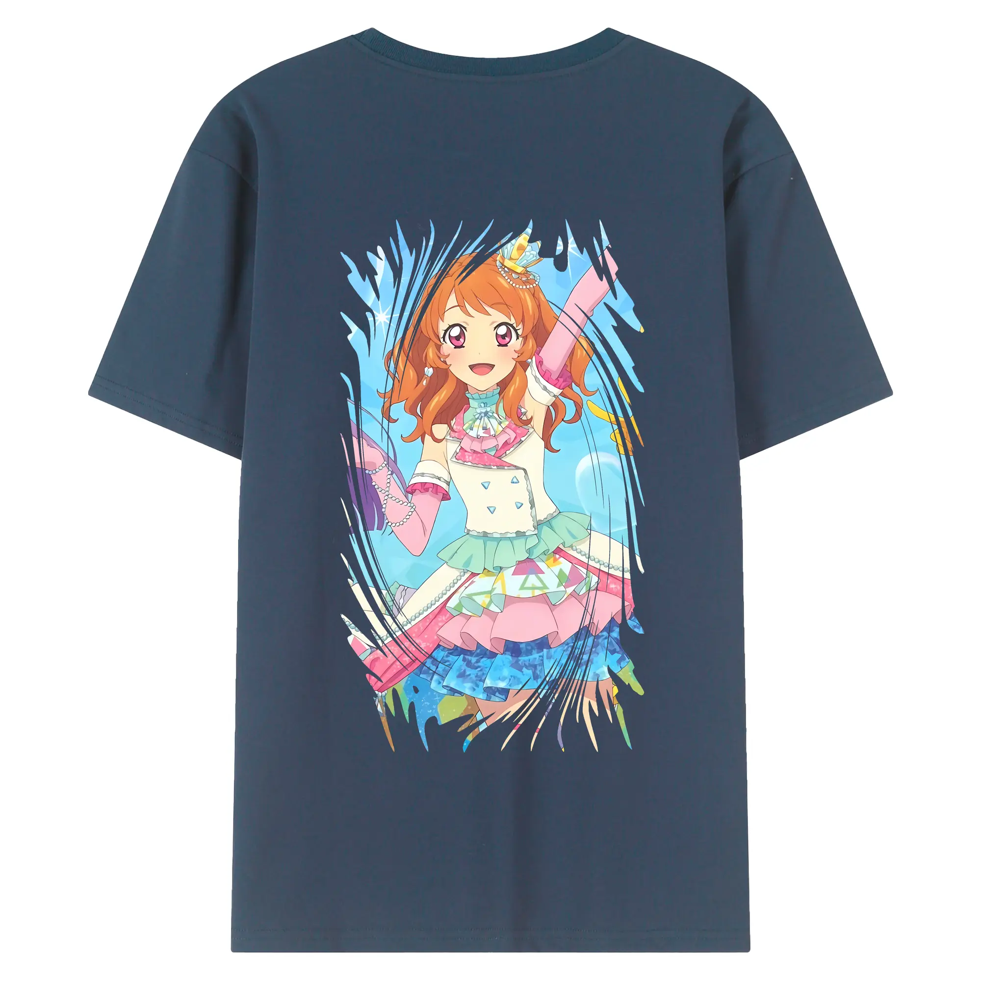 アイカツ グッズ 大空 あかり - 綿100% ヴィンテージ風 半袖Tシャツ ・ 背面プリント ・ 柔らか肌触り ・ 通気性 快適 ・ スポーツ カジュアル 外出用