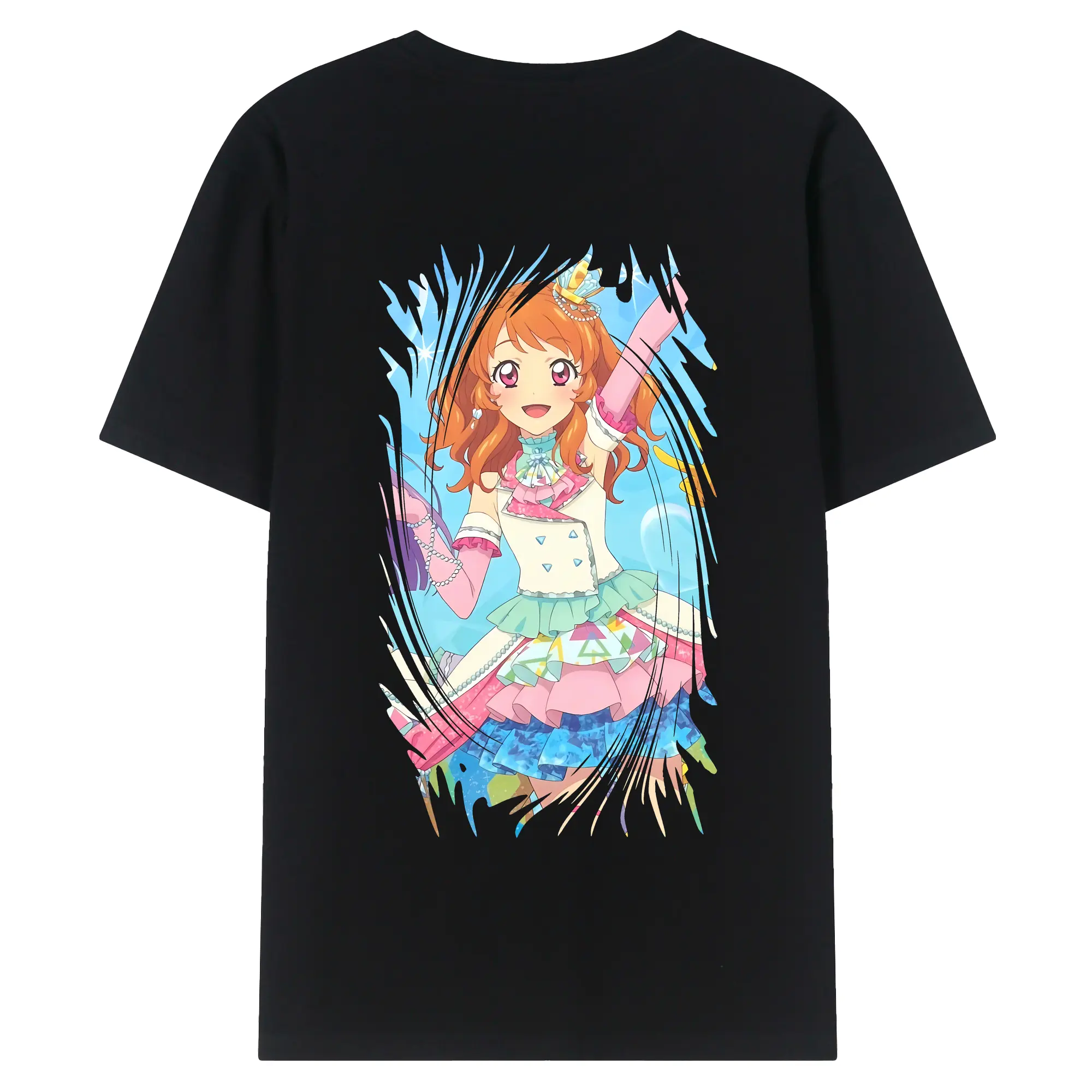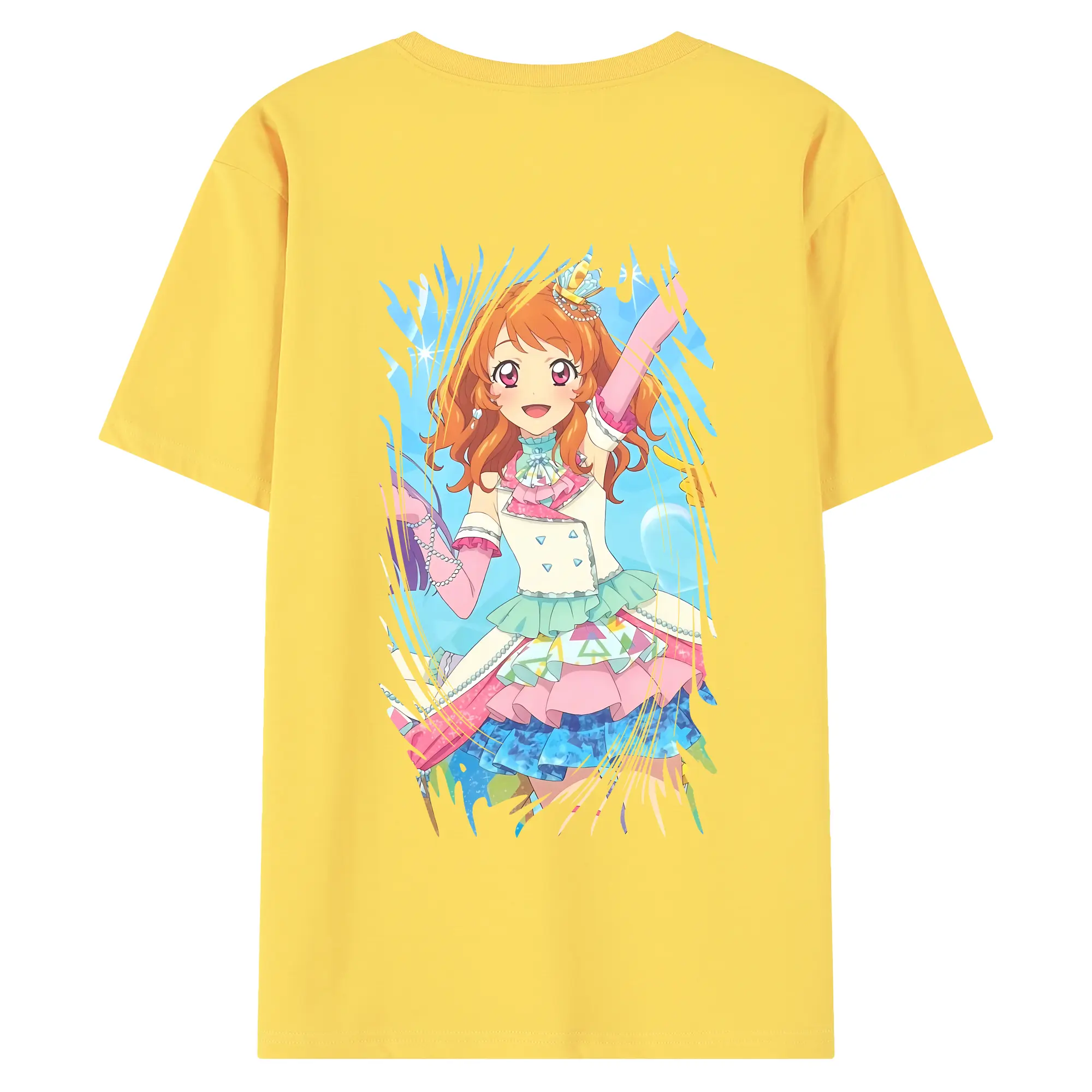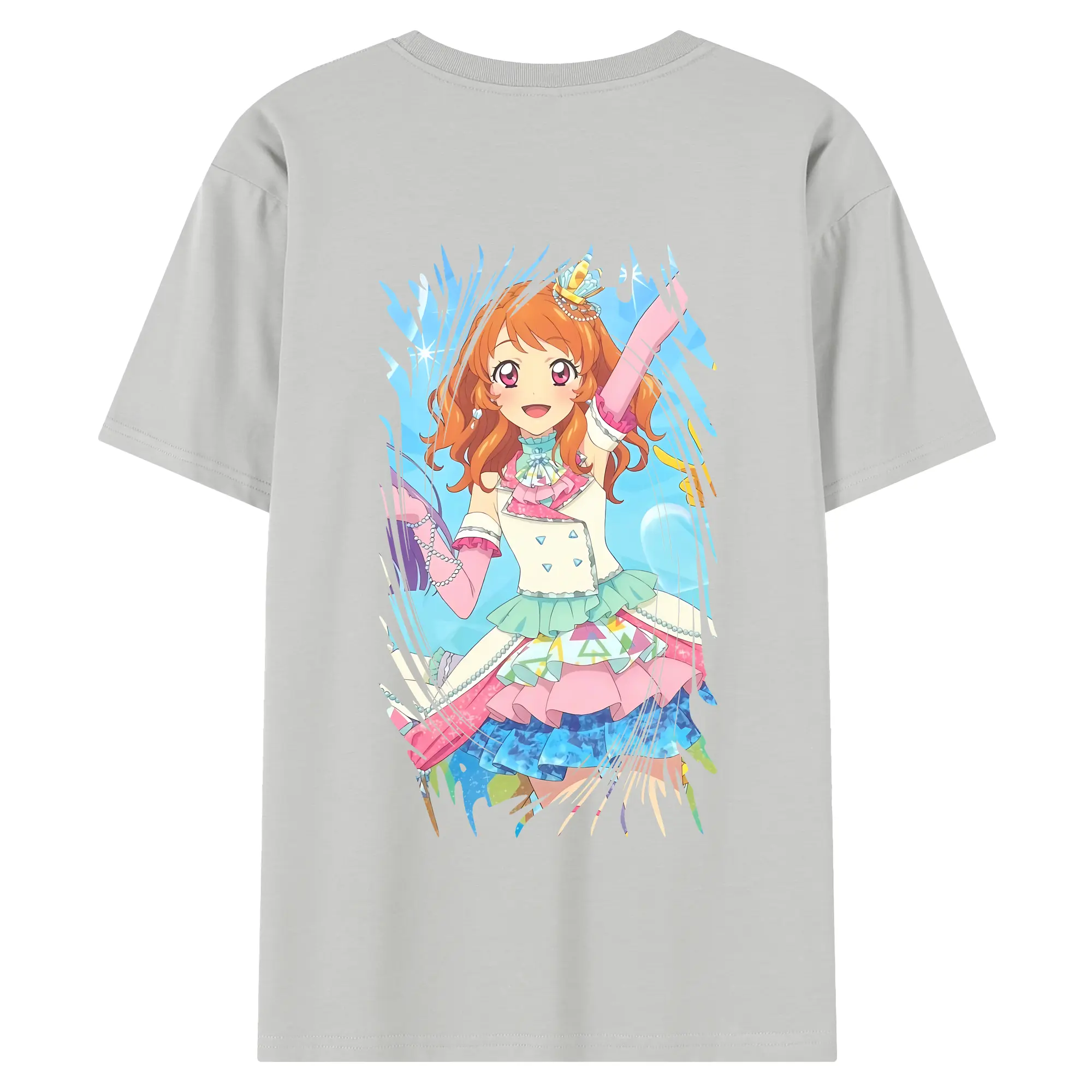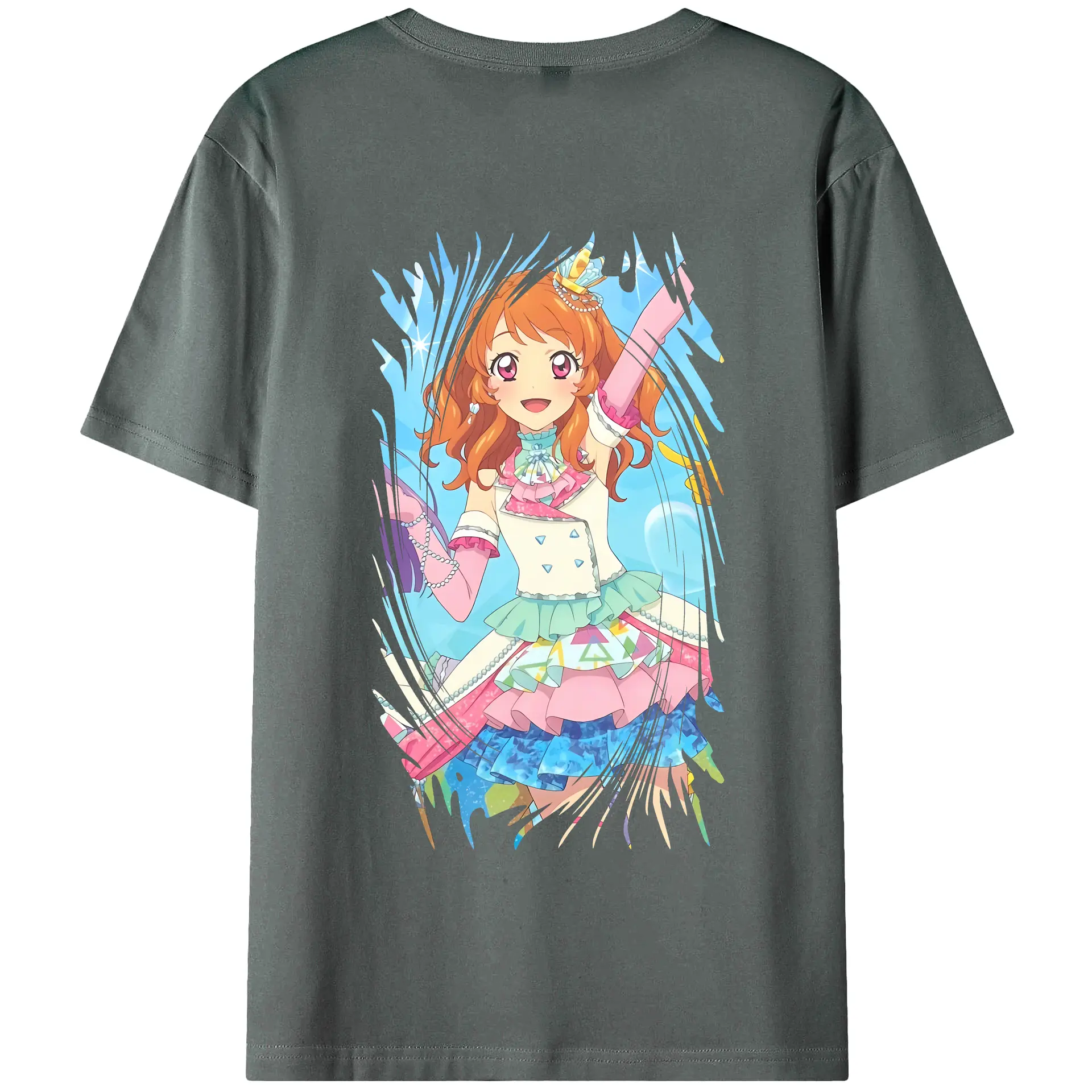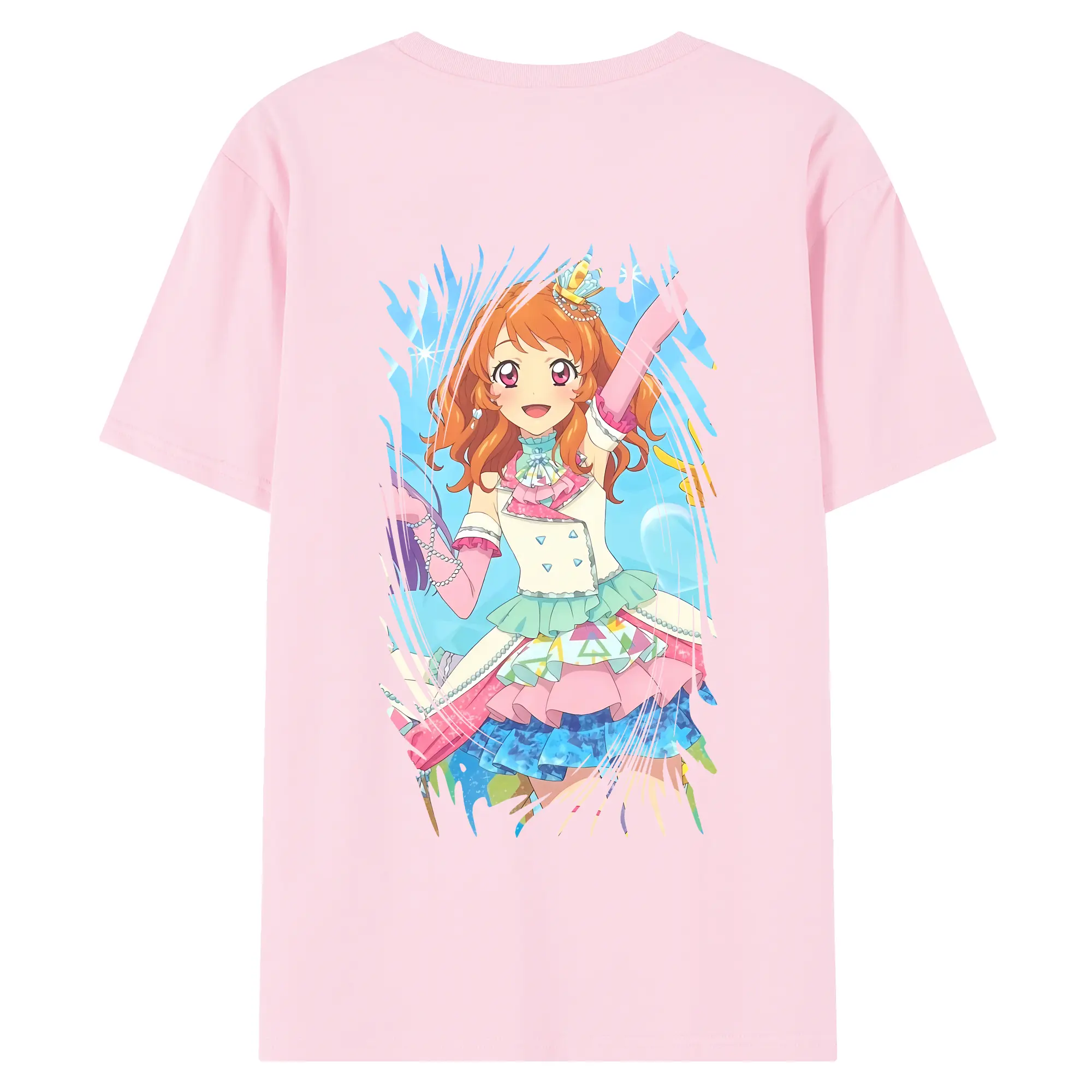 アイカツ グッズ 大空 あかり - 綿100% ヴィンテージ風 半袖Tシャツ ・ 背面プリント ・ 柔らか肌触り ・ 通気性 快適 ・ スポーツ カジュアル 外出用