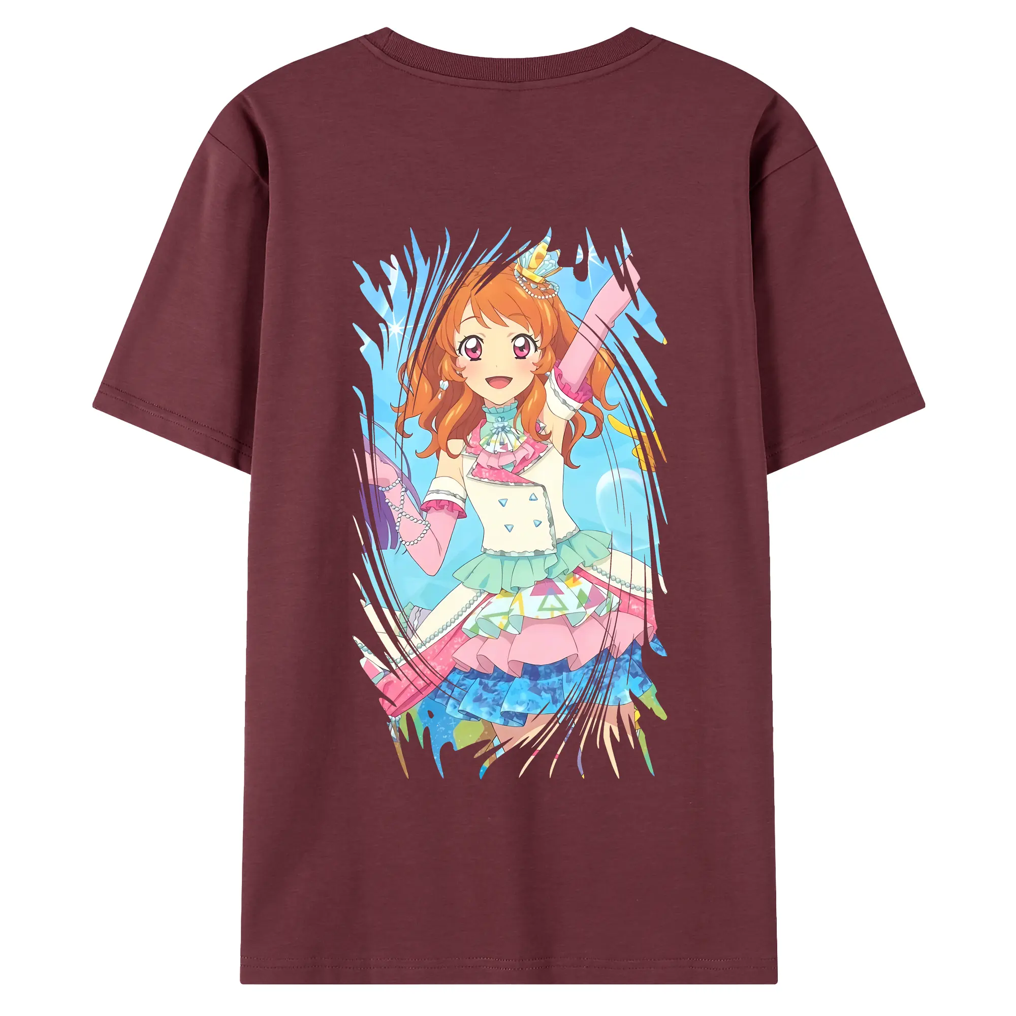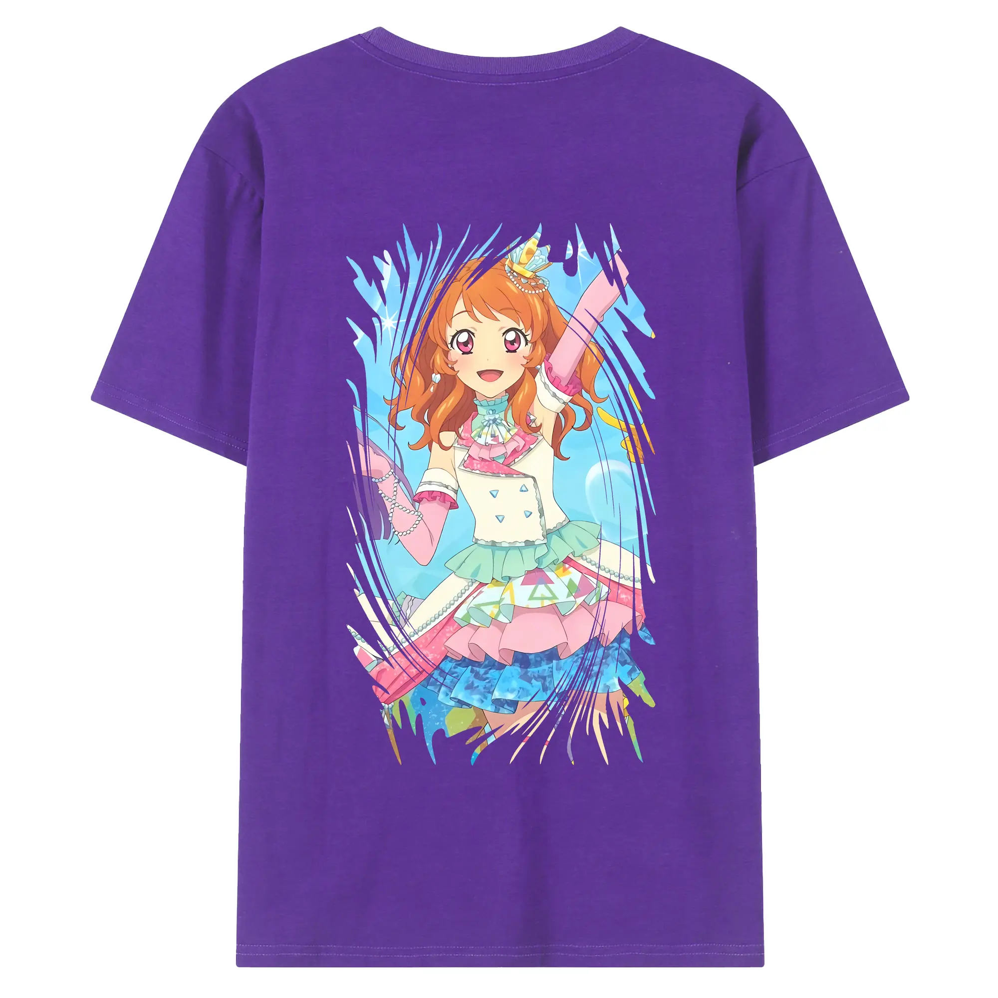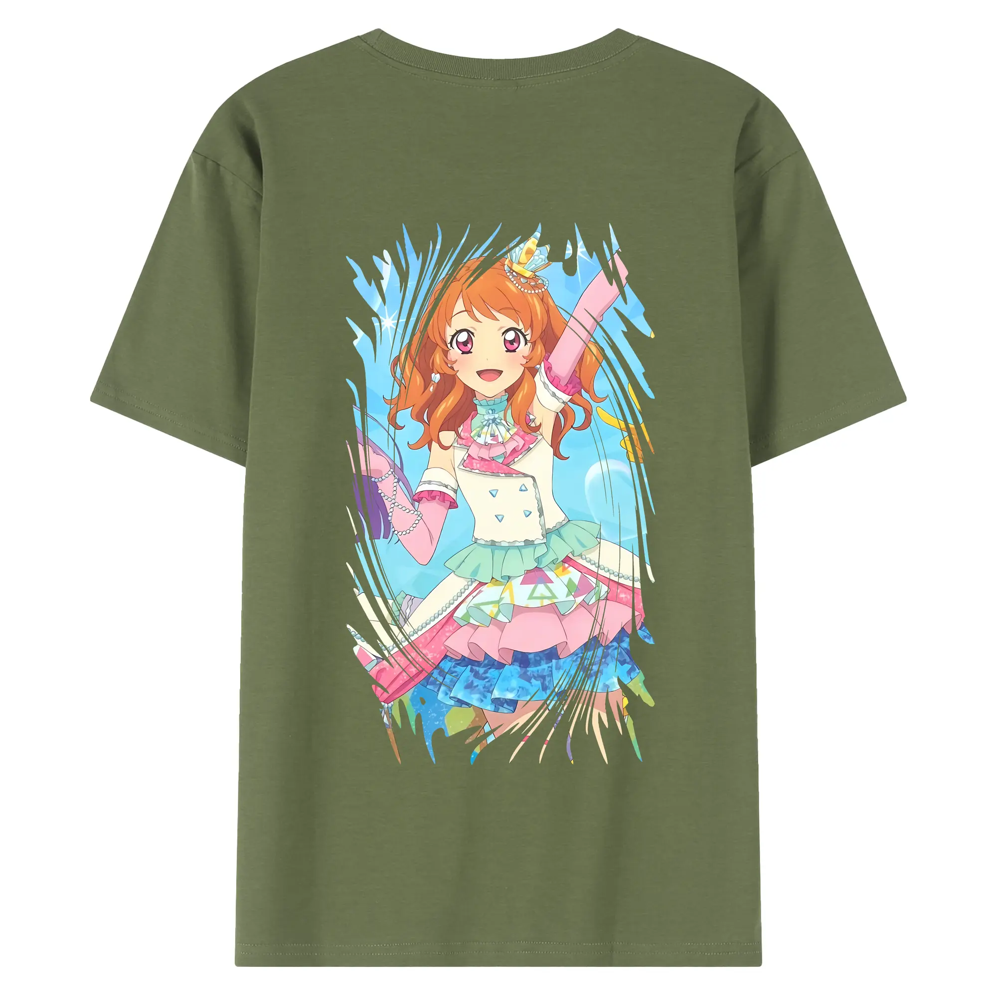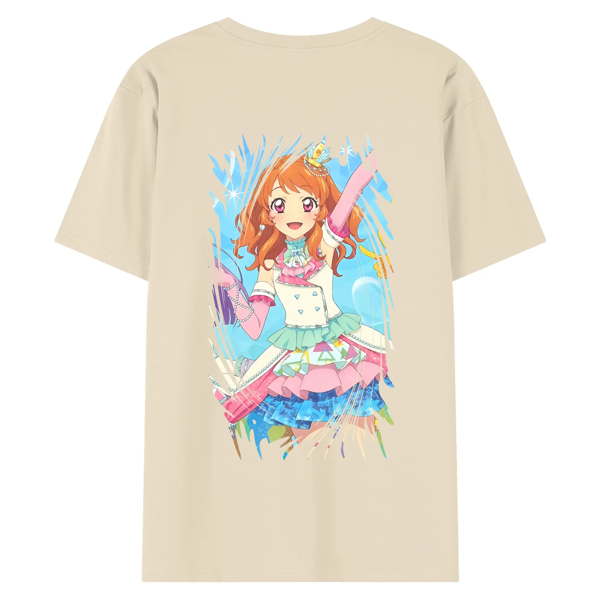 アイカツ グッズ 大空 あかり - 綿100% ヴィンテージ風 半袖Tシャツ ・ 背面プリント ・ 柔らか肌触り ・ 通気性 快適 ・ スポーツ カジュアル 外出用