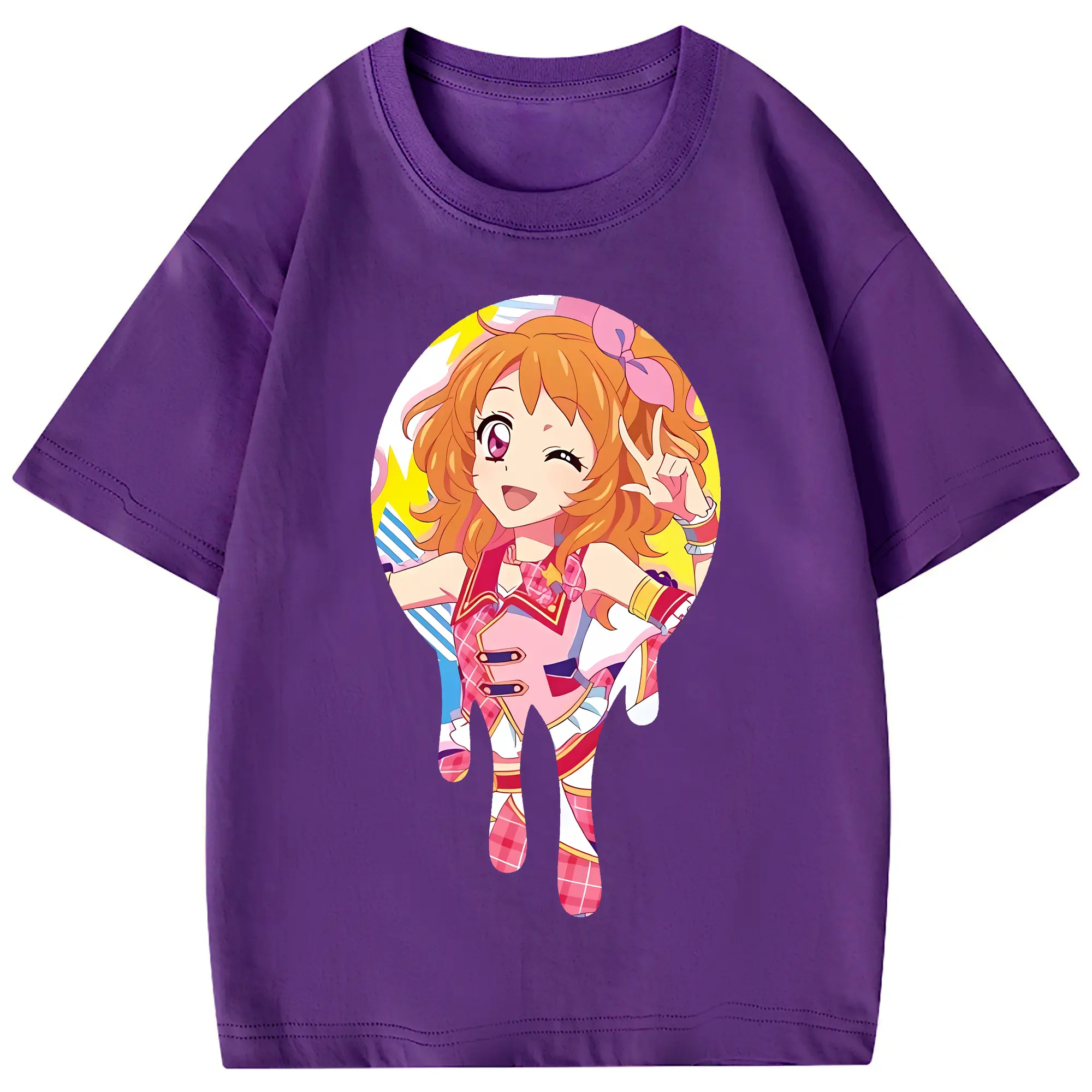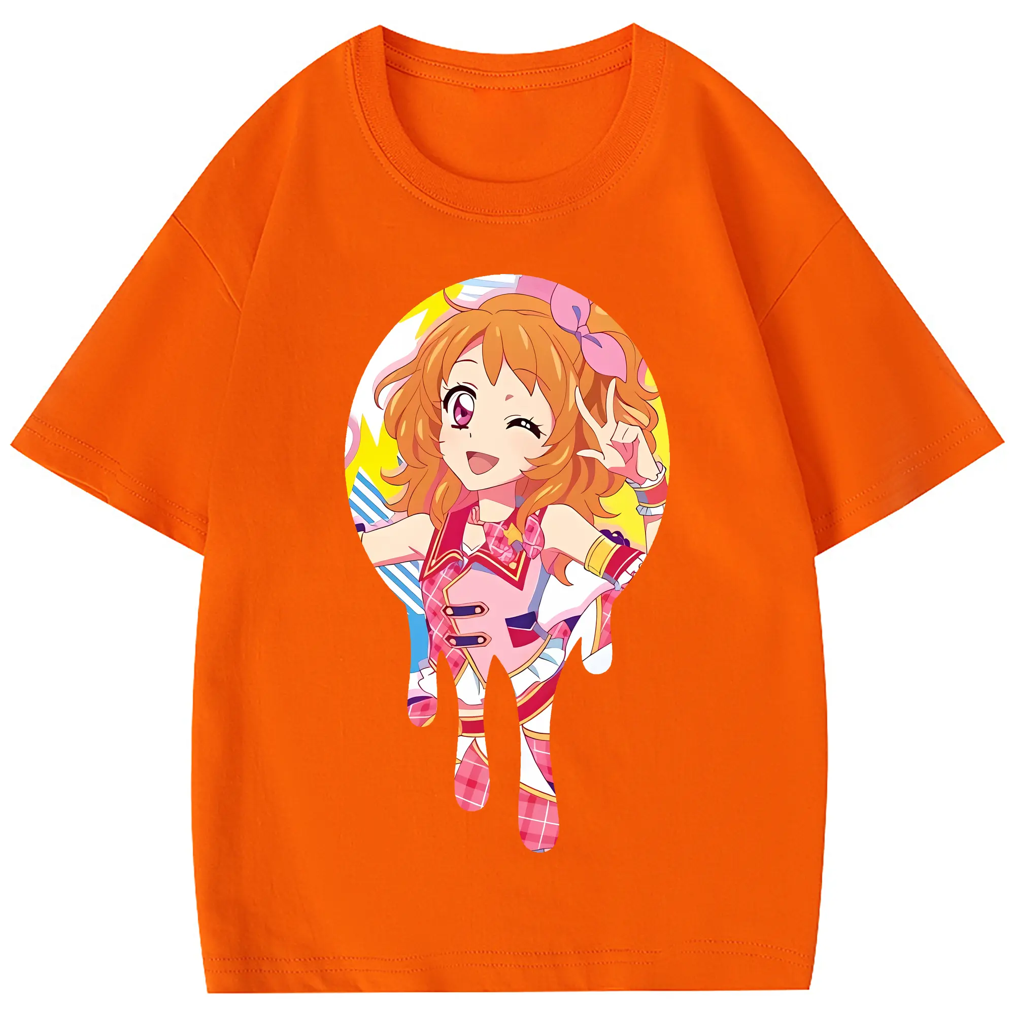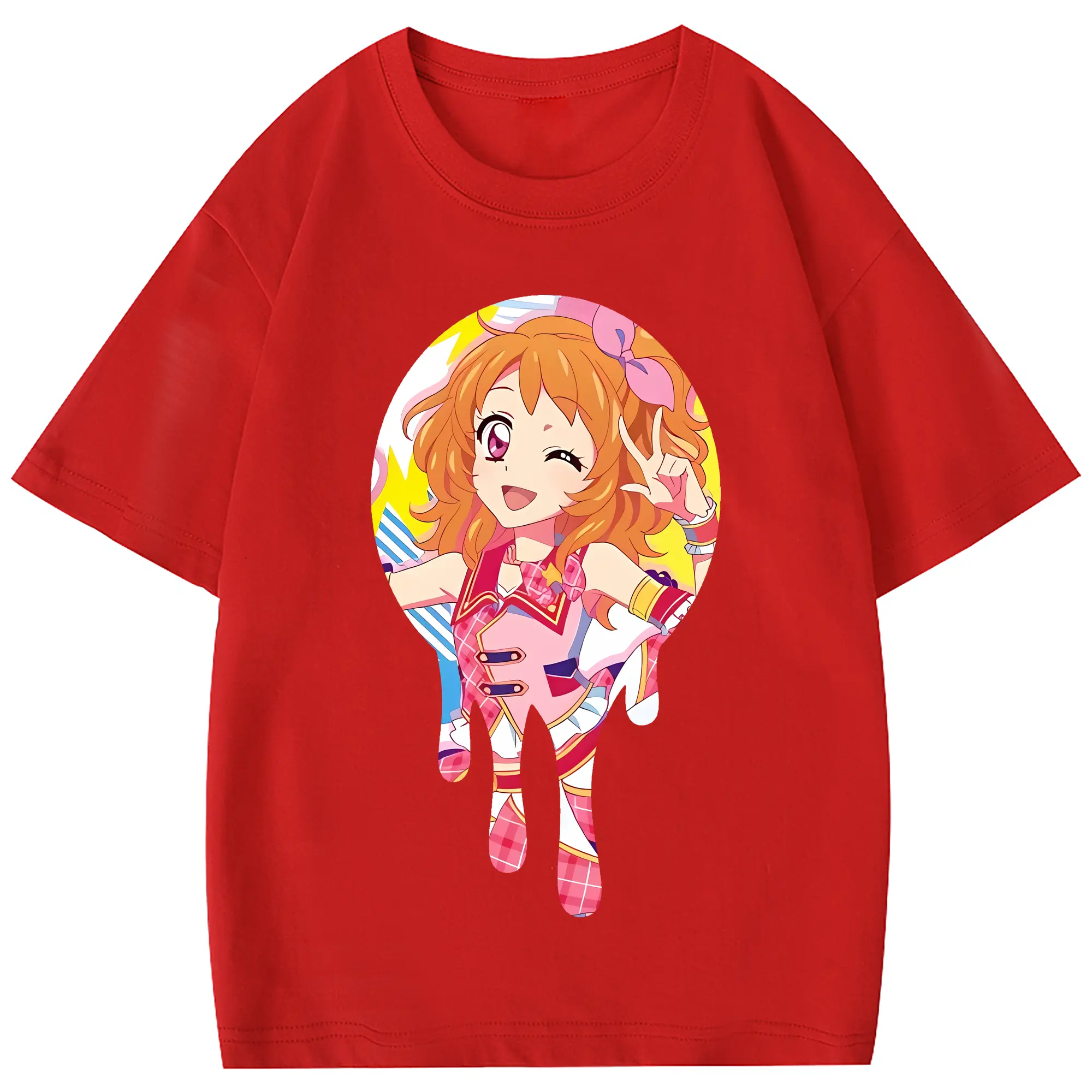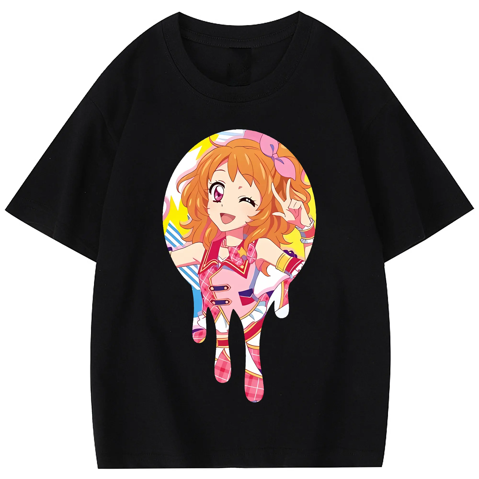 アイカツ グッズ 大空 あかり - 綿100% ヴィンテージ風 半袖Tシャツ ・ 背面プリント ・ 柔らか肌触り ・ 通気性 快適 ・ スポーツ カジュアル 外出用
