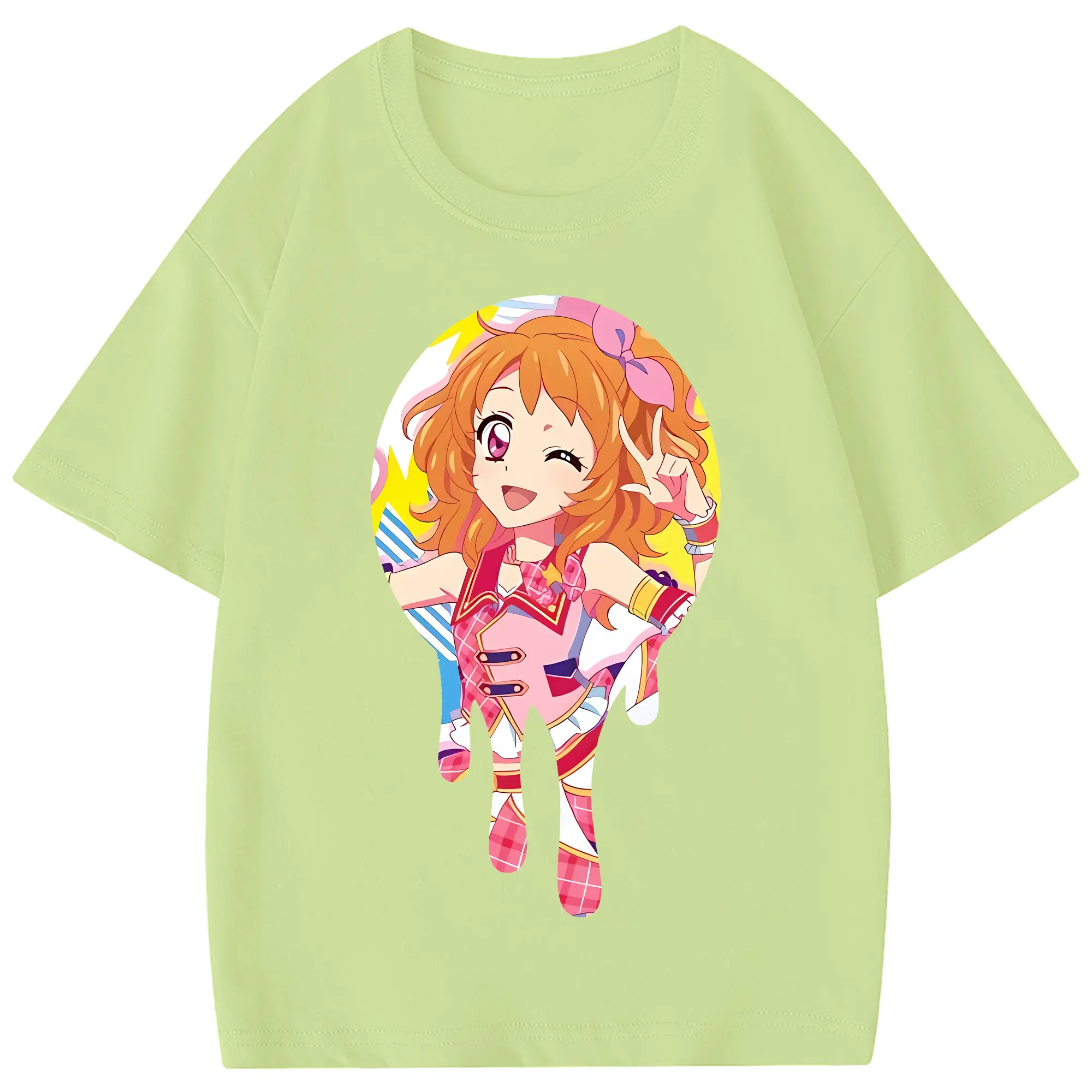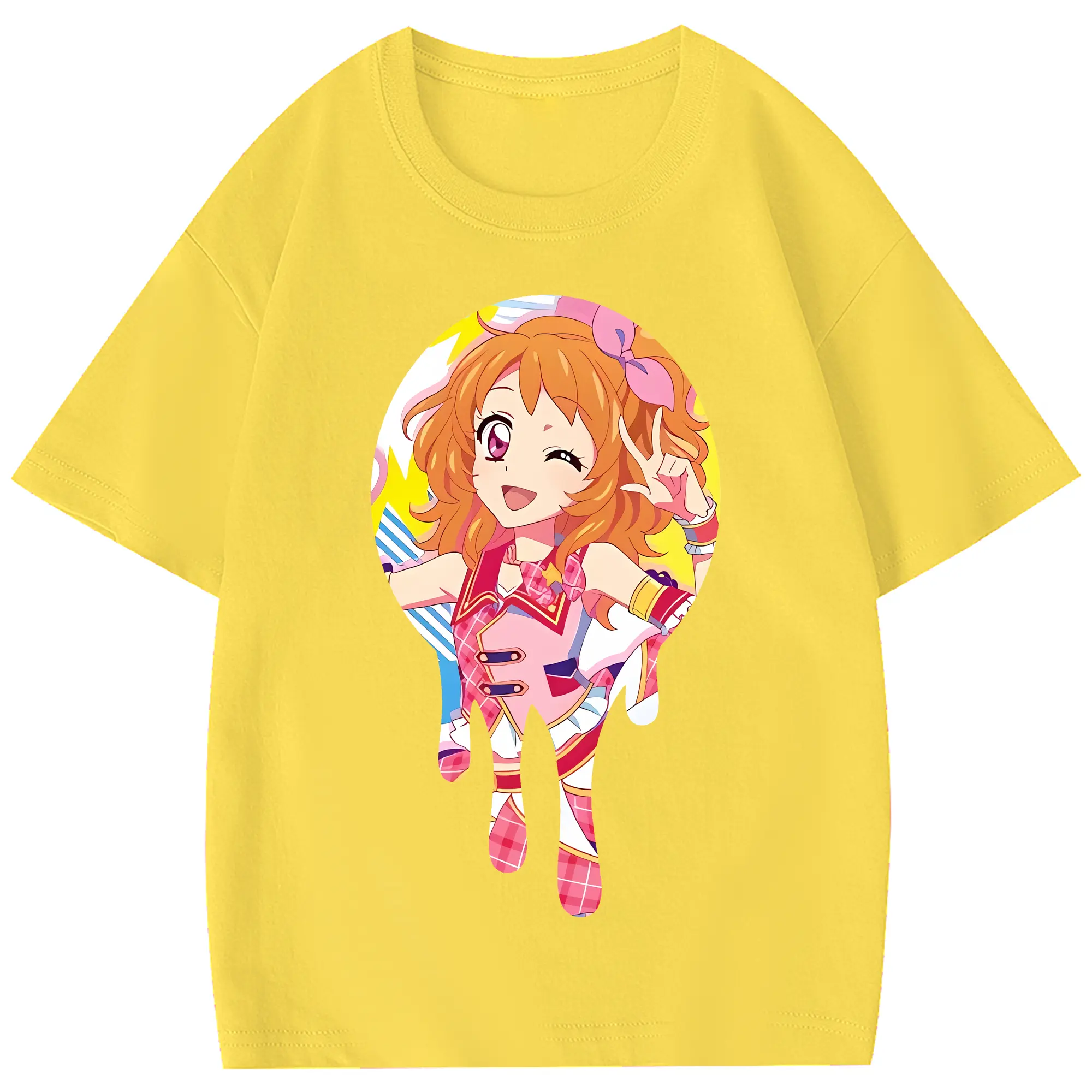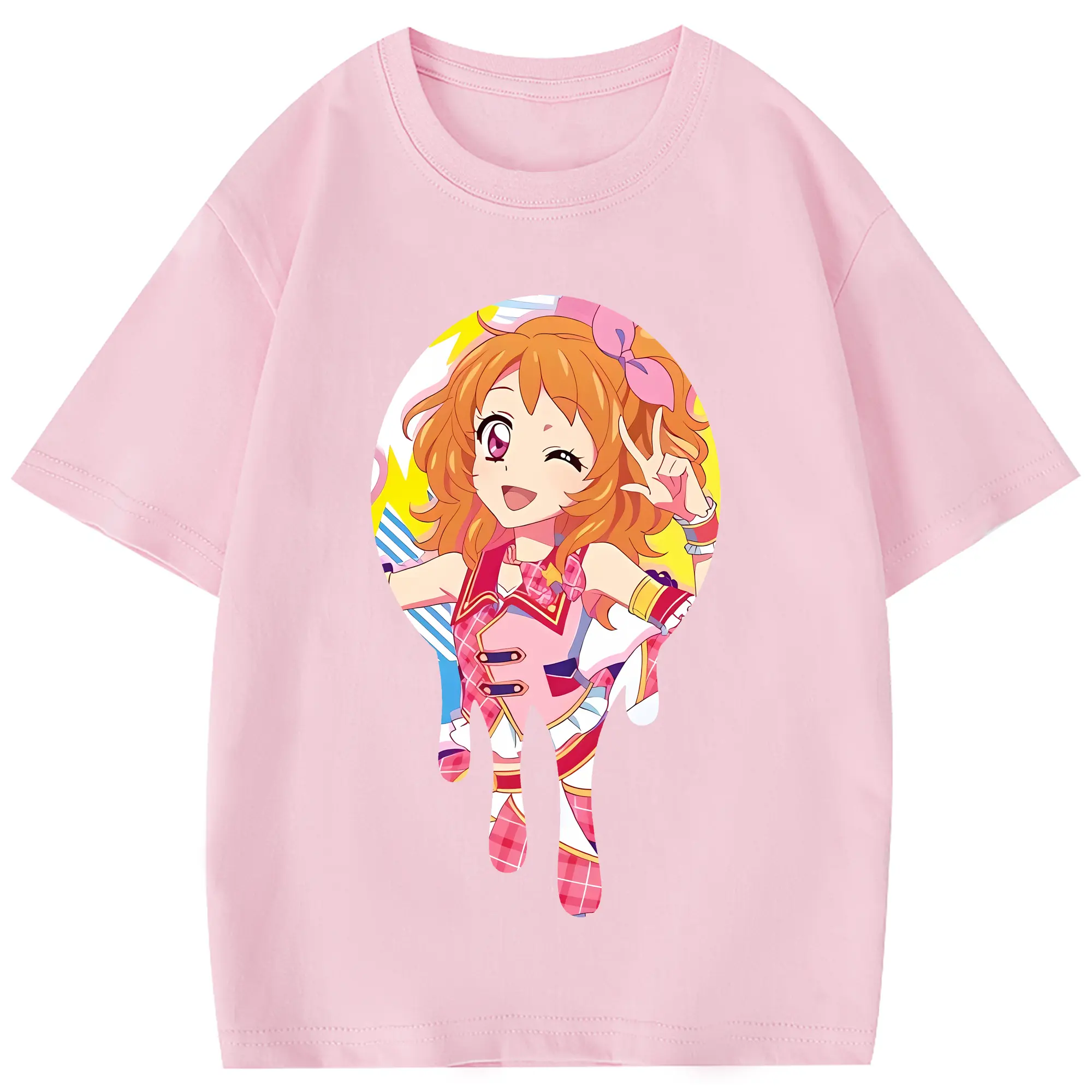アイカツ グッズ 大空 あかり - 綿100% ヴィンテージ風 半袖Tシャツ ・ フロントプリント ・ 柔らか肌触り ・ 通気性 快適 ・ スポーツ カジュアル 外出用