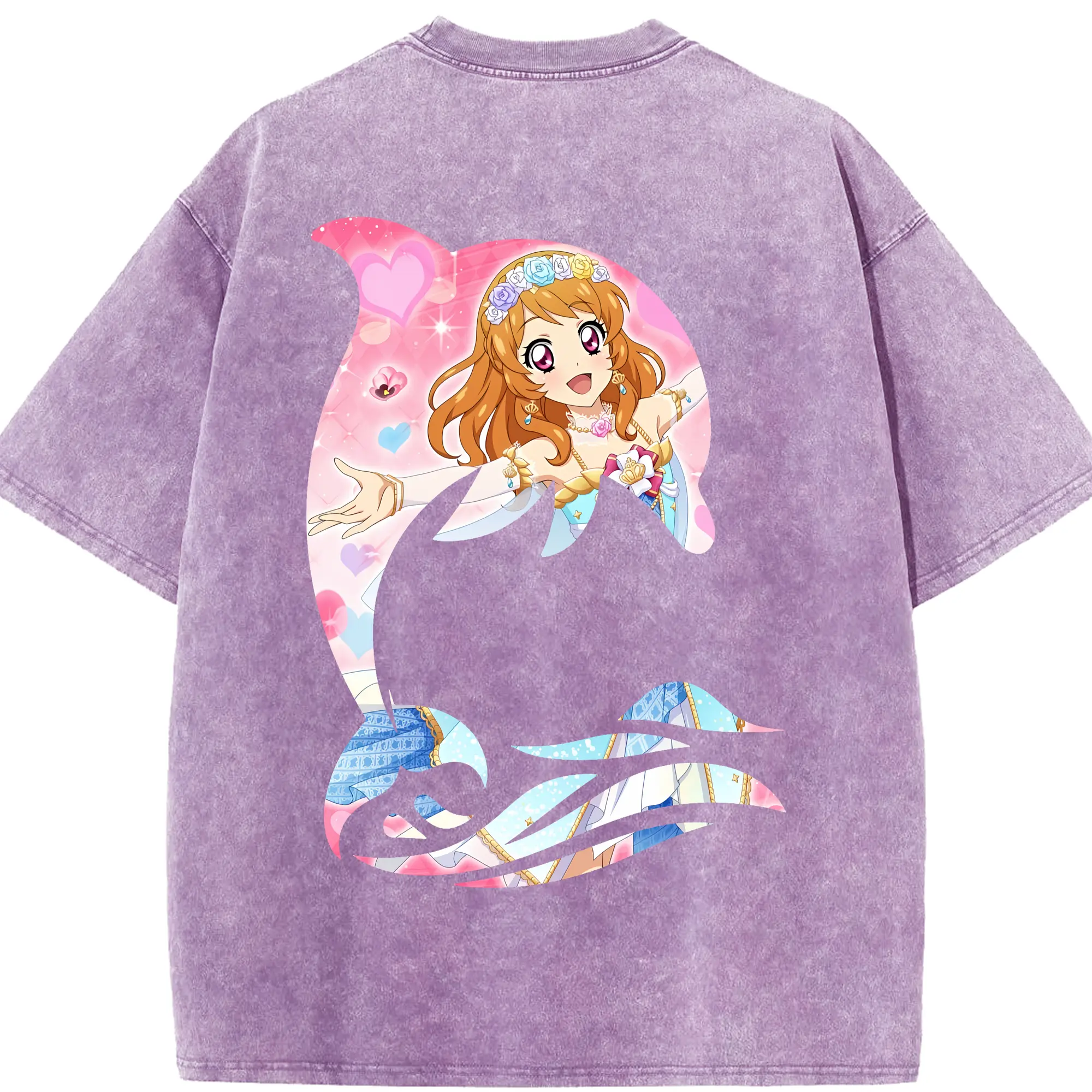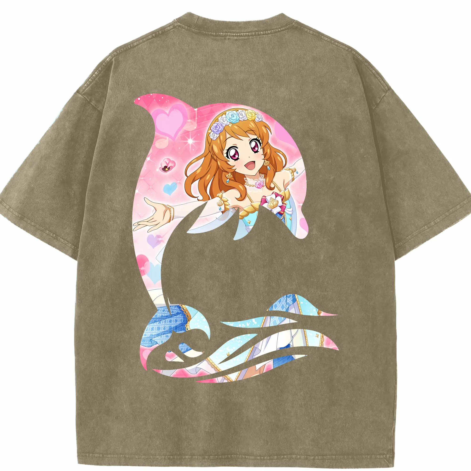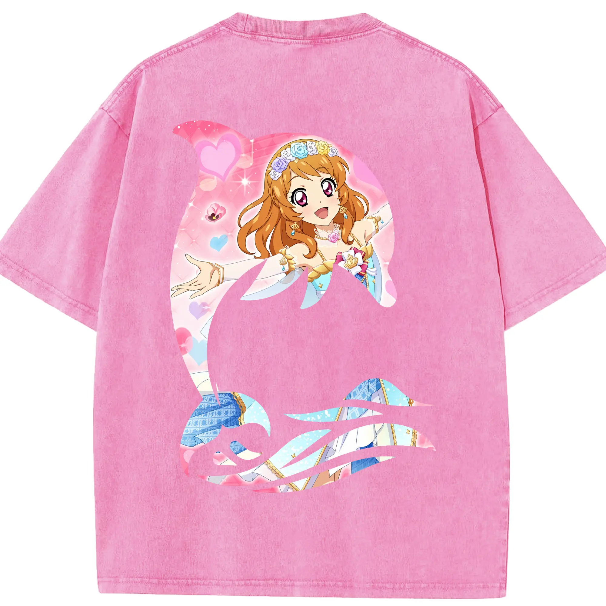 アイカツ グッズ 大空 あかり - 綿100% ヴィンテージ風 半袖Tシャツ ・ フロントプリント ・ 柔らか肌触り ・ 通気性 快適 ・ スポーツ カジュアル 外出用