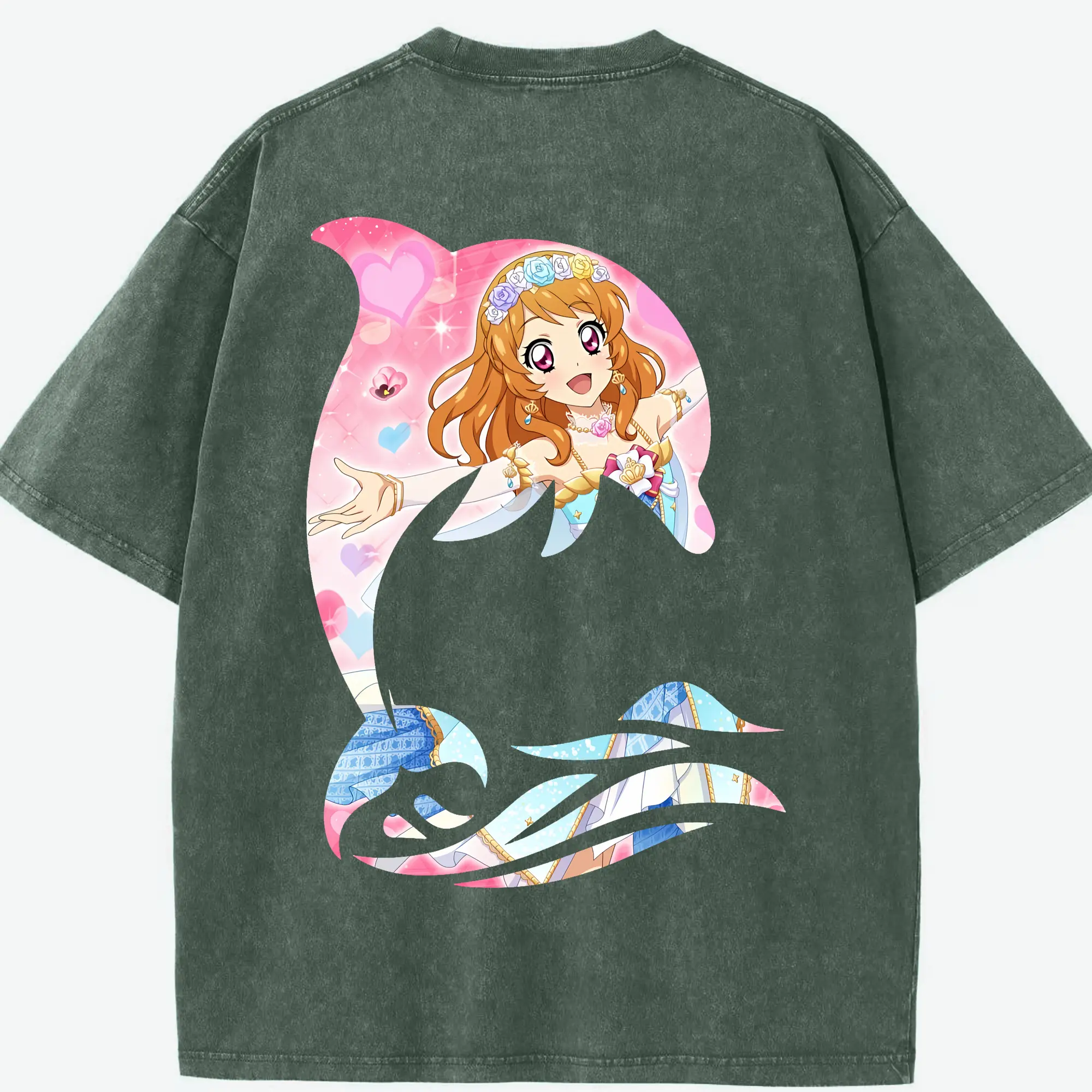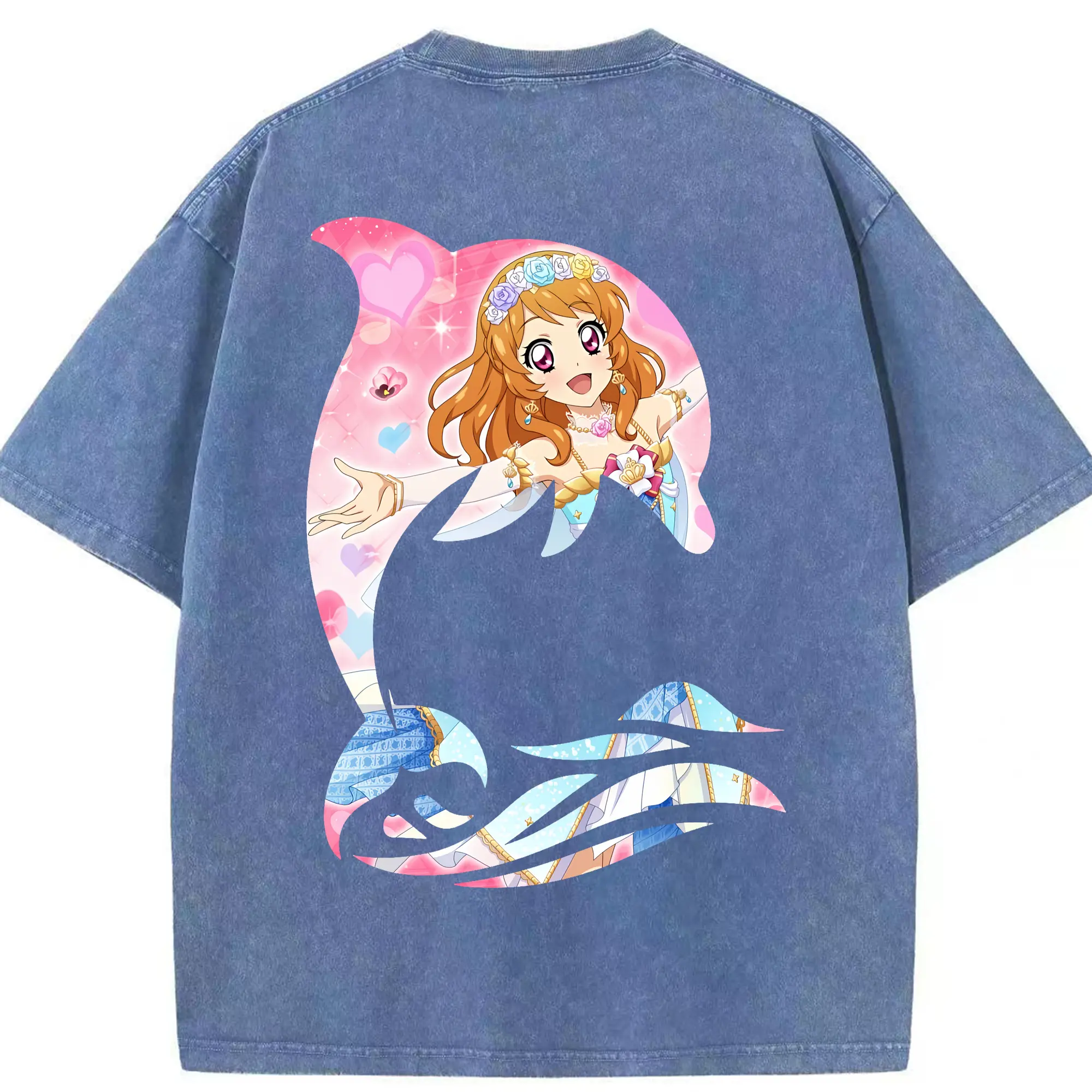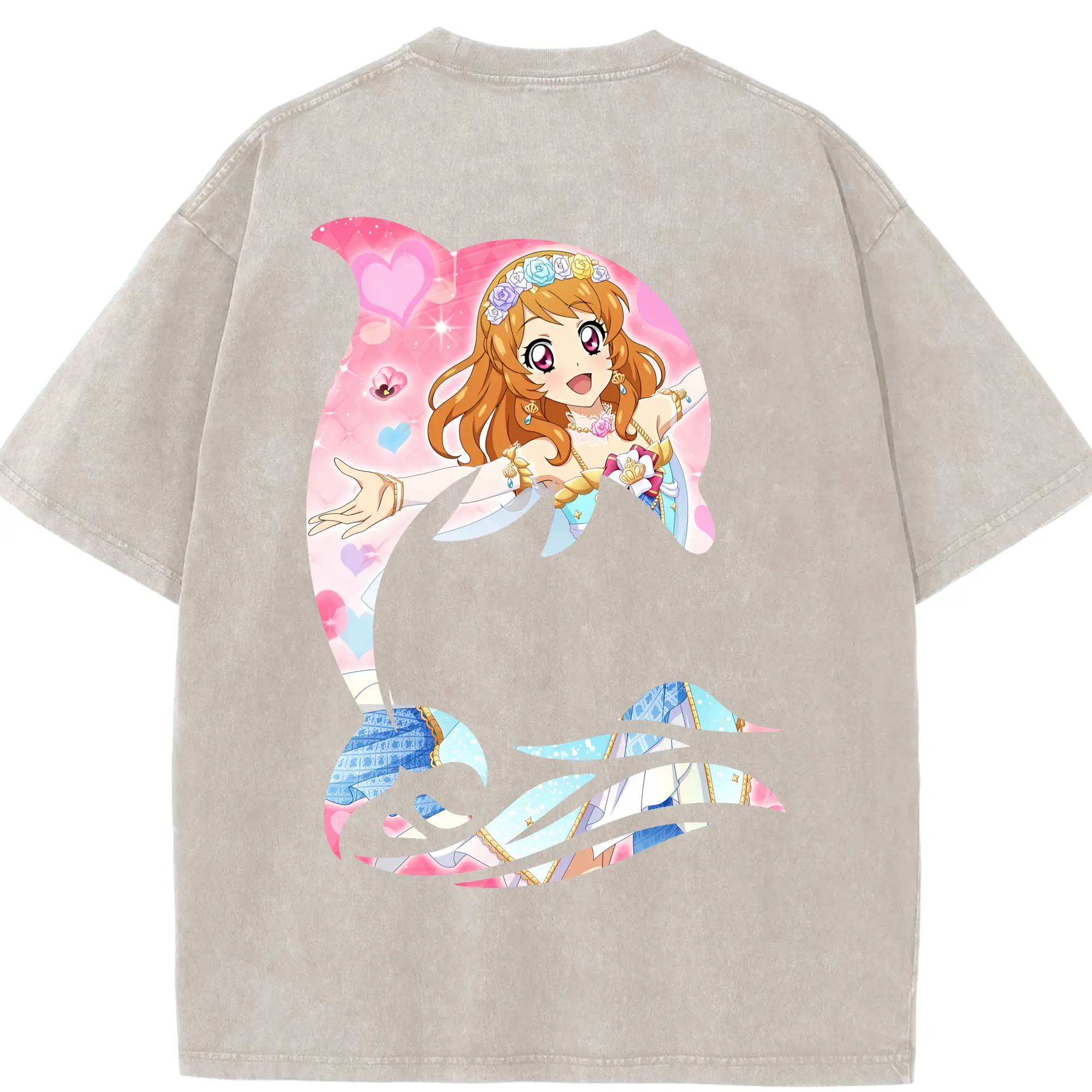 アイカツ グッズ 大空 あかり - 綿100% ヴィンテージ風 半袖Tシャツ ・ フロントプリント ・ 柔らか肌触り ・ 通気性 快適 ・ スポーツ カジュアル 外出用