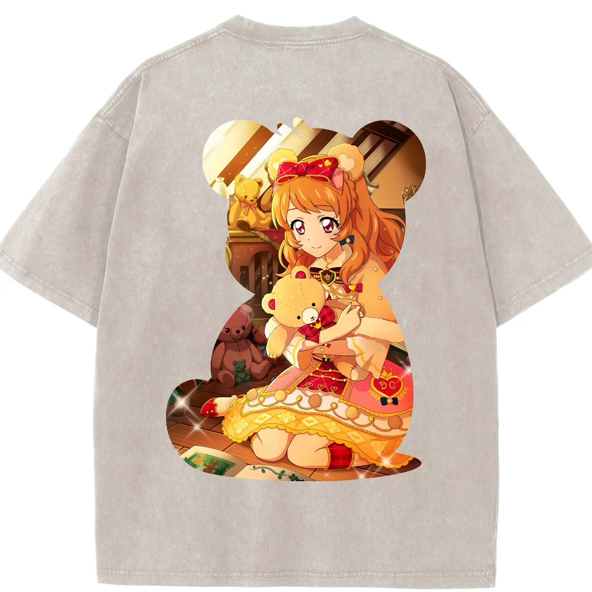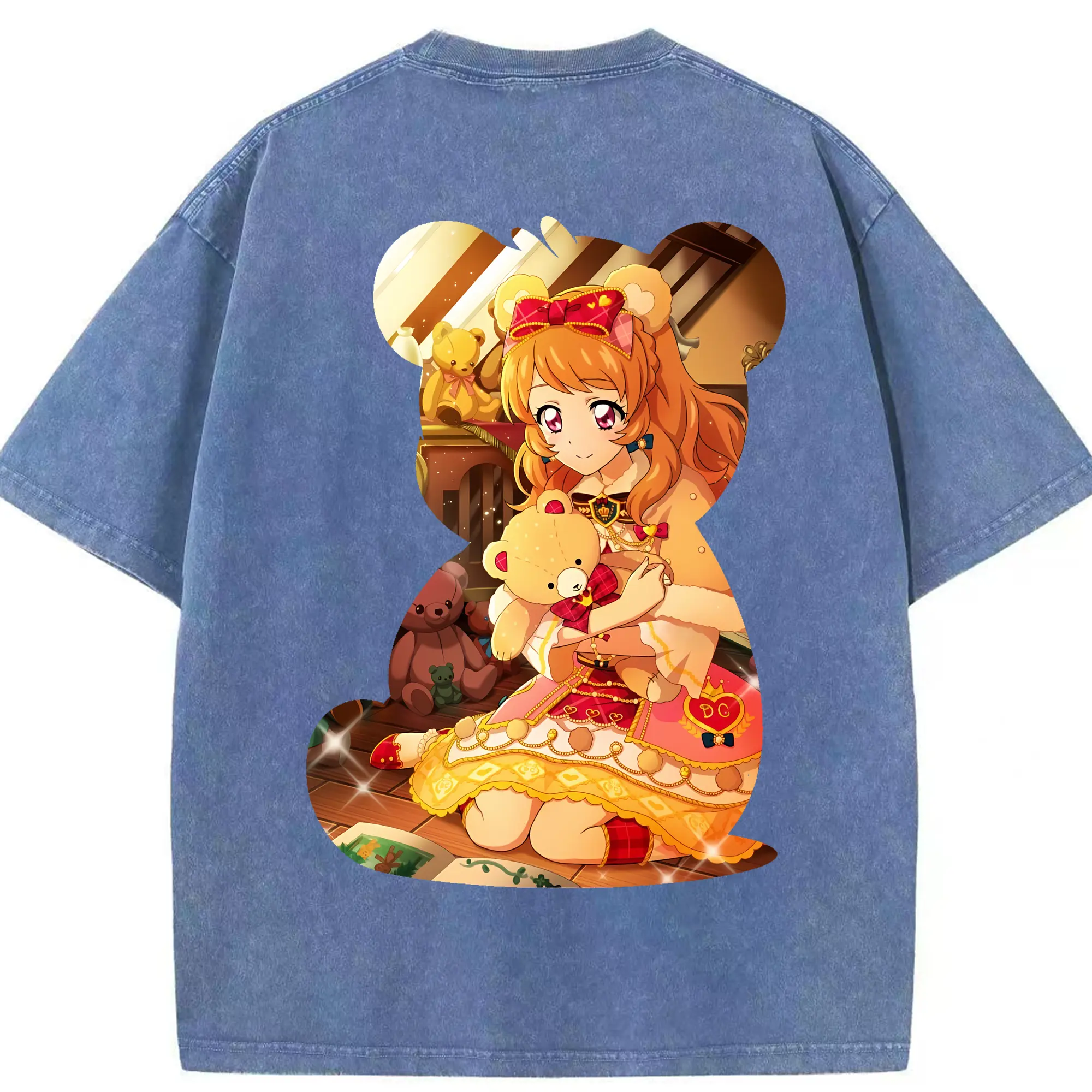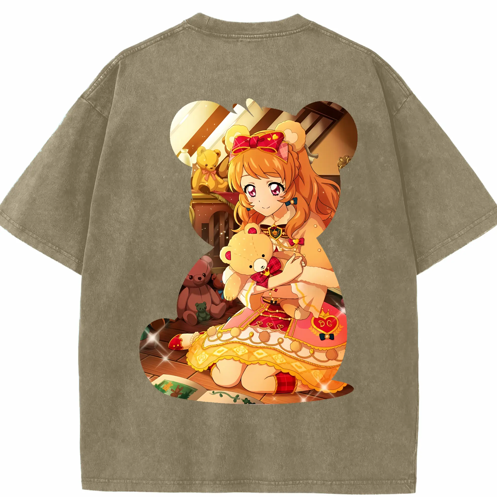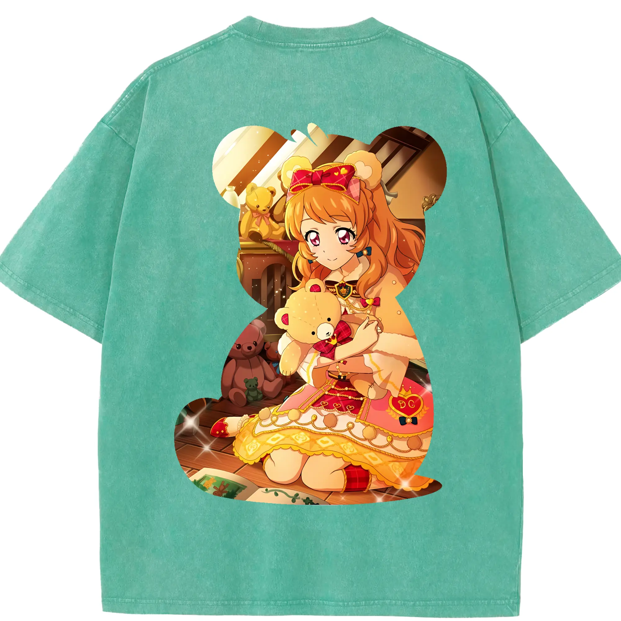 アイカツ グッズ 大空 あかり - 綿100% ヴィンテージ風 半袖Tシャツ ・ フロントプリント ・ 柔らか肌触り ・ 通気性 快適 ・ スポーツ カジュアル 外出用