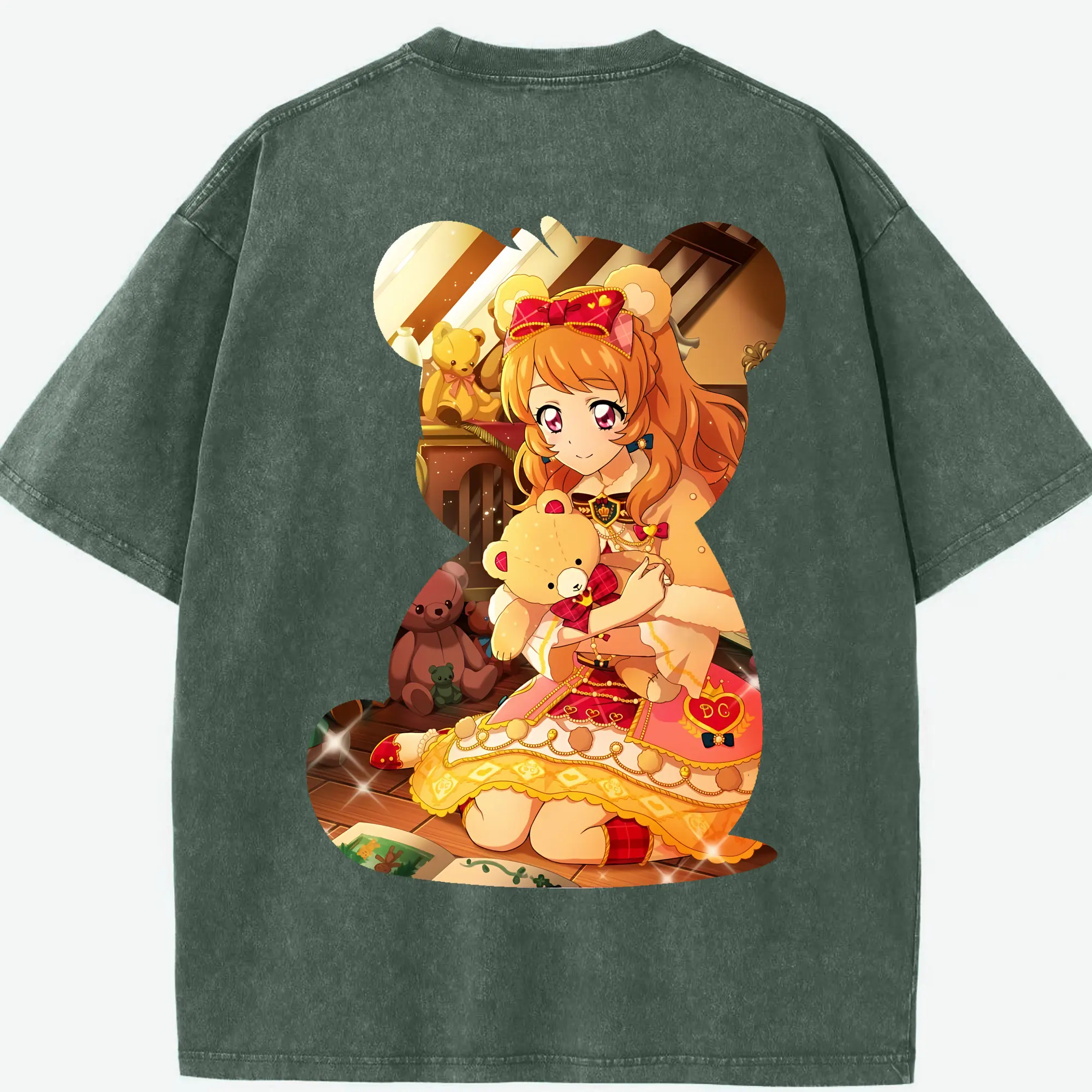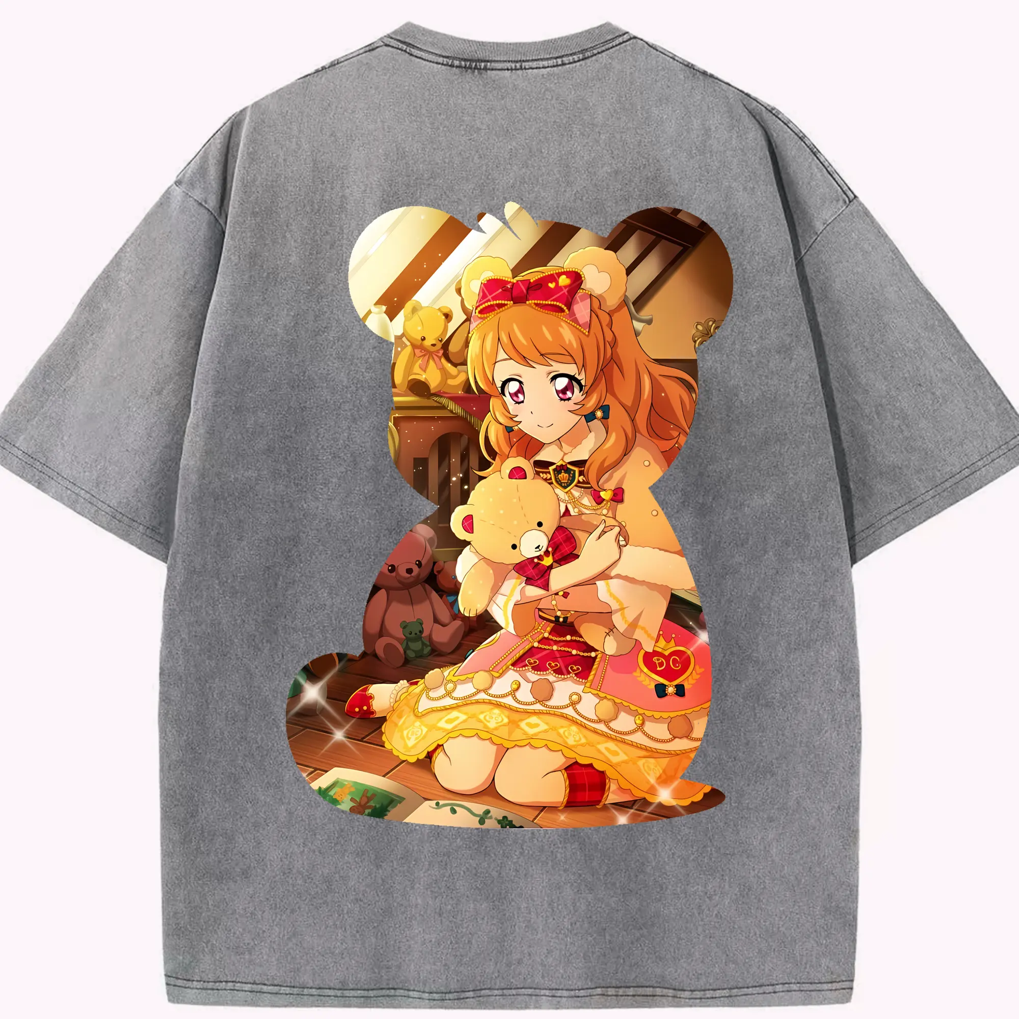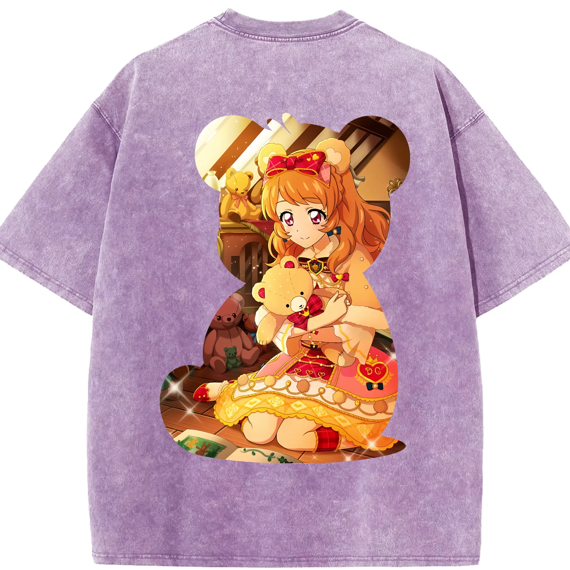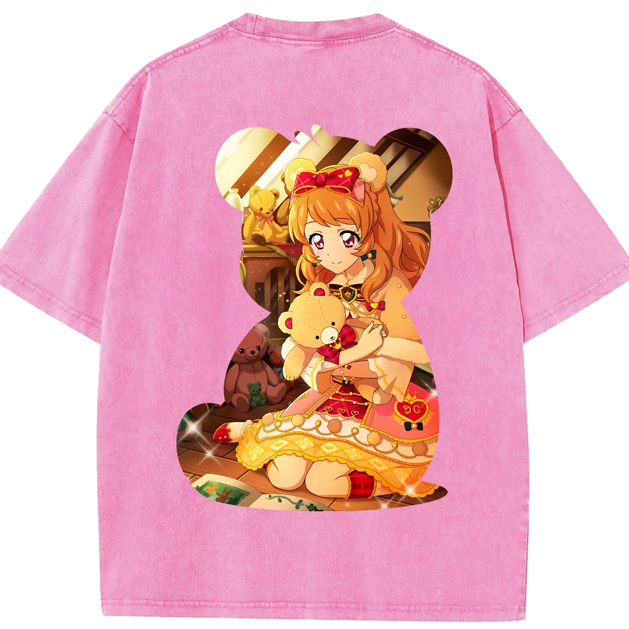 アイカツ グッズ 大空 あかり - 綿100% ヴィンテージ風 半袖Tシャツ ・ フロントプリント ・ 柔らか肌触り ・ 通気性 快適 ・ スポーツ カジュアル 外出用