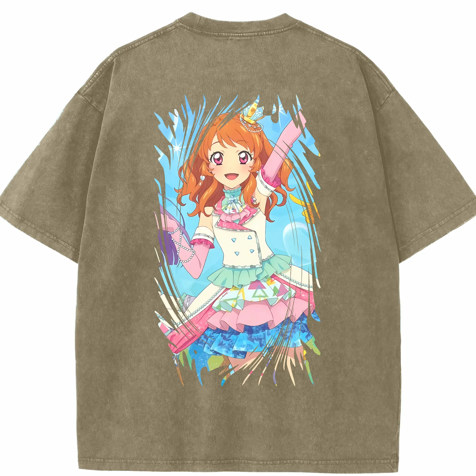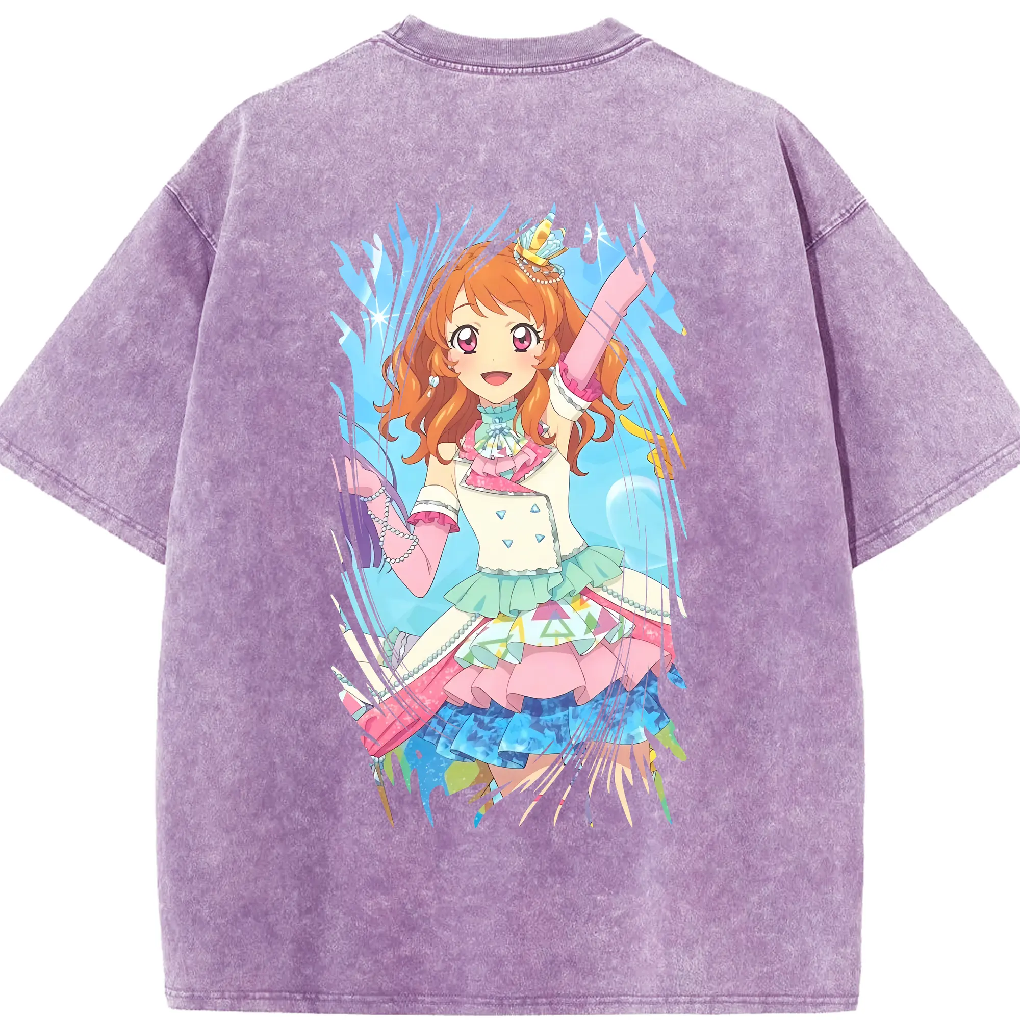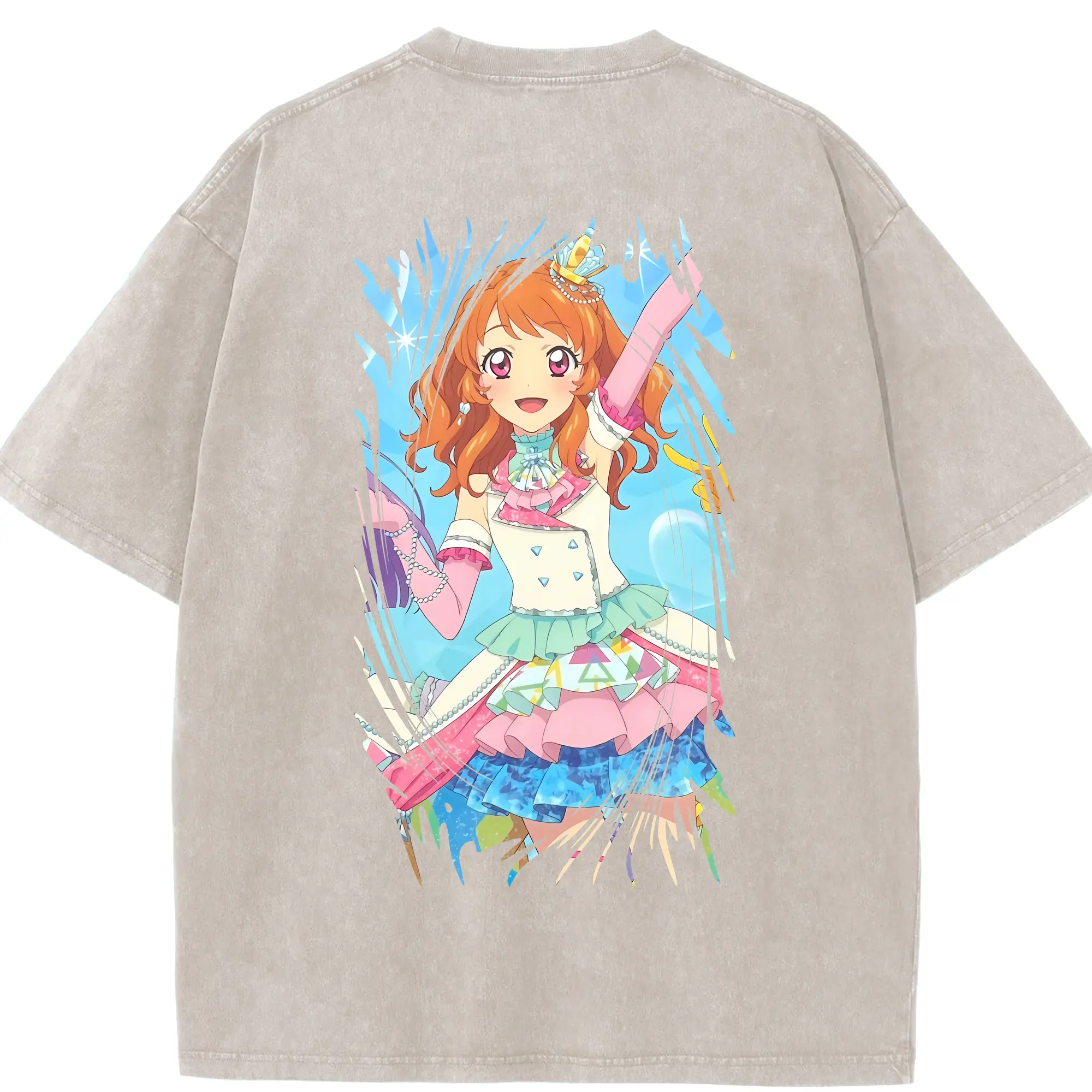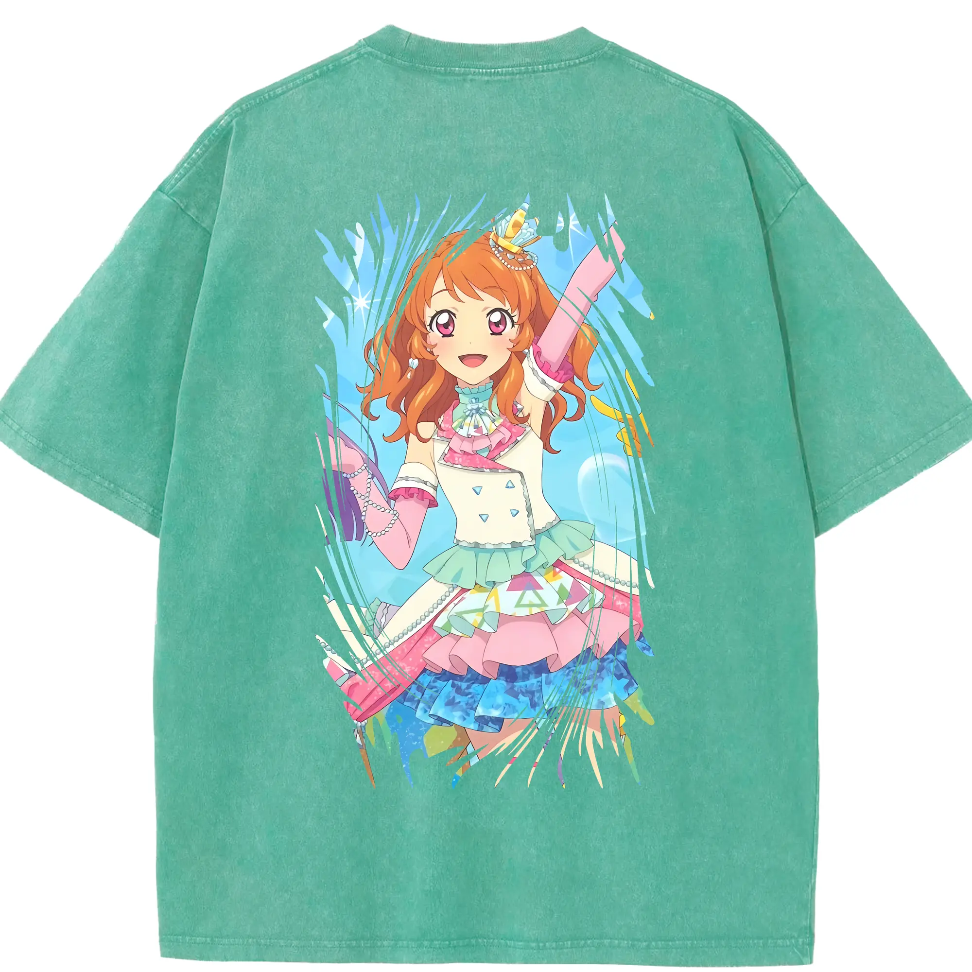 アイカツ グッズ 大空 あかり - 綿100% ヴィンテージ風 半袖Tシャツ ・ フロントプリント ・ 柔らか肌触り ・ 通気性 快適 ・ スポーツ カジュアル 外出用