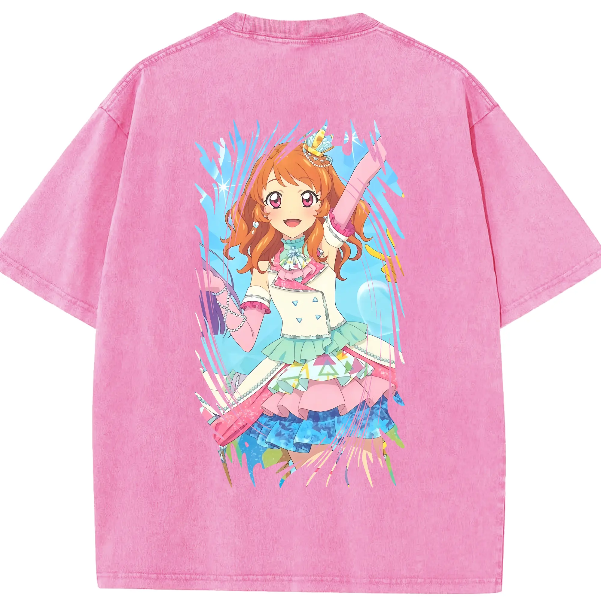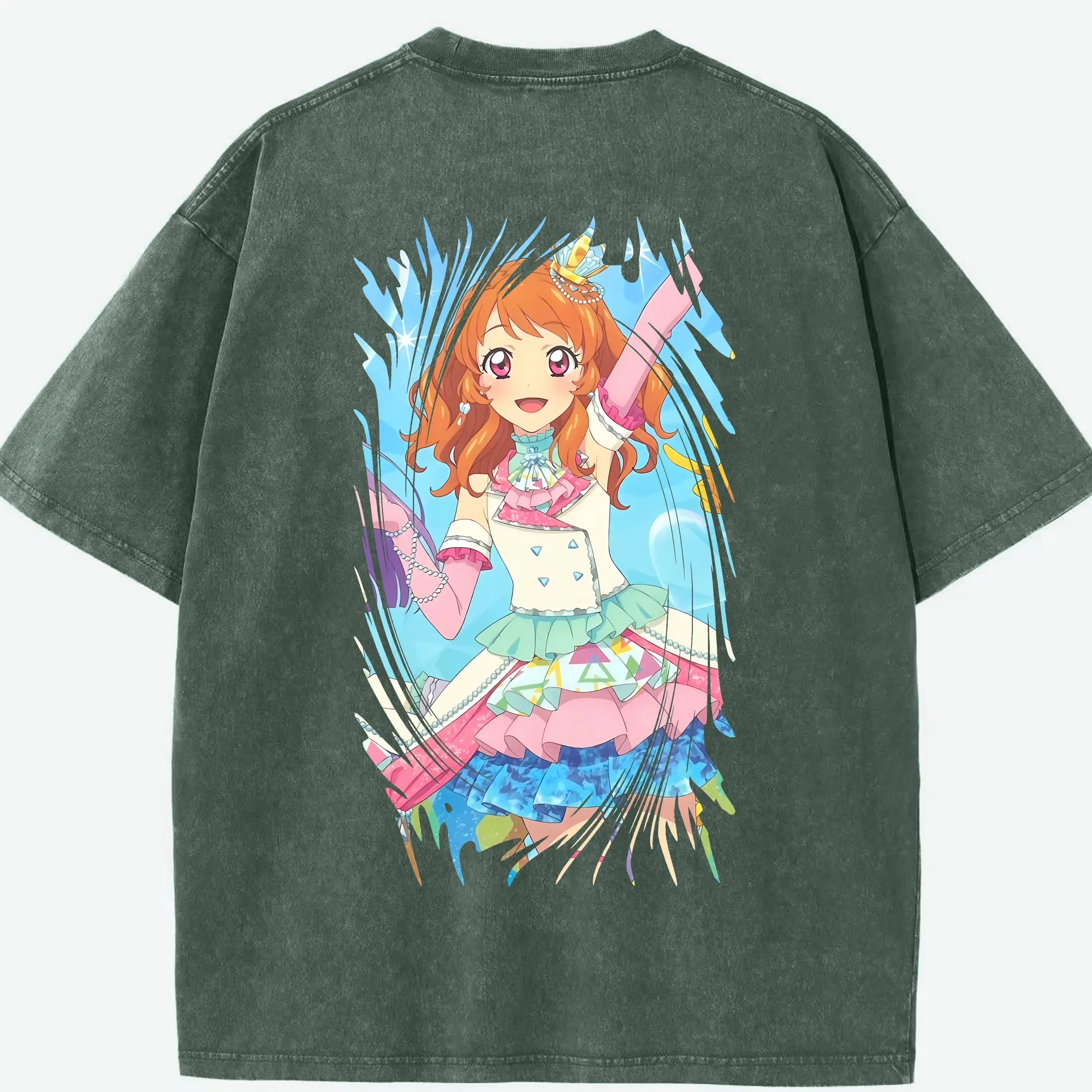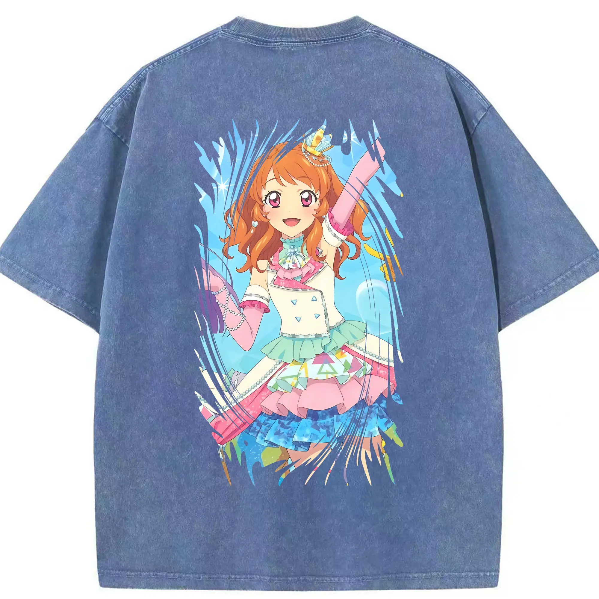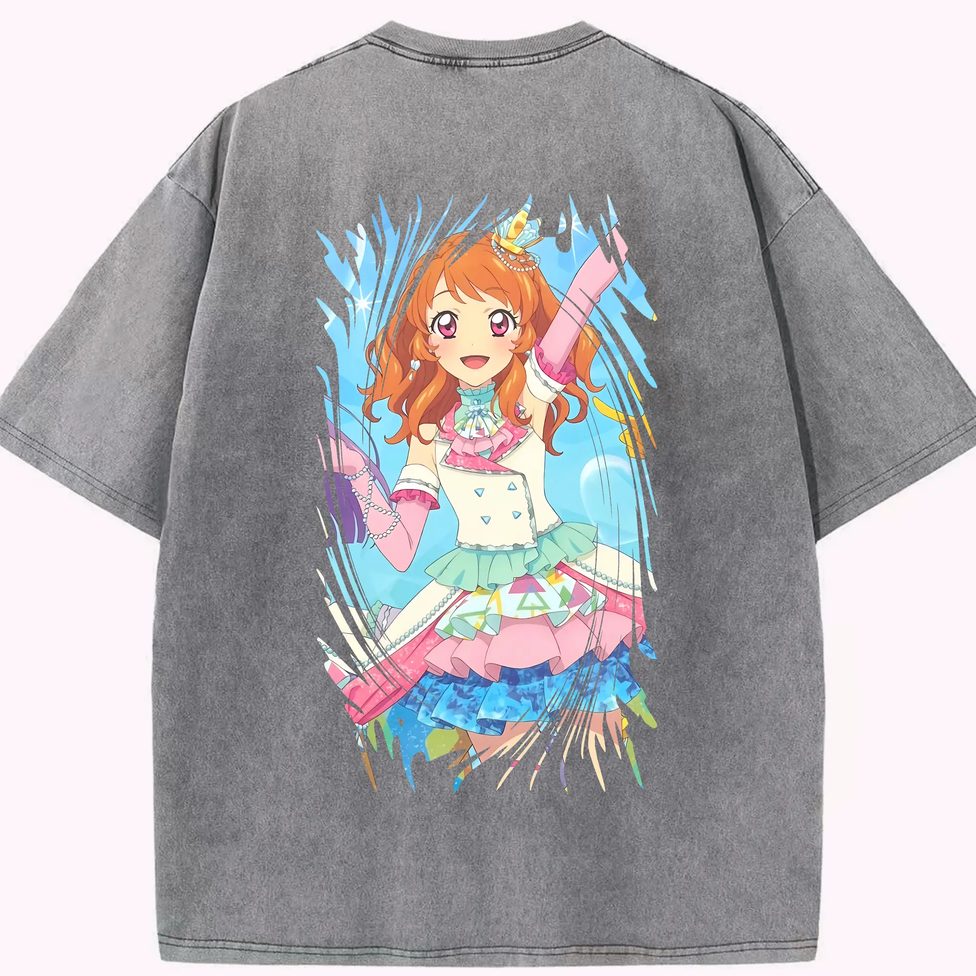 アイカツ グッズ 大空 あかり - 綿100% ヴィンテージ風 半袖Tシャツ ・ フロントプリント ・ 柔らか肌触り ・ 通気性 快適 ・ スポーツ カジュアル 外出用