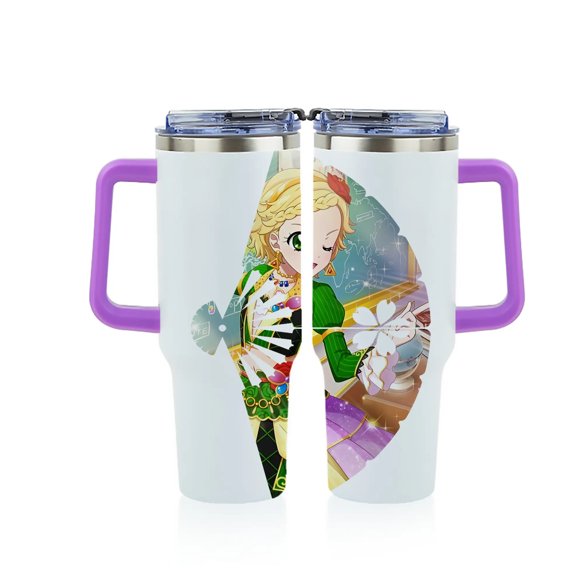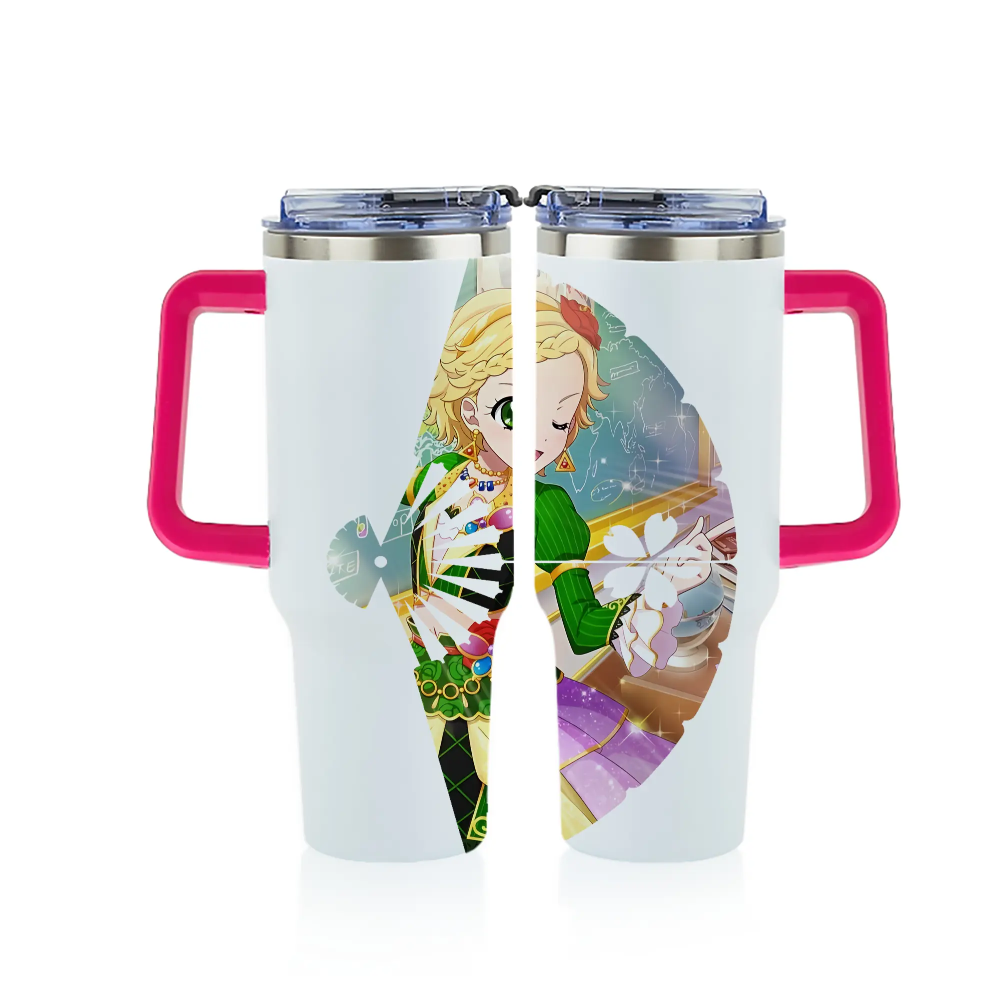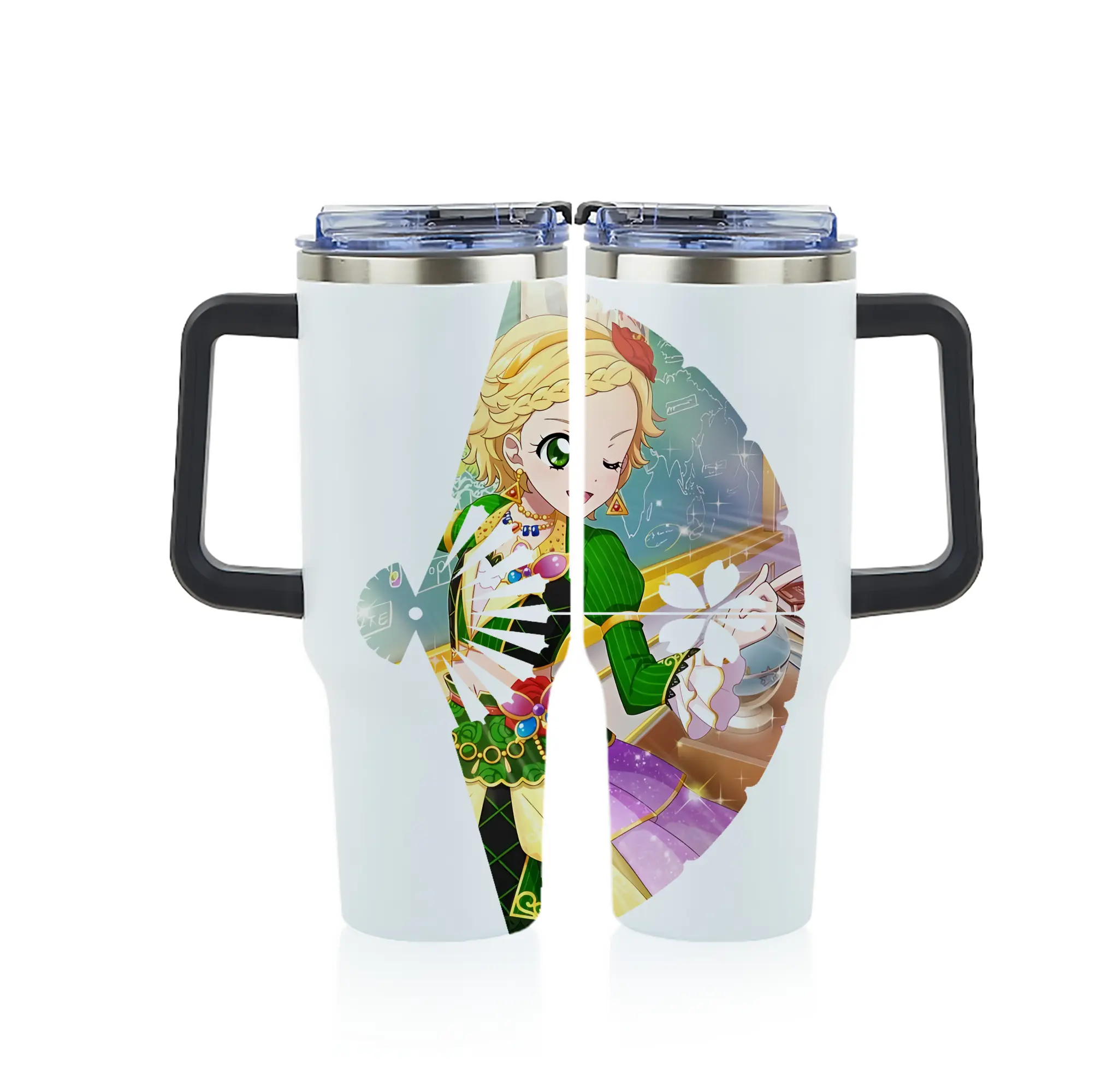 アイカツ グッズ 新条 ひなき - 1200mL フルプリント車用タンブラー ・ 304ステンレス 内側 ・ 201ステンレス 外側 ・ 保温 保冷 ・ 通勤 ドライブ アウトドア用