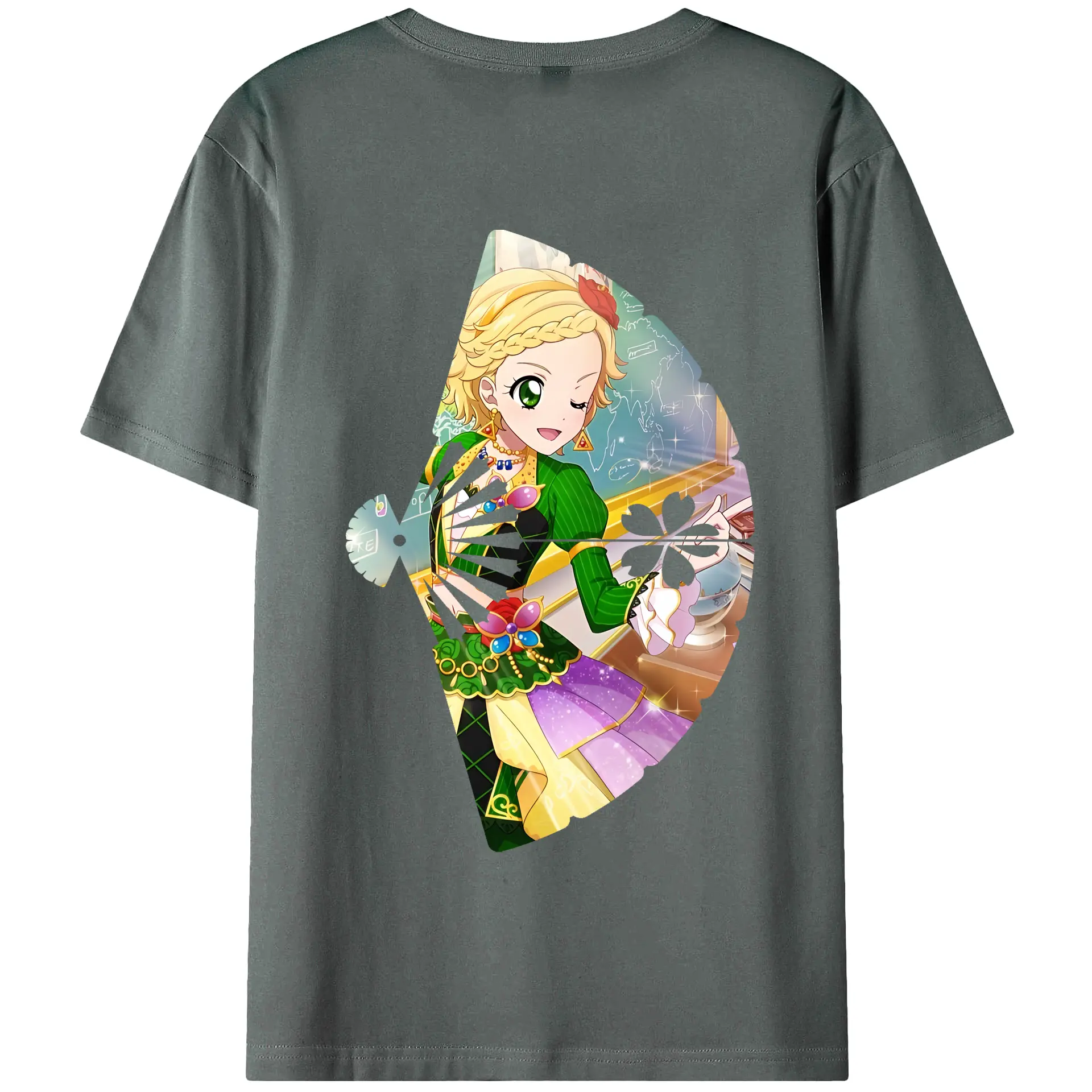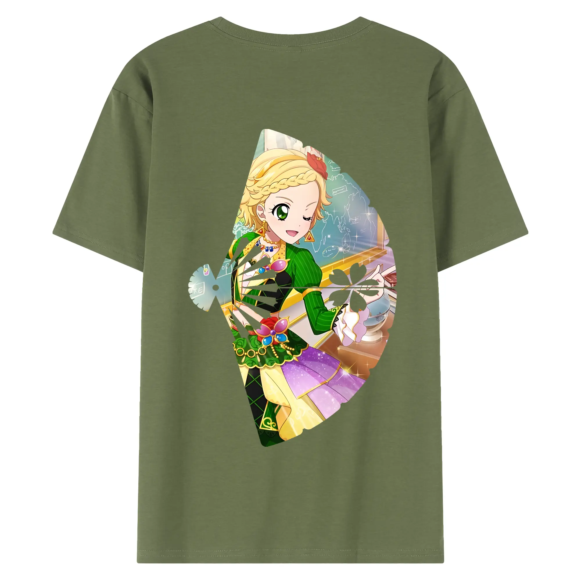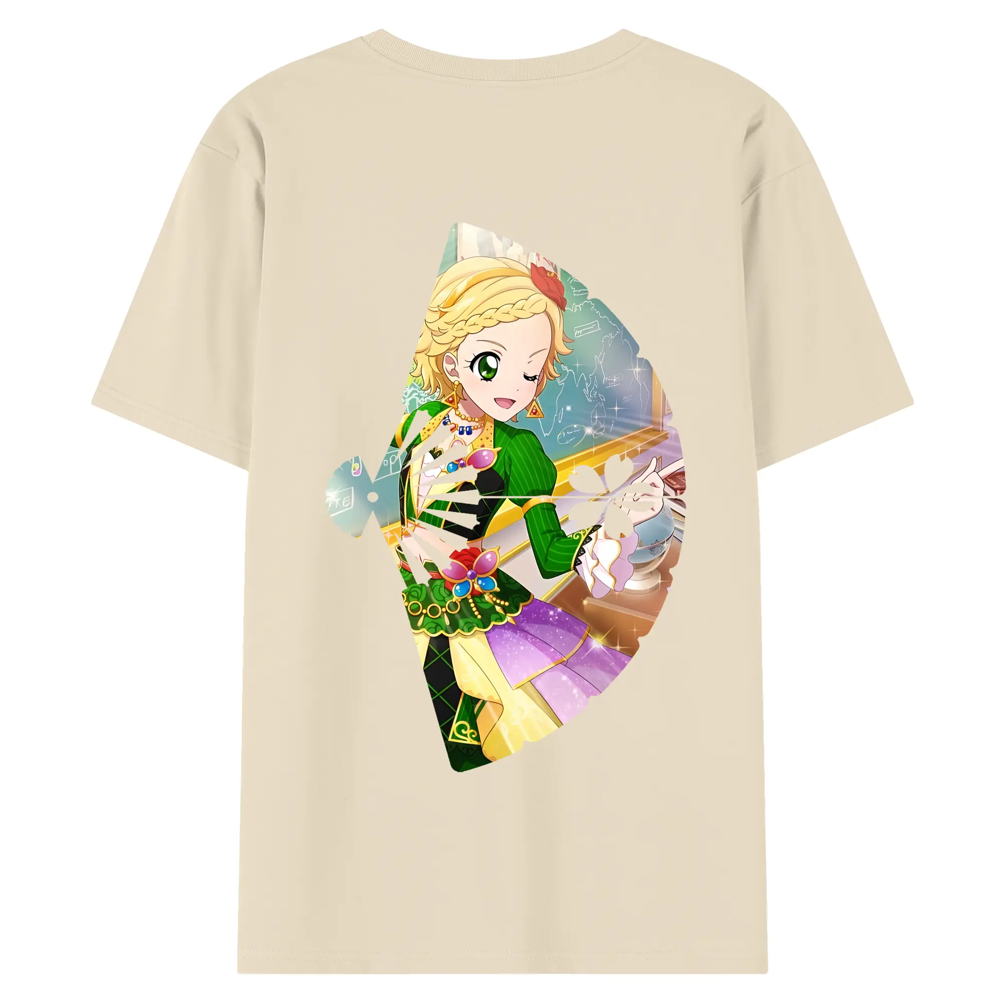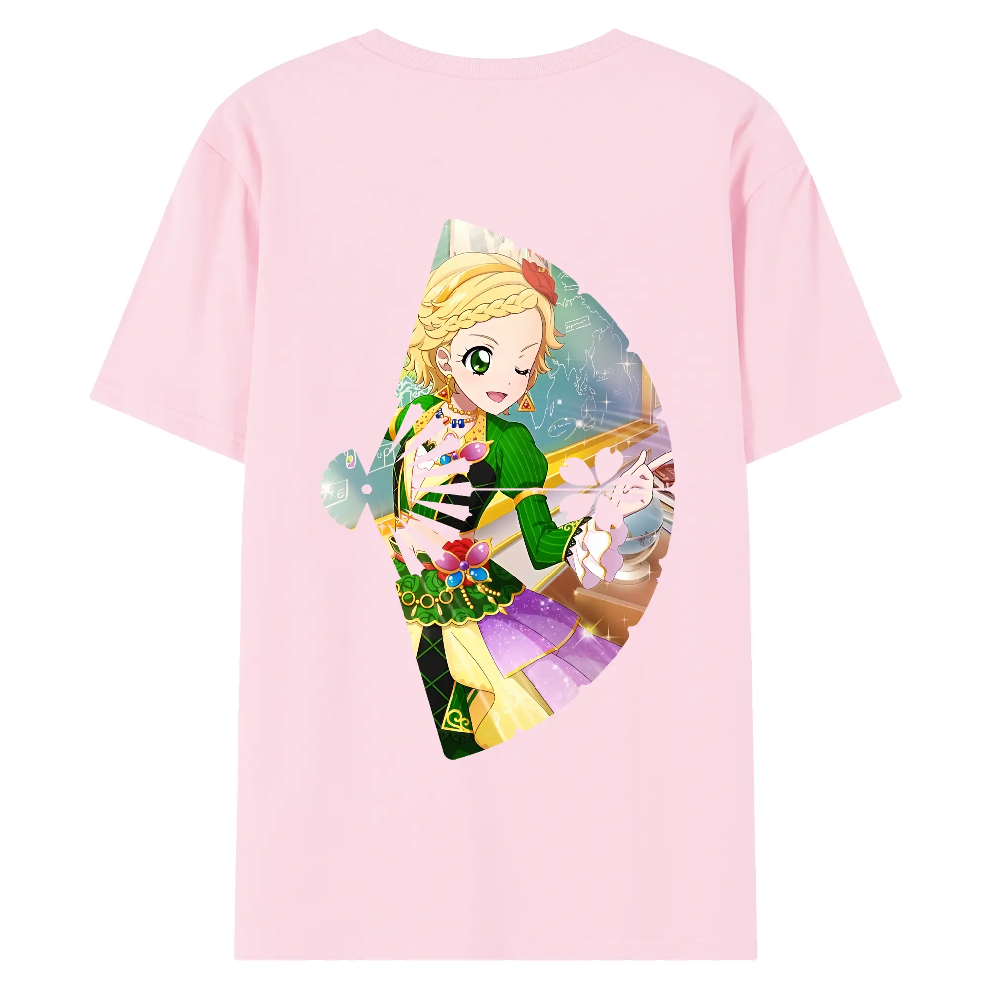 アイカツ グッズ 新条 ひなき - 綿100% ヴィンテージ風 半袖Tシャツ ・ 背面プリント ・ 柔らか肌触り ・ 通気性 快適 ・ スポーツ カジュアル 外出用