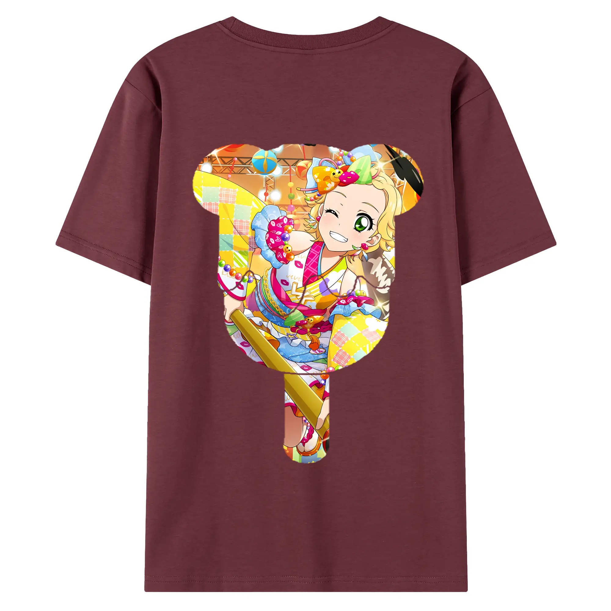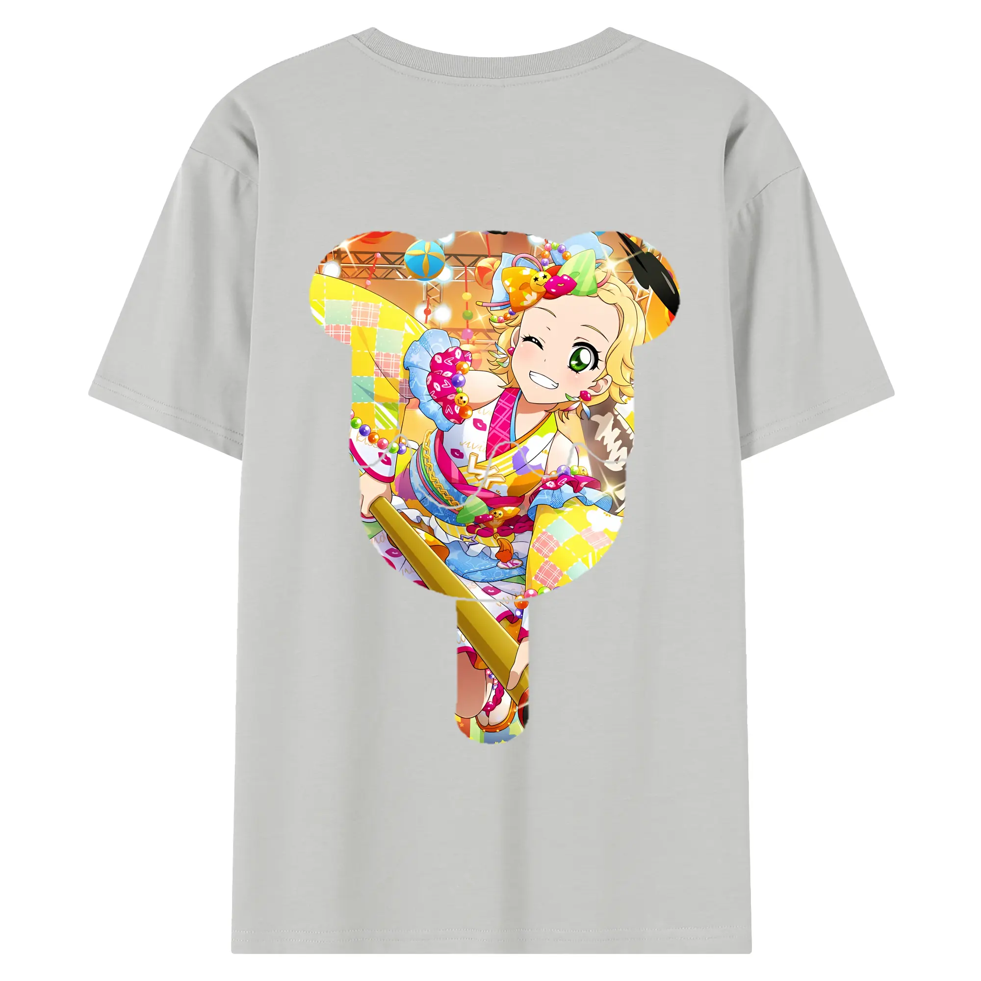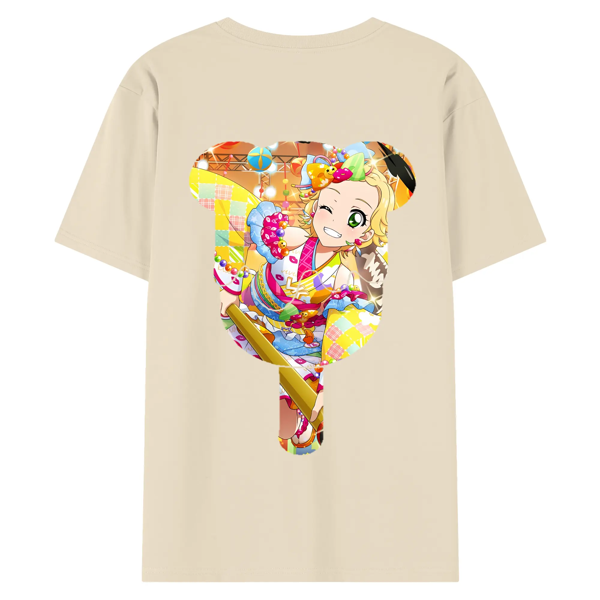 アイカツ グッズ 新条 ひなき - 綿100% ヴィンテージ風 半袖Tシャツ ・ 背面プリント ・ 柔らか肌触り ・ 通気性 快適 ・ スポーツ カジュアル 外出用