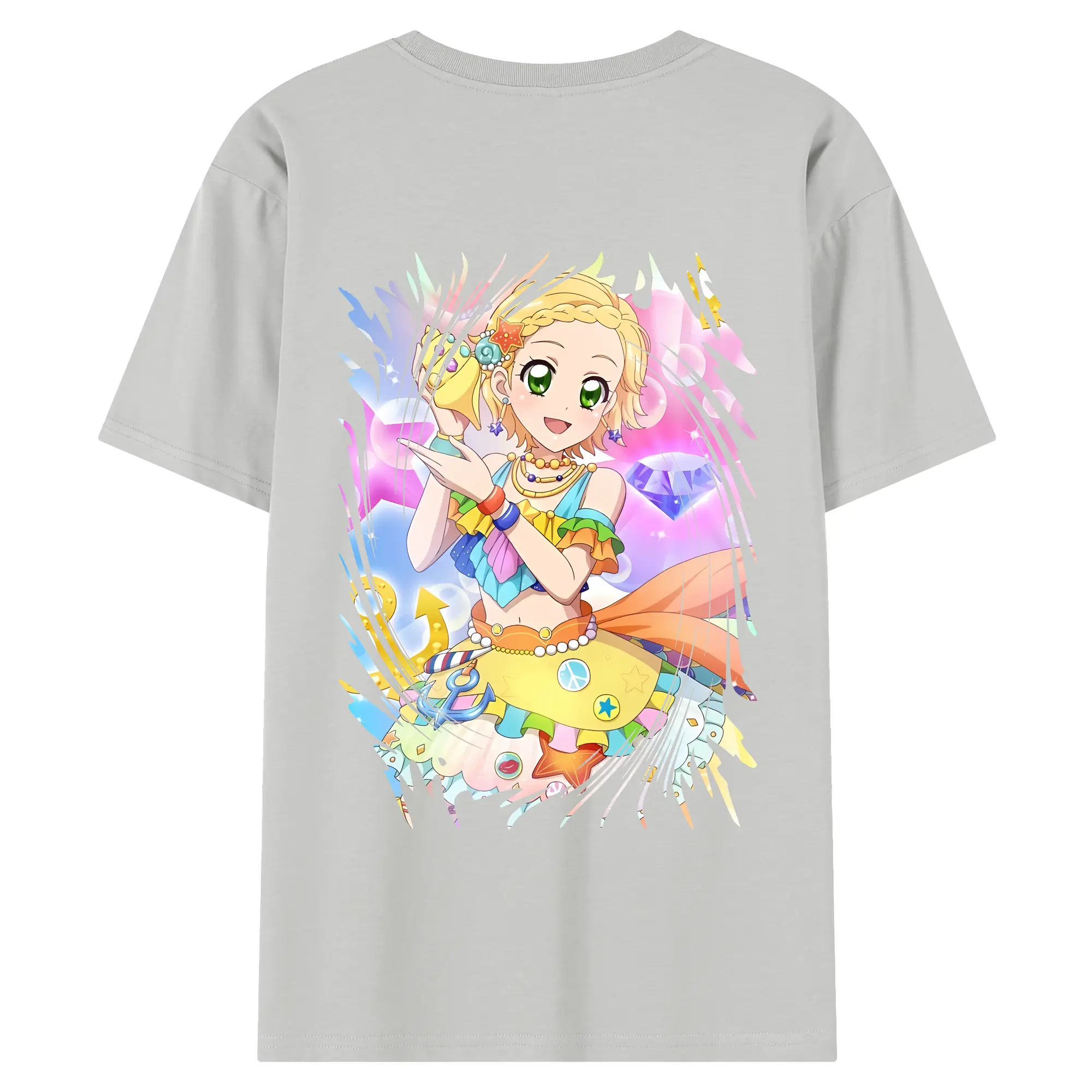 アイカツ グッズ 新条 ひなき - 綿100% ヴィンテージ風 半袖Tシャツ ・ 背面プリント ・ 柔らか肌触り ・ 通気性 快適 ・ スポーツ カジュアル 外出用