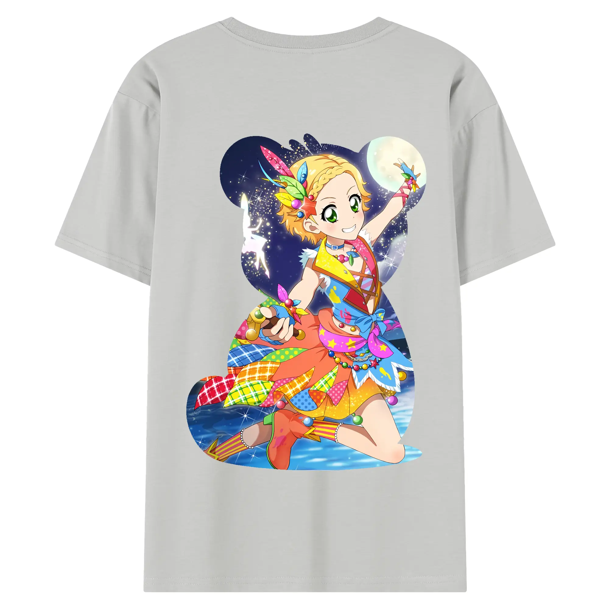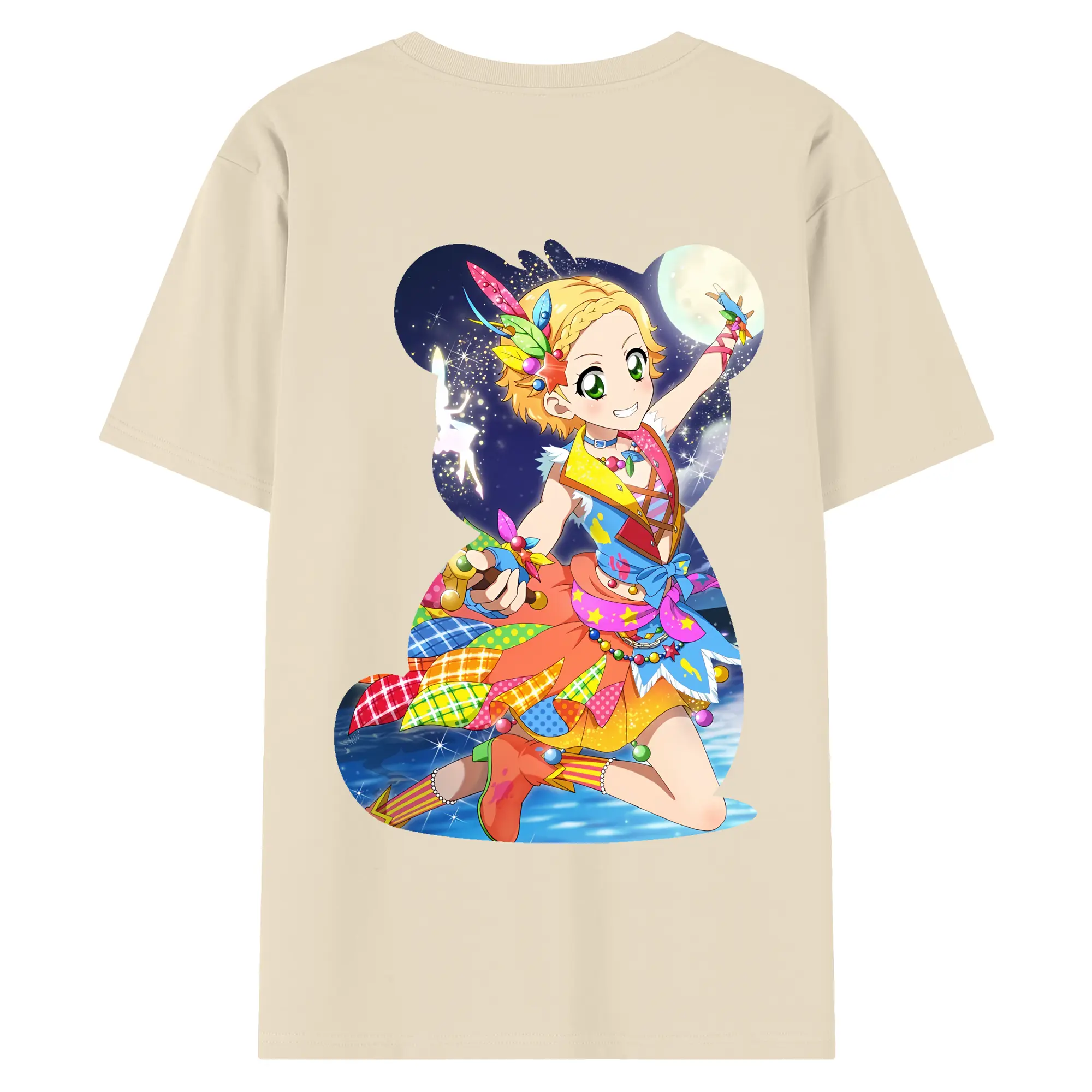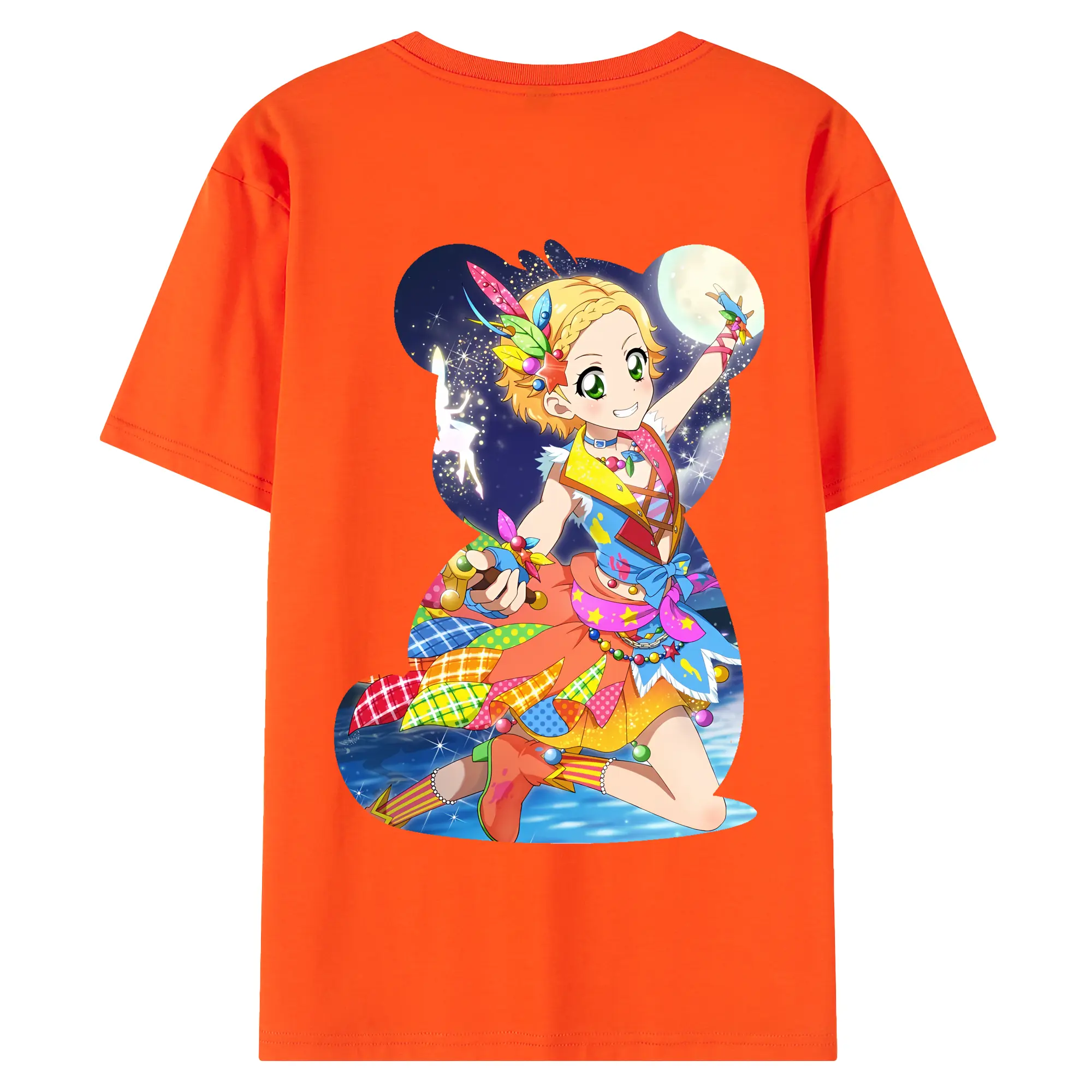 アイカツ グッズ 新条 ひなき - 綿100% ヴィンテージ風 半袖Tシャツ ・ 背面プリント ・ 柔らか肌触り ・ 通気性 快適 ・ スポーツ カジュアル 外出用
