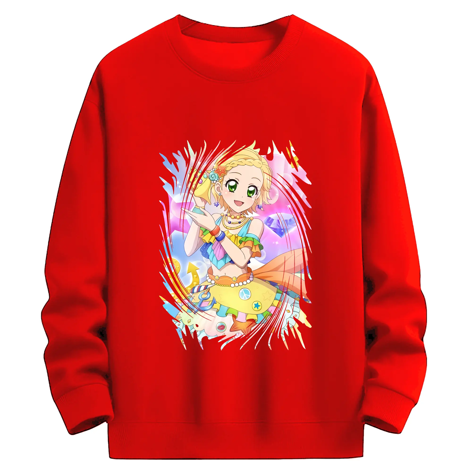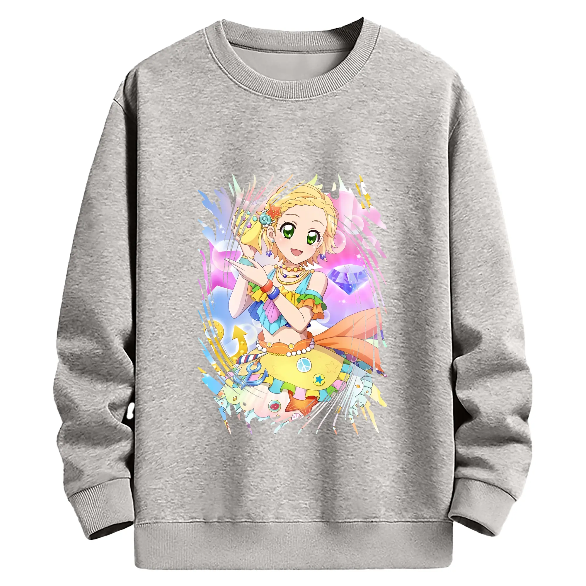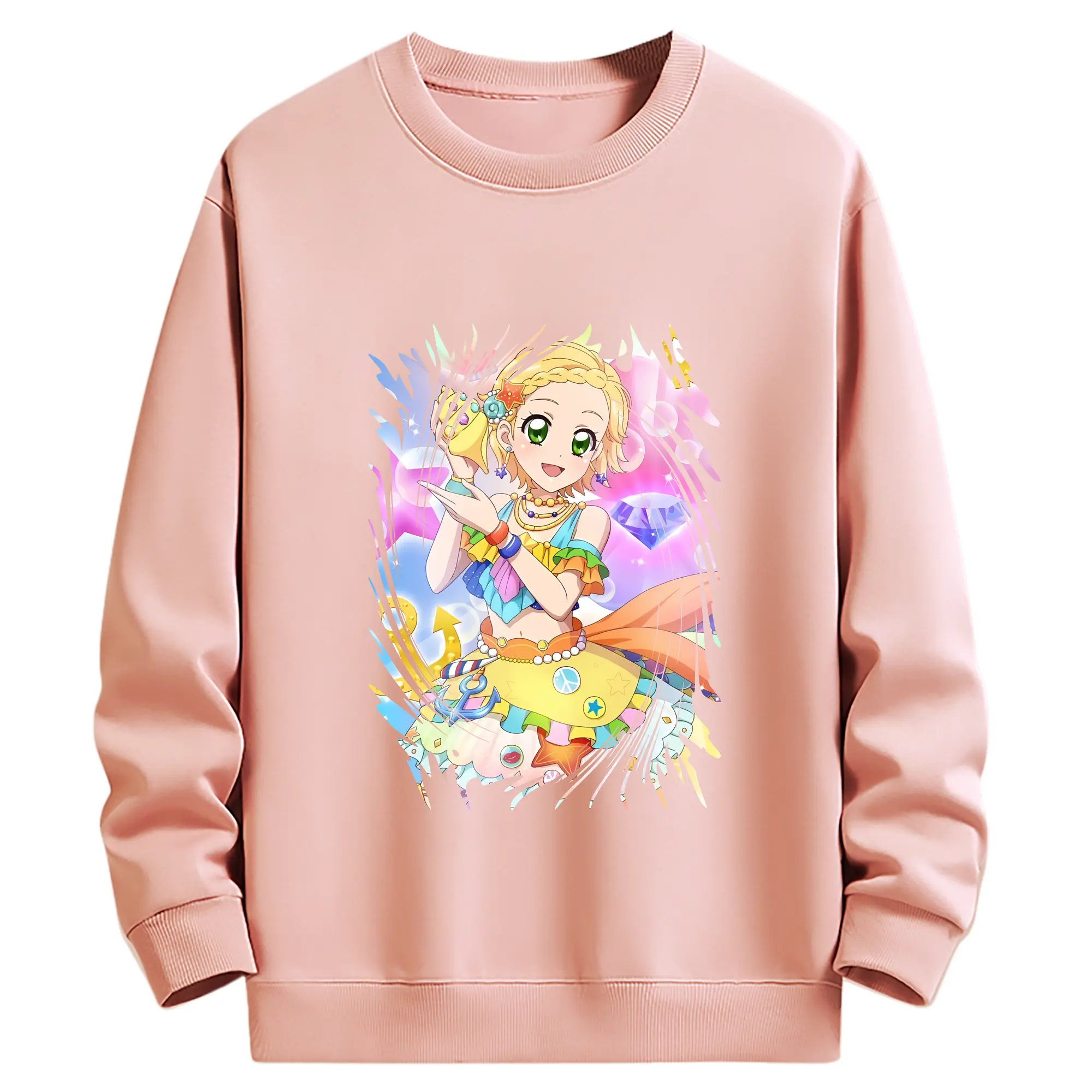 アイカツ グッズ 新条 ひなき - 薄手 クルーネック スウェット 裏毛260g · ポリエステル 春秋向け カジュアル 男女兼用 · トレーナー デイリー スポーツ 散歩に最適