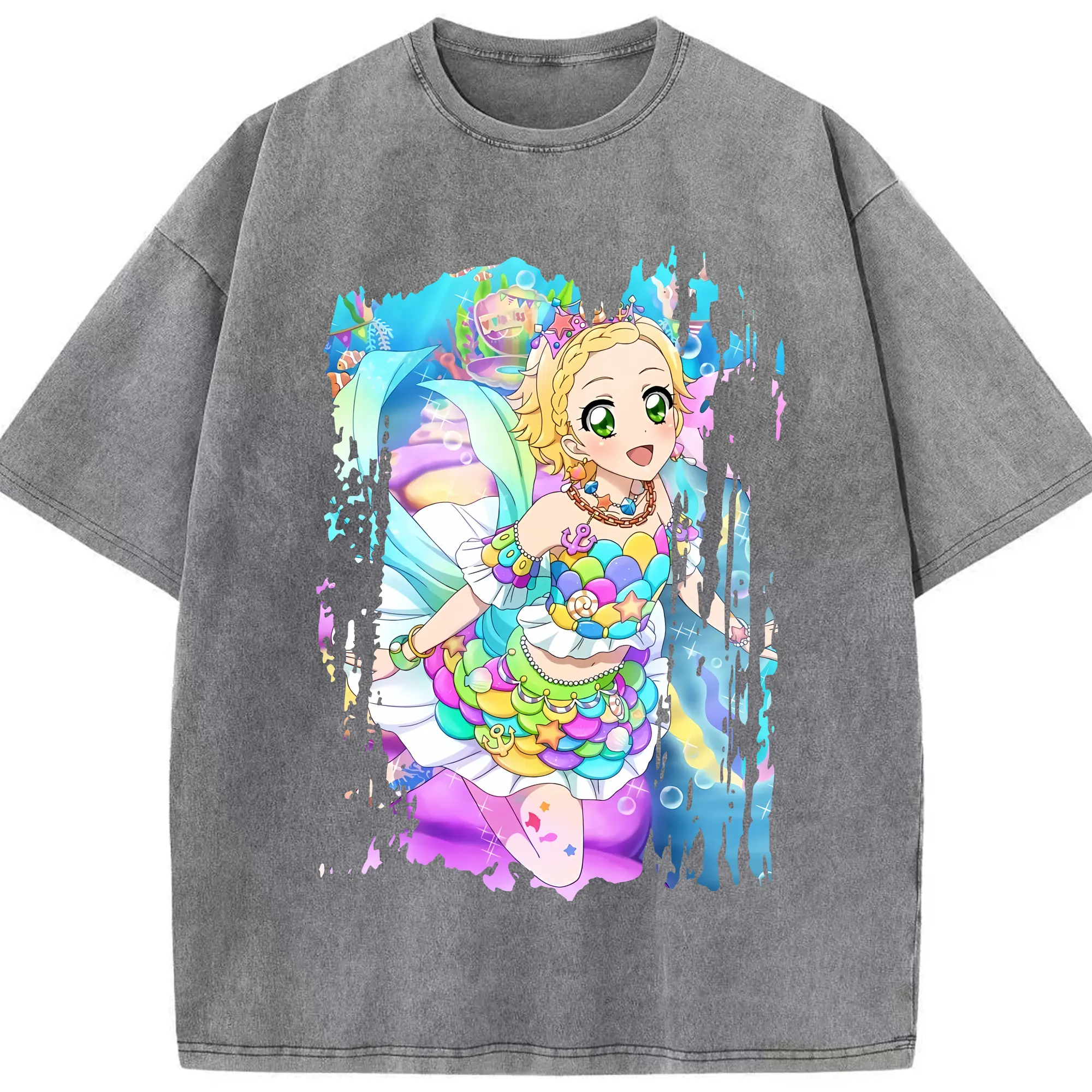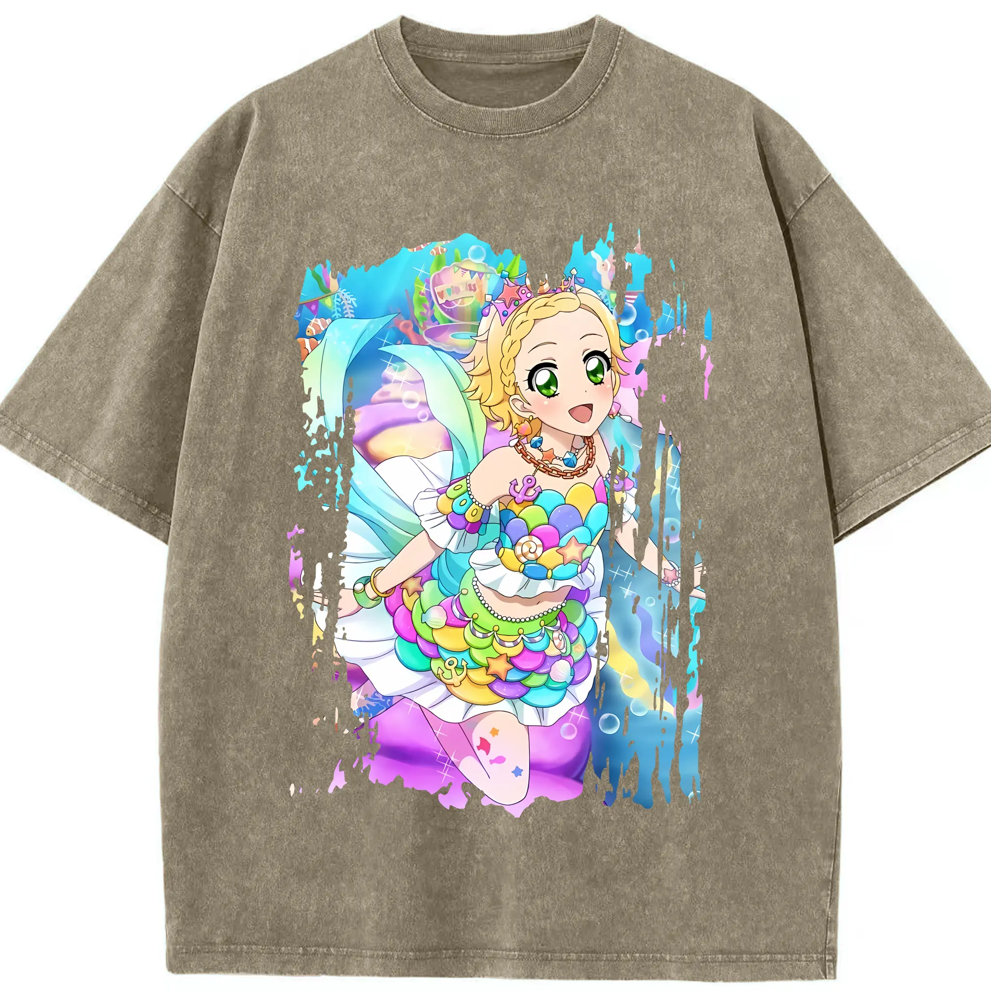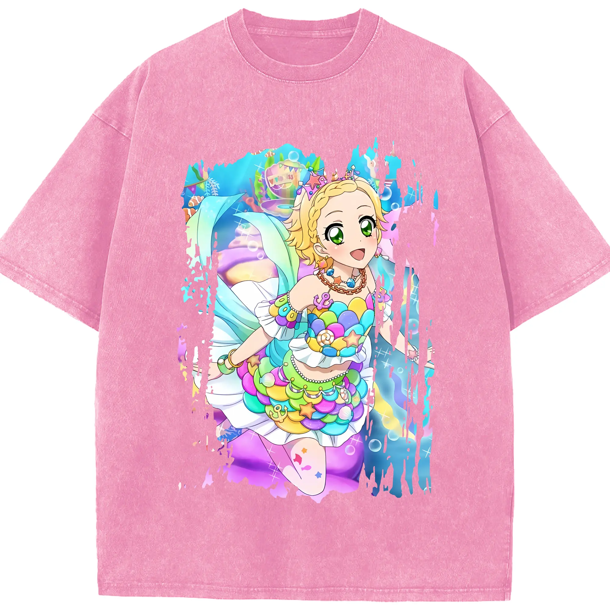 アイカツ グッズ 新条 ひなき - 綿100% ヴィンテージ風 半袖Tシャツ ・ 背面プリント ・ 柔らか肌触り ・ 通気性 快適 ・ スポーツ カジュアル 外出用