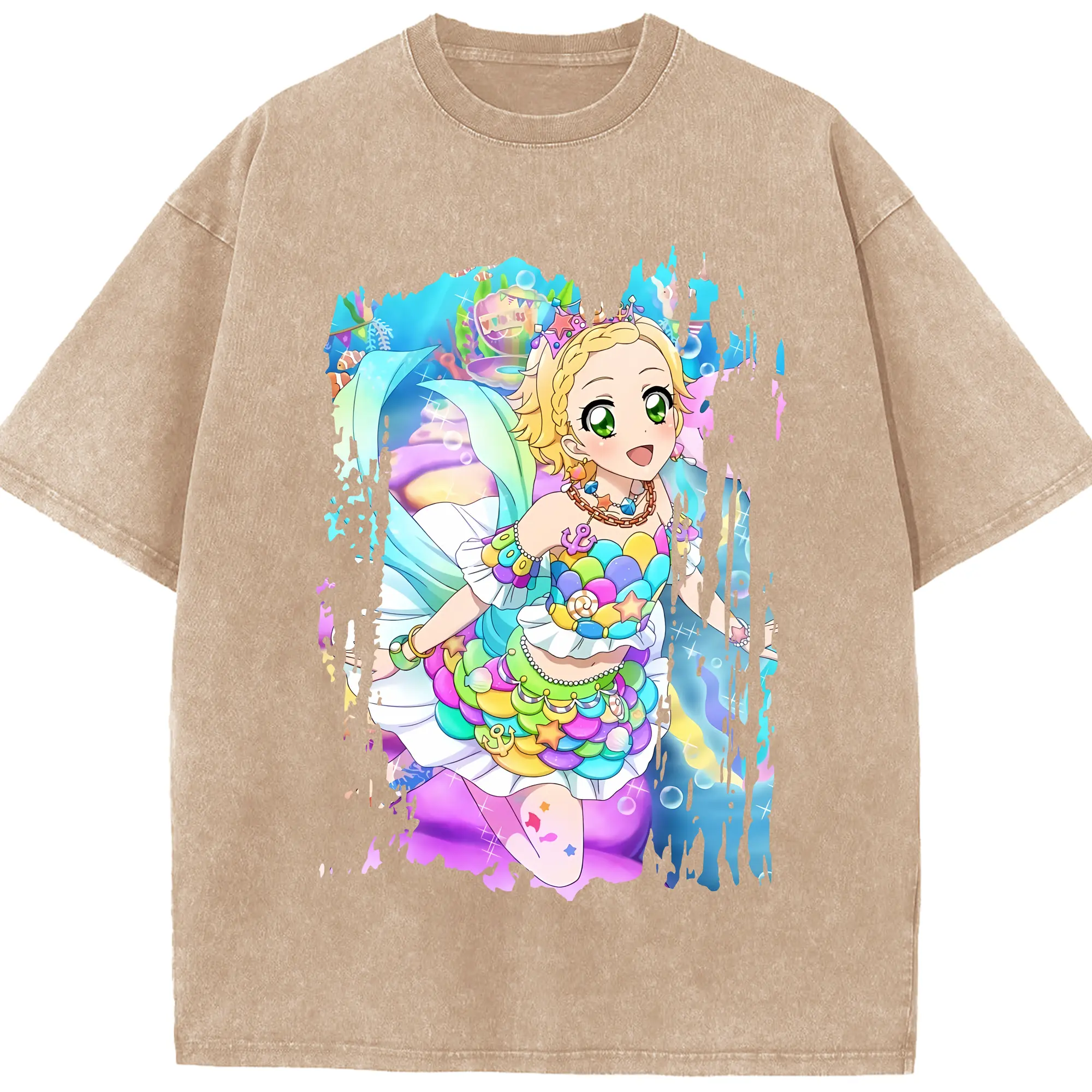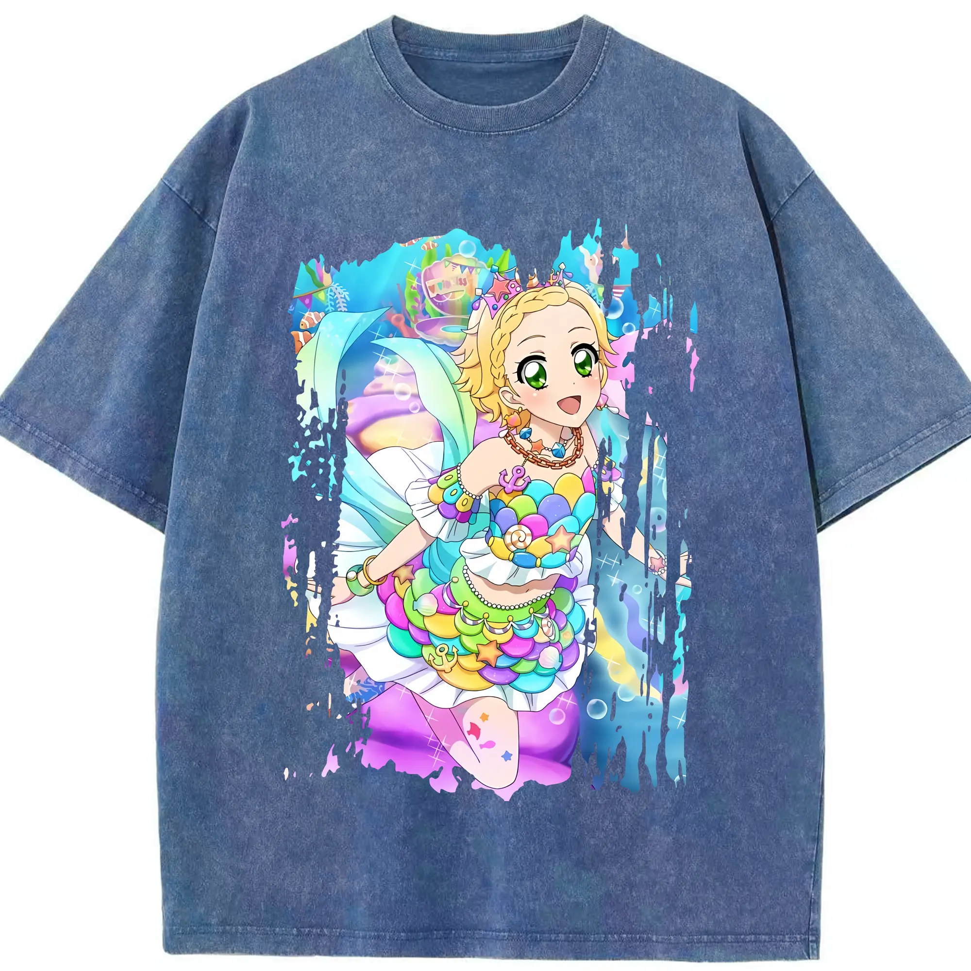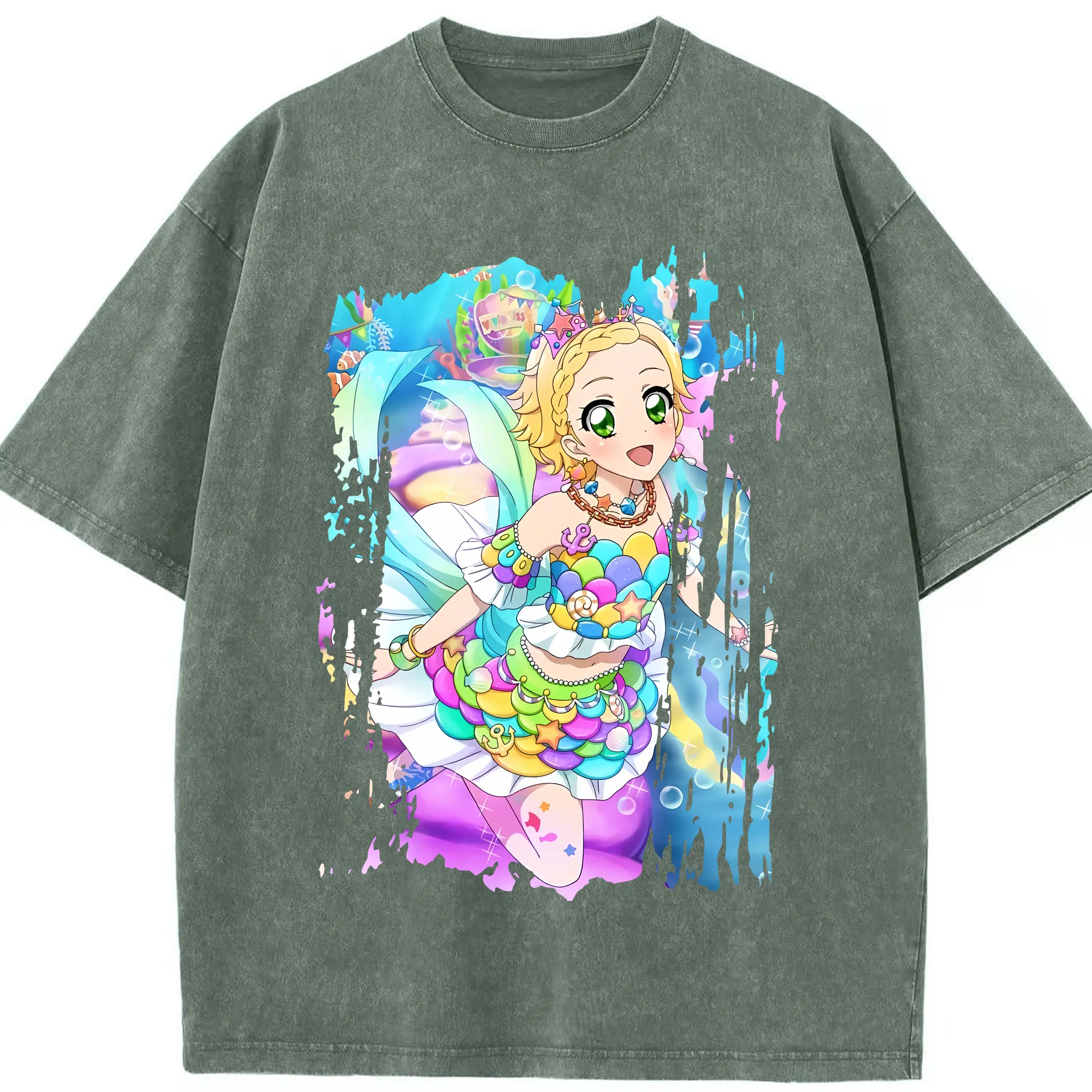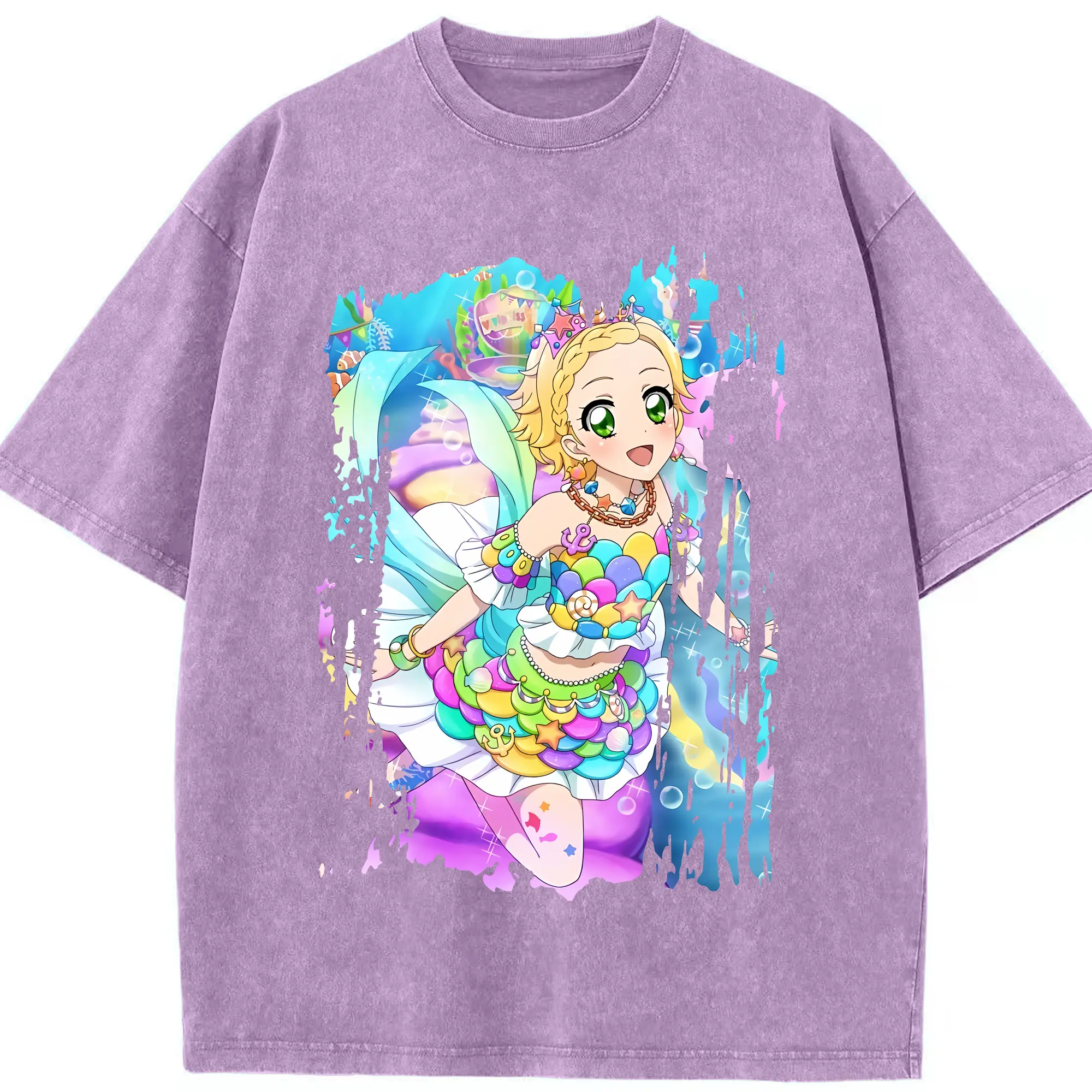 アイカツ グッズ 新条 ひなき - 綿100% ヴィンテージ風 半袖Tシャツ ・ 背面プリント ・ 柔らか肌触り ・ 通気性 快適 ・ スポーツ カジュアル 外出用
